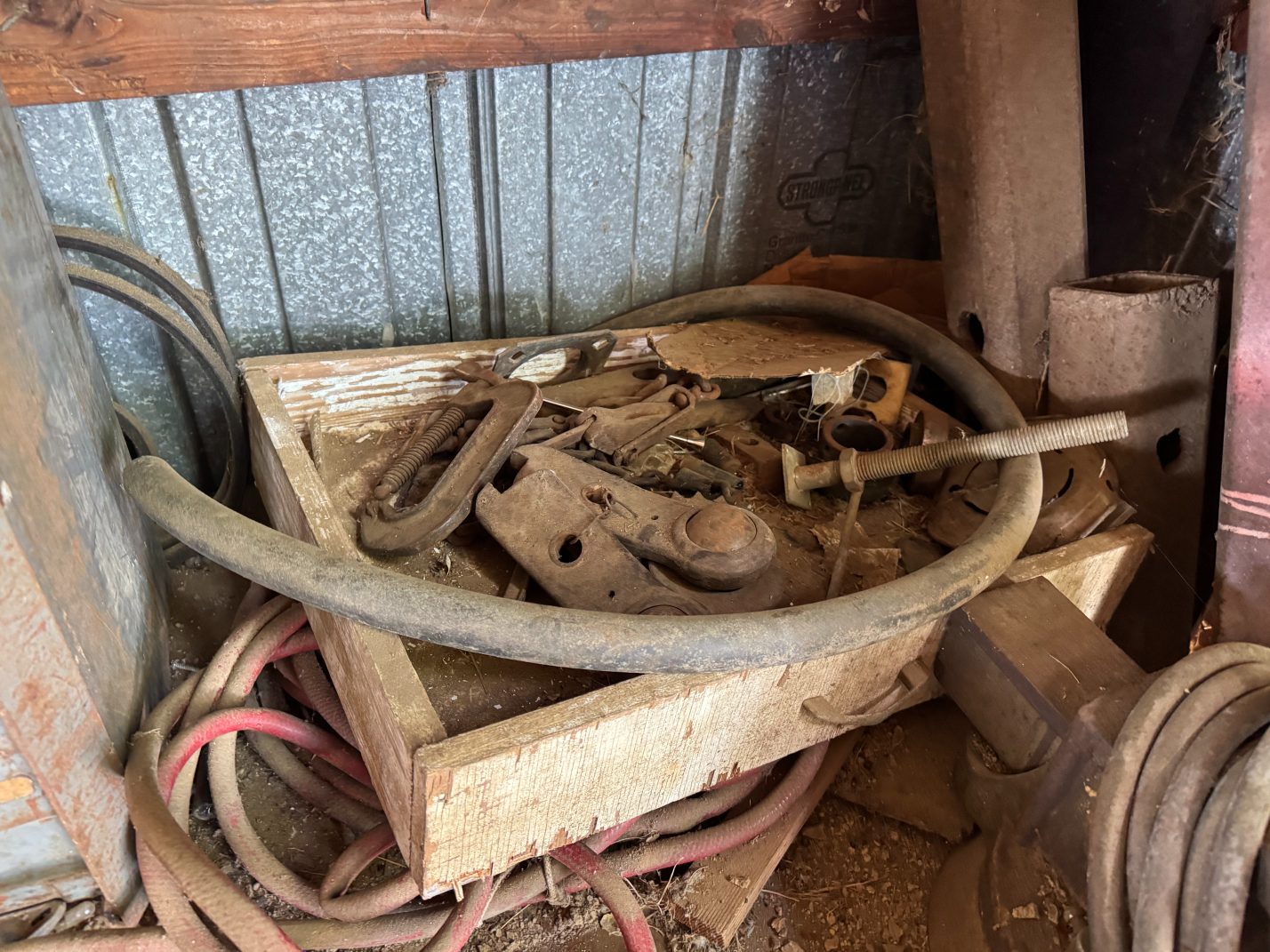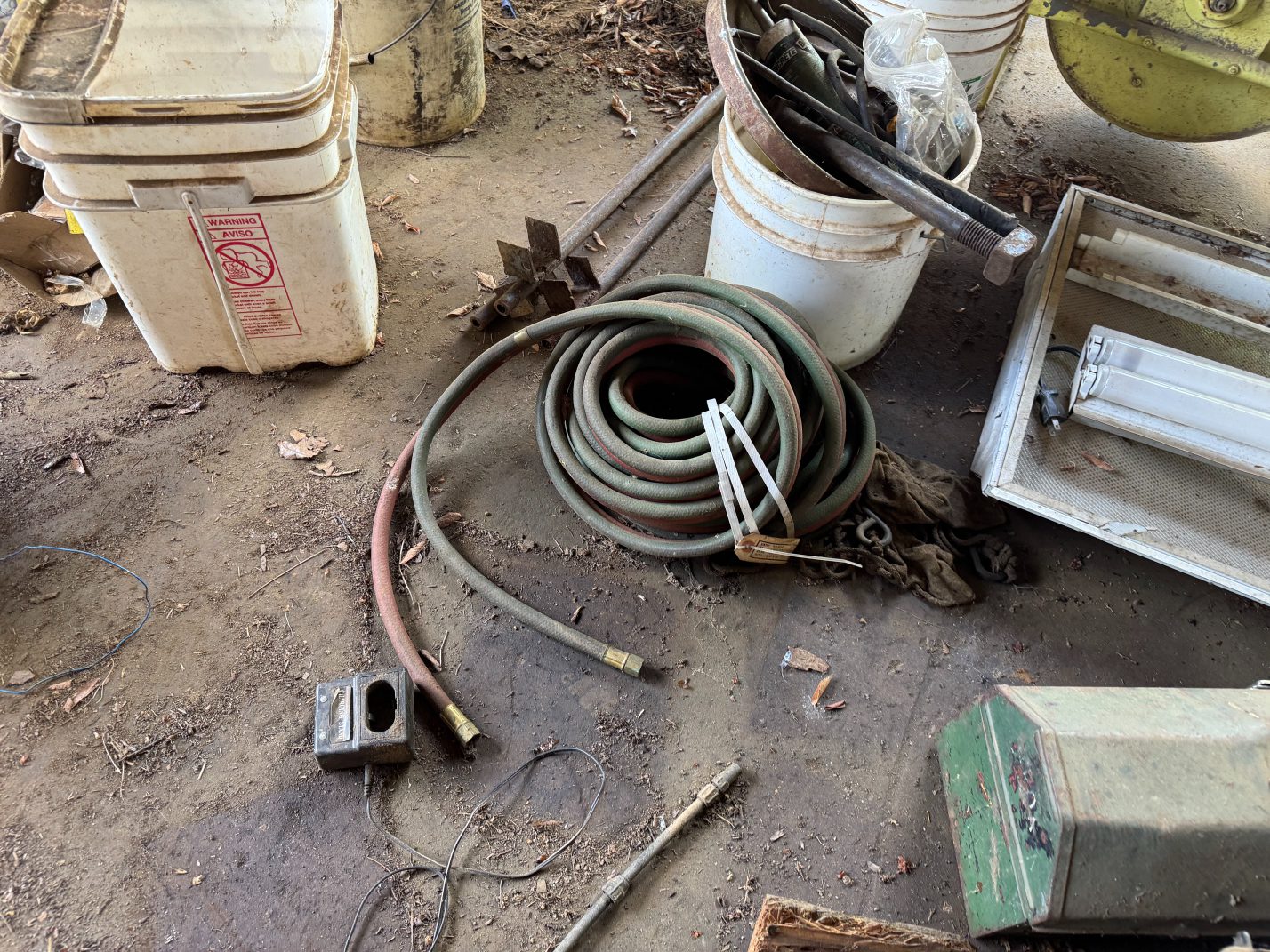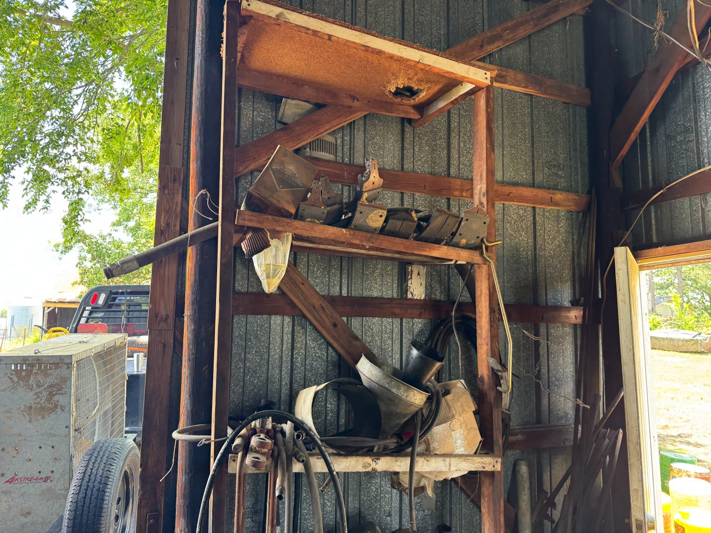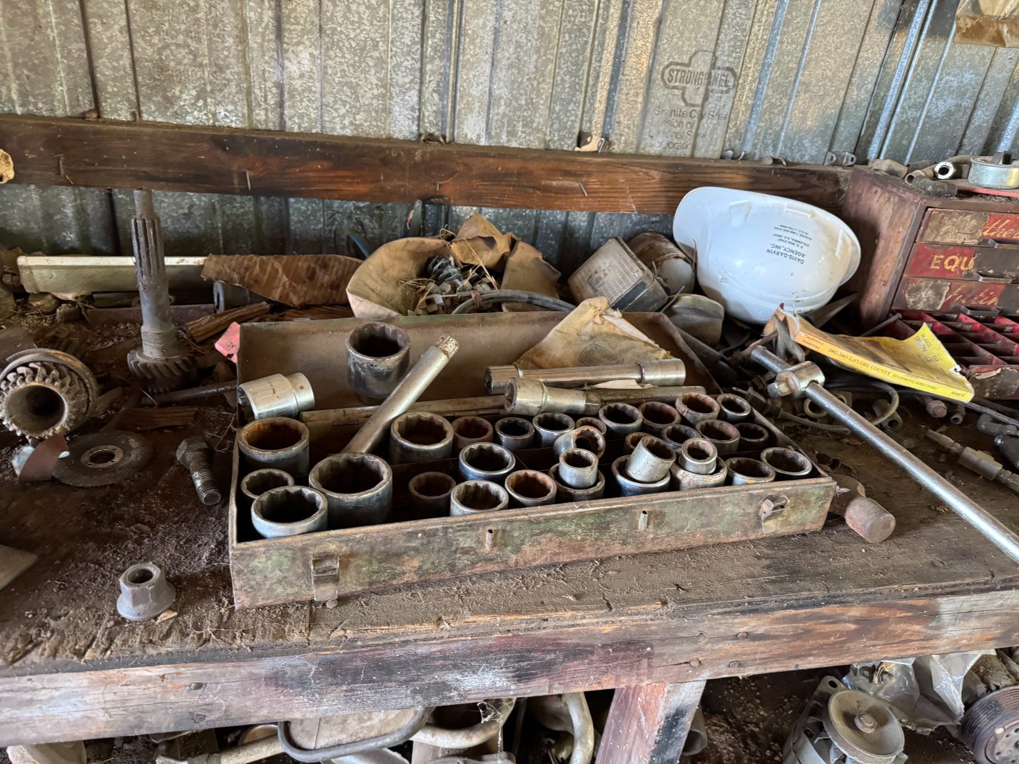 Tools/Shop Items: Post Hole Diggers – T-Posts (100s) – Wooden Chicken Coop – Electric Fencing – Barbed Wire – Wire Fencing – Chicken Wire – Tractor Tires – Tires – Wrought Iron Railing – Galvanized Tub – Misc. Wire – Misc. Cable – Metal Barrels – Plastic Barrels – Turnbuckles – Chicken House Fans – Baler Belts – Baler Chains – Metal Pipe – Square Metal Tubing – Window Air Units – Metal Shelving – Medical Supplies and Equipment – Propane Tanks – Saw Horses – Industrial Air Compressor – Air Hoses – Corder Grinders – Horse Tack – Tile Saw – Shop Vac – 10in. Radial Arm Saw – Hand Saws – Hack Saws – Pipe Cutter – Jack Stands – Hub Caps – Whiskey Barrel – Gas Cans – Kerosine Cans – Water Skis – Tarps – Can Hooks – Pitch Forks – Splitting Maul – Halogen Shop Lights – Faucets – Electrical Supplies – Saddles – Railroad Anvils – Grinder – Bolt Bins – Vise – Chain Hoists – Metal Plate – C-Clamps – Bottle Jacks – Cutting-Torch Hoses – Drain Pipe – Creepers – Chop Saws – Transmission Jack – Wheels – Ryobi Chop Saw – Boomers – Socket Set – Tackle Box – Metal Roll Around Cart – Log Chains – Welding Helmets – Come-A-Longs – Air Tank – Hydraulic Hoses – Hydraulic Fittings – Shop Fan – Floor Jacks – Car Parts – ¾ Socket Set – Ratchet Straps – Transmission – Lincoln Weldanpower 225 G7 – Craftsman Table Saw – Radiators – Air Hammer Drill – Acetylene Bottles