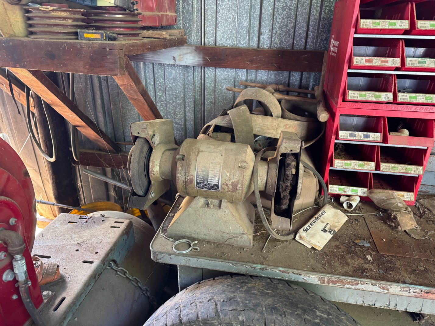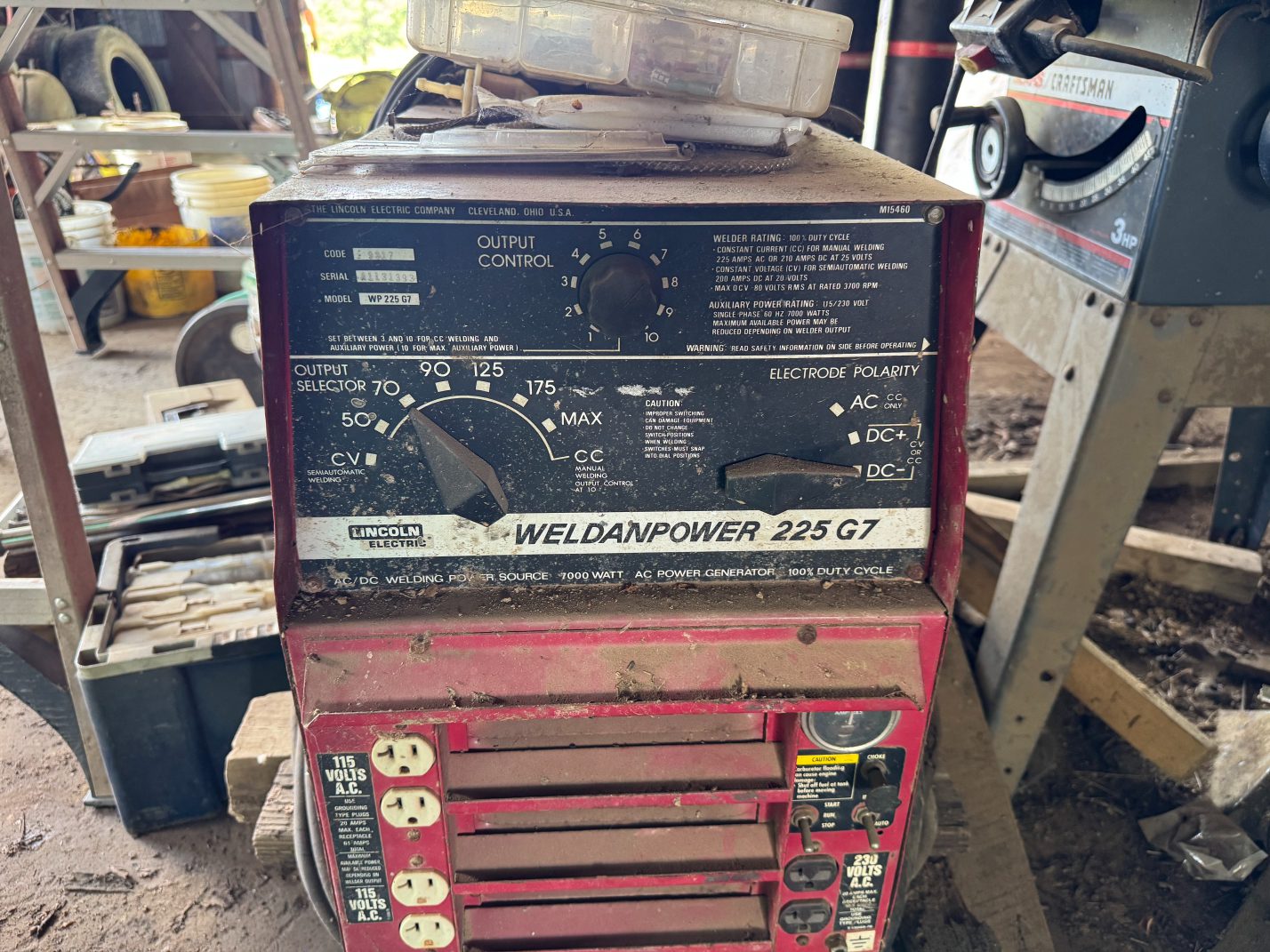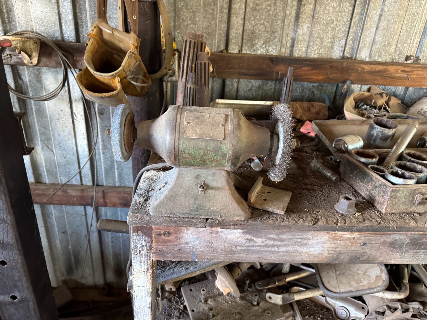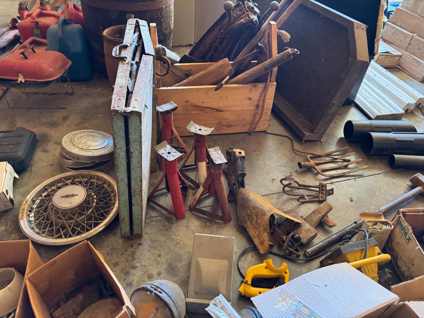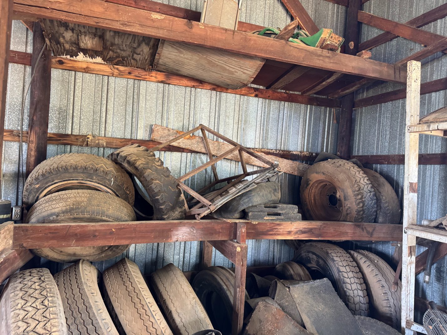 Tools/Shop Items: Post Hole Diggers – T-Posts (100s) – Wooden Chicken Coop – Electric Fencing – Barbed Wire – Wire Fencing – Chicken Wire – Tractor Tires – Tires – Wrought Iron Railing – Galvanized Tub – Misc. Wire – Misc. Cable – Metal Barrels – Plastic Barrels – Turnbuckles – Chicken House Fans – Baler Belts – Baler Chains – Metal Pipe – Square Metal Tubing – Window Air Units – Metal Shelving – Medical Supplies and Equipment – Propane Tanks – Saw Horses – Industrial Air Compressor – Air Hoses – Corder Grinders – Horse Tack – Tile Saw – Shop Vac – 10in. Radial Arm Saw – Hand Saws – Hack Saws – Pipe Cutter – Jack Stands – Hub Caps – Whiskey Barrel – Gas Cans – Kerosine Cans – Water Skis – Tarps – Can Hooks – Pitch Forks – Splitting Maul – Halogen Shop Lights – Faucets – Electrical Supplies – Saddles – Railroad Anvils – Grinder – Bolt Bins – Vise – Chain Hoists – Metal Plate – C-Clamps – Bottle Jacks – Cutting-Torch Hoses – Drain Pipe – Creepers – Chop Saws – Transmission Jack – Wheels – Ryobi Chop Saw – Boomers – Socket Set – Tackle Box – Metal Roll Around Cart – Log Chains – Welding Helmets – Come-A-Longs – Air Tank – Hydraulic Hoses – Hydraulic Fittings – Shop Fan – Floor Jacks – Car Parts – ¾ Socket Set – Ratchet Straps – Transmission – Lincoln Weldanpower 225 G7 – Craftsman Table Saw – Radiators – Air Hammer Drill – Acetylene Bottles