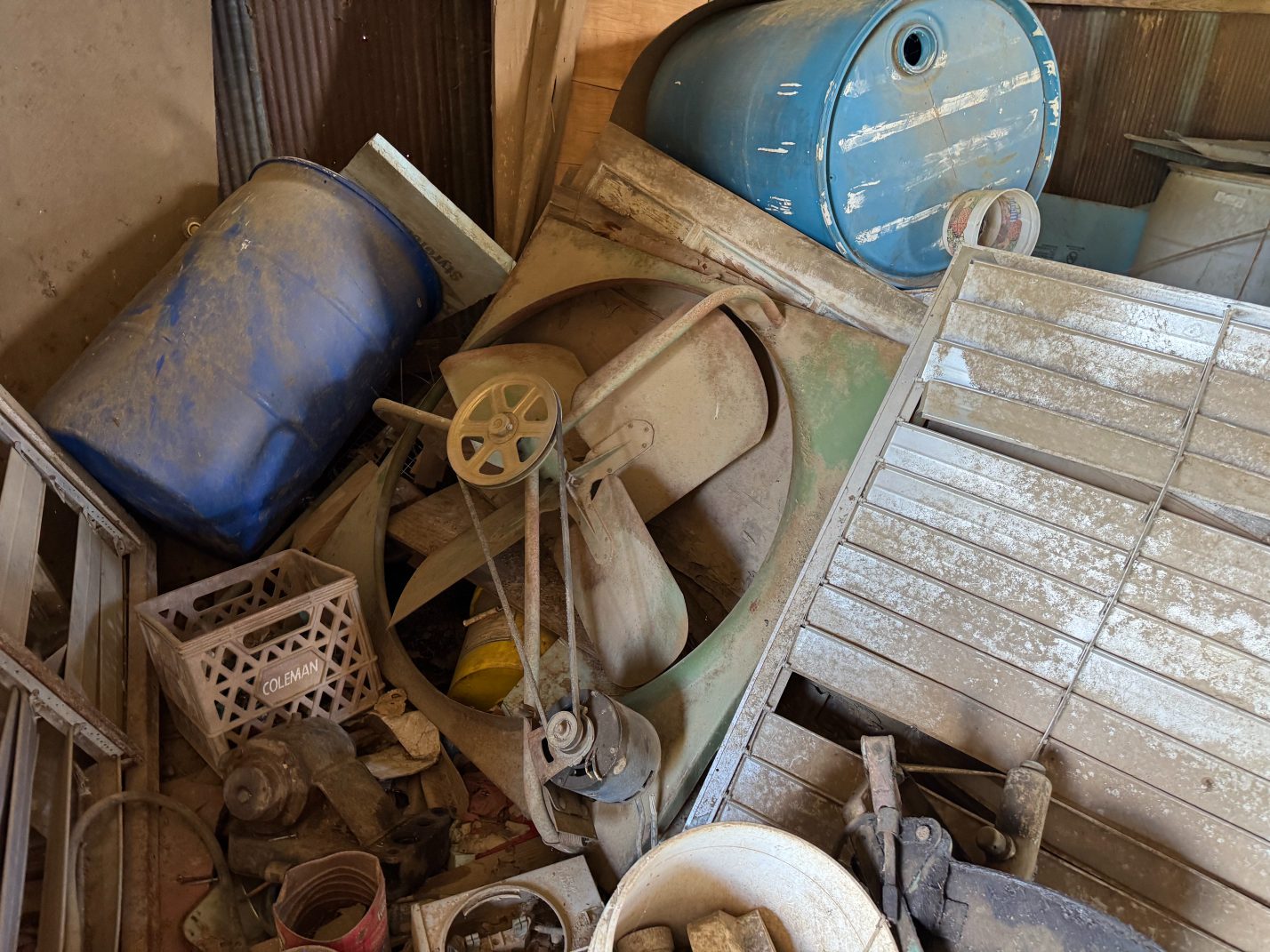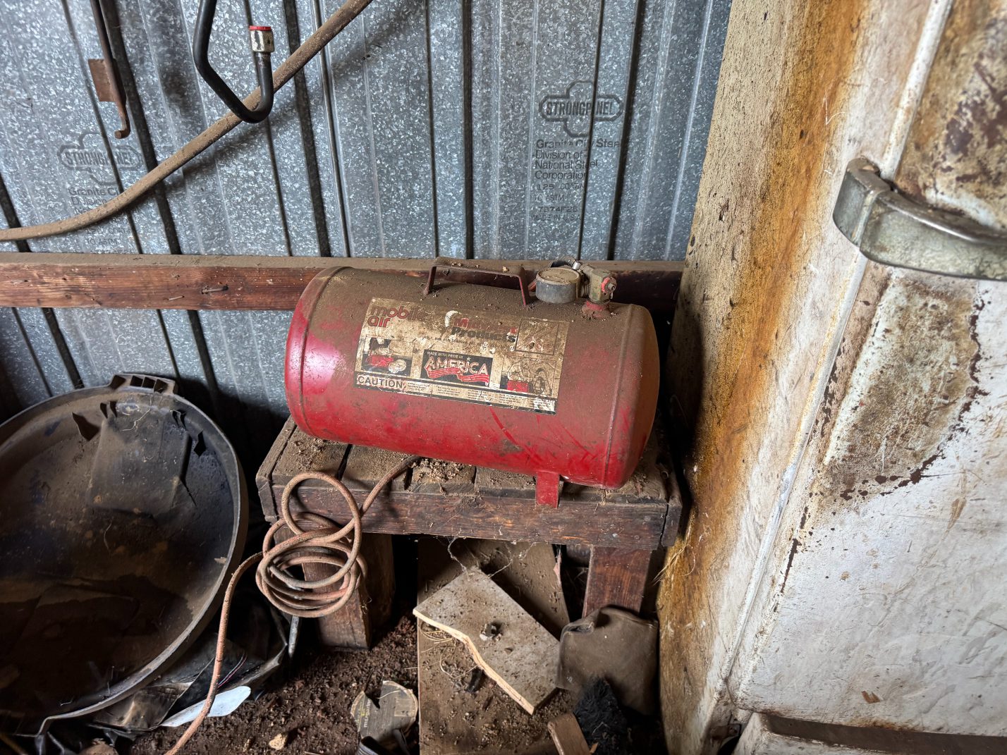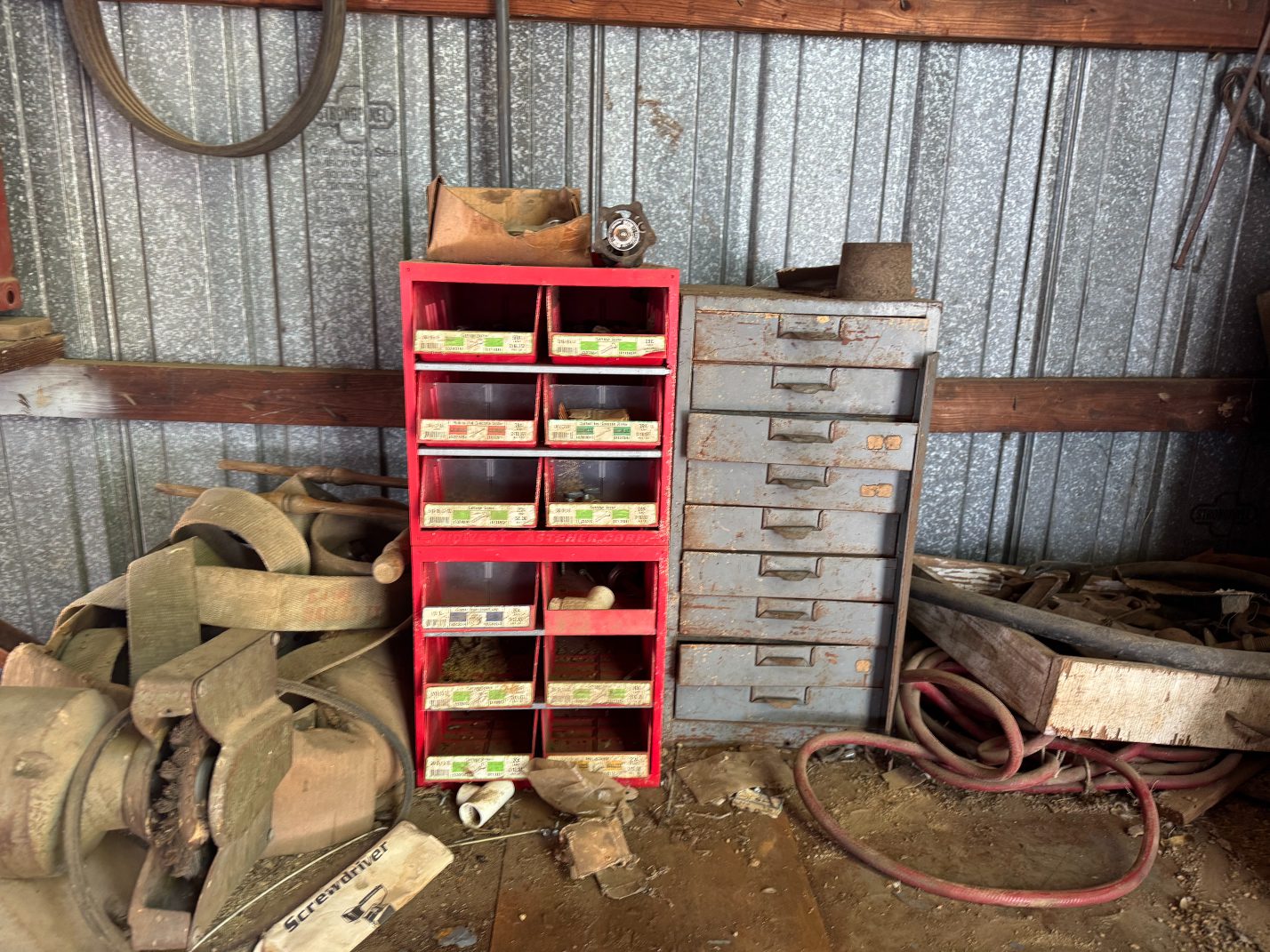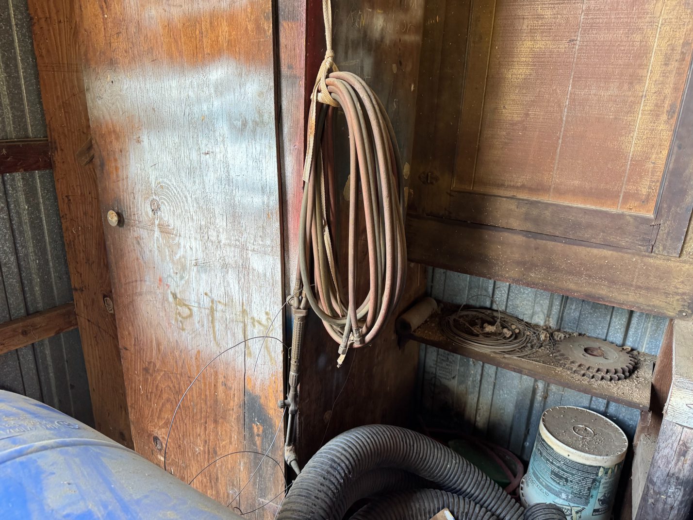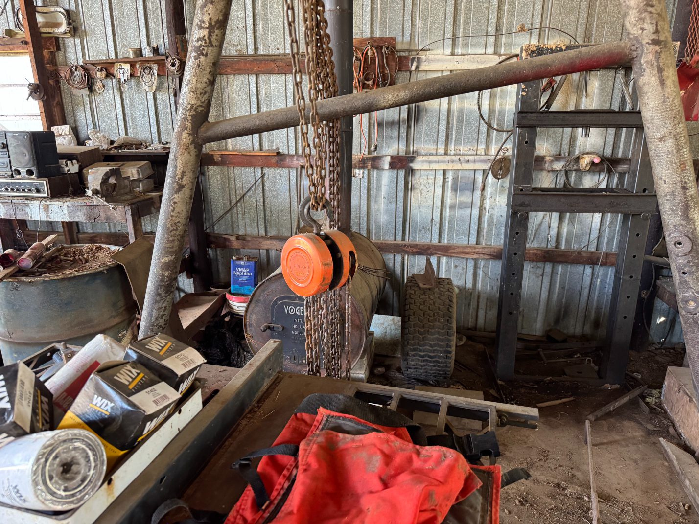Tools/Shop Items: Post Hole Diggers – T-Posts (100s) – Wooden Chicken Coop – Electric Fencing – Barbed Wire – Wire Fencing – Chicken Wire – Tractor Tires – Tires – Wrought Iron Railing – Galvanized Tub – Misc. Wire – Misc. Cable – Metal Barrels – Plastic Barrels – Turnbuckles – Chicken House Fans – Baler Belts – Baler Chains – Metal Pipe – Square Metal Tubing – Window Air Units – Metal Shelving – Medical Supplies and Equipment – Propane Tanks – Saw Horses – Industrial Air Compressor – Air Hoses – Corder Grinders – Horse Tack – Tile Saw – Shop Vac – 10in. Radial Arm Saw – Hand Saws – Hack Saws – Pipe Cutter – Jack Stands – Hub Caps – Whiskey Barrel – Gas Cans – Kerosine Cans – Water Skis – Tarps – Can Hooks – Pitch Forks – Splitting Maul – Halogen Shop Lights – Faucets – Electrical Supplies – Saddles – Railroad Anvils – Grinder – Bolt Bins – Vise – Chain Hoists – Metal Plate – C-Clamps – Bottle Jacks – Cutting-Torch Hoses – Drain Pipe – Creepers – Chop Saws – Transmission Jack – Wheels – Ryobi Chop Saw – Boomers – Socket Set – Tackle Box – Metal Roll Around Cart – Log Chains – Welding Helmets – Come-A-Longs – Air Tank – Hydraulic Hoses – Hydraulic Fittings – Shop Fan – Floor Jacks – Car Parts – ¾ Socket Set – Ratchet Straps – Transmission – Lincoln Weldanpower 225 G7 – Craftsman Table Saw – Radiators – Air Hammer Drill – Acetylene Bottles