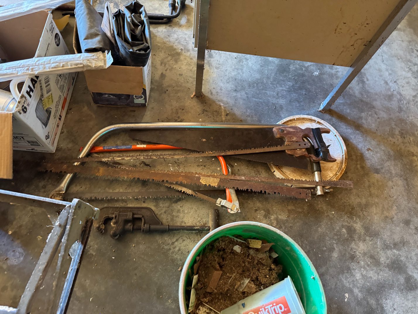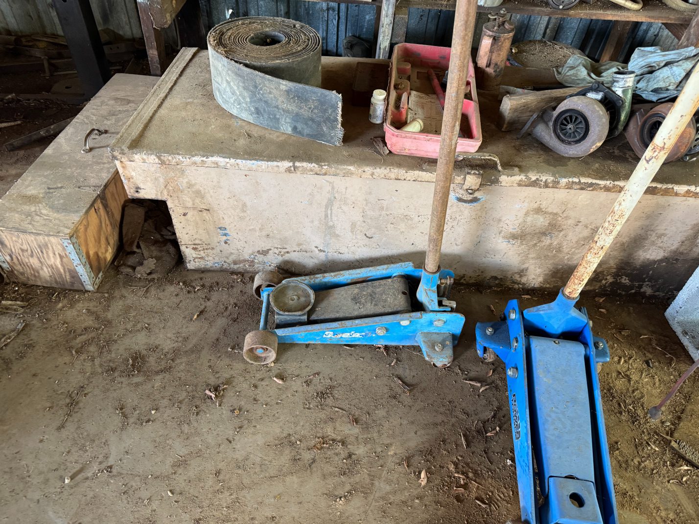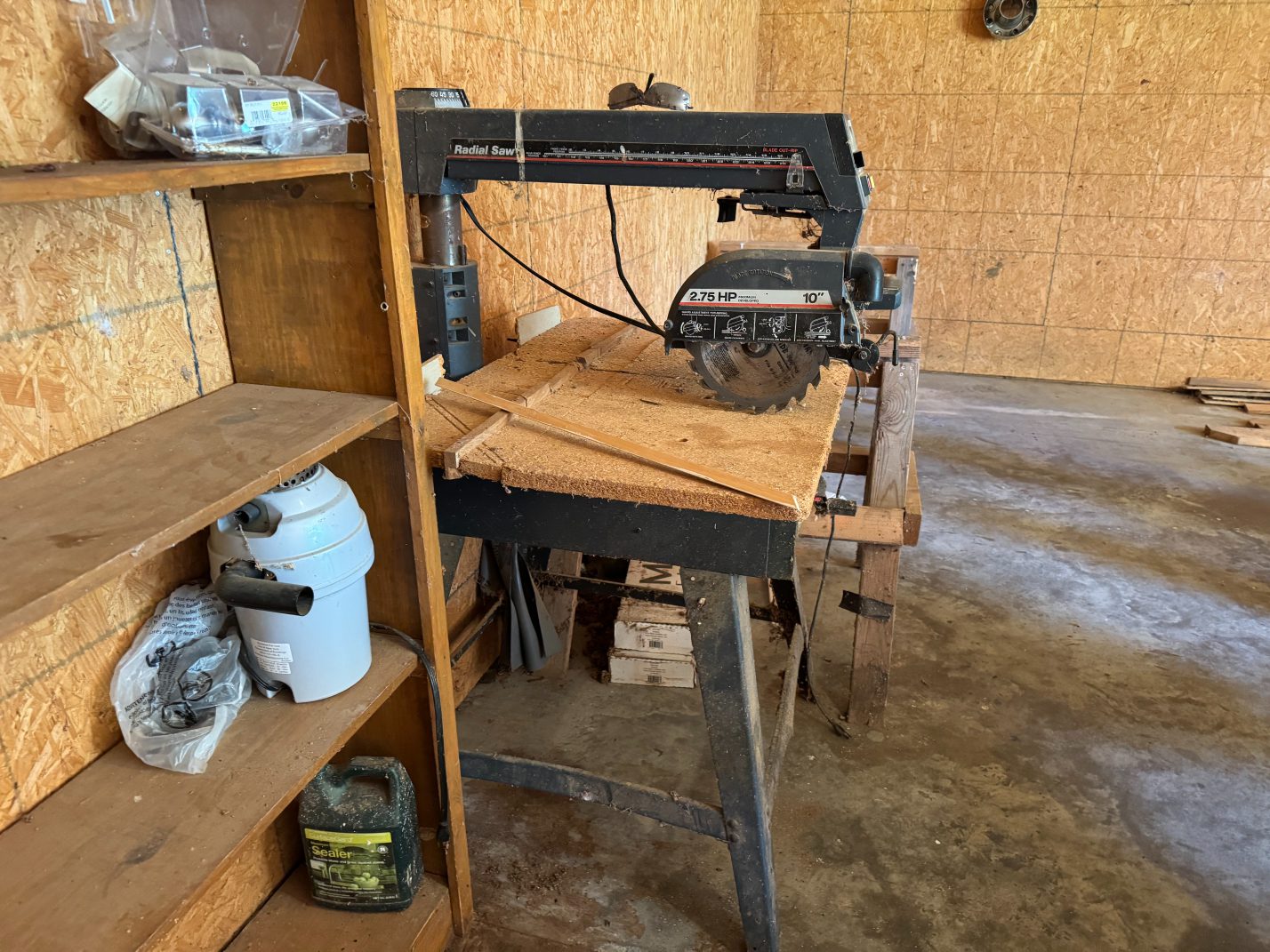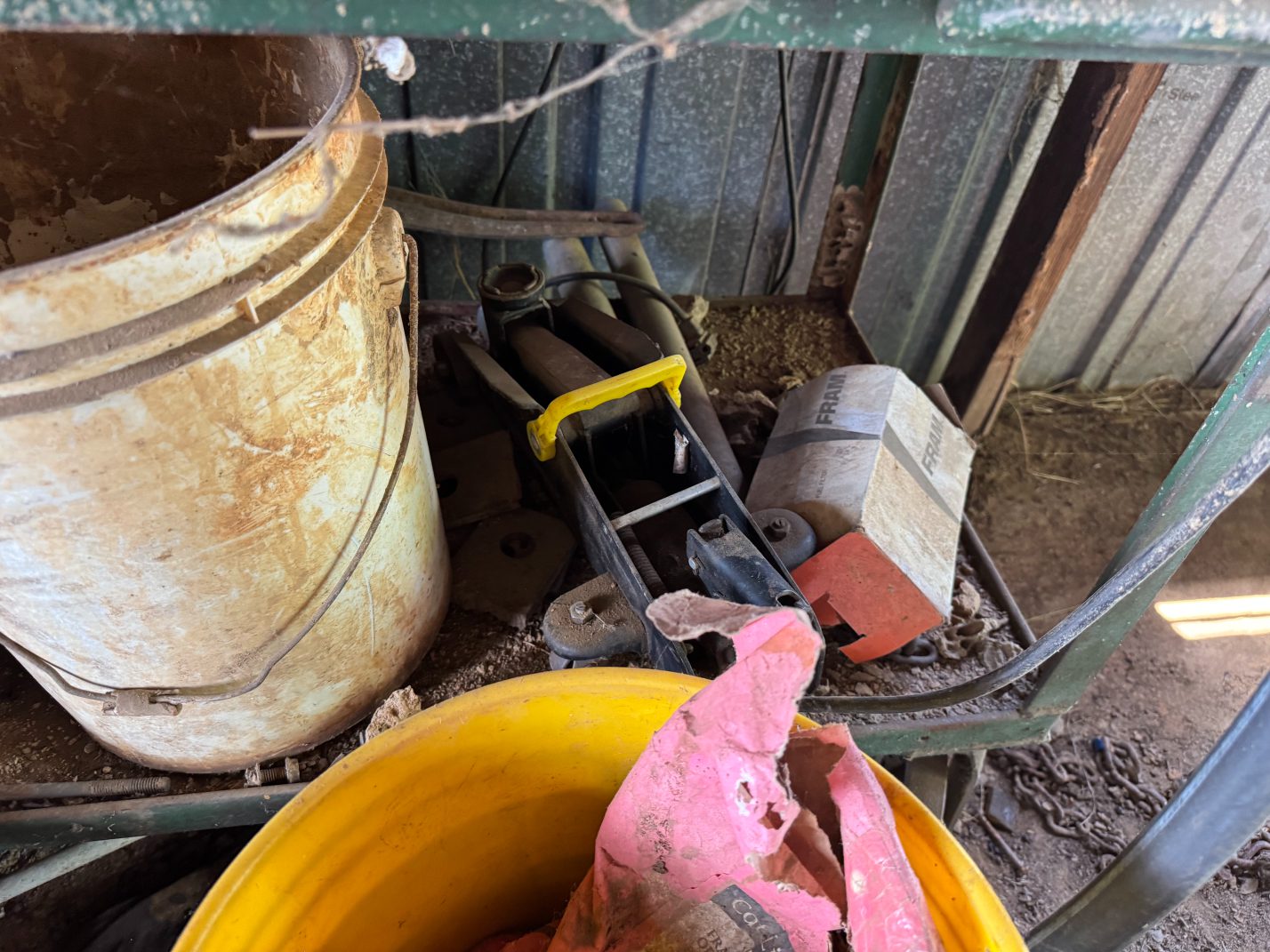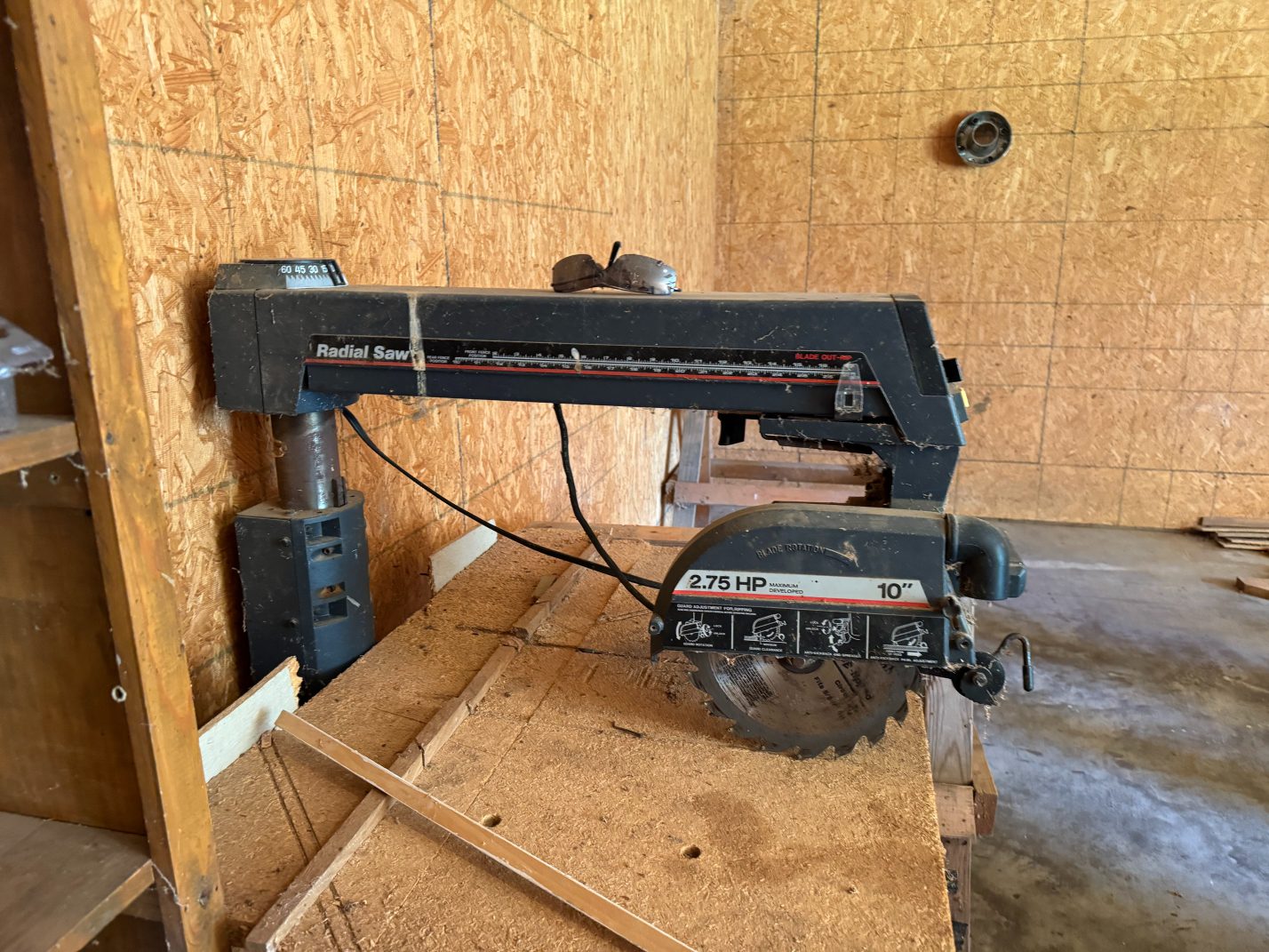 Tools/Shop Items: Post Hole Diggers – T-Posts (100s) – Wooden Chicken Coop – Electric Fencing – Barbed Wire – Wire Fencing – Chicken Wire – Tractor Tires – Tires – Wrought Iron Railing – Galvanized Tub – Misc. Wire – Misc. Cable – Metal Barrels – Plastic Barrels – Turnbuckles – Chicken House Fans – Baler Belts – Baler Chains – Metal Pipe – Square Metal Tubing – Window Air Units – Metal Shelving – Medical Supplies and Equipment – Propane Tanks – Saw Horses – Industrial Air Compressor – Air Hoses – Corder Grinders – Horse Tack – Tile Saw – Shop Vac – 10in. Radial Arm Saw – Hand Saws – Hack Saws – Pipe Cutter – Jack Stands – Hub Caps – Whiskey Barrel – Gas Cans – Kerosine Cans – Water Skis – Tarps – Can Hooks – Pitch Forks – Splitting Maul – Halogen Shop Lights – Faucets – Electrical Supplies – Saddles – Railroad Anvils – Grinder – Bolt Bins – Vise – Chain Hoists – Metal Plate – C-Clamps – Bottle Jacks – Cutting-Torch Hoses – Drain Pipe – Creepers – Chop Saws – Transmission Jack – Wheels – Ryobi Chop Saw – Boomers – Socket Set – Tackle Box – Metal Roll Around Cart – Log Chains – Welding Helmets – Come-A-Longs – Air Tank – Hydraulic Hoses – Hydraulic Fittings – Shop Fan – Floor Jacks – Car Parts – ¾ Socket Set – Ratchet Straps – Transmission – Lincoln Weldanpower 225 G7 – Craftsman Table Saw – Radiators – Air Hammer Drill – Acetylene Bottles
