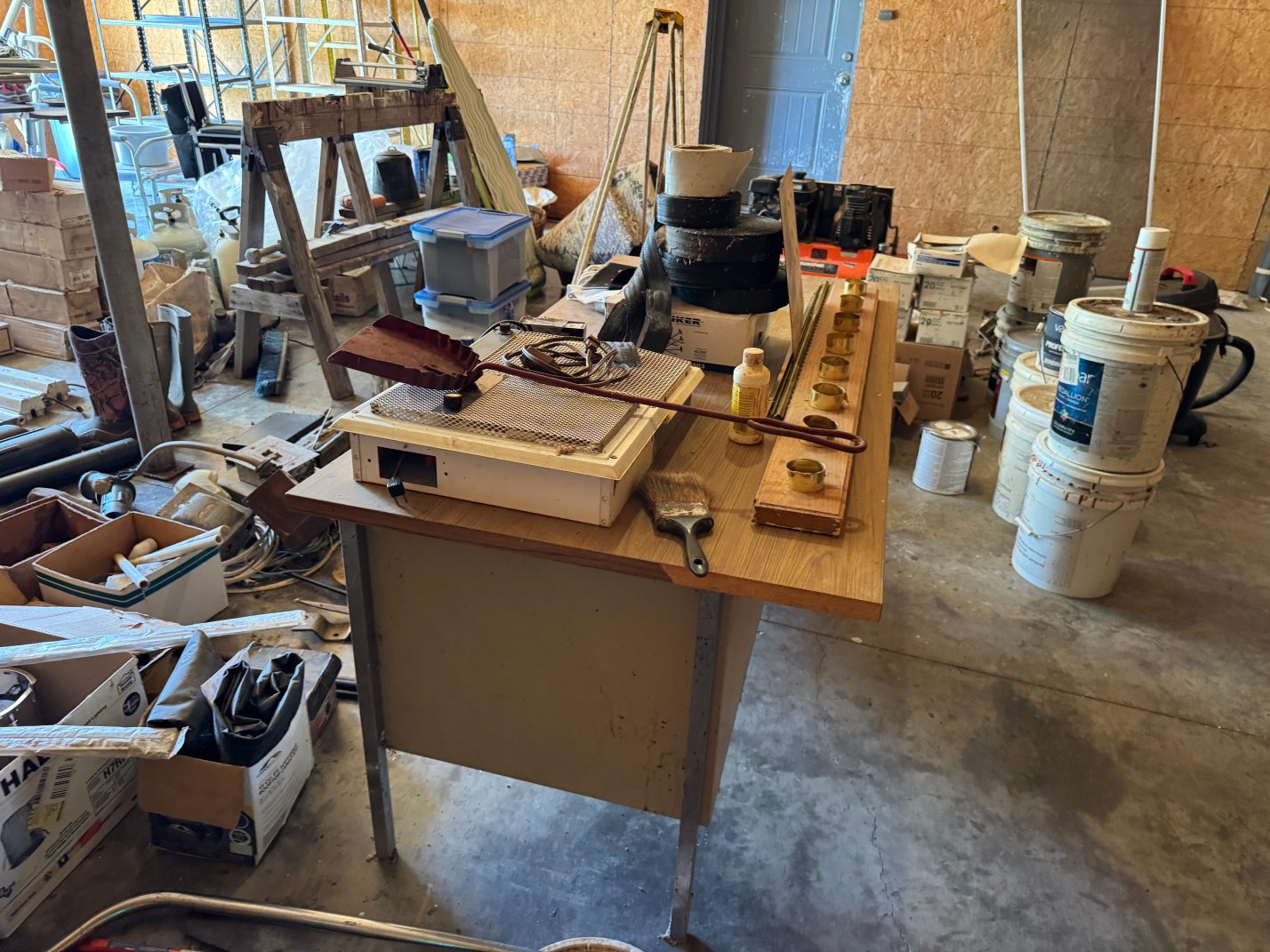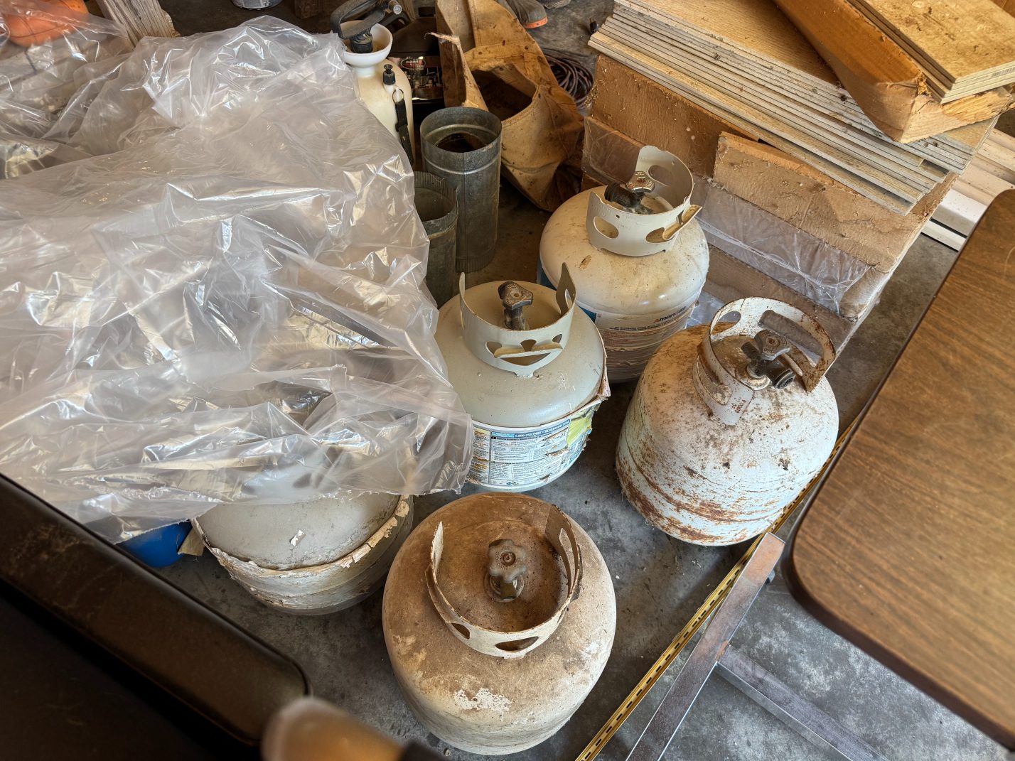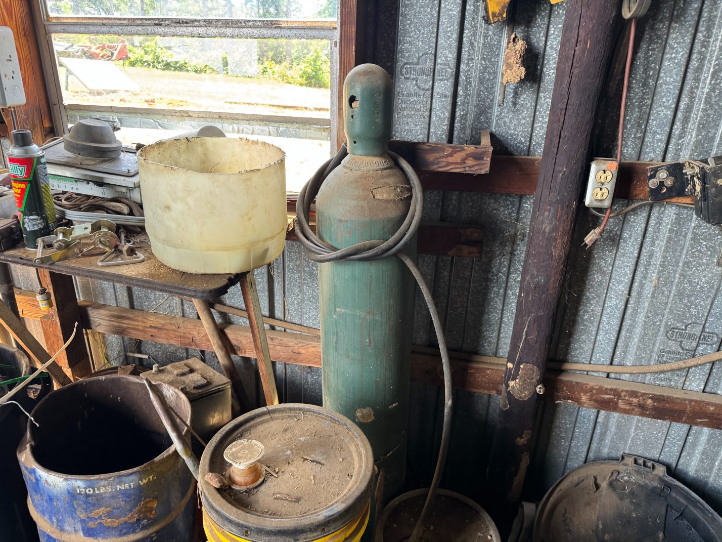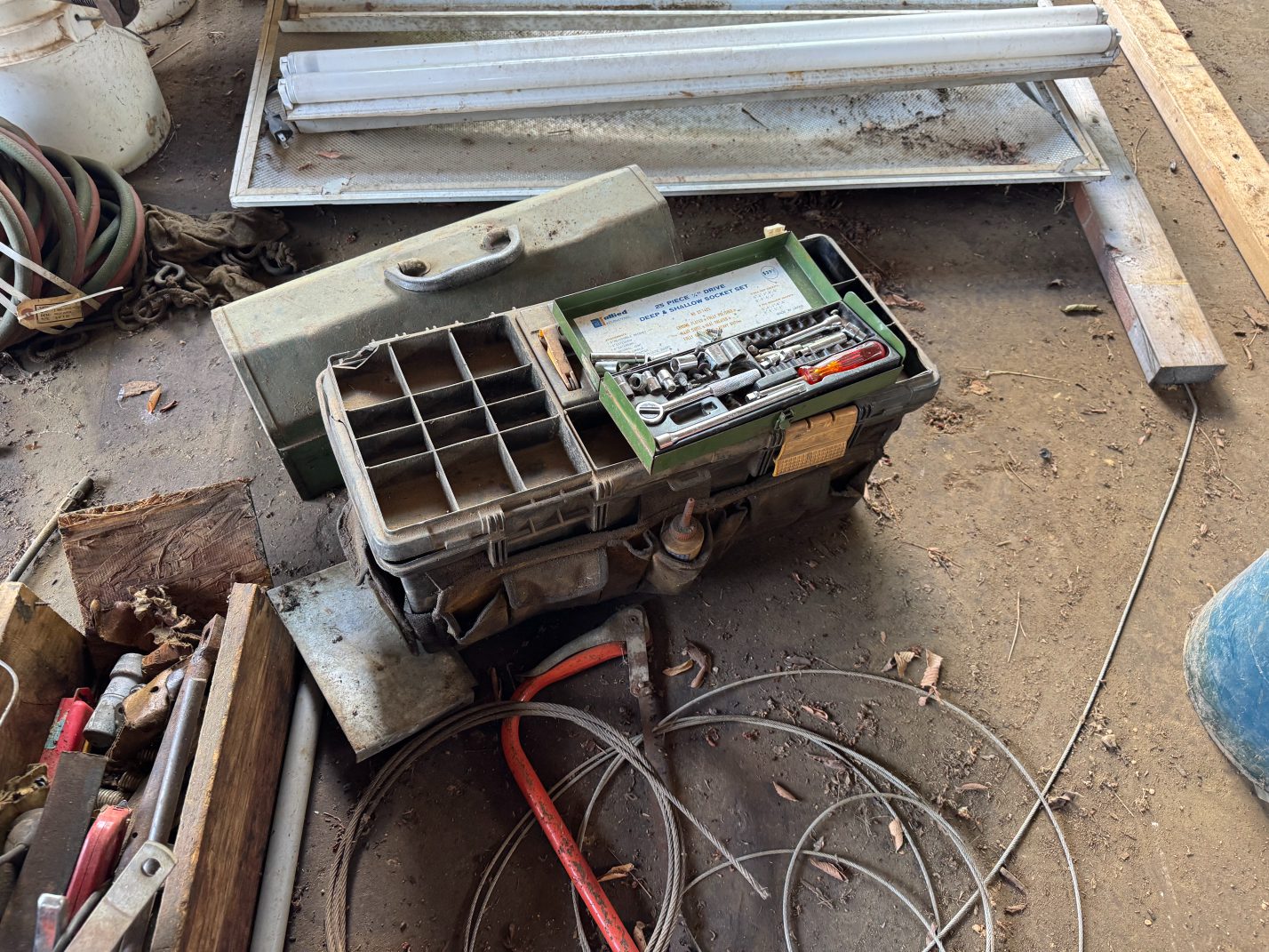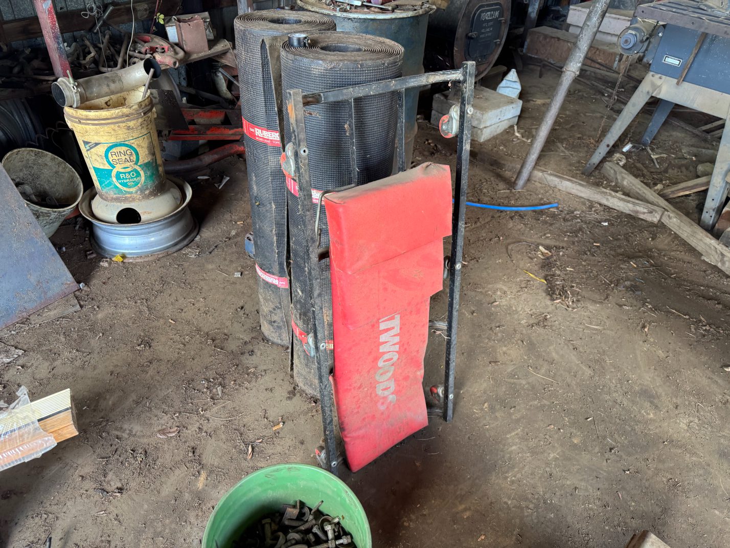 Tools/Shop Items: Post Hole Diggers – T-Posts (100s) – Wooden Chicken Coop – Electric Fencing – Barbed Wire – Wire Fencing – Chicken Wire – Tractor Tires – Tires – Wrought Iron Railing – Galvanized Tub – Misc. Wire – Misc. Cable – Metal Barrels – Plastic Barrels – Turnbuckles – Chicken House Fans – Baler Belts – Baler Chains – Metal Pipe – Square Metal Tubing – Window Air Units – Metal Shelving – Medical Supplies and Equipment – Propane Tanks – Saw Horses – Industrial Air Compressor – Air Hoses – Corder Grinders – Horse Tack – Tile Saw – Shop Vac – 10in. Radial Arm Saw – Hand Saws – Hack Saws – Pipe Cutter – Jack Stands – Hub Caps – Whiskey Barrel – Gas Cans – Kerosine Cans – Water Skis – Tarps – Can Hooks – Pitch Forks – Splitting Maul – Halogen Shop Lights – Faucets – Electrical Supplies – Saddles – Railroad Anvils – Grinder – Bolt Bins – Vise – Chain Hoists – Metal Plate – C-Clamps – Bottle Jacks – Cutting-Torch Hoses – Drain Pipe – Creepers – Chop Saws – Transmission Jack – Wheels – Ryobi Chop Saw – Boomers – Socket Set – Tackle Box – Metal Roll Around Cart – Log Chains – Welding Helmets – Come-A-Longs – Air Tank – Hydraulic Hoses – Hydraulic Fittings – Shop Fan – Floor Jacks – Car Parts – ¾ Socket Set – Ratchet Straps – Transmission – Lincoln Weldanpower 225 G7 – Craftsman Table Saw – Radiators – Air Hammer Drill – Acetylene Bottles