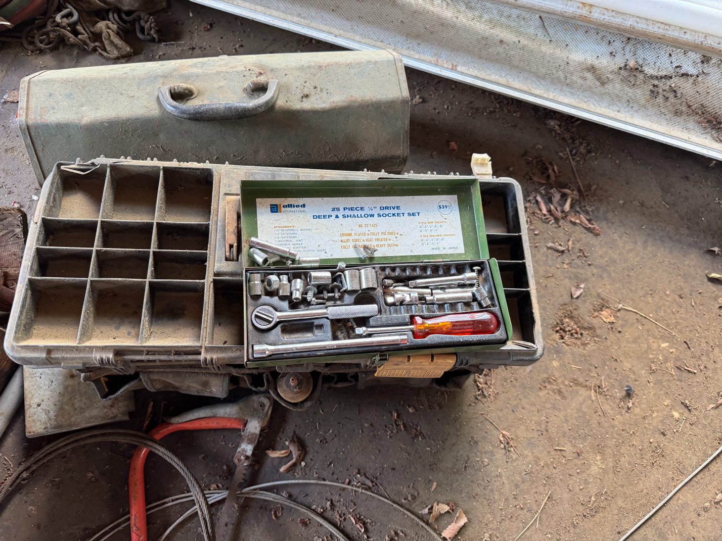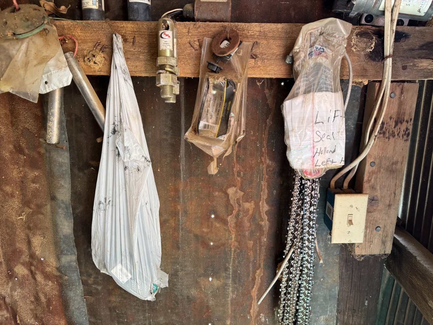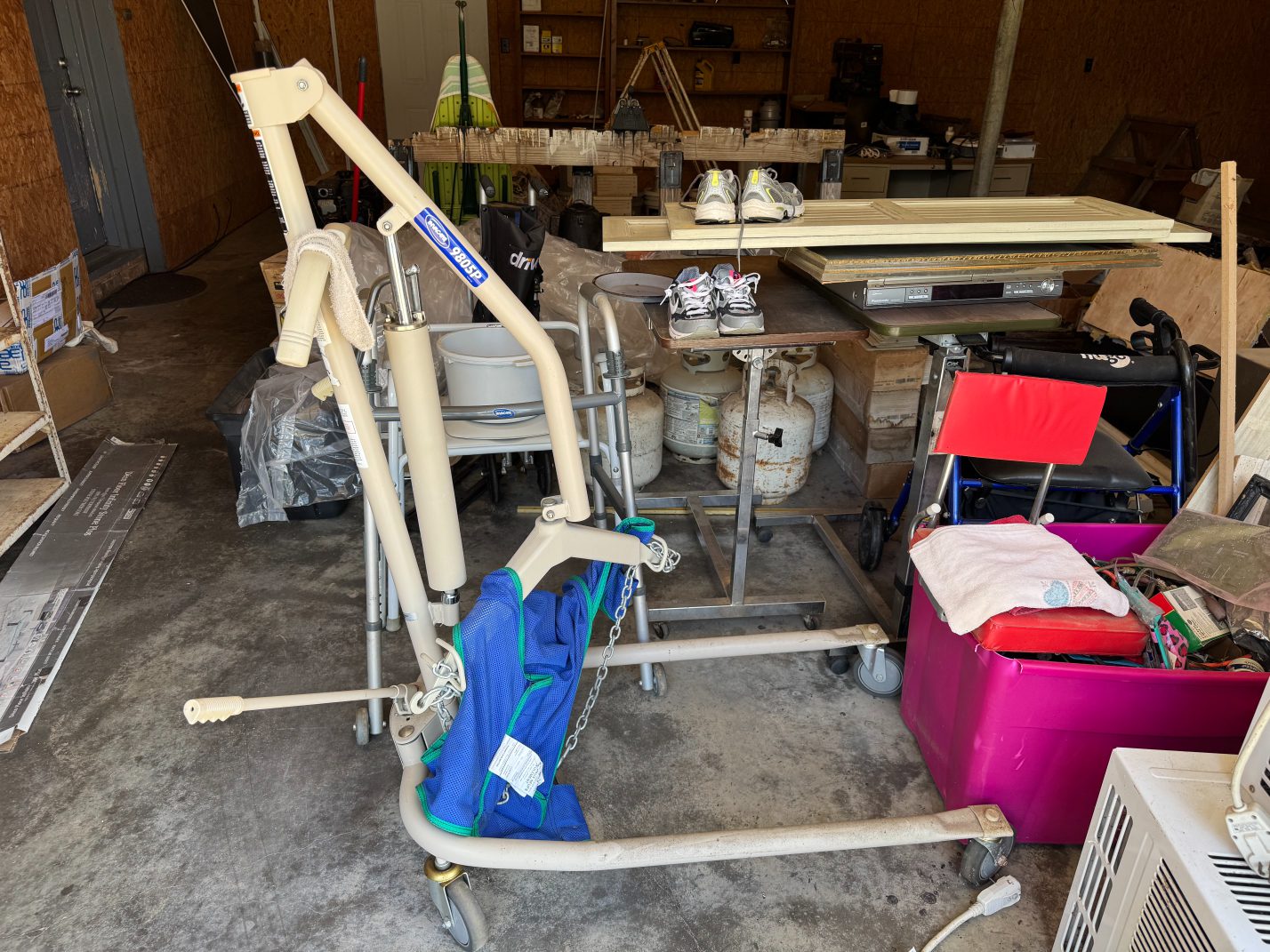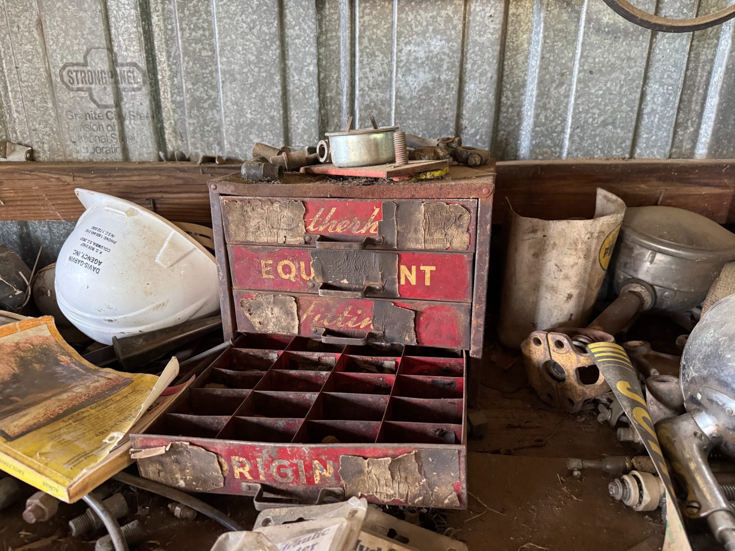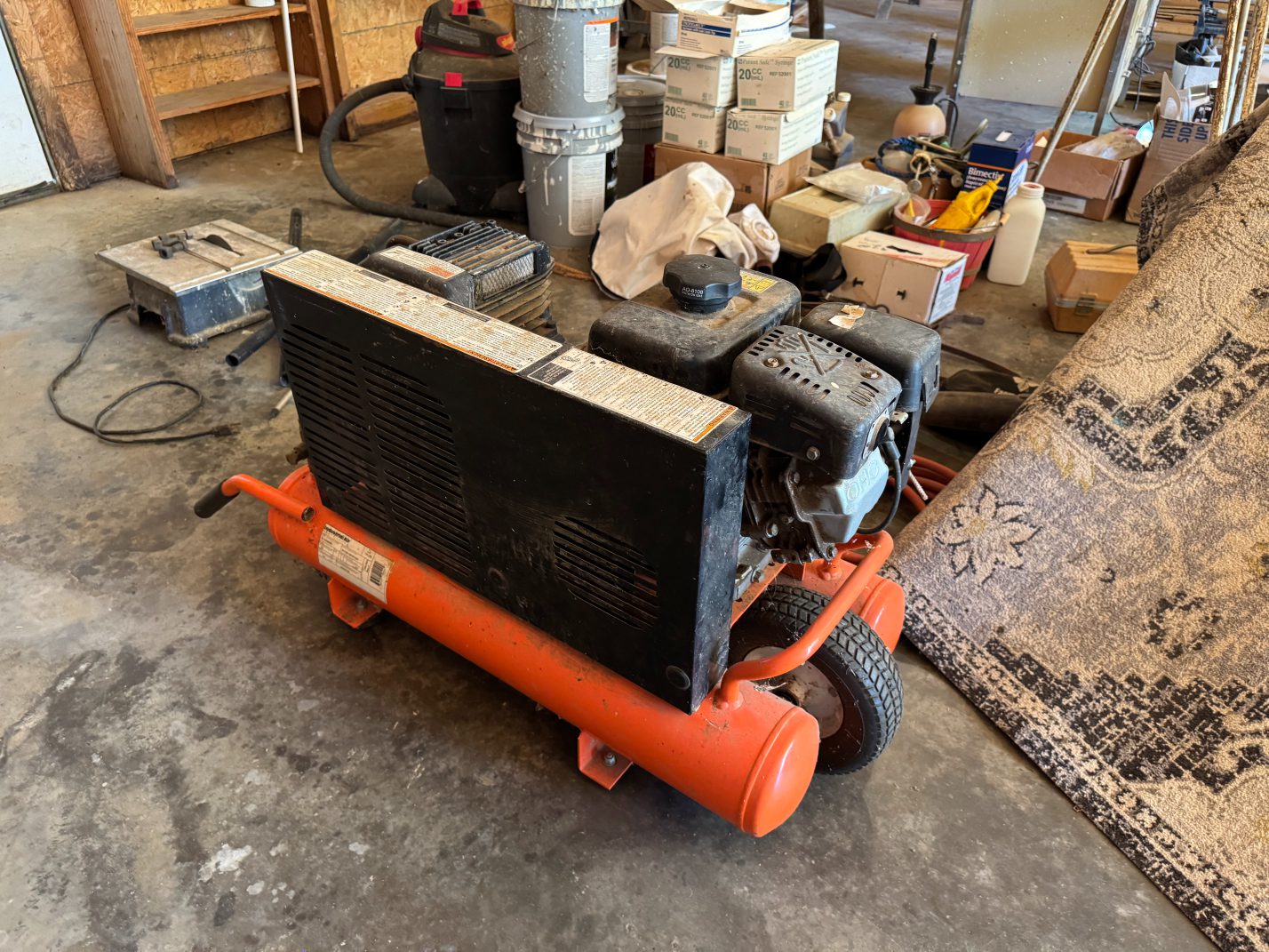 Tools/Shop Items: Post Hole Diggers – T-Posts (100s) – Wooden Chicken Coop – Electric Fencing – Barbed Wire – Wire Fencing – Chicken Wire – Tractor Tires – Tires – Wrought Iron Railing – Galvanized Tub – Misc. Wire – Misc. Cable – Metal Barrels – Plastic Barrels – Turnbuckles – Chicken House Fans – Baler Belts – Baler Chains – Metal Pipe – Square Metal Tubing – Window Air Units – Metal Shelving – Medical Supplies and Equipment – Propane Tanks – Saw Horses – Industrial Air Compressor – Air Hoses – Corder Grinders – Horse Tack – Tile Saw – Shop Vac – 10in. Radial Arm Saw – Hand Saws – Hack Saws – Pipe Cutter – Jack Stands – Hub Caps – Whiskey Barrel – Gas Cans – Kerosine Cans – Water Skis – Tarps – Can Hooks – Pitch Forks – Splitting Maul – Halogen Shop Lights – Faucets – Electrical Supplies – Saddles – Railroad Anvils – Grinder – Bolt Bins – Vise – Chain Hoists – Metal Plate – C-Clamps – Bottle Jacks – Cutting-Torch Hoses – Drain Pipe – Creepers – Chop Saws – Transmission Jack – Wheels – Ryobi Chop Saw – Boomers – Socket Set – Tackle Box – Metal Roll Around Cart – Log Chains – Welding Helmets – Come-A-Longs – Air Tank – Hydraulic Hoses – Hydraulic Fittings – Shop Fan – Floor Jacks – Car Parts – ¾ Socket Set – Ratchet Straps – Transmission – Lincoln Weldanpower 225 G7 – Craftsman Table Saw – Radiators – Air Hammer Drill – Acetylene Bottles