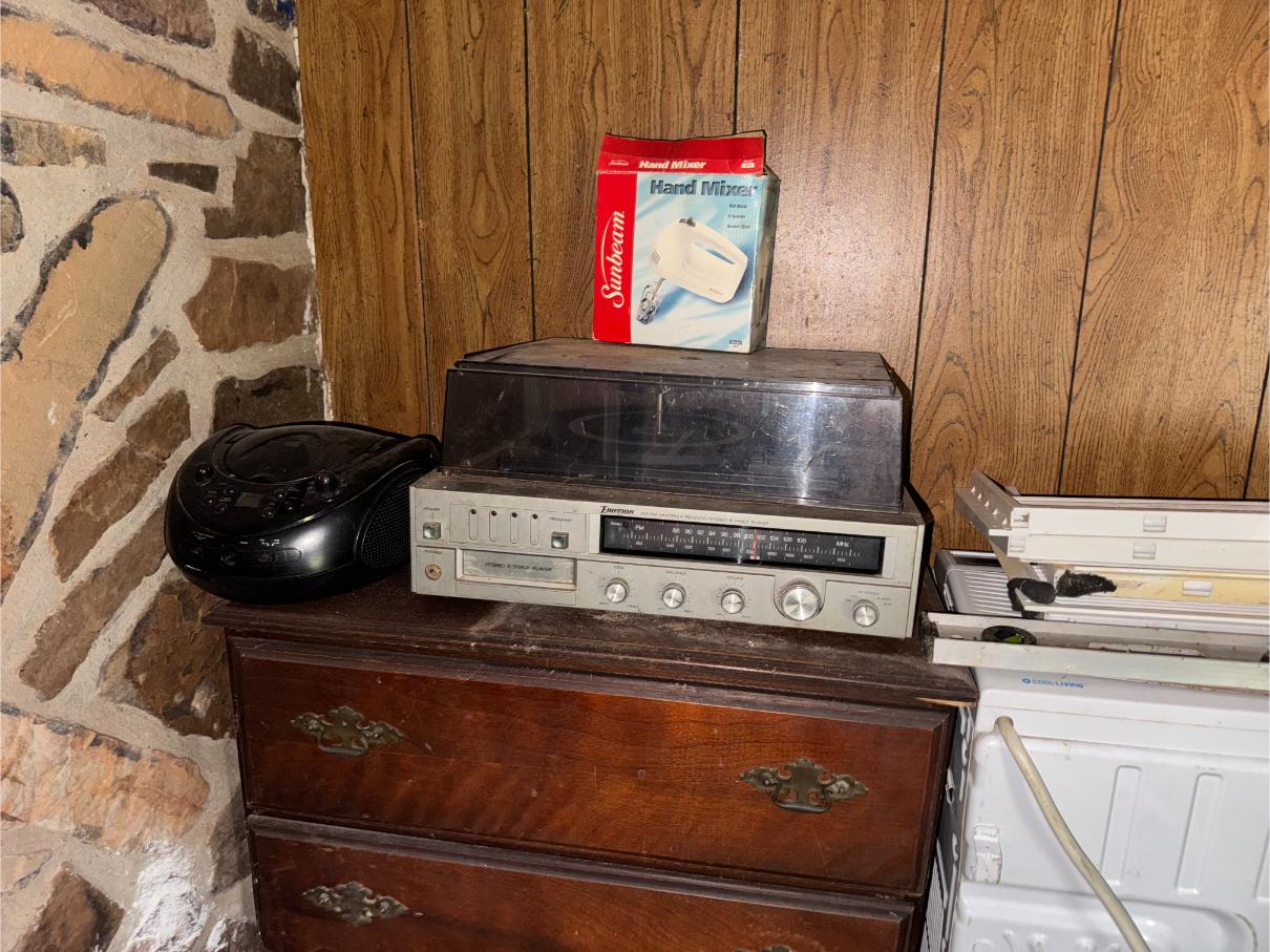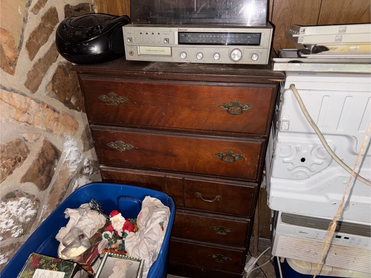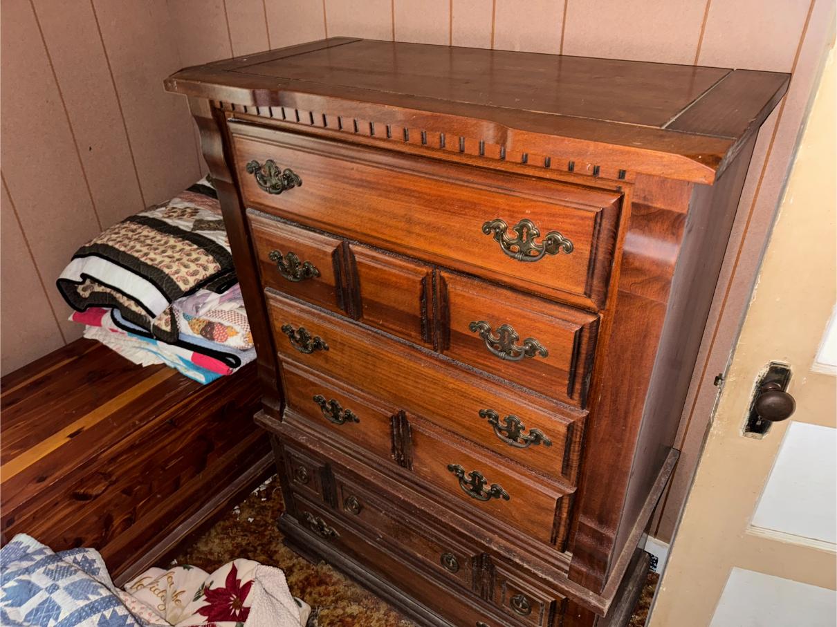 Household Items: Recliners – China Hutch – Roll Around Kitchen Cart (Chopping Block Top) – Bunk Beds – Dresser – Chests – Cedar Chest – TV’s – Frigidaire Refrigerator – GE Refrigerator – Frigidaire Gas Cook Stove – Microwave – Console Stereo – Emerson Stereo – Barometer – Quilts – Fans – Heaters – Glider Swing – Picnic Table