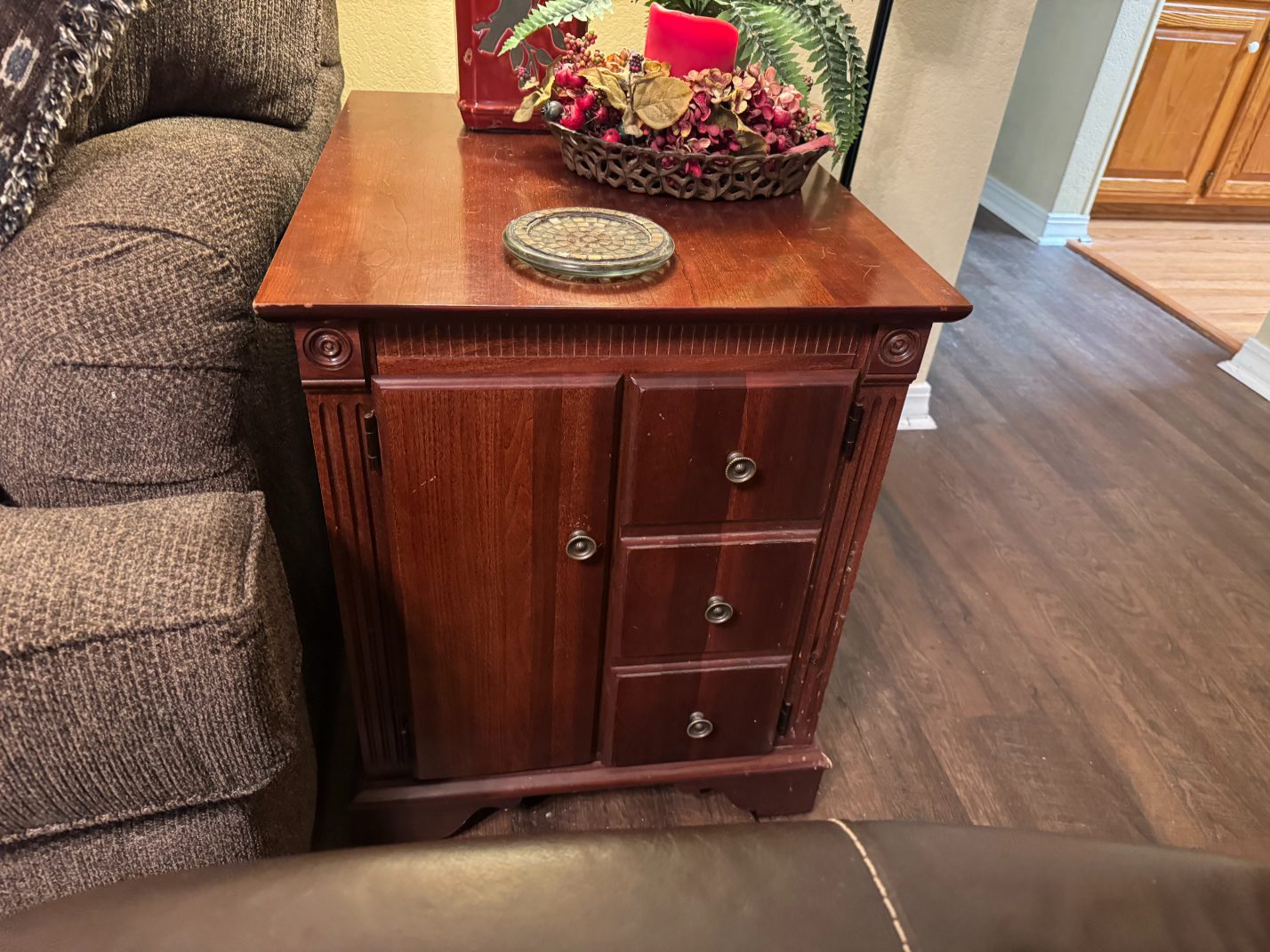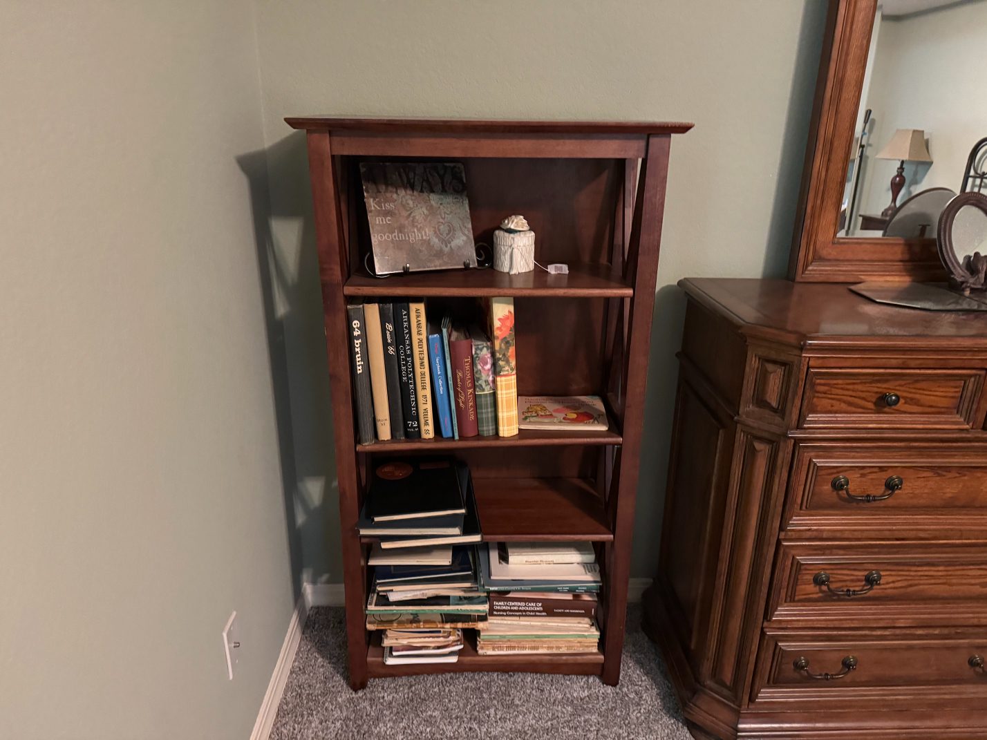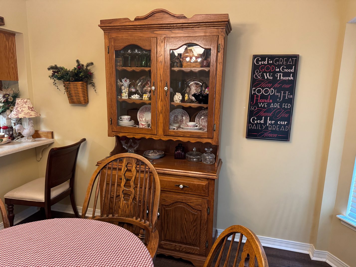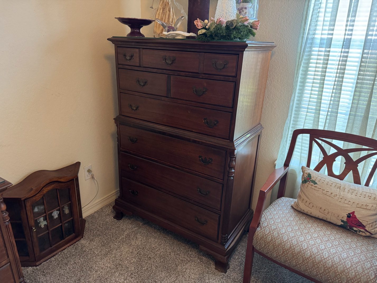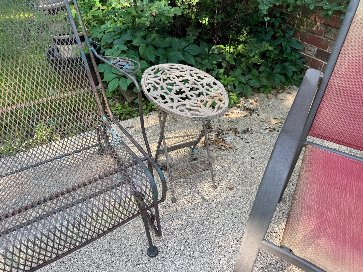 Furniture: Leather Double Recliner – Sofa – Leather Ottoman – Leather Accent Chairs – Library Table – End Tables – TV Console – Kitchen Table W/ (6) Chairs – China Hutch – Entertainment Center – Lawyer’s Bookcase – Bookshelf – Chest of Drawers – Curio Cabinet – Antique Vanity – Day Bed – King-Size Bed – Dresser – Wrought Iron Patio Furniture