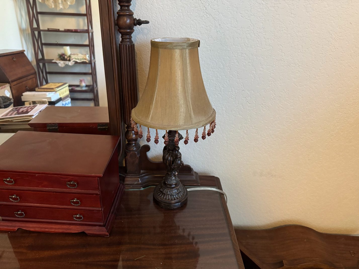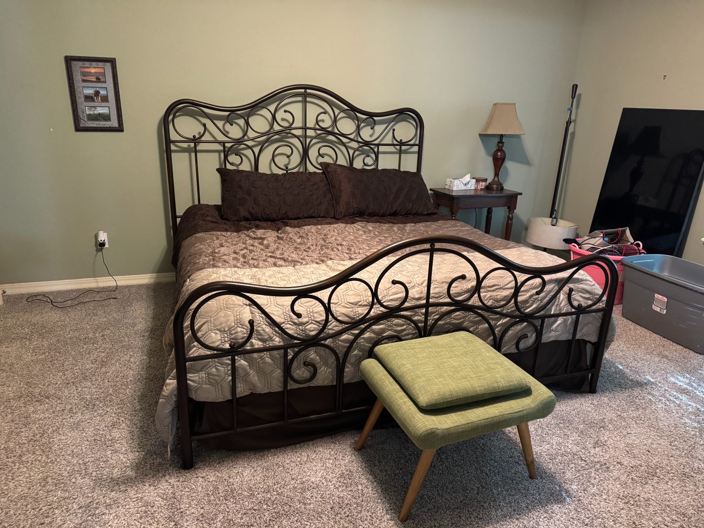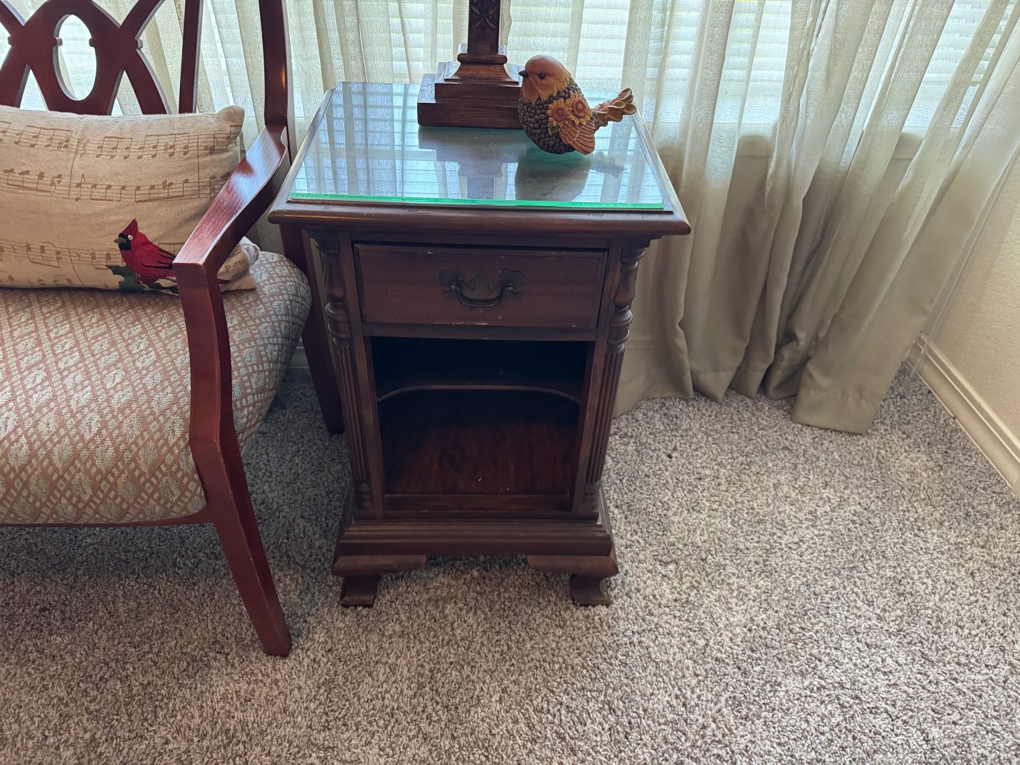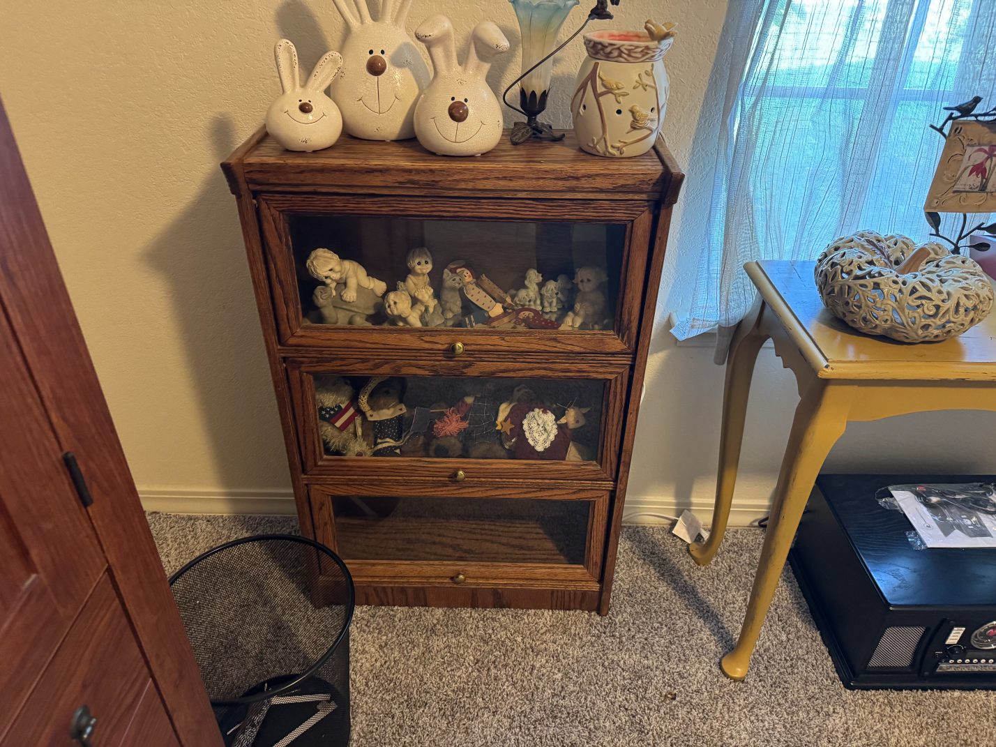 Furniture: Leather Double Recliner – Sofa – Leather Ottoman – Leather Accent Chairs – Library Table – End Tables – TV Console – Kitchen Table W/ (6) Chairs – China Hutch – Entertainment Center – Lawyer’s Bookcase – Bookshelf – Chest of Drawers – Curio Cabinet – Antique Vanity – Day Bed – King-Size Bed – Dresser – Wrought Iron Patio Furniture