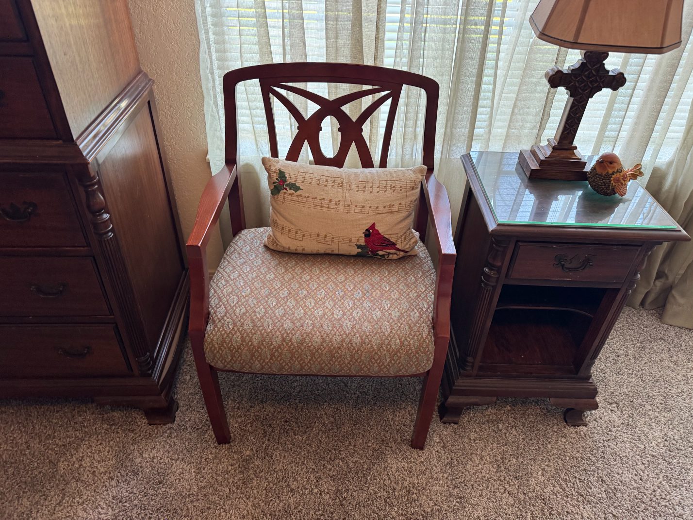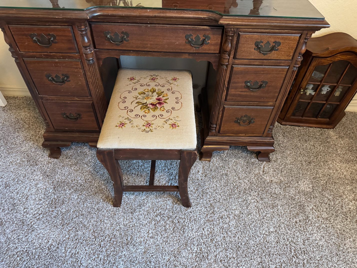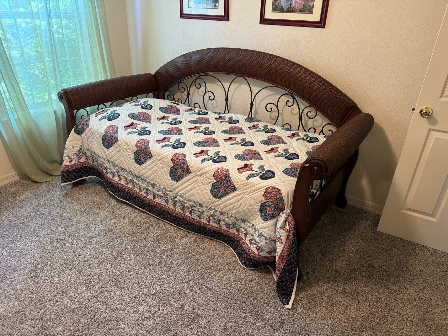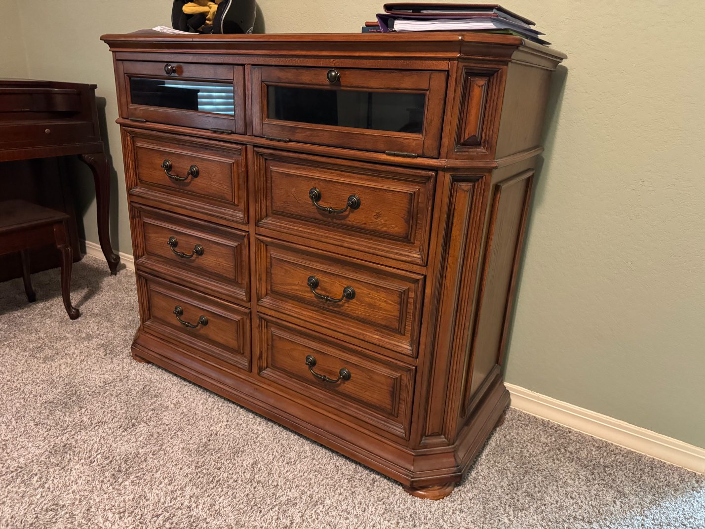 Furniture: Leather Double Recliner – Sofa – Leather Ottoman – Leather Accent Chairs – Library Table – End Tables – TV Console – Kitchen Table W/ (6) Chairs – China Hutch – Entertainment Center – Lawyer’s Bookcase – Bookshelf – Chest of Drawers – Curio Cabinet – Antique Vanity – Day Bed – King-Size Bed – Dresser – Wrought Iron Patio Furniture