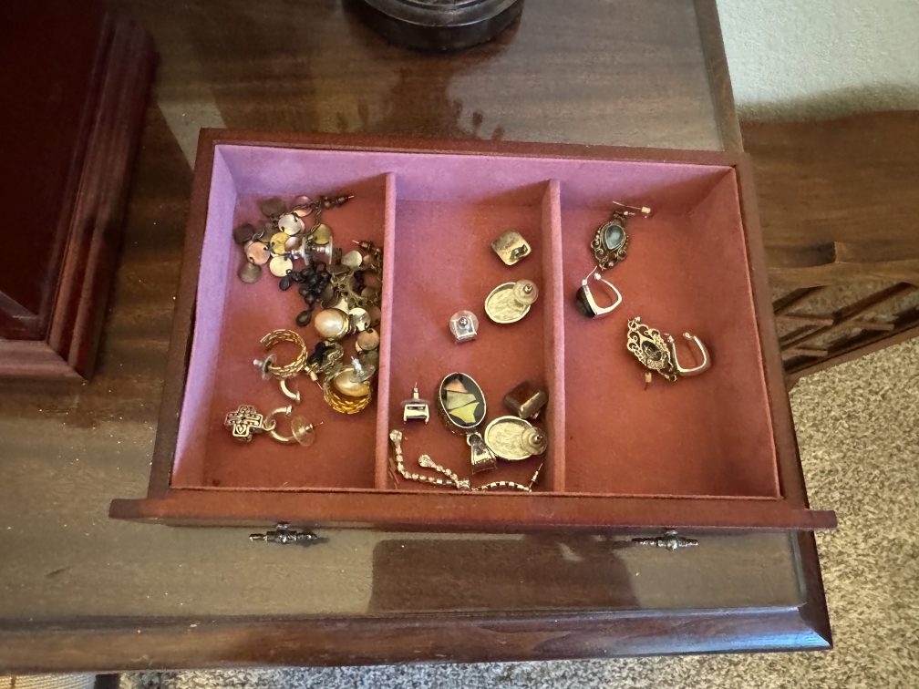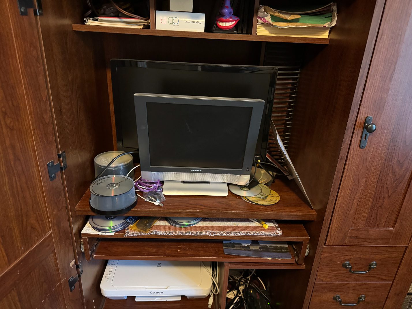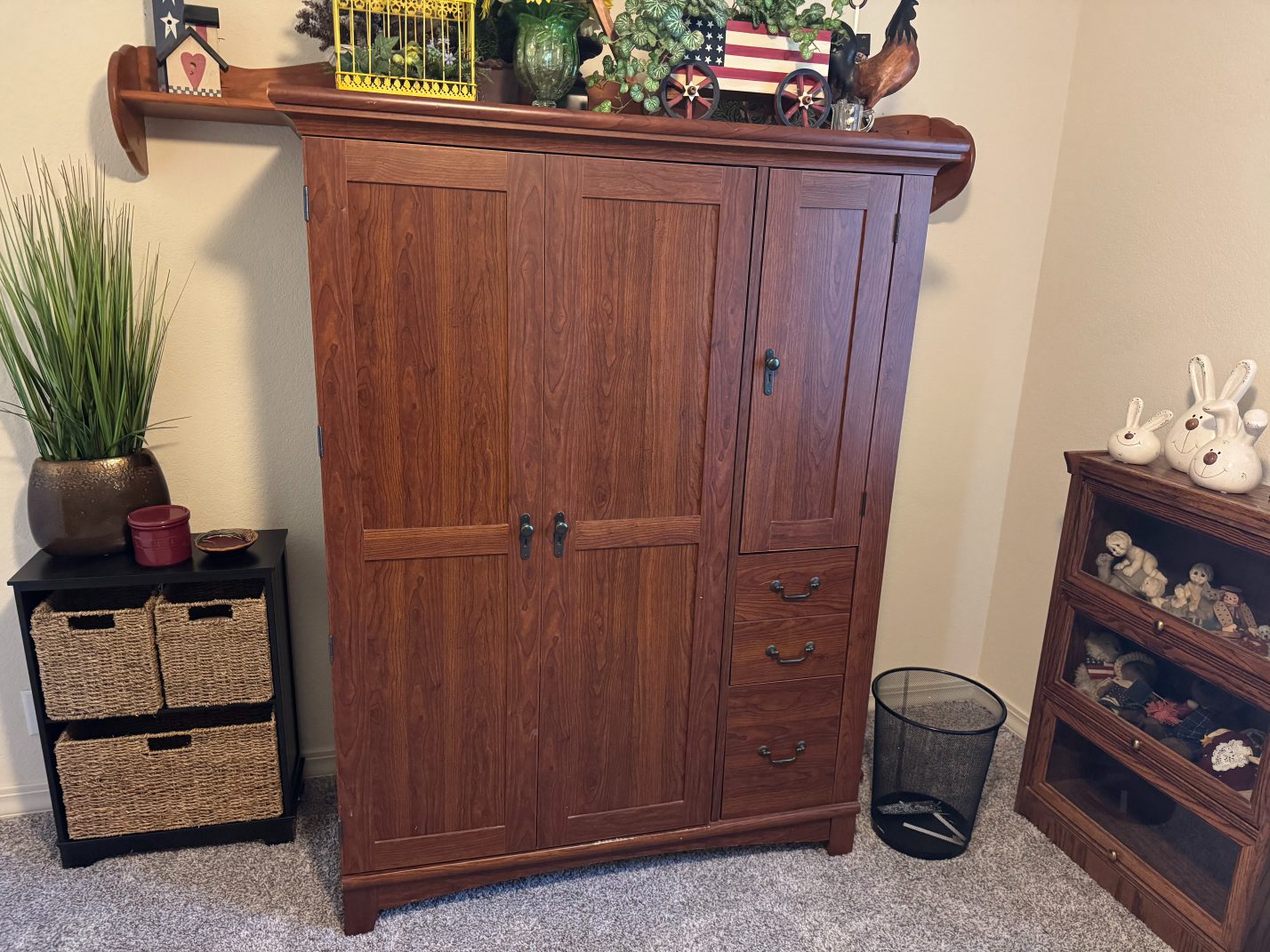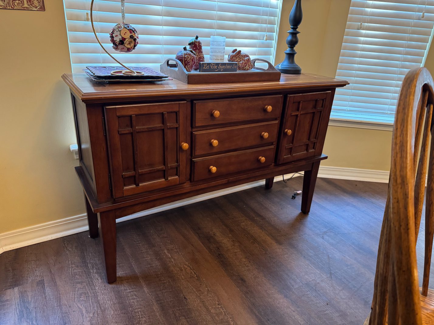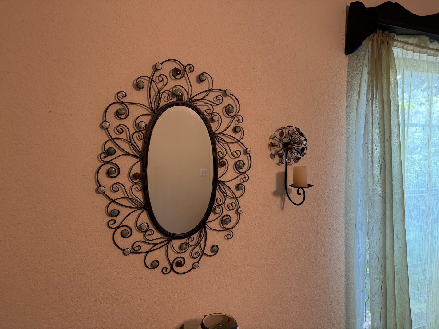 Furniture: Leather Double Recliner – Sofa – Leather Ottoman – Leather Accent Chairs – Library Table – End Tables – TV Console – Kitchen Table W/ (6) Chairs – China Hutch – Entertainment Center – Lawyer’s Bookcase – Bookshelf – Chest of Drawers – Curio Cabinet – Antique Vanity – Day Bed – King-Size Bed – Dresser – Wrought Iron Patio Furniture