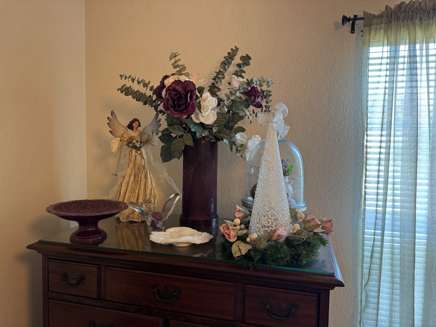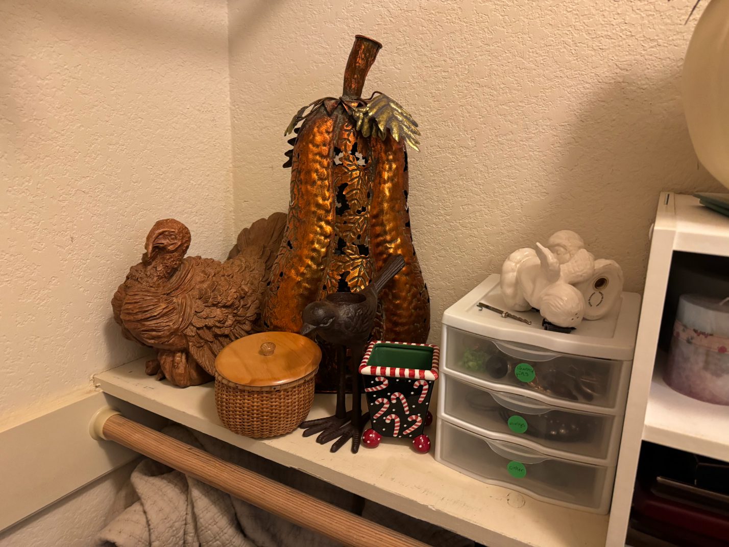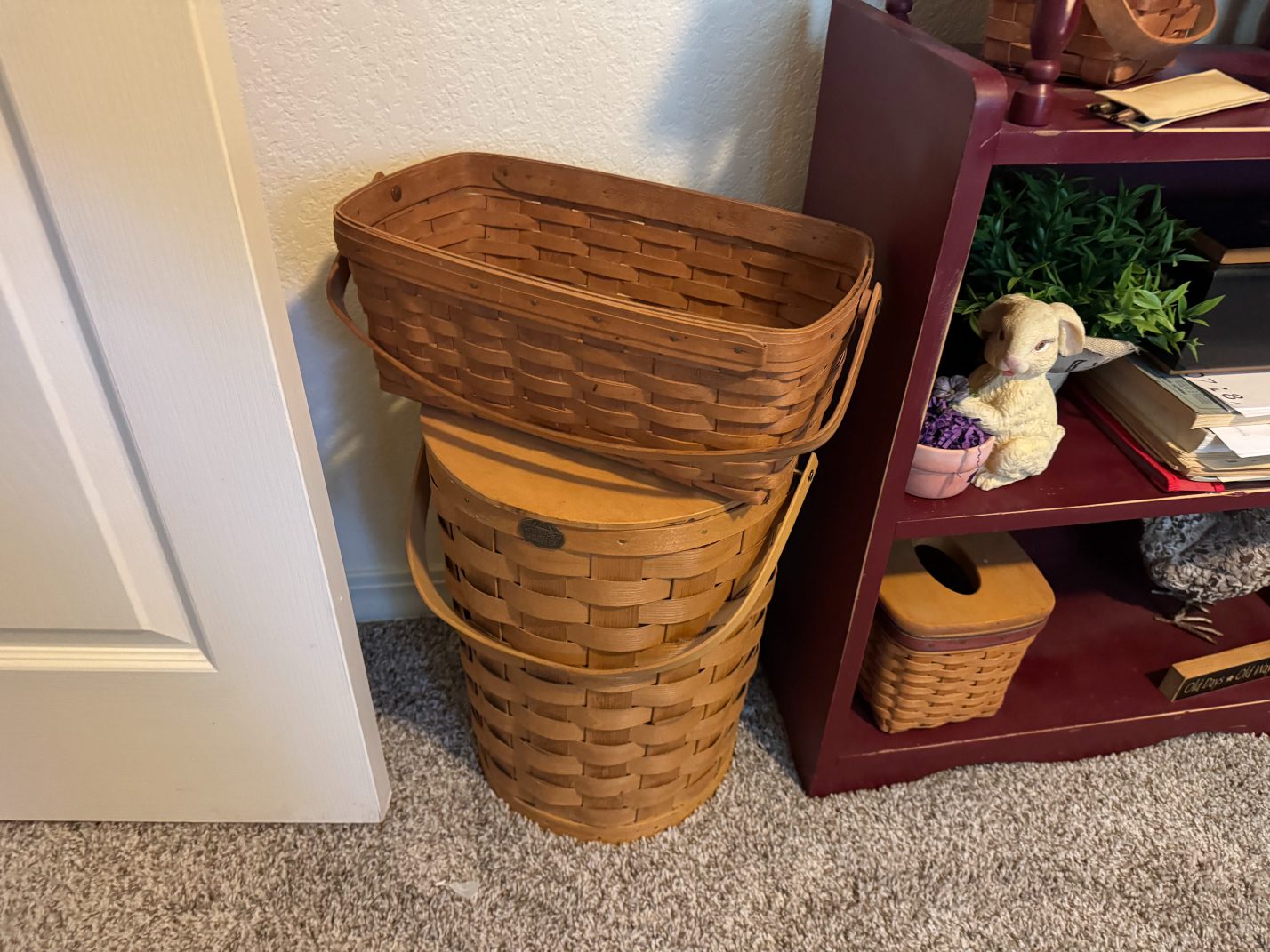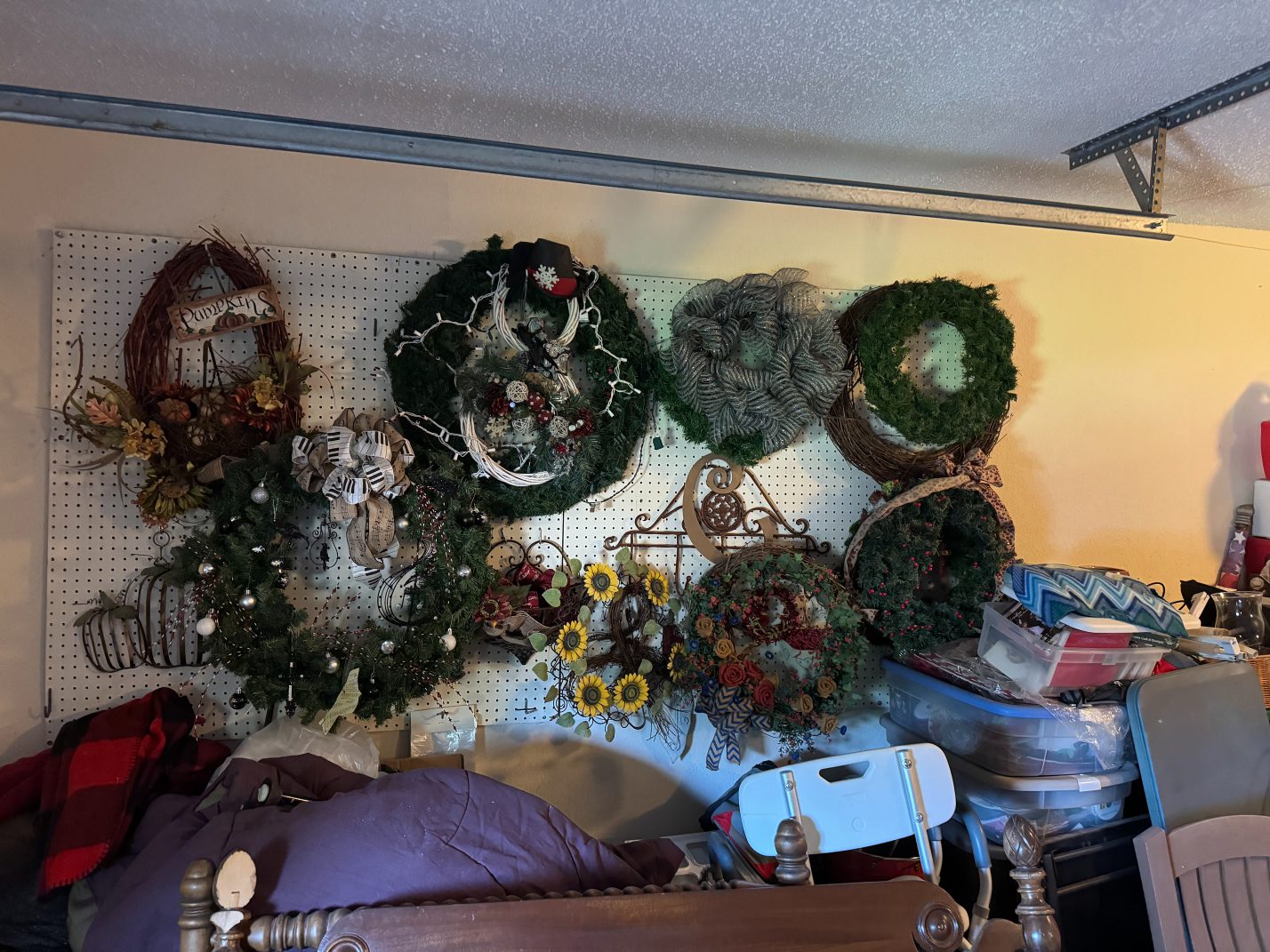 Household Items: Vases – Plant Stand – Lamps – Panasonic Surround Sound System – Longaberger Baskets – Pitchers – Glassware – Kitchen Utensils – Spoon Collection – Crystal Candy Dishes – Frankoma Glassware – Cookbooks – Kitchenaid Mixer – Egg Scale – Pyrex Glassware – Radio/Record Player – Canon Printer – Computer Speakers – Wall Decor – Price Guide Books – Paintings – Pictures – Jewelry (Rings, Pins, Necklaces, Etc.) – Christmas Decorations – Mirrors – Kenmore Sewing Machine – Sewing Boxes – Fall Decorations – Luggage – Plastic Organizers – Coolers – Crock – Christmas Wreaths – Roomba Vacuum – Flower Pots – Wind Chimes – Grill – Bird Bath