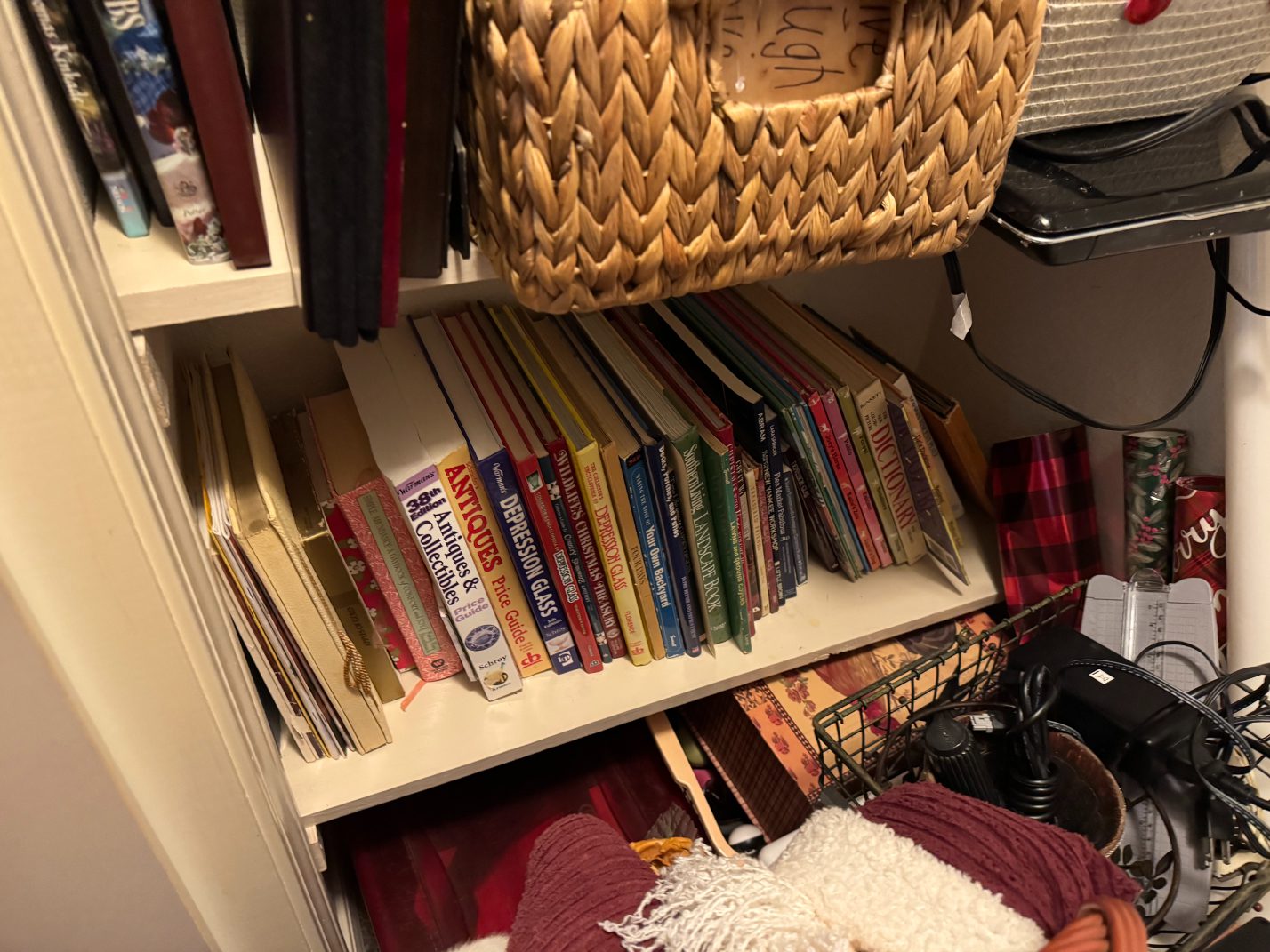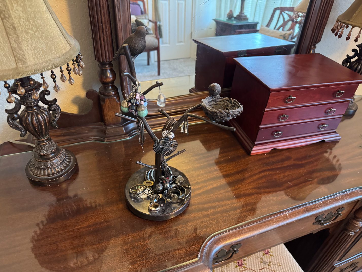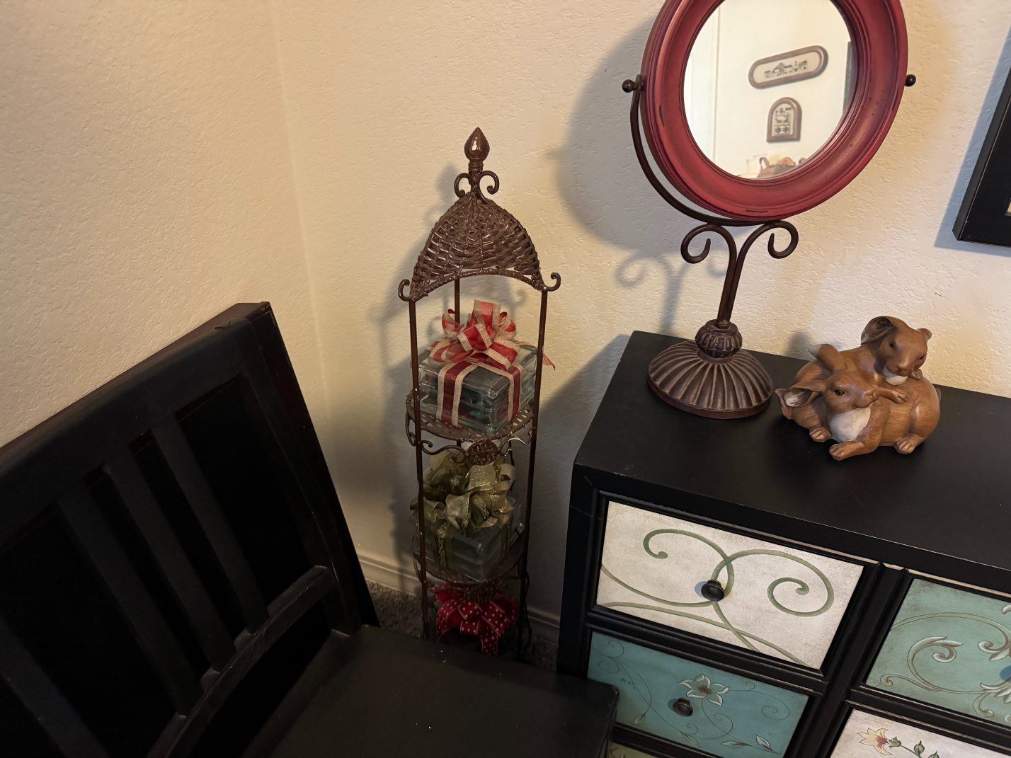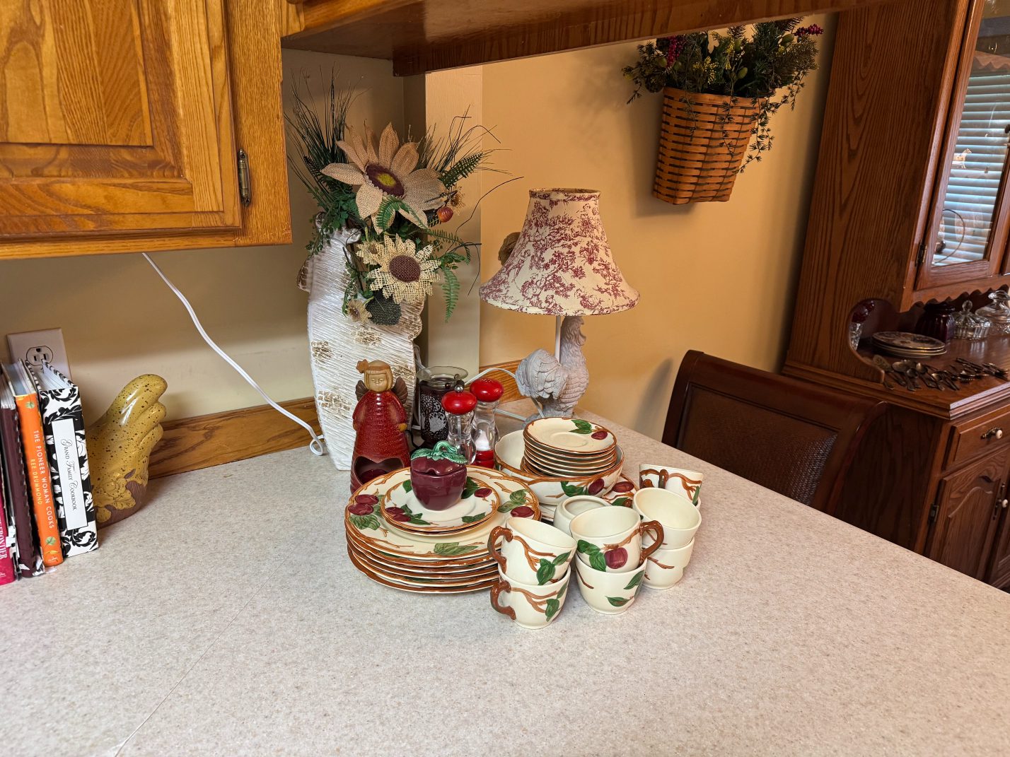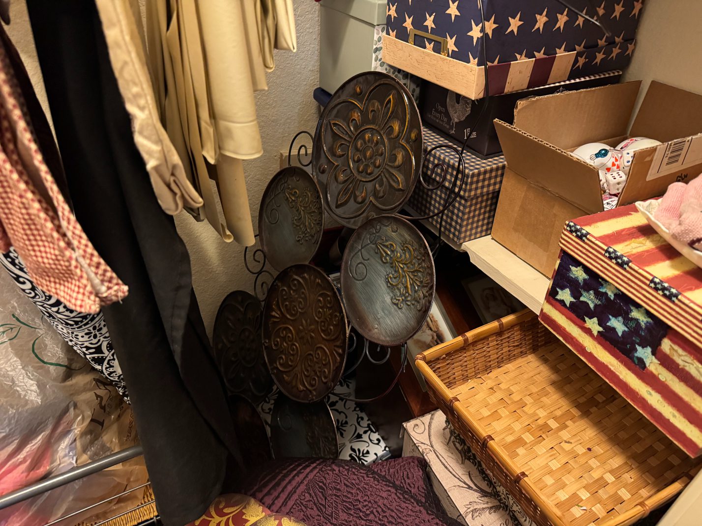 Household Items: Vases – Plant Stand – Lamps – Panasonic Surround Sound System – Longaberger Baskets – Pitchers – Glassware – Kitchen Utensils – Spoon Collection – Crystal Candy Dishes – Frankoma Glassware – Cookbooks – Kitchenaid Mixer – Egg Scale – Pyrex Glassware – Radio/Record Player – Canon Printer – Computer Speakers – Wall Decor – Price Guide Books – Paintings – Pictures – Jewelry (Rings, Pins, Necklaces, Etc.) – Christmas Decorations – Mirrors – Kenmore Sewing Machine – Sewing Boxes – Fall Decorations – Luggage – Plastic Organizers – Coolers – Crock – Christmas Wreaths – Roomba Vacuum – Flower Pots – Wind Chimes – Grill – Bird Bath