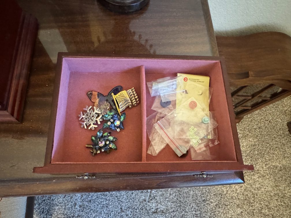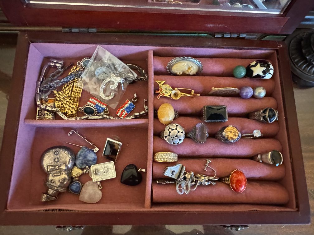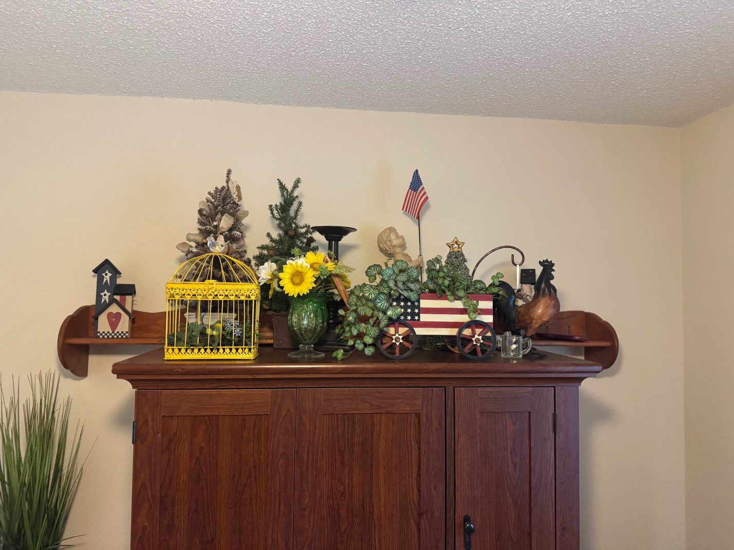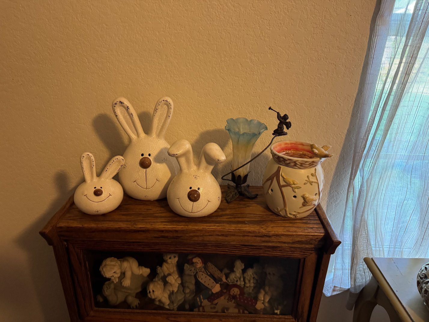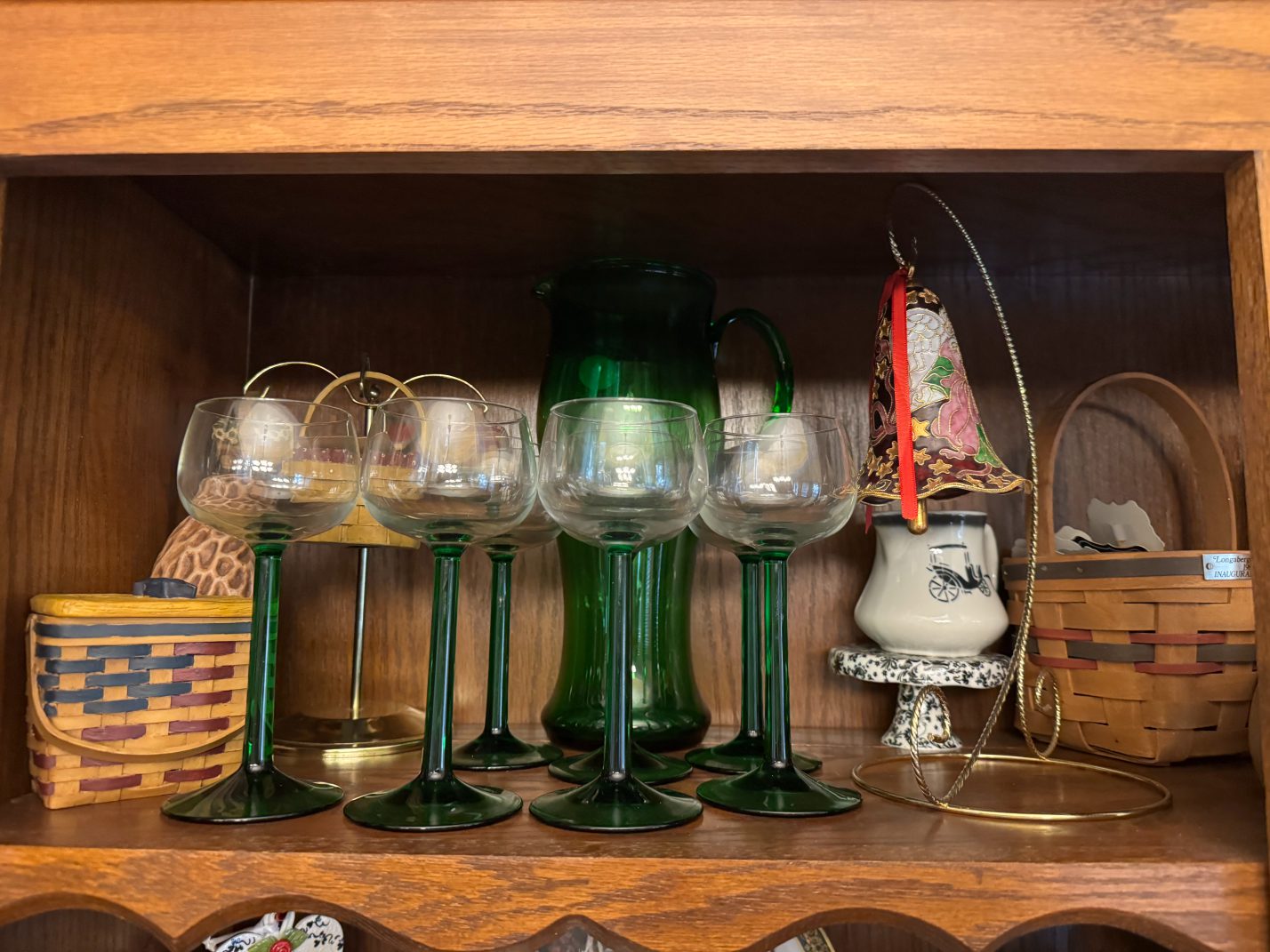 Household Items: Vases – Plant Stand – Lamps – Panasonic Surround Sound System – Longaberger Baskets – Pitchers – Glassware – Kitchen Utensils – Spoon Collection – Crystal Candy Dishes – Frankoma Glassware – Cookbooks – Kitchenaid Mixer – Egg Scale – Pyrex Glassware – Radio/Record Player – Canon Printer – Computer Speakers – Wall Decor – Price Guide Books – Paintings – Pictures – Jewelry (Rings, Pins, Necklaces, Etc.) – Christmas Decorations – Mirrors – Kenmore Sewing Machine – Sewing Boxes – Fall Decorations – Luggage – Plastic Organizers – Coolers – Crock – Christmas Wreaths – Roomba Vacuum – Flower Pots – Wind Chimes – Grill – Bird Bath
