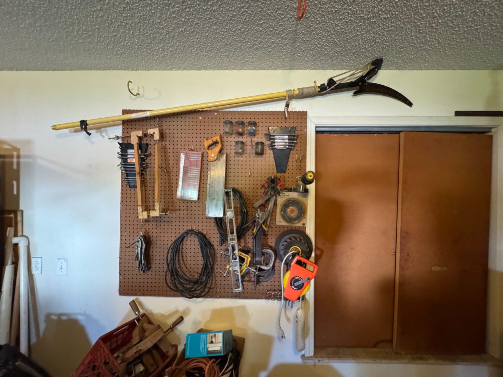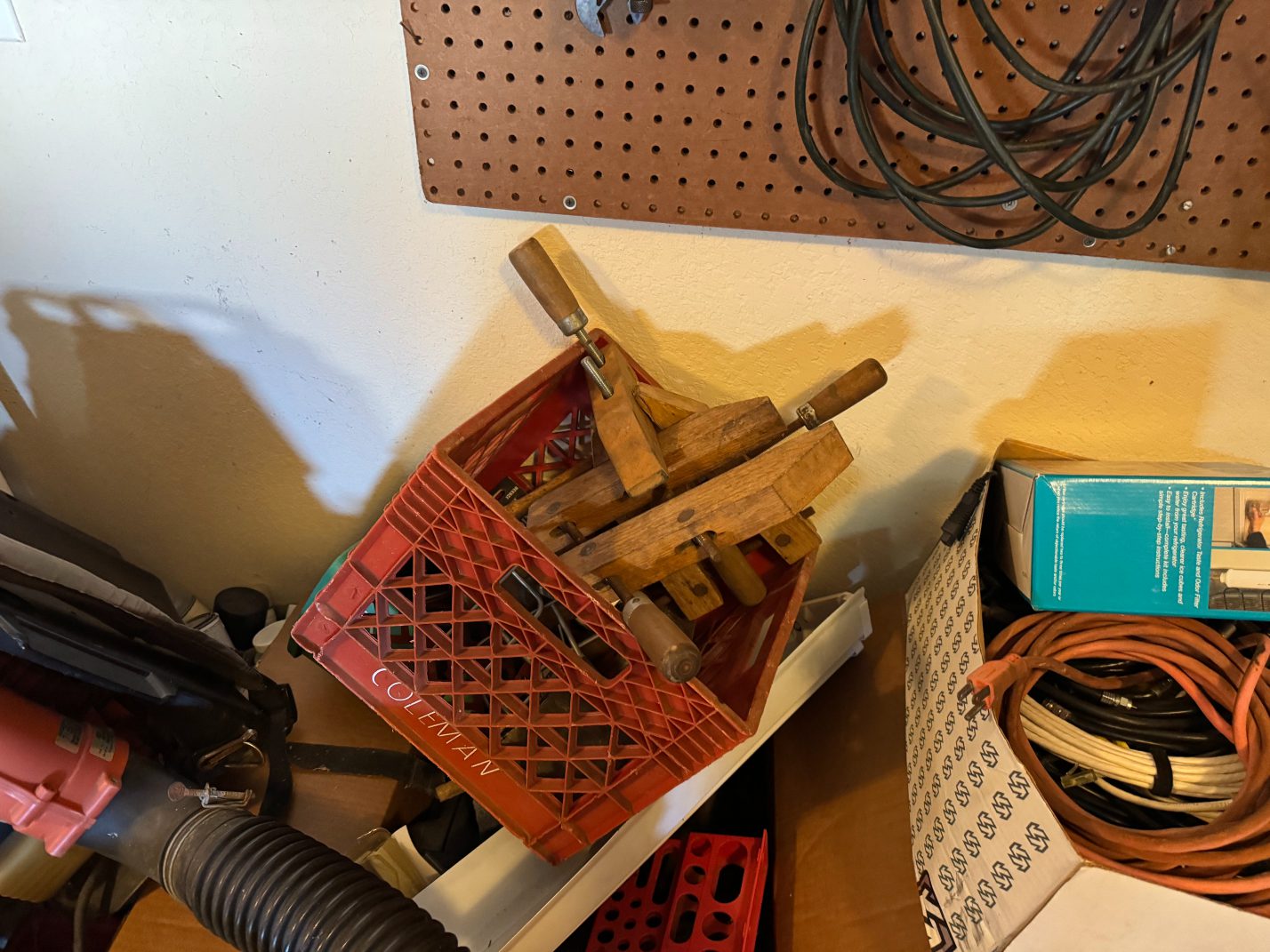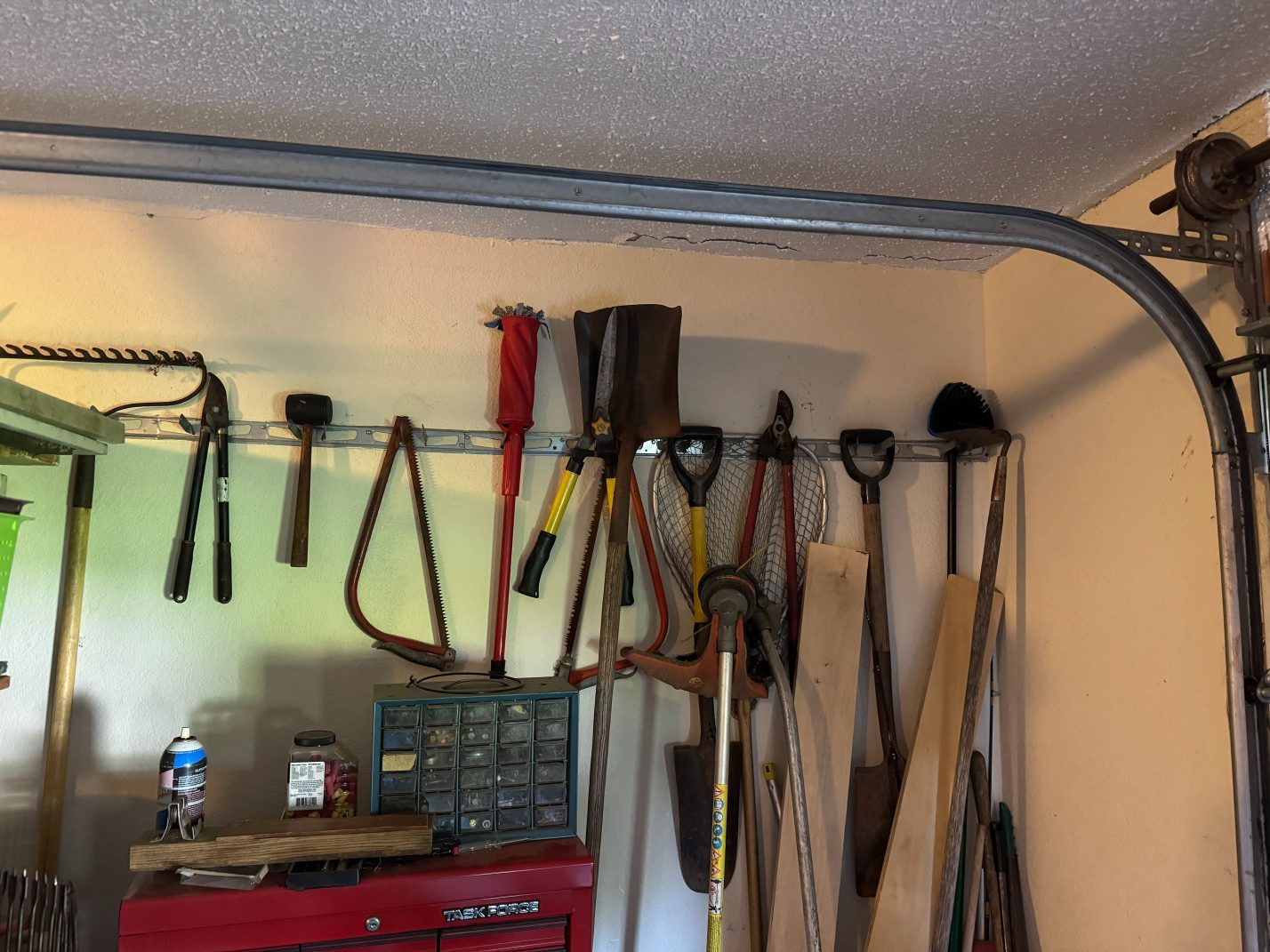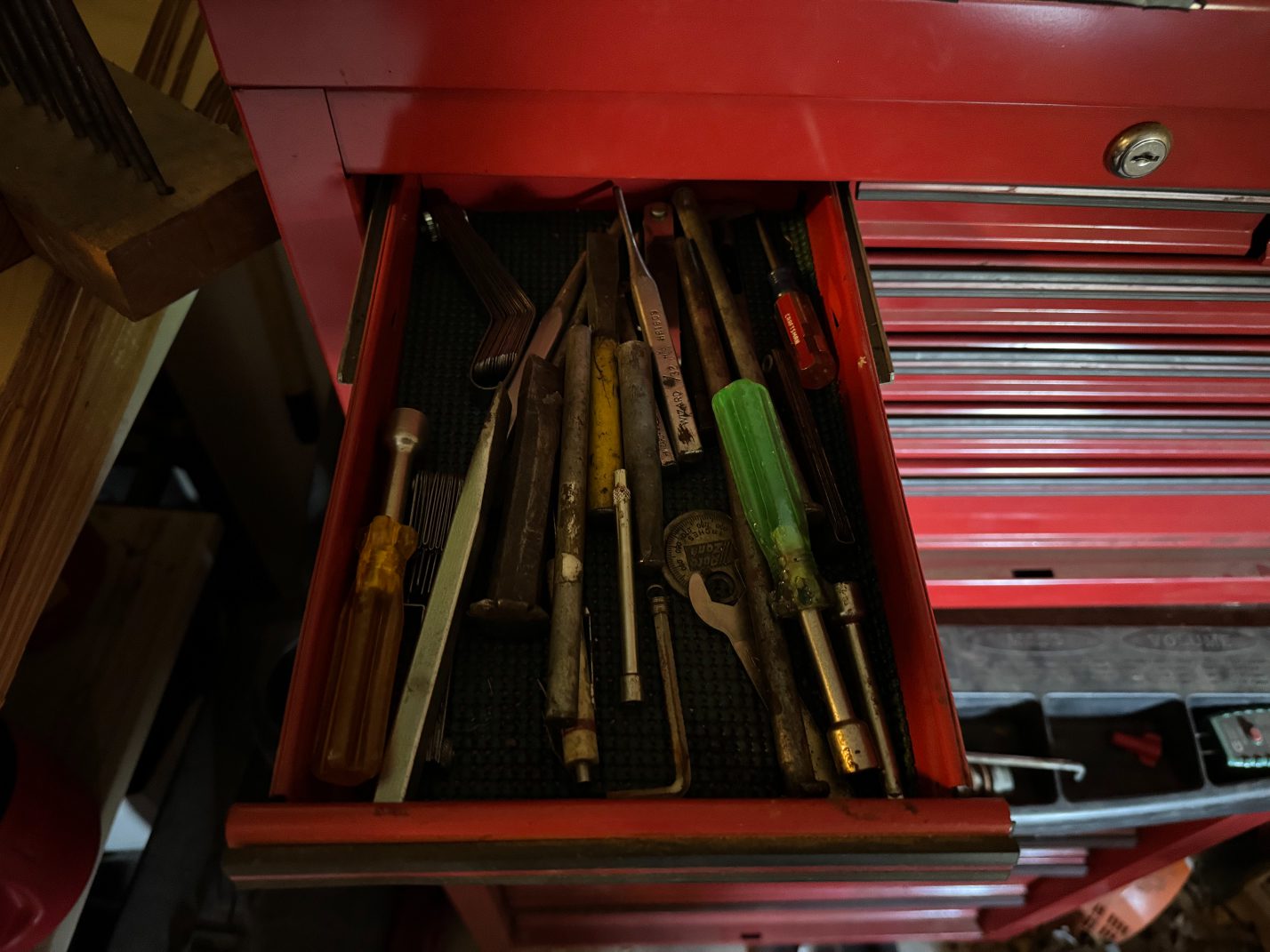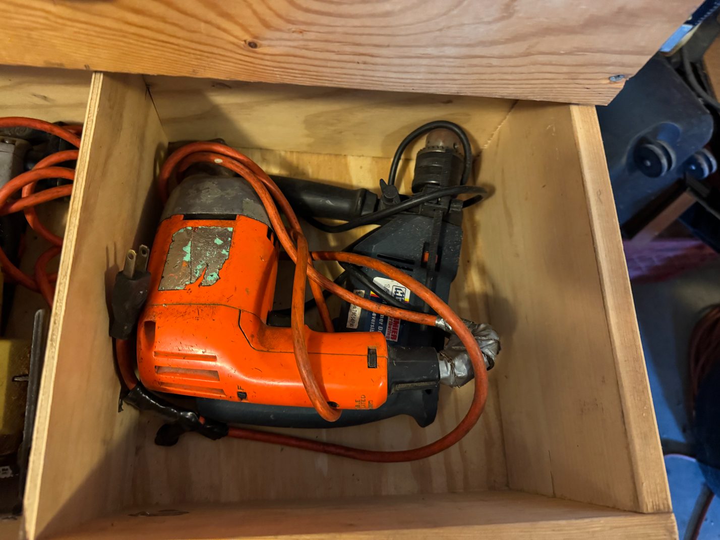 Tools/Shop Items: Sears Bench Grinder on Stand – Sears/Craftsman Scroll Saw – Craftsman Band Saw – Craftsman Table Saw – Task Force Rollaround Toolbox – Weed Eaters – Bolt Bins – Hack Saws – Loppers – Shovels – Rakes – Mallets – Electrical Wire – Clamps – Extension Cords – Battery Charger – Nails – Screws – Nuts – Bolts – Come-Along – Coleman Lantern – Limb Saw – Levels – Wrenches – Backpack Blower – Shop Vac – Furniture Clamps – Saw Horses – Water Hoses – Ladders – Creeper – Sanders – Air Hoses – Corded Drills – Jig Saws – Pocket Knives – Craftsman Wrenches – Ratchets – Sockets – Tin Snips – Drill Bits