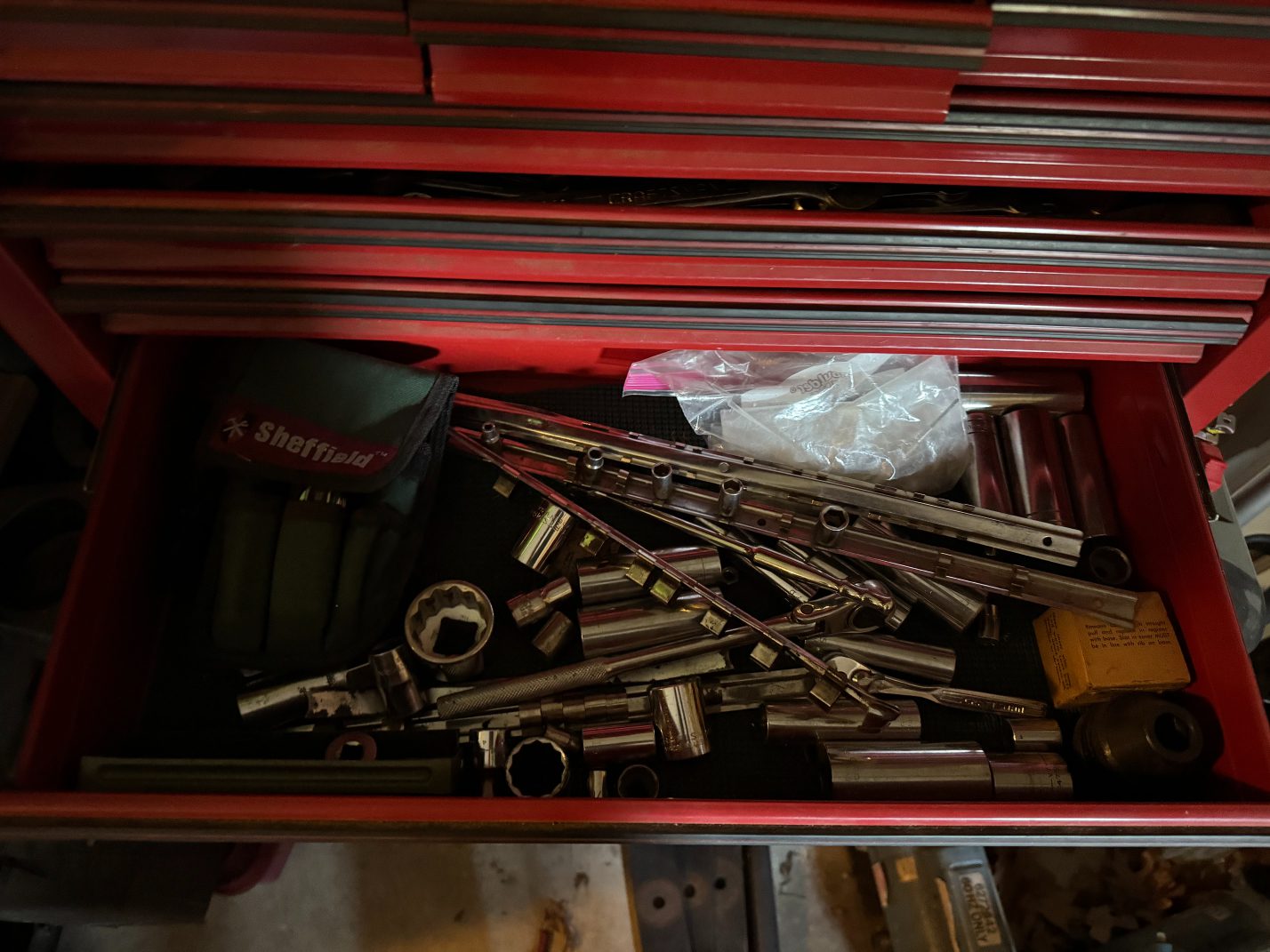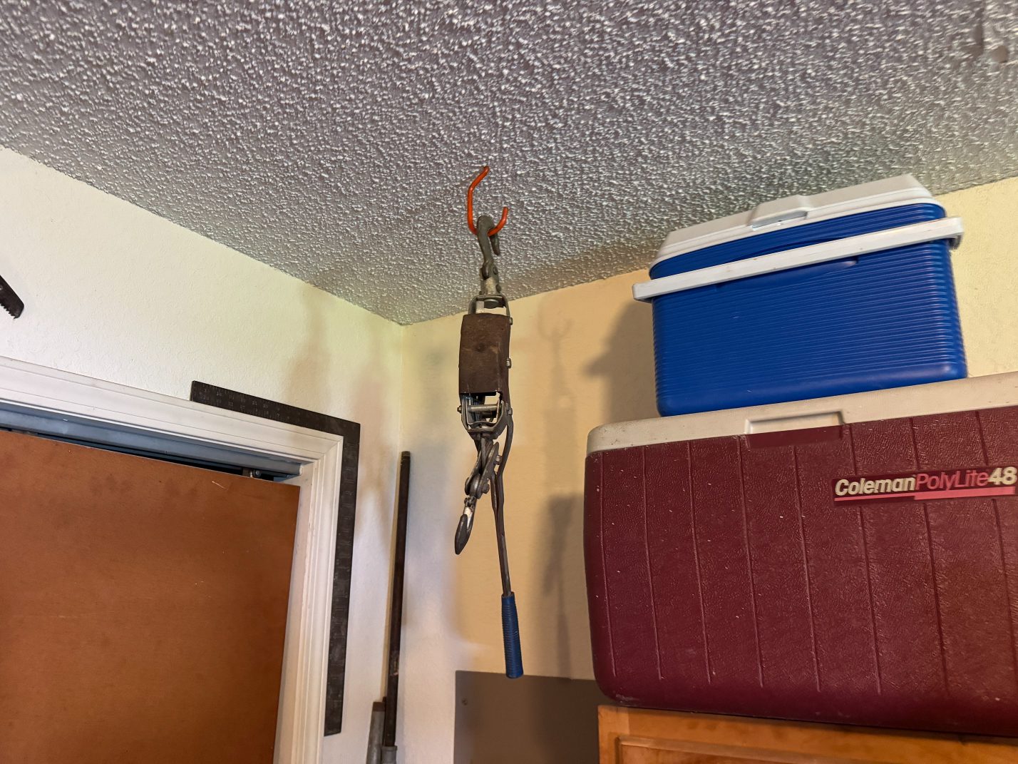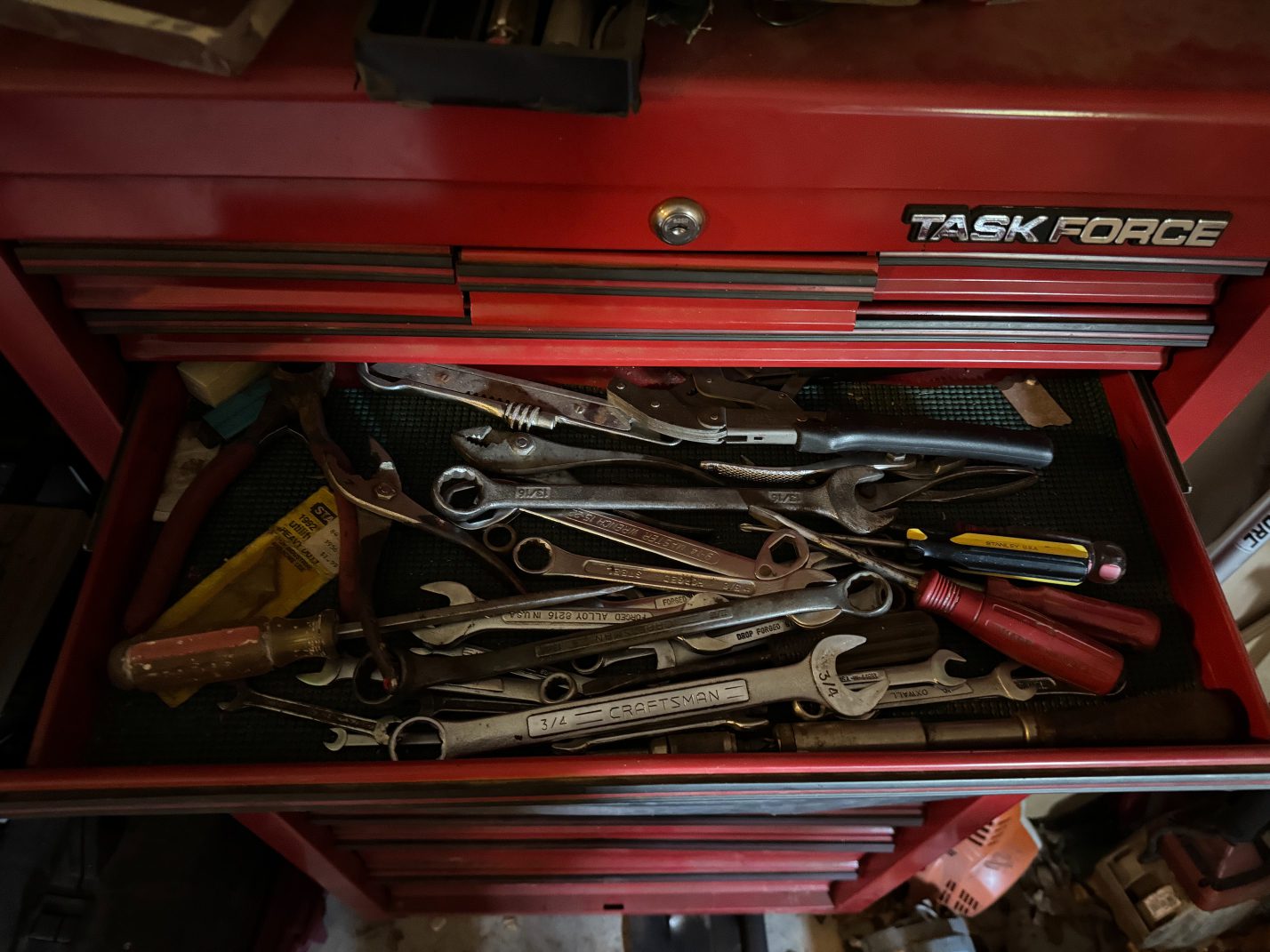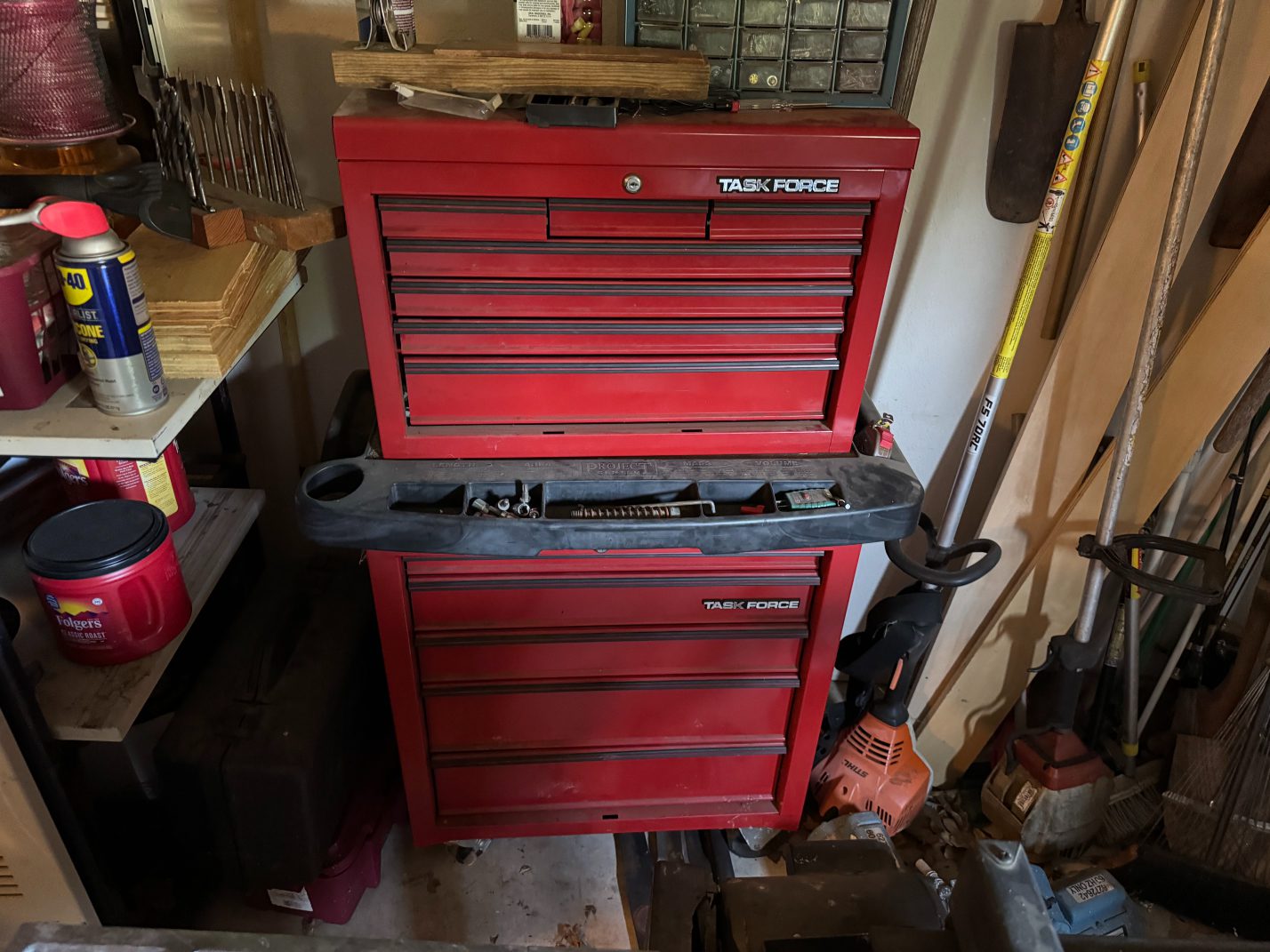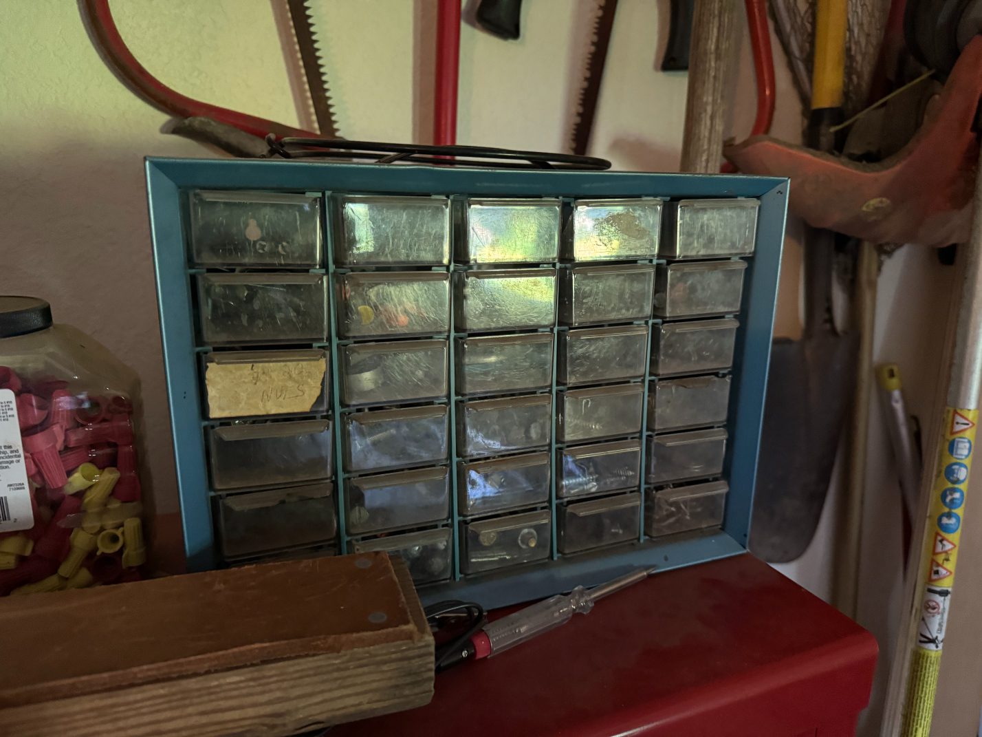 Tools/Shop Items: Sears Bench Grinder on Stand – Sears/Craftsman Scroll Saw – Craftsman Band Saw – Craftsman Table Saw – Task Force Rollaround Toolbox – Weed Eaters – Bolt Bins – Hack Saws – Loppers – Shovels – Rakes – Mallets – Electrical Wire – Clamps – Extension Cords – Battery Charger – Nails – Screws – Nuts – Bolts – Come-Along – Coleman Lantern – Limb Saw – Levels – Wrenches – Backpack Blower – Shop Vac – Furniture Clamps – Saw Horses – Water Hoses – Ladders – Creeper – Sanders – Air Hoses – Corded Drills – Jig Saws – Pocket Knives – Craftsman Wrenches – Ratchets – Sockets – Tin Snips – Drill Bits