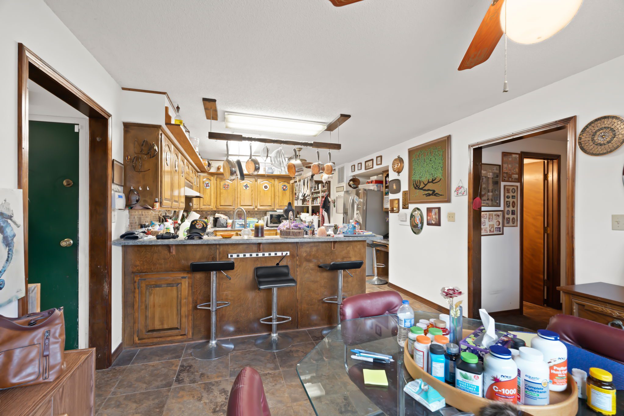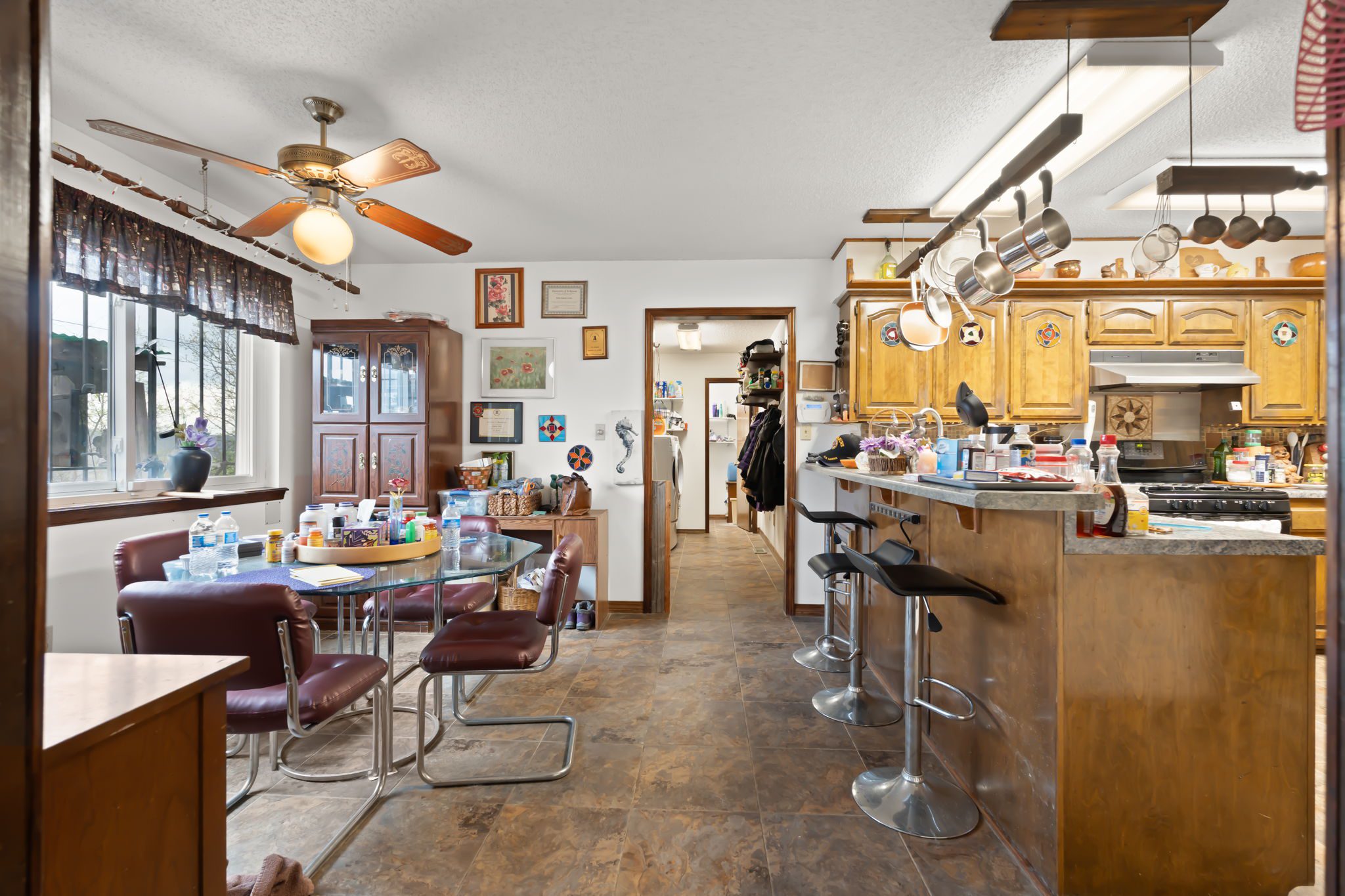 This 2,476 sq. ft. home sits on 7.87 acres and features 3 bedrooms, 2 full bathrooms, and 2 half bathrooms. A dedicated office provides a great workspace, and the layout offers plenty of room for everyday living. The property includes a 65’x25′ red iron shop building with utilities—ideal for storage, work, or hobby use. Located in a private setting with an incredible view, this property combines space, functionality, and privacy just a short drive from town.