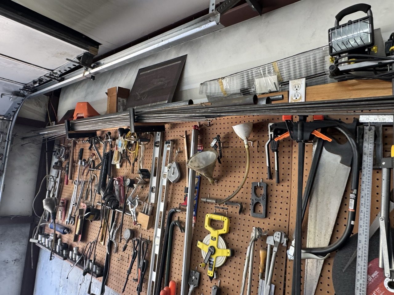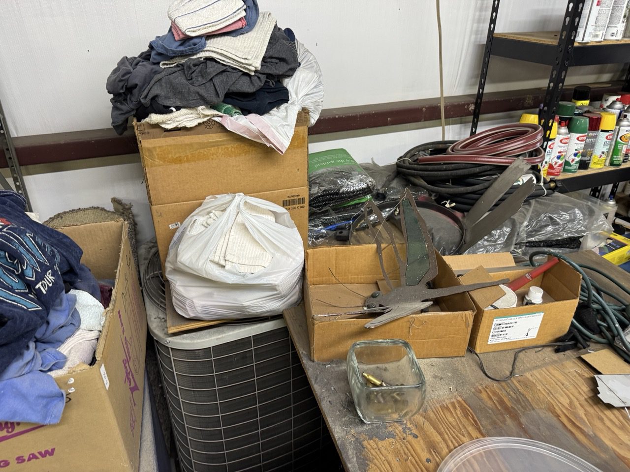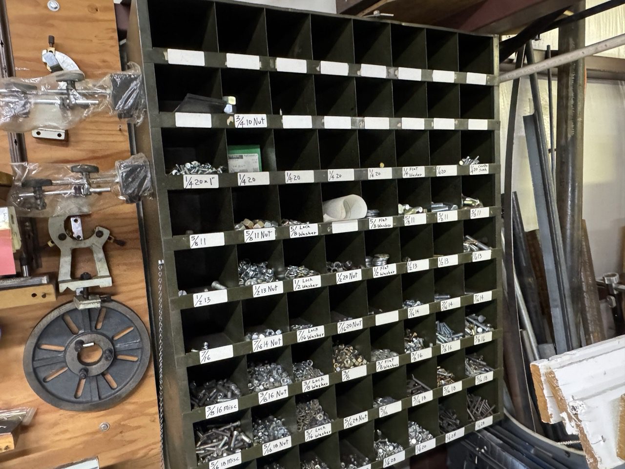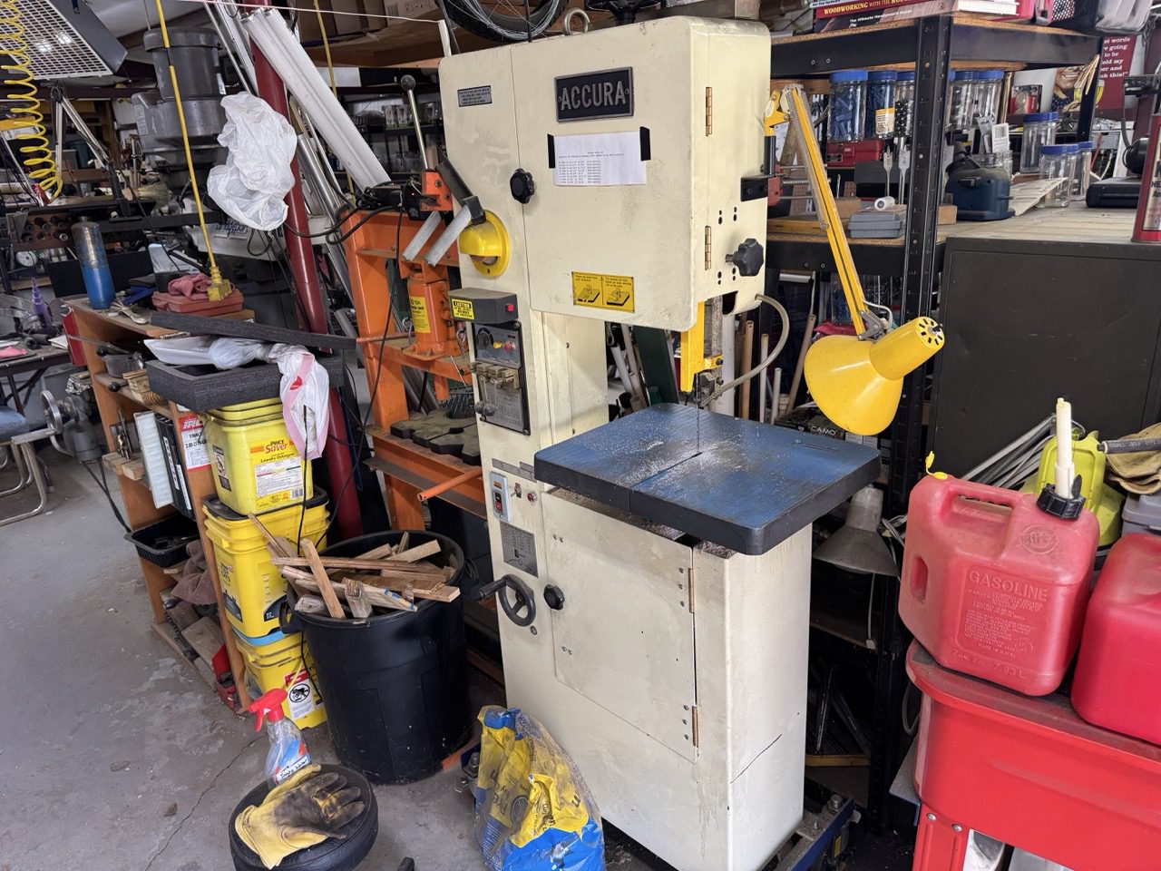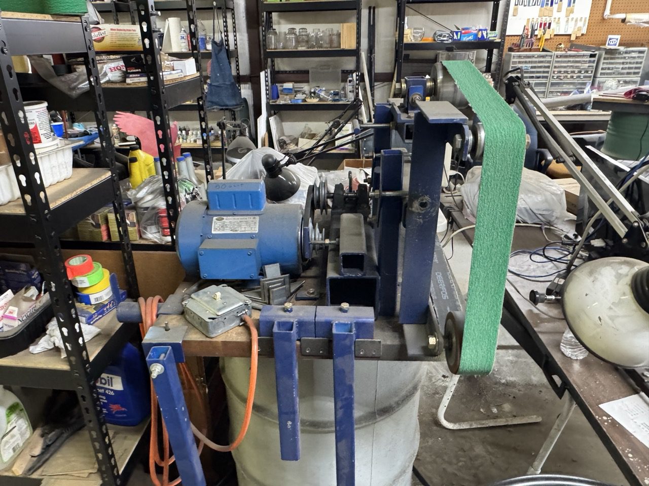 Shop & Outdoor Items: Bench Lathe – Sand Blasting Cabinet – Accura Band Saw – Hydraulic Shop Press – Parts Washer – Drill Press – Belt Sander – Delta Miter Saw – Bridgeport Milling Machine – Tire Changer – Grinder on Stand – Black and Decker Grinder – Makita Power Tools – Craftsman Hand Tools – Craftsman Wrenches – Craftsman Sockets – S-K Ratchets – Proto Sockets – Pittsburgh Ratcheting Wrenches – Crescent Wrenches – Nut Drivers – Hammers – Chisels – Files – Vise Grips – Channel Locks – Pliers – Drill Bits – Gear Pullers – Tin Snips – Clamps – Saw Blades – High Lift Jack – Floor Jacks – Saw Horses – Creepers – Air Tanks – Air Hoses – Cable – Extension Cords – Step Ladder – 8 ft. Aluminum Ladder – Extension Ladder – Log Chains – Ramps – Bolt Bins – Screws – Bolts – Nails – Metal Shelving – Metal Pipe – Angle Iron – Rebar – Lumber – Plywood – Metal Barrels – Flower Pots – Metal Targets – Metal Trailer – Pipe Stands – Roll Around Carts – Live Traps – Fence Stretcher – Yard Tools – Limb Saw – Electric Pressure Washer – Seeder – Spray Paint – Transmission Fluid – Power Steering Fluid – Gas Cans – Mason Jars – Coleman Lanterns – Survival Food