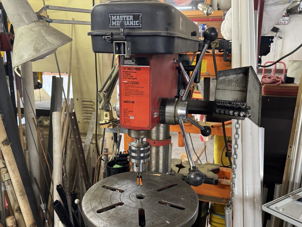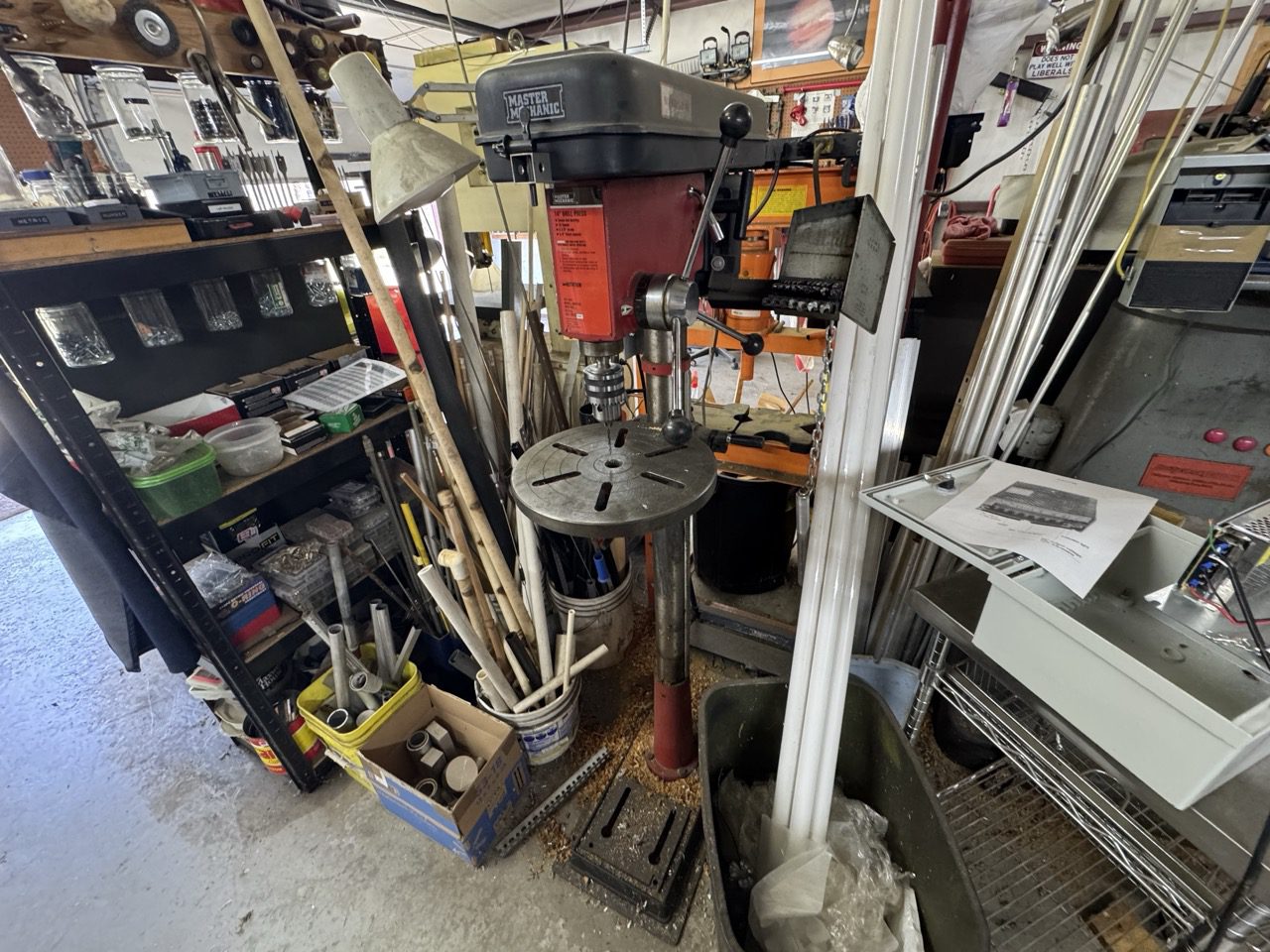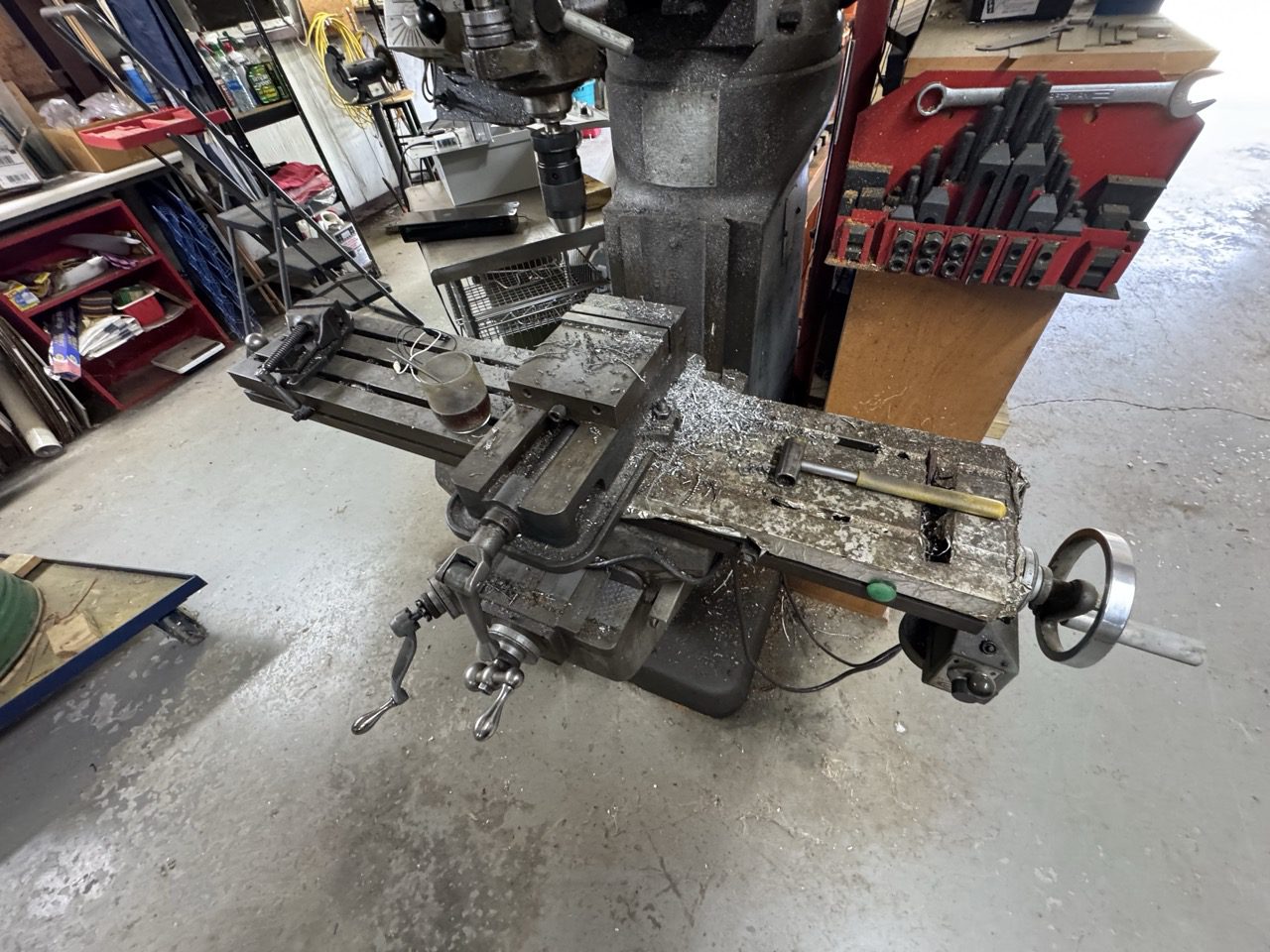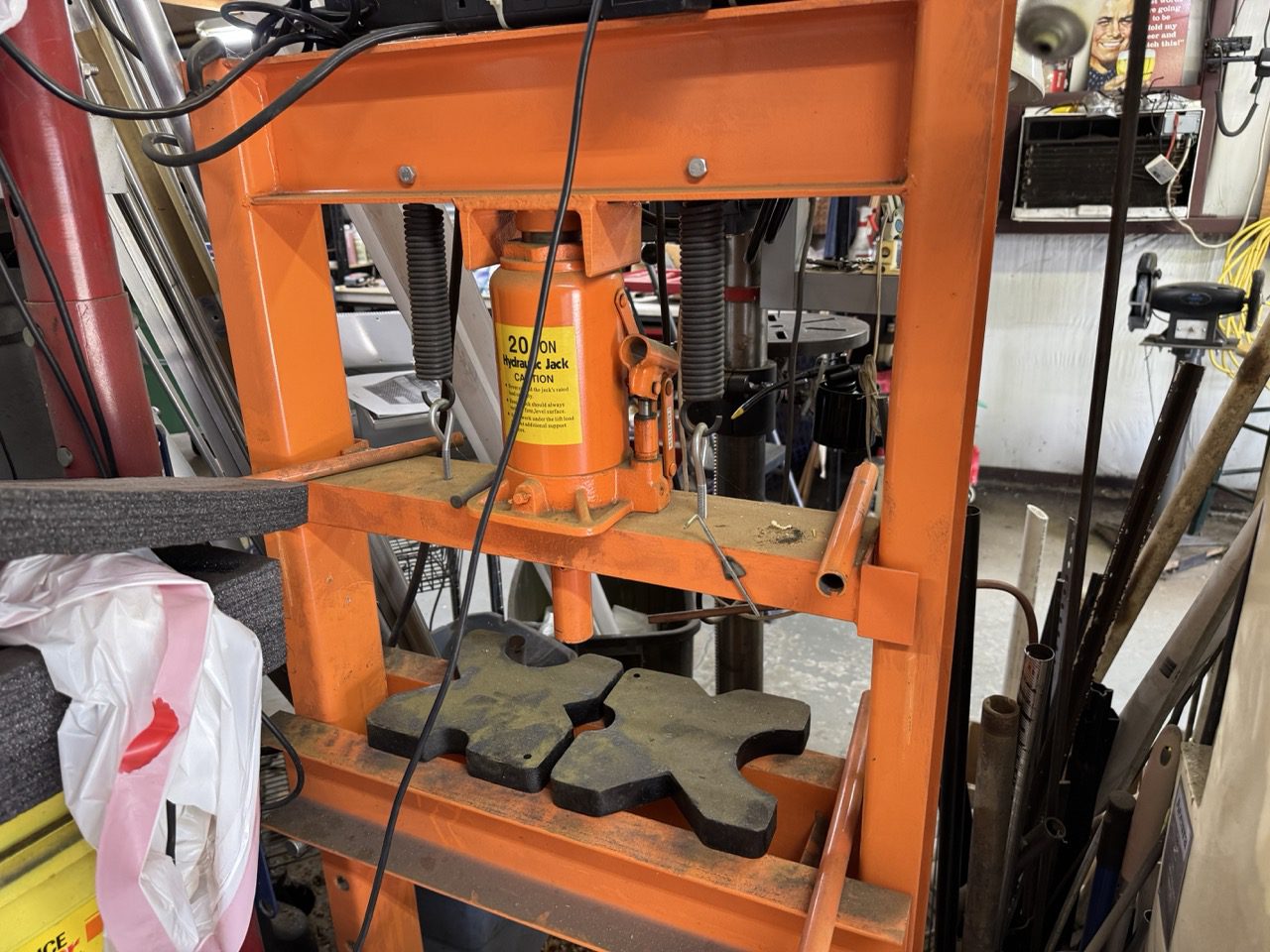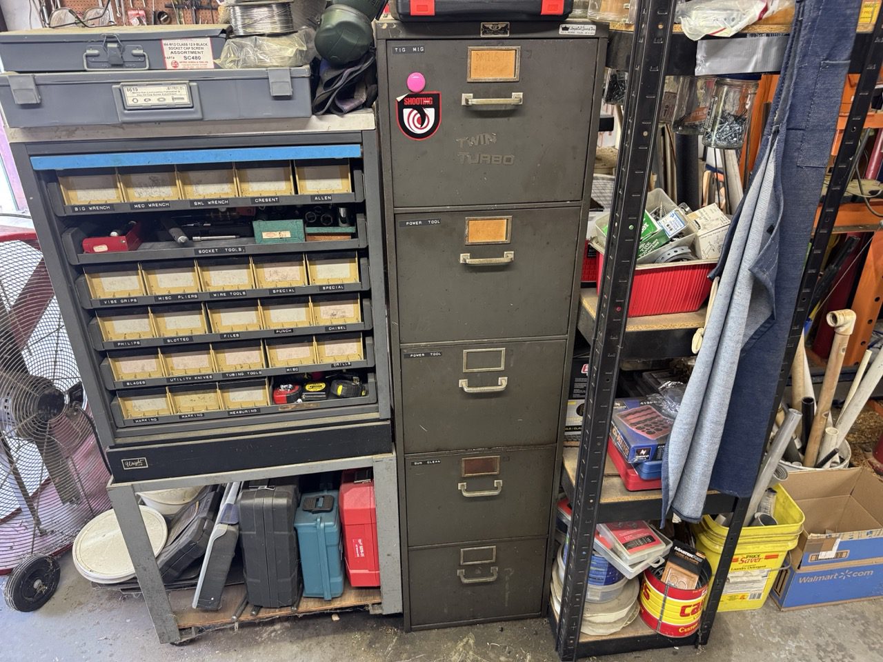 Shop & Outdoor Items: Bench Lathe – Sand Blasting Cabinet – Accura Band Saw – Hydraulic Shop Press – Parts Washer – Drill Press – Belt Sander – Delta Miter Saw – Bridgeport Milling Machine – Tire Changer – Grinder on Stand – Black and Decker Grinder – Makita Power Tools – Craftsman Hand Tools – Craftsman Wrenches – Craftsman Sockets – S-K Ratchets – Proto Sockets – Pittsburgh Ratcheting Wrenches – Crescent Wrenches – Nut Drivers – Hammers – Chisels – Files – Vise Grips – Channel Locks – Pliers – Drill Bits – Gear Pullers – Tin Snips – Clamps – Saw Blades – High Lift Jack – Floor Jacks – Saw Horses – Creepers – Air Tanks – Air Hoses – Cable – Extension Cords – Step Ladder – 8 ft. Aluminum Ladder – Extension Ladder – Log Chains – Ramps – Bolt Bins – Screws – Bolts – Nails – Metal Shelving – Metal Pipe – Angle Iron – Rebar – Lumber – Plywood – Metal Barrels – Flower Pots – Metal Targets – Metal Trailer – Pipe Stands – Roll Around Carts – Live Traps – Fence Stretcher – Yard Tools – Limb Saw – Electric Pressure Washer – Seeder – Spray Paint – Transmission Fluid – Power Steering Fluid – Gas Cans – Mason Jars – Coleman Lanterns – Survival Food
