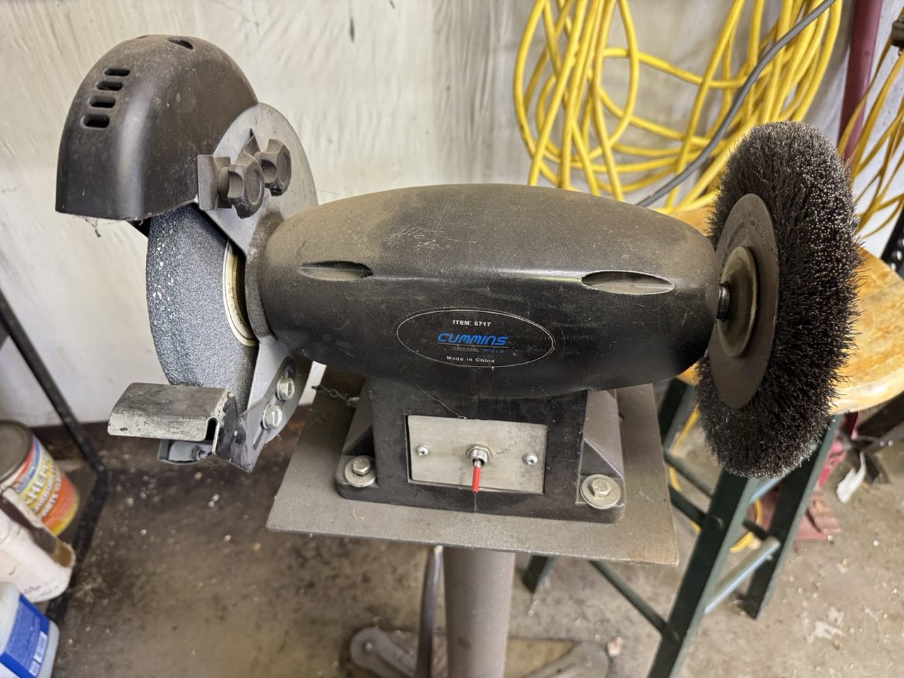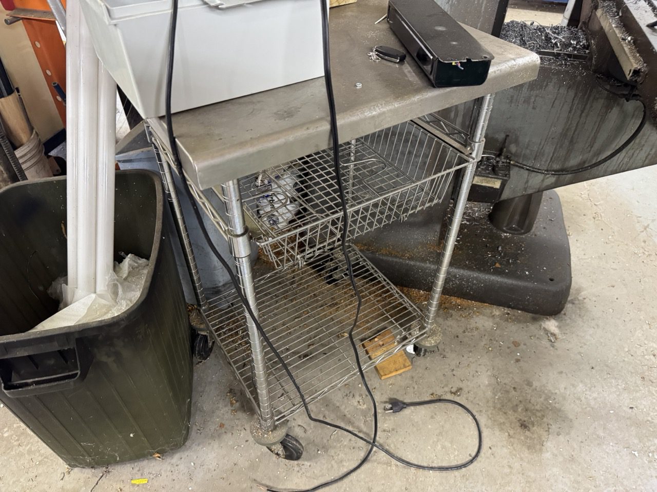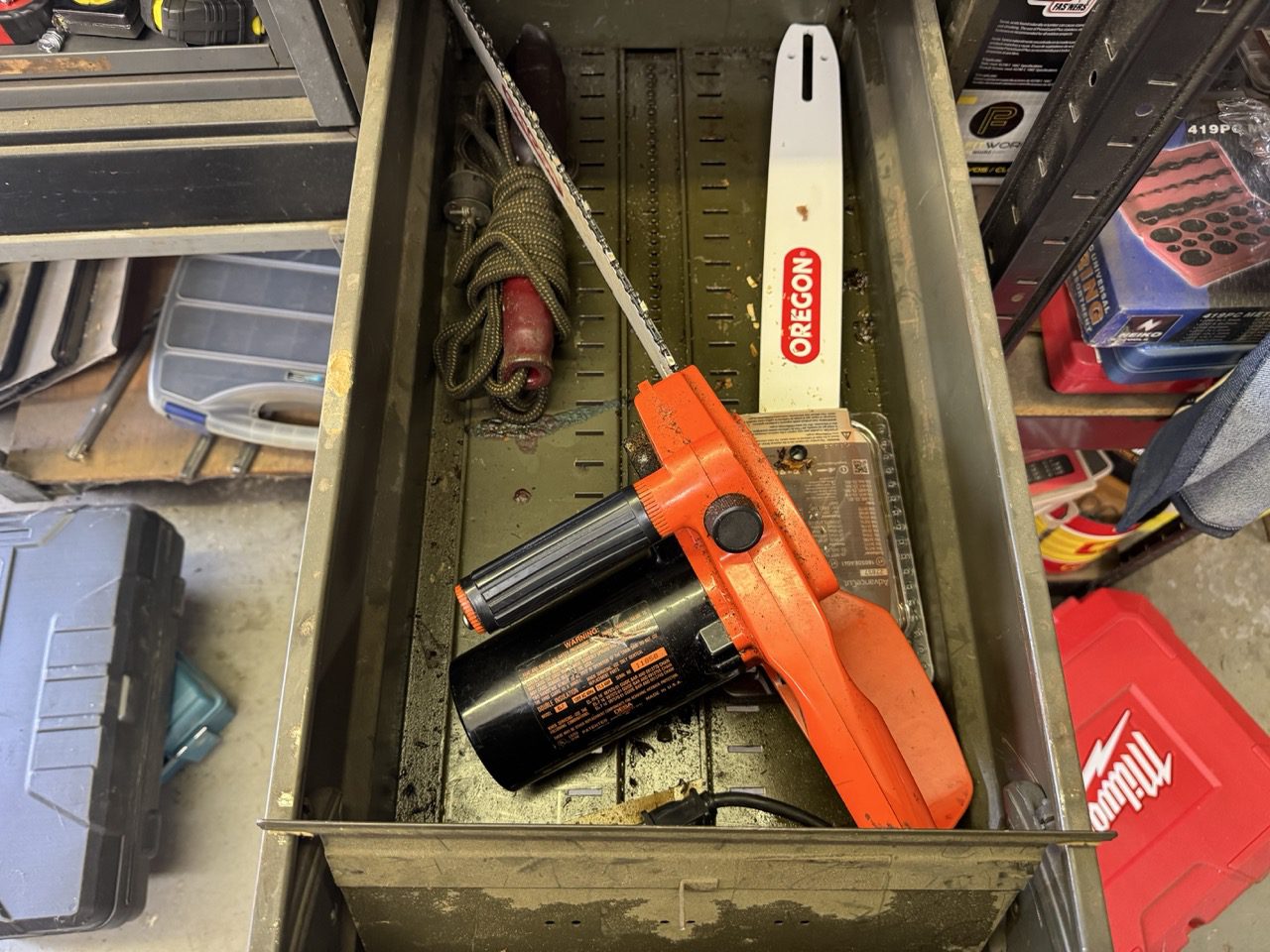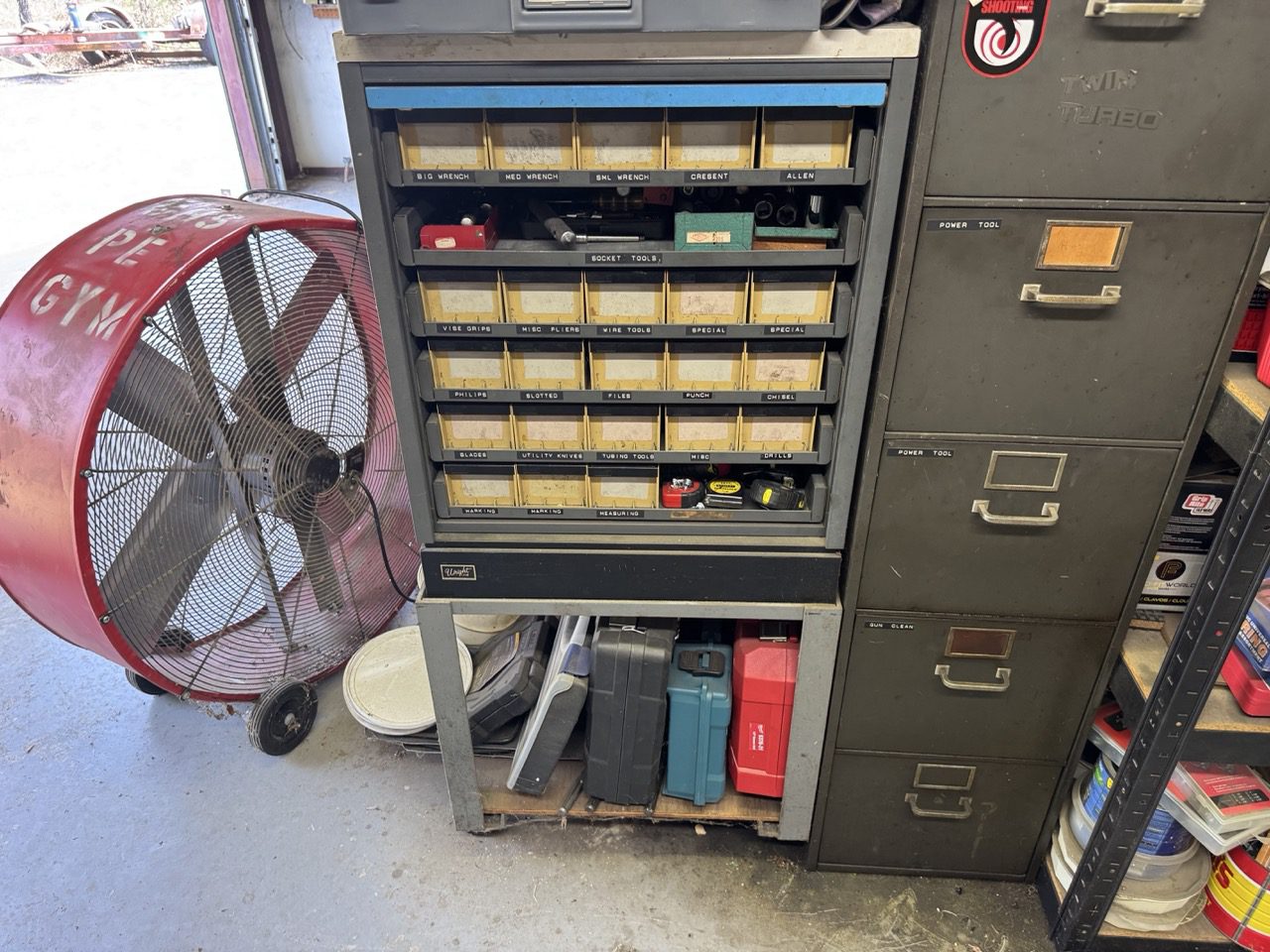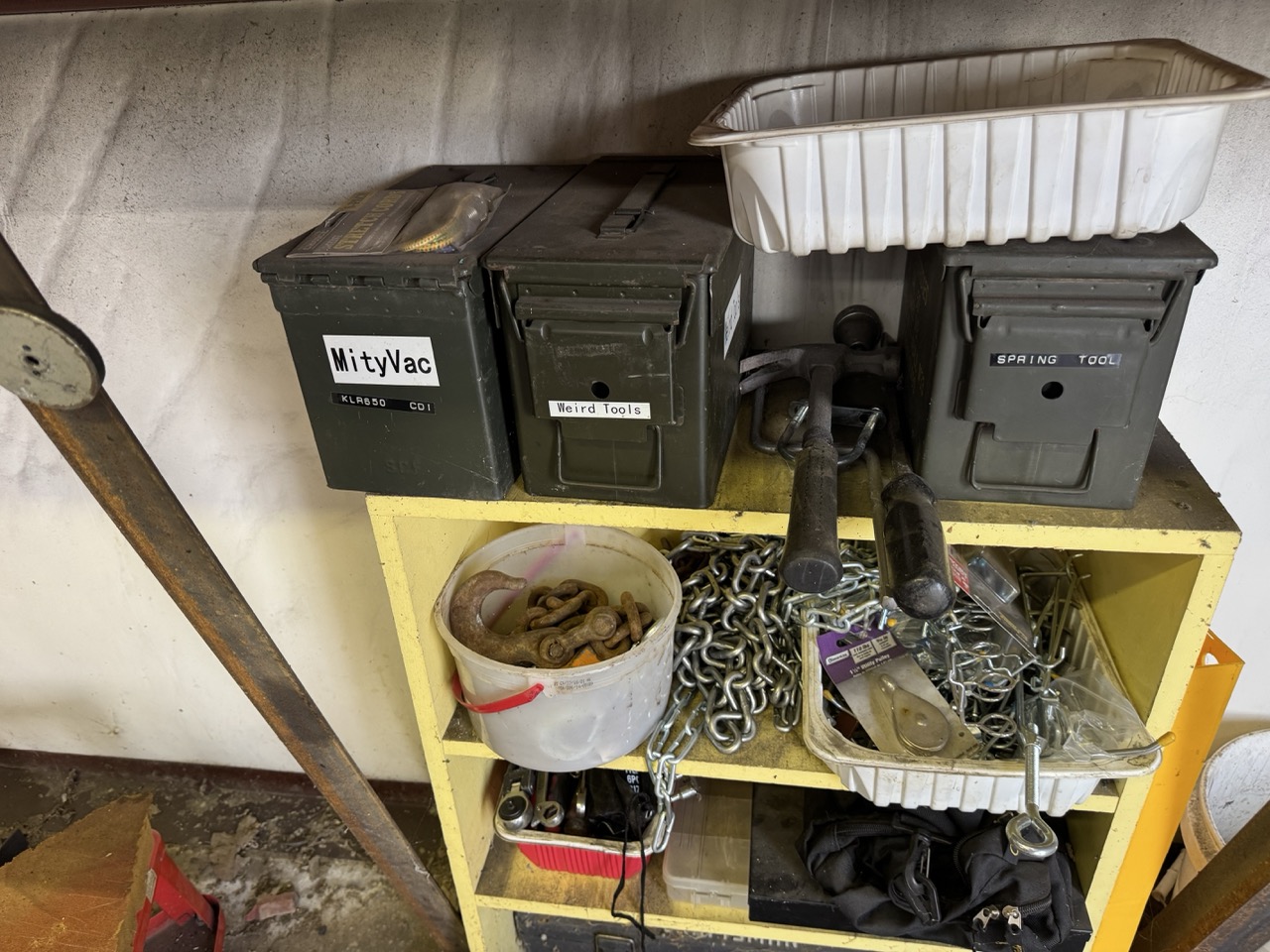 Shop & Outdoor Items: Bench Lathe – Sand Blasting Cabinet – Accura Band Saw – Hydraulic Shop Press – Parts Washer – Drill Press – Belt Sander – Delta Miter Saw – Bridgeport Milling Machine – Tire Changer – Grinder on Stand – Black and Decker Grinder – Makita Power Tools – Craftsman Hand Tools – Craftsman Wrenches – Craftsman Sockets – S-K Ratchets – Proto Sockets – Pittsburgh Ratcheting Wrenches – Crescent Wrenches – Nut Drivers – Hammers – Chisels – Files – Vise Grips – Channel Locks – Pliers – Drill Bits – Gear Pullers – Tin Snips – Clamps – Saw Blades – High Lift Jack – Floor Jacks – Saw Horses – Creepers – Air Tanks – Air Hoses – Cable – Extension Cords – Step Ladder – 8 ft. Aluminum Ladder – Extension Ladder – Log Chains – Ramps – Bolt Bins – Screws – Bolts – Nails – Metal Shelving – Metal Pipe – Angle Iron – Rebar – Lumber – Plywood – Metal Barrels – Flower Pots – Metal Targets – Metal Trailer – Pipe Stands – Roll Around Carts – Live Traps – Fence Stretcher – Yard Tools – Limb Saw – Electric Pressure Washer – Seeder – Spray Paint – Transmission Fluid – Power Steering Fluid – Gas Cans – Mason Jars – Coleman Lanterns – Survival Food