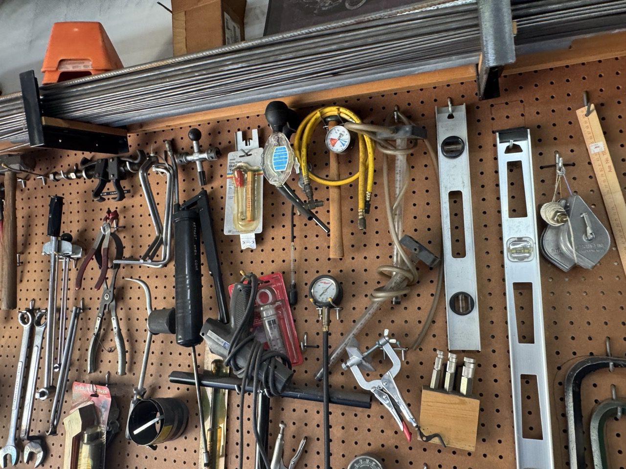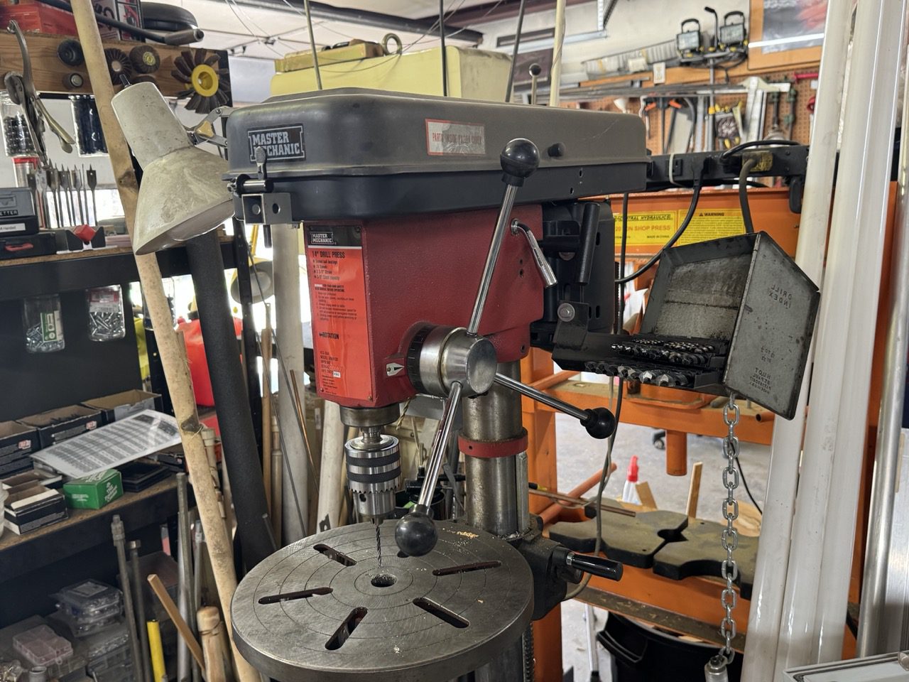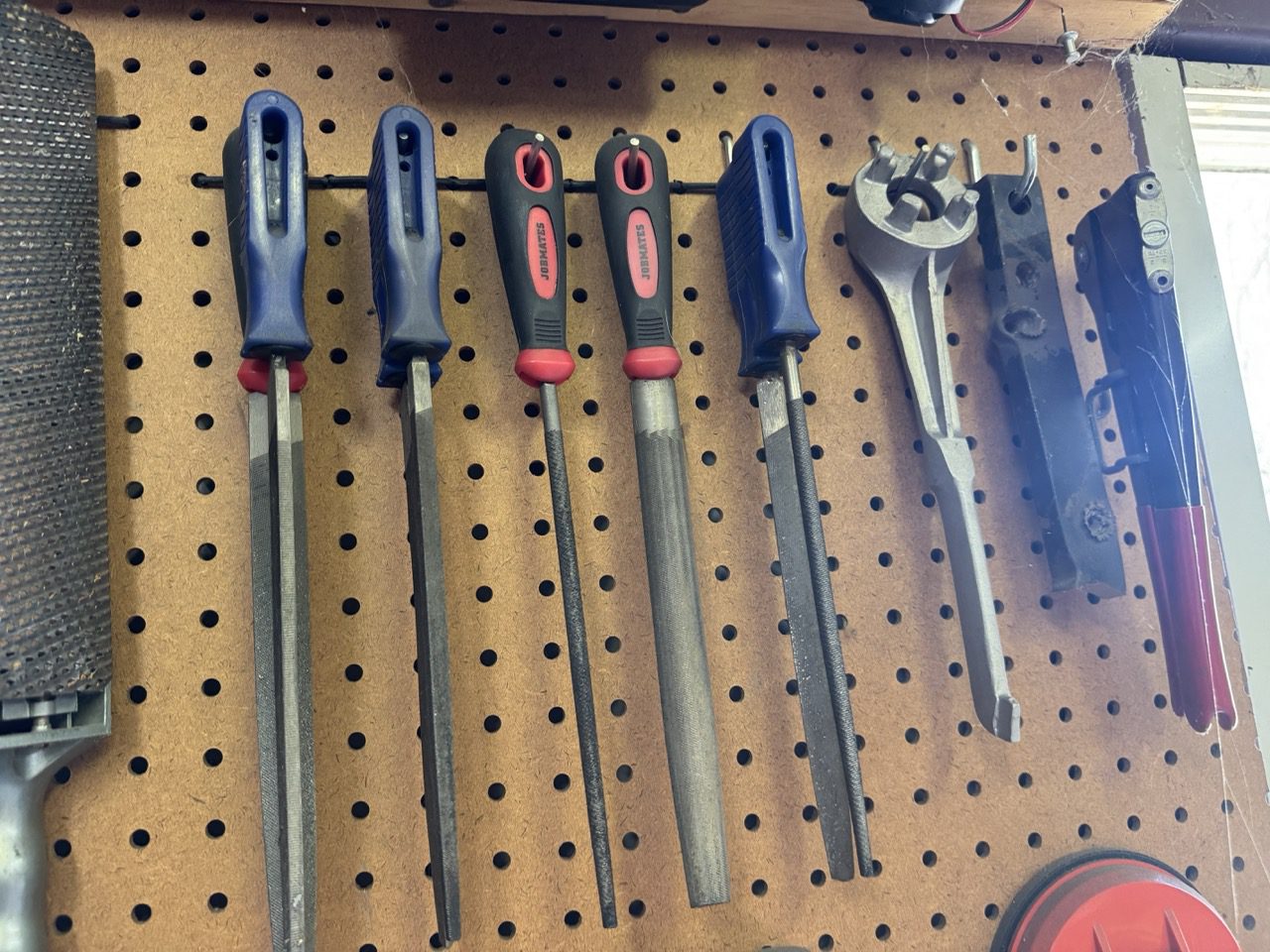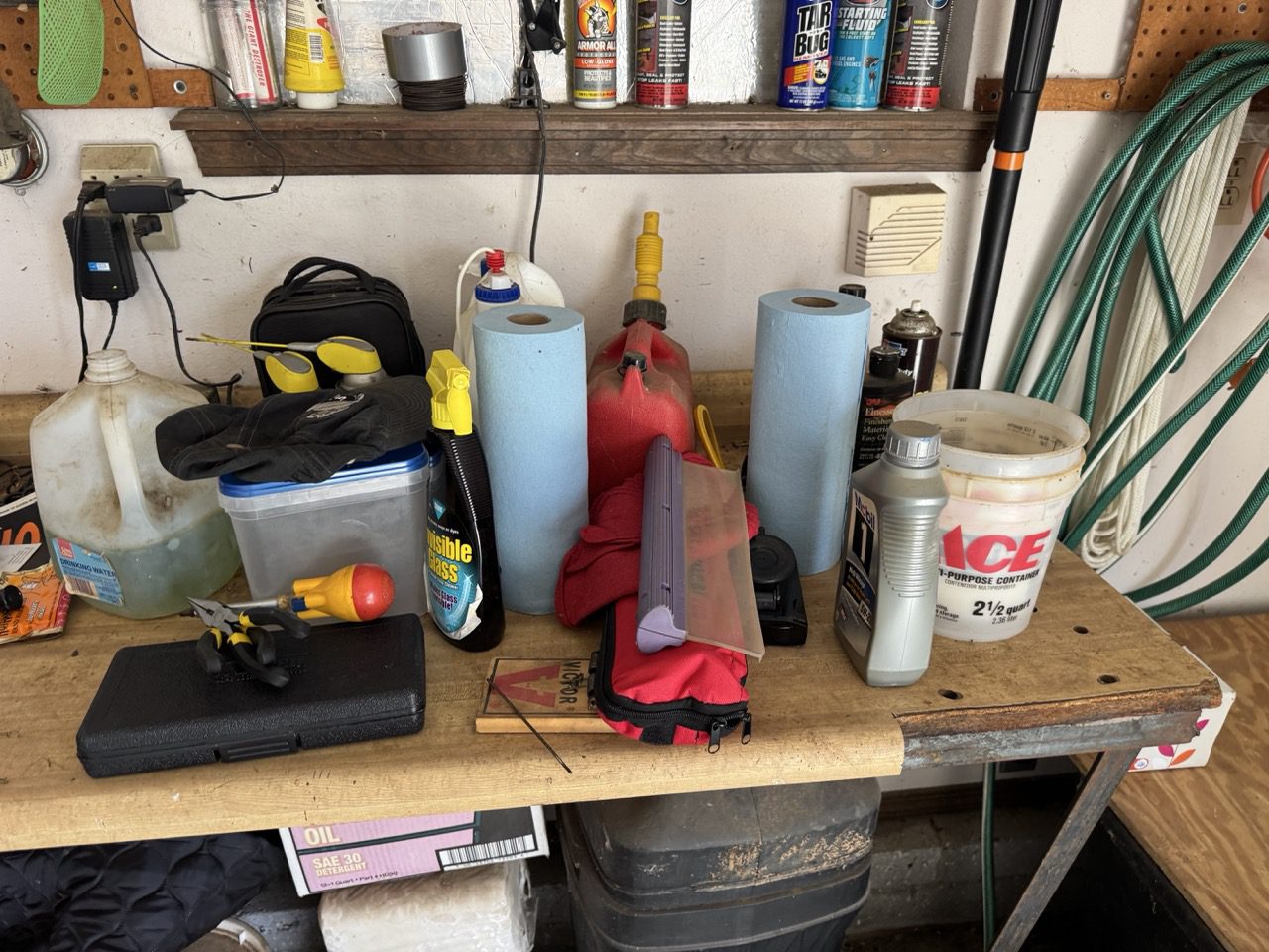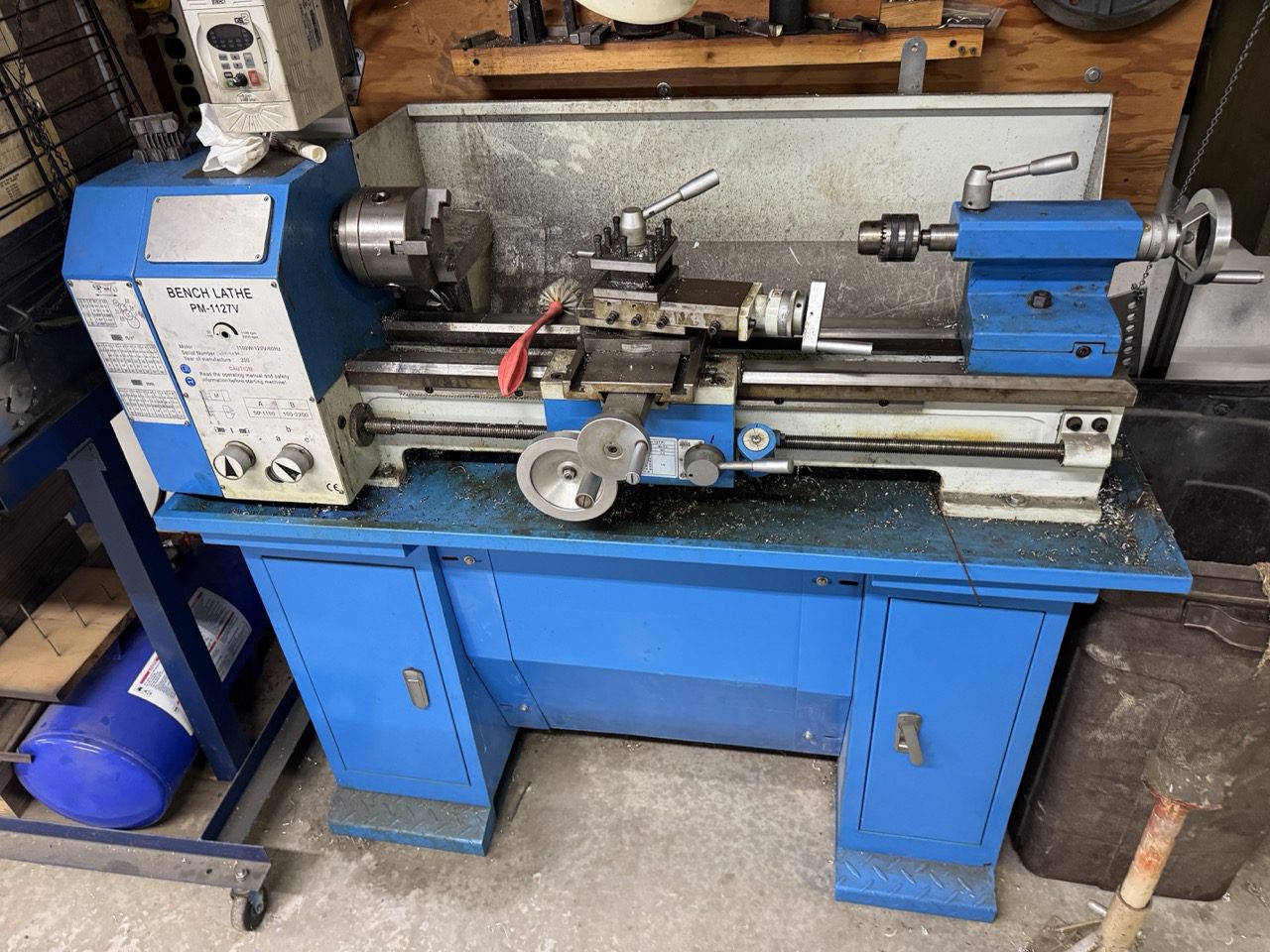 Shop & Outdoor Items: Bench Lathe – Sand Blasting Cabinet – Accura Band Saw – Hydraulic Shop Press – Parts Washer – Drill Press – Belt Sander – Delta Miter Saw – Bridgeport Milling Machine – Tire Changer – Grinder on Stand – Black and Decker Grinder – Makita Power Tools – Craftsman Hand Tools – Craftsman Wrenches – Craftsman Sockets – S-K Ratchets – Proto Sockets – Pittsburgh Ratcheting Wrenches – Crescent Wrenches – Nut Drivers – Hammers – Chisels – Files – Vise Grips – Channel Locks – Pliers – Drill Bits – Gear Pullers – Tin Snips – Clamps – Saw Blades – High Lift Jack – Floor Jacks – Saw Horses – Creepers – Air Tanks – Air Hoses – Cable – Extension Cords – Step Ladder – 8 ft. Aluminum Ladder – Extension Ladder – Log Chains – Ramps – Bolt Bins – Screws – Bolts – Nails – Metal Shelving – Metal Pipe – Angle Iron – Rebar – Lumber – Plywood – Metal Barrels – Flower Pots – Metal Targets – Metal Trailer – Pipe Stands – Roll Around Carts – Live Traps – Fence Stretcher – Yard Tools – Limb Saw – Electric Pressure Washer – Seeder – Spray Paint – Transmission Fluid – Power Steering Fluid – Gas Cans – Mason Jars – Coleman Lanterns – Survival Food