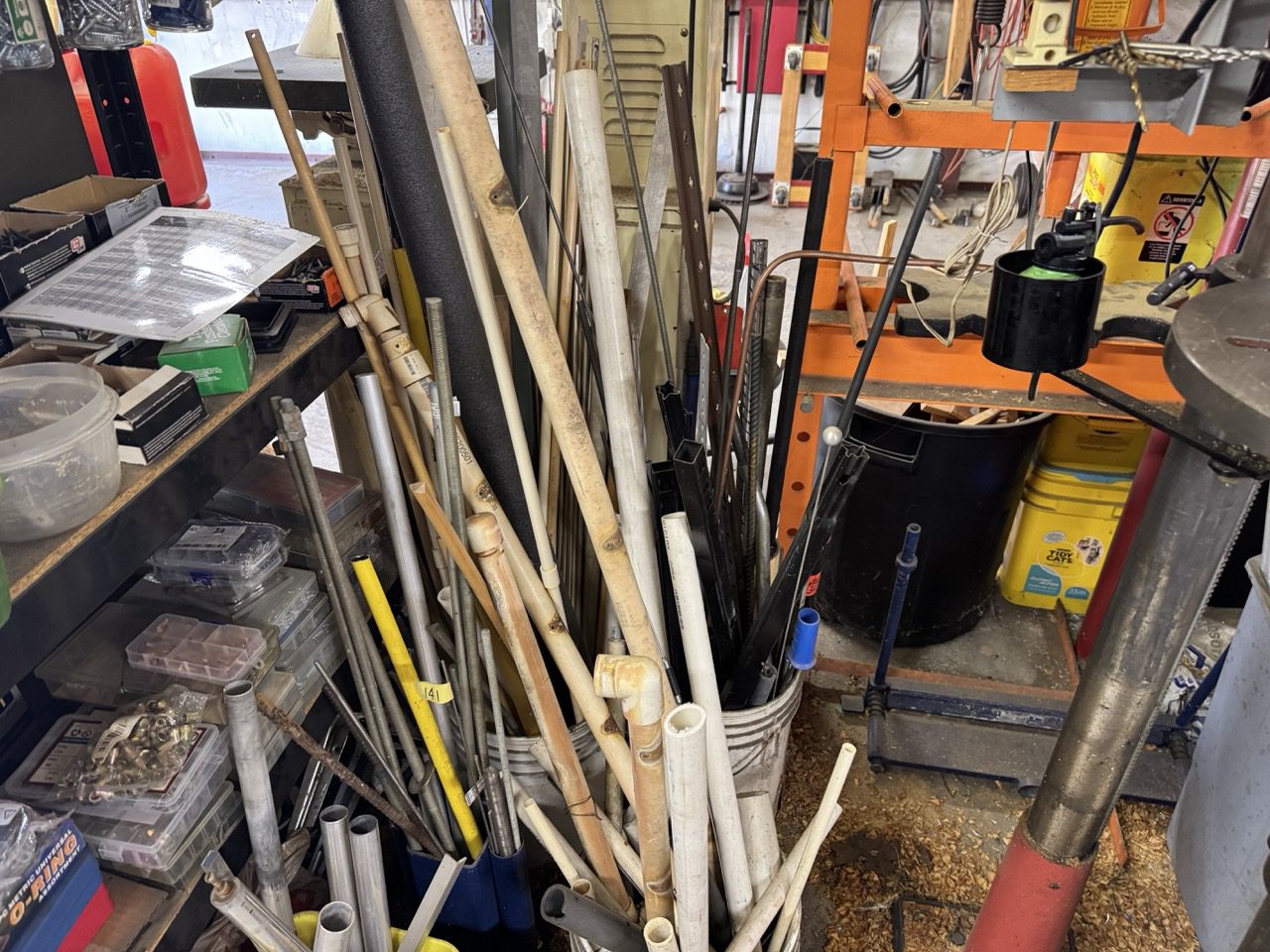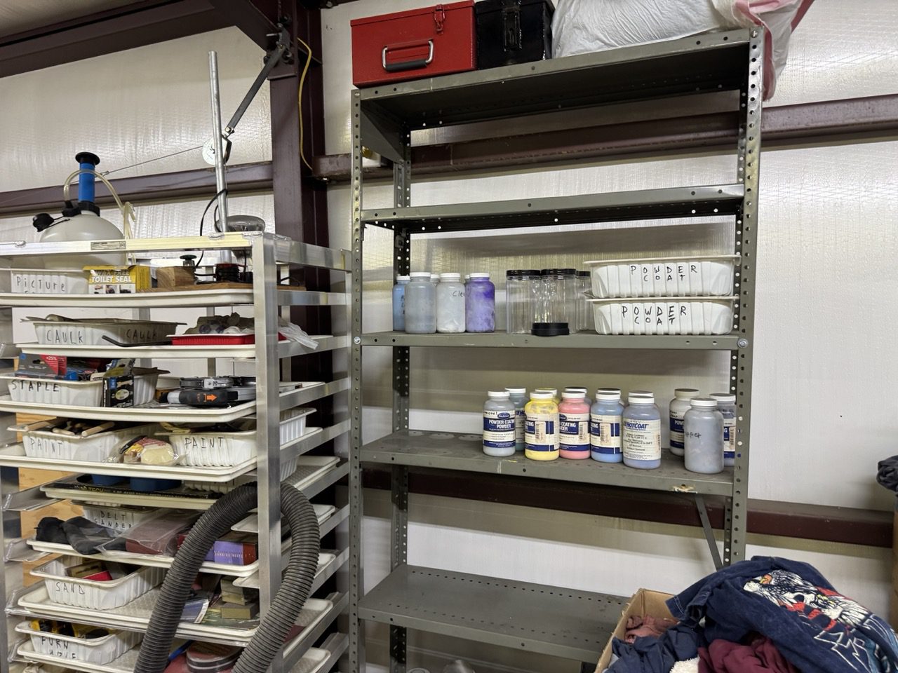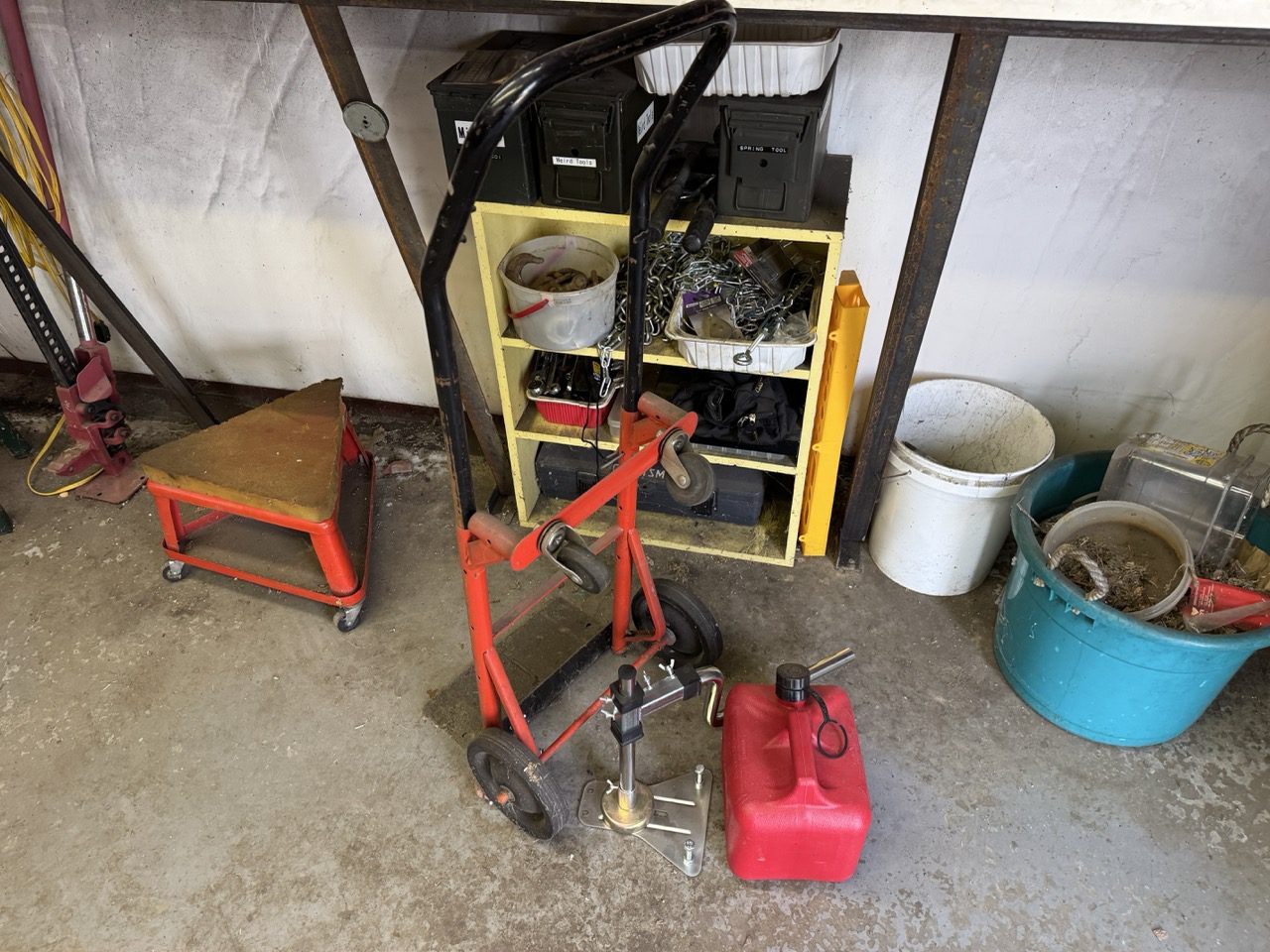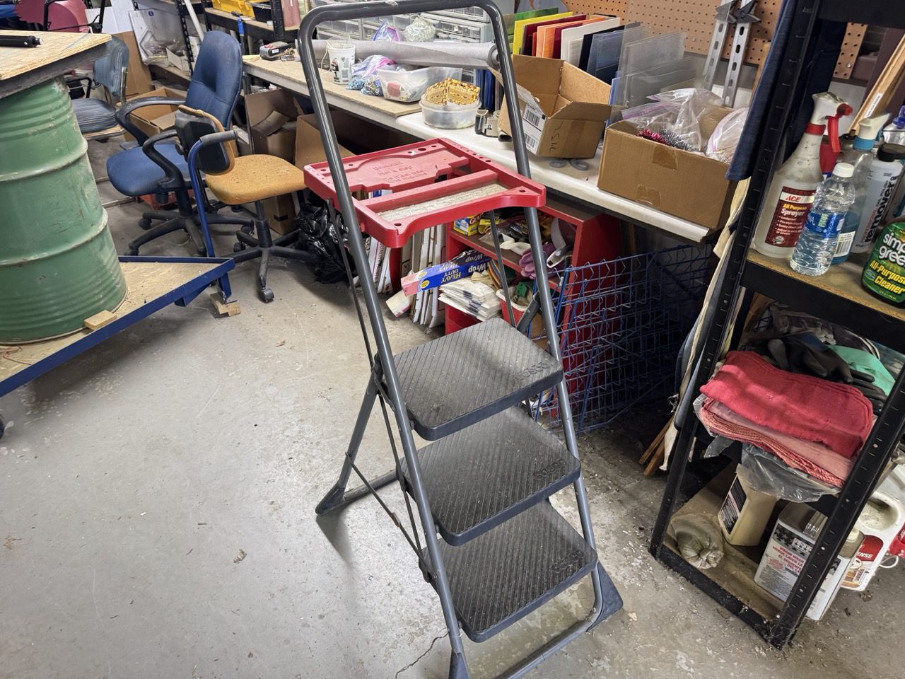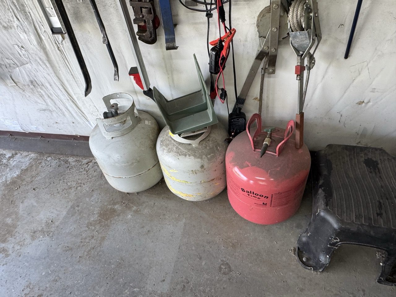 Shop & Outdoor Items: Bench Lathe – Sand Blasting Cabinet – Accura Band Saw – Hydraulic Shop Press – Parts Washer – Drill Press – Belt Sander – Delta Miter Saw – Bridgeport Milling Machine – Tire Changer – Grinder on Stand – Black and Decker Grinder – Makita Power Tools – Craftsman Hand Tools – Craftsman Wrenches – Craftsman Sockets – S-K Ratchets – Proto Sockets – Pittsburgh Ratcheting Wrenches – Crescent Wrenches – Nut Drivers – Hammers – Chisels – Files – Vise Grips – Channel Locks – Pliers – Drill Bits – Gear Pullers – Tin Snips – Clamps – Saw Blades – High Lift Jack – Floor Jacks – Saw Horses – Creepers – Air Tanks – Air Hoses – Cable – Extension Cords – Step Ladder – 8 ft. Aluminum Ladder – Extension Ladder – Log Chains – Ramps – Bolt Bins – Screws – Bolts – Nails – Metal Shelving – Metal Pipe – Angle Iron – Rebar – Lumber – Plywood – Metal Barrels – Flower Pots – Metal Targets – Metal Trailer – Pipe Stands – Roll Around Carts – Live Traps – Fence Stretcher – Yard Tools – Limb Saw – Electric Pressure Washer – Seeder – Spray Paint – Transmission Fluid – Power Steering Fluid – Gas Cans – Mason Jars – Coleman Lanterns – Survival Food