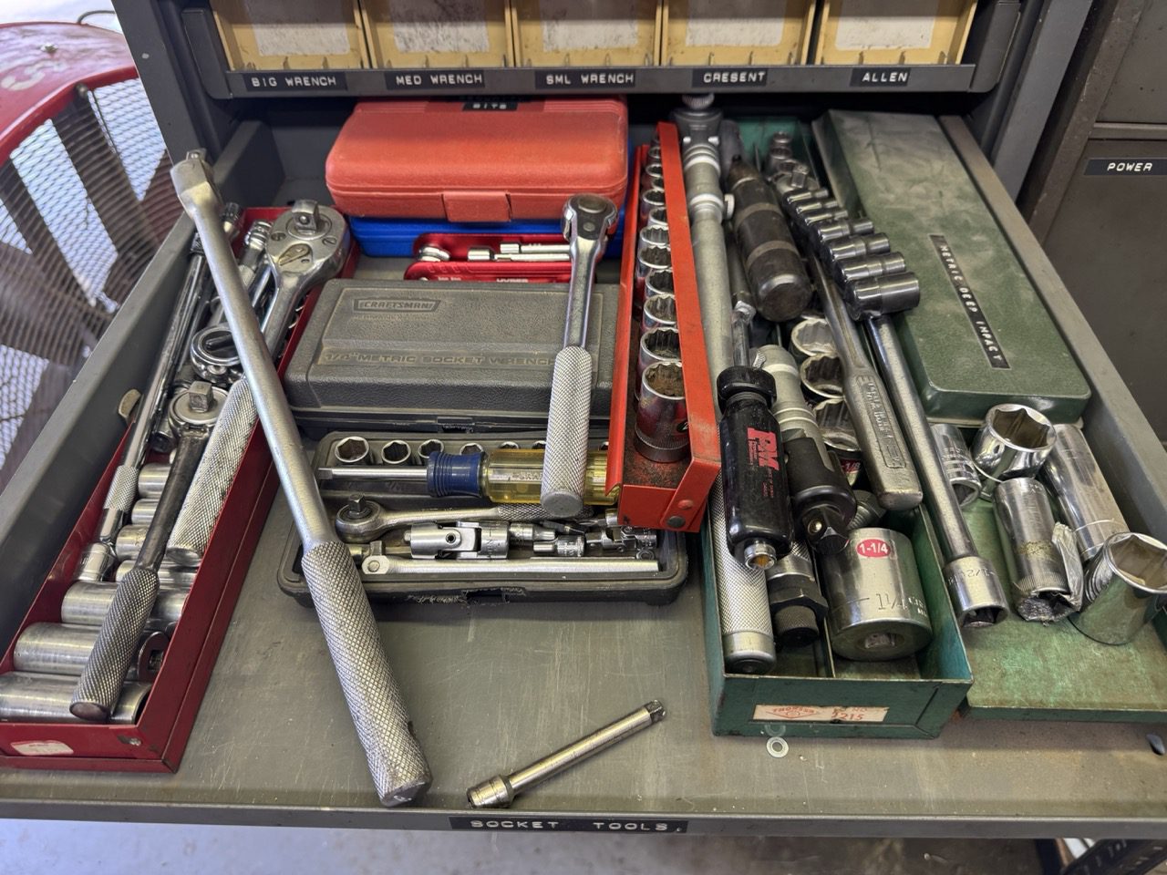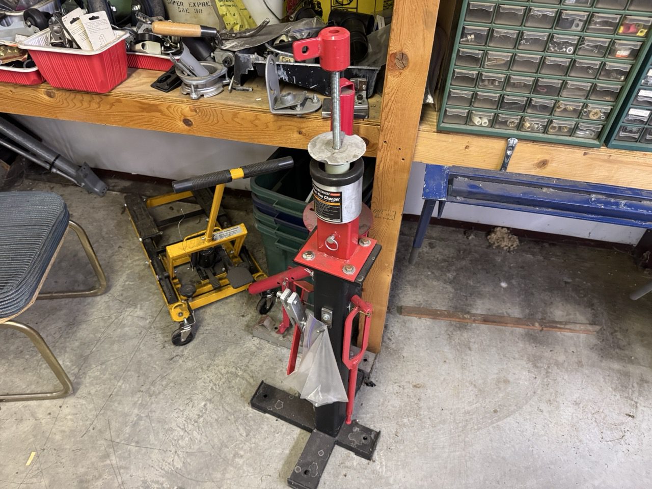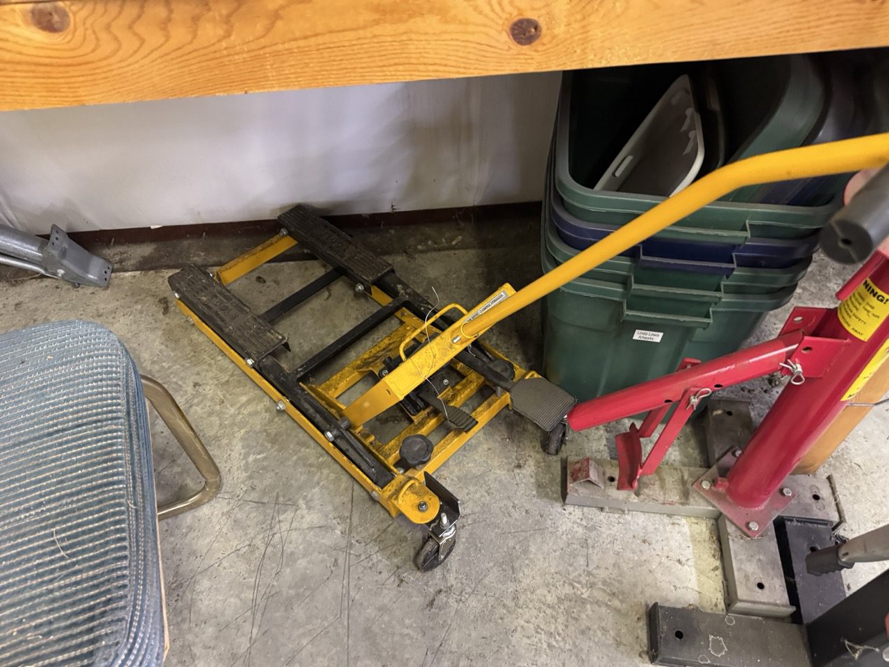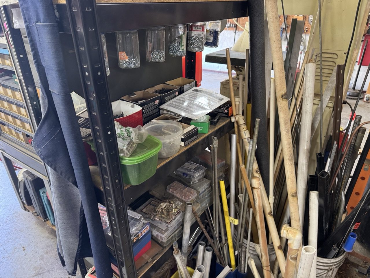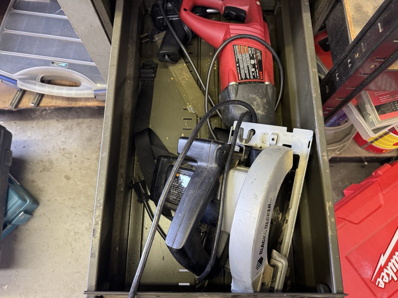 Shop & Outdoor Items: Bench Lathe – Sand Blasting Cabinet – Accura Band Saw – Hydraulic Shop Press – Parts Washer – Drill Press – Belt Sander – Delta Miter Saw – Bridgeport Milling Machine – Tire Changer – Grinder on Stand – Black and Decker Grinder – Makita Power Tools – Craftsman Hand Tools – Craftsman Wrenches – Craftsman Sockets – S-K Ratchets – Proto Sockets – Pittsburgh Ratcheting Wrenches – Crescent Wrenches – Nut Drivers – Hammers – Chisels – Files – Vise Grips – Channel Locks – Pliers – Drill Bits – Gear Pullers – Tin Snips – Clamps – Saw Blades – High Lift Jack – Floor Jacks – Saw Horses – Creepers – Air Tanks – Air Hoses – Cable – Extension Cords – Step Ladder – 8 ft. Aluminum Ladder – Extension Ladder – Log Chains – Ramps – Bolt Bins – Screws – Bolts – Nails – Metal Shelving – Metal Pipe – Angle Iron – Rebar – Lumber – Plywood – Metal Barrels – Flower Pots – Metal Targets – Metal Trailer – Pipe Stands – Roll Around Carts – Live Traps – Fence Stretcher – Yard Tools – Limb Saw – Electric Pressure Washer – Seeder – Spray Paint – Transmission Fluid – Power Steering Fluid – Gas Cans – Mason Jars – Coleman Lanterns – Survival Food