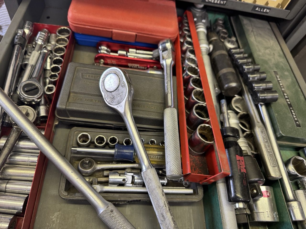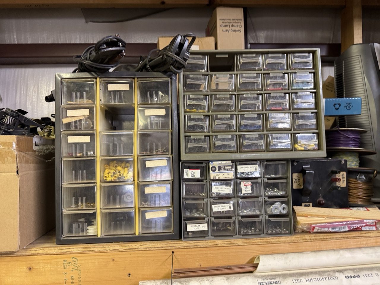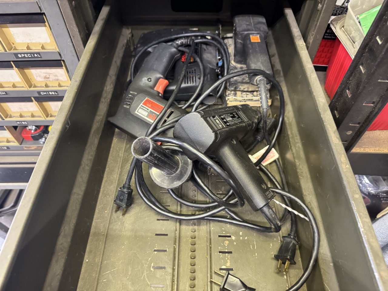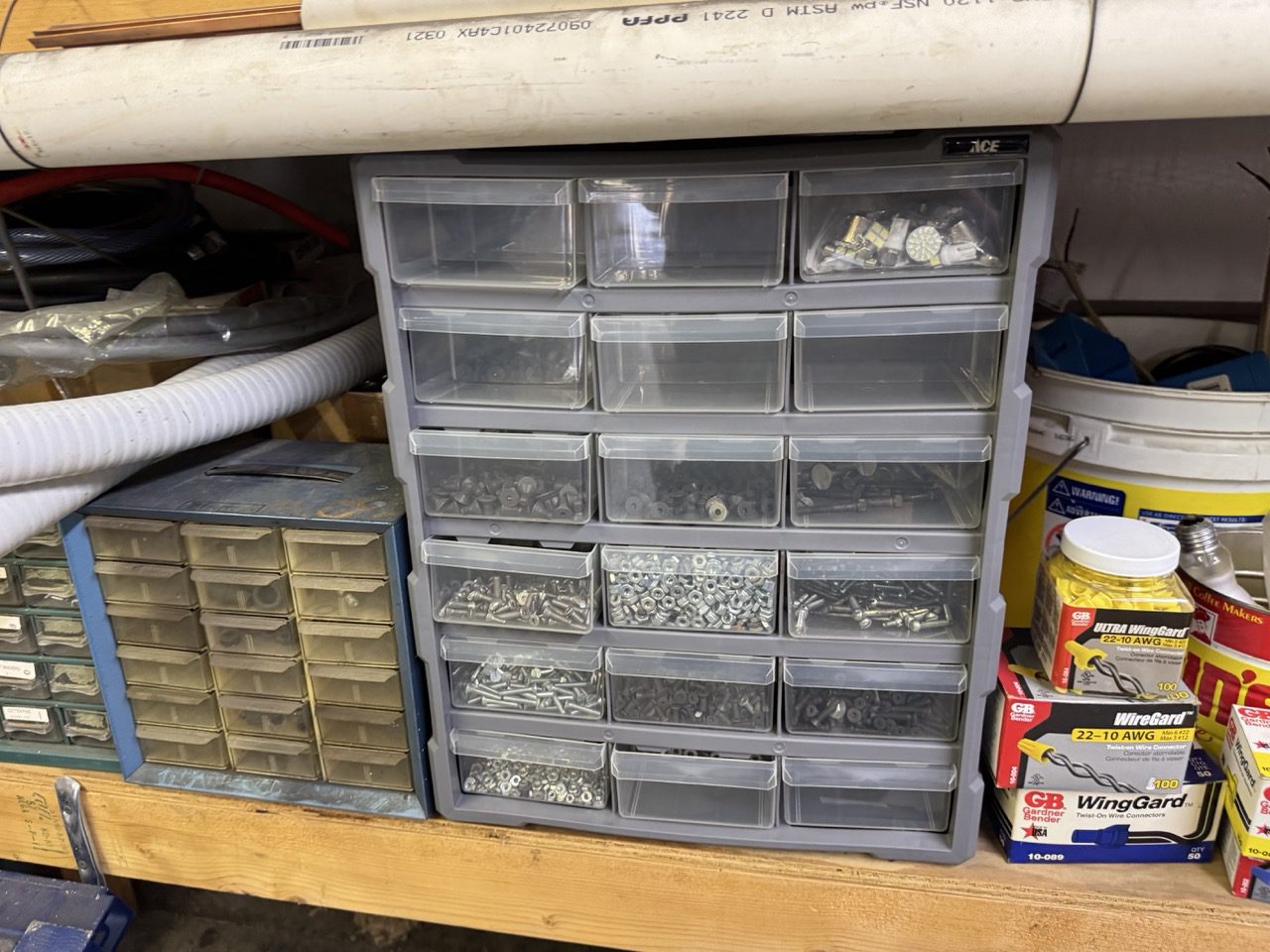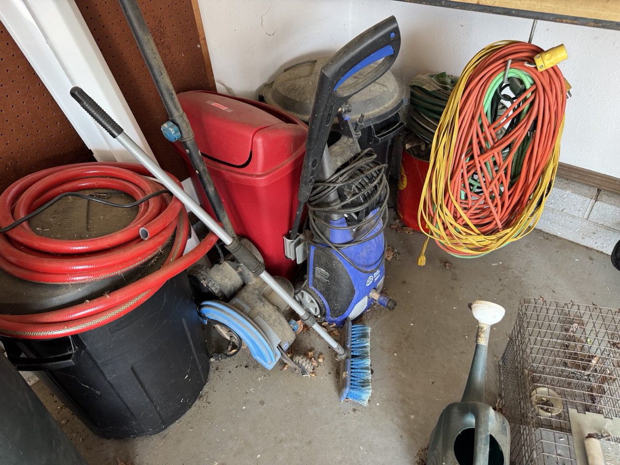 Shop & Outdoor Items: Bench Lathe – Sand Blasting Cabinet – Accura Band Saw – Hydraulic Shop Press – Parts Washer – Drill Press – Belt Sander – Delta Miter Saw – Bridgeport Milling Machine – Tire Changer – Grinder on Stand – Black and Decker Grinder – Makita Power Tools – Craftsman Hand Tools – Craftsman Wrenches – Craftsman Sockets – S-K Ratchets – Proto Sockets – Pittsburgh Ratcheting Wrenches – Crescent Wrenches – Nut Drivers – Hammers – Chisels – Files – Vise Grips – Channel Locks – Pliers – Drill Bits – Gear Pullers – Tin Snips – Clamps – Saw Blades – High Lift Jack – Floor Jacks – Saw Horses – Creepers – Air Tanks – Air Hoses – Cable – Extension Cords – Step Ladder – 8 ft. Aluminum Ladder – Extension Ladder – Log Chains – Ramps – Bolt Bins – Screws – Bolts – Nails – Metal Shelving – Metal Pipe – Angle Iron – Rebar – Lumber – Plywood – Metal Barrels – Flower Pots – Metal Targets – Metal Trailer – Pipe Stands – Roll Around Carts – Live Traps – Fence Stretcher – Yard Tools – Limb Saw – Electric Pressure Washer – Seeder – Spray Paint – Transmission Fluid – Power Steering Fluid – Gas Cans – Mason Jars – Coleman Lanterns – Survival Food