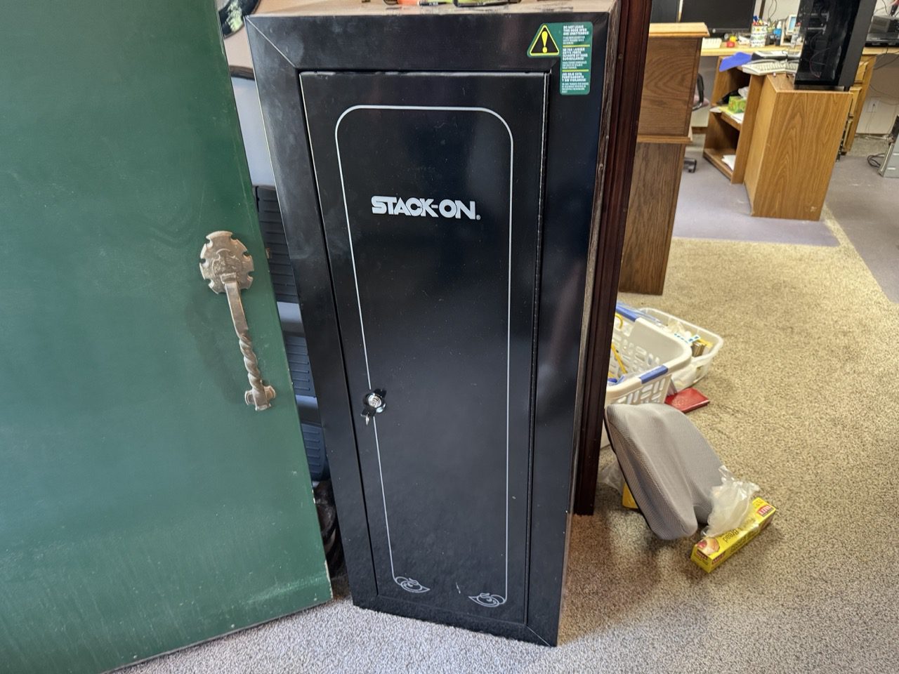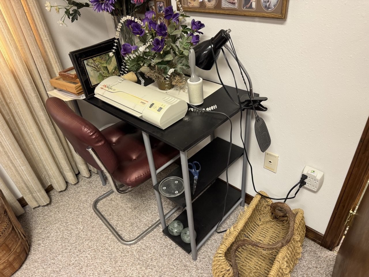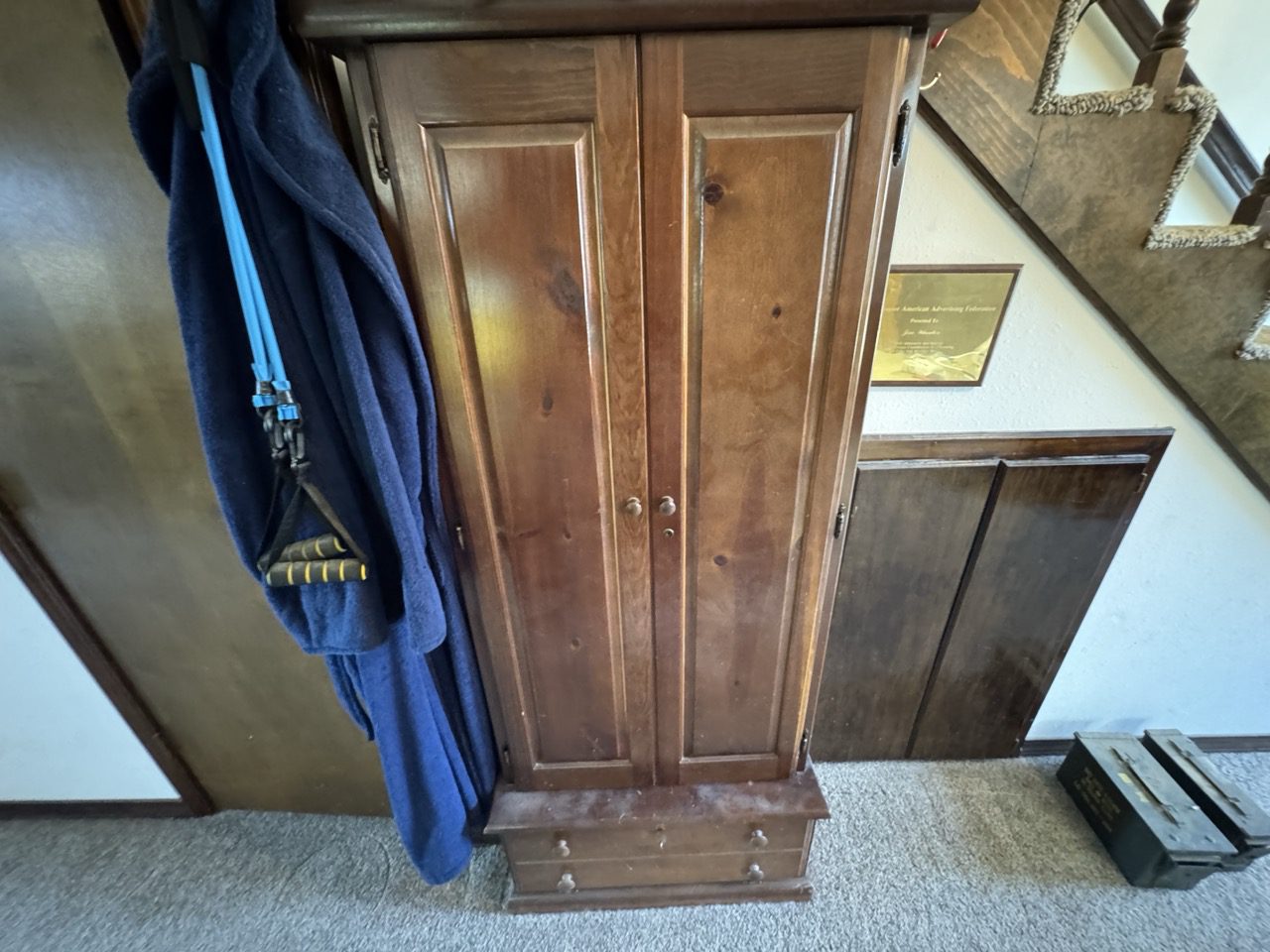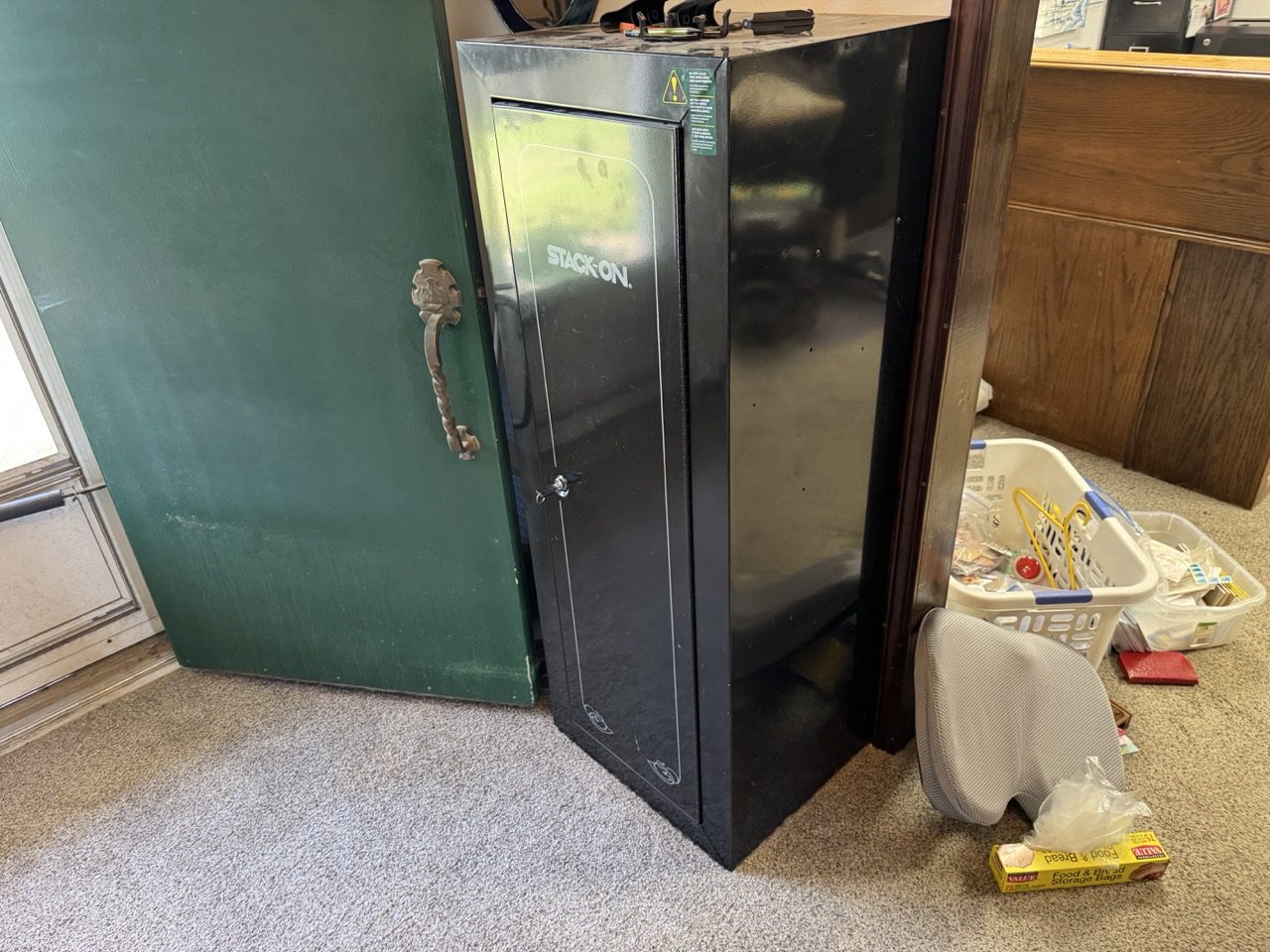 Furniture & Household Items: Bar Stools – Kitchen Table – End Tables – Recliners – Leather Sofa – Lamps – Rugs – Card Tables – Filing Cabinets – Roll Top Desk – Office Chairs – Cedar Trunk – Wooden Gun Cabinet – Stack-On Gun Safe – King Size Sleep Number Mattress