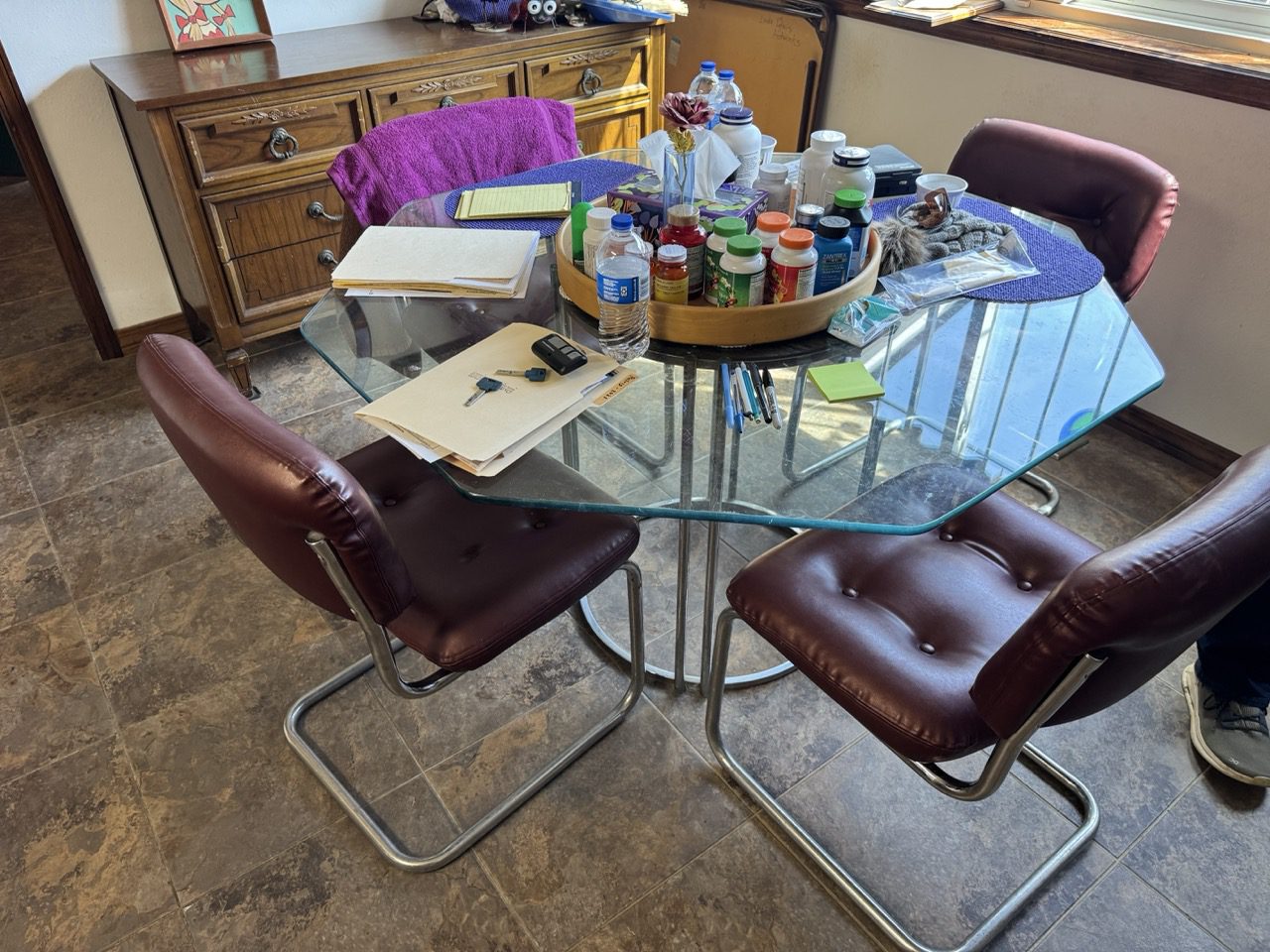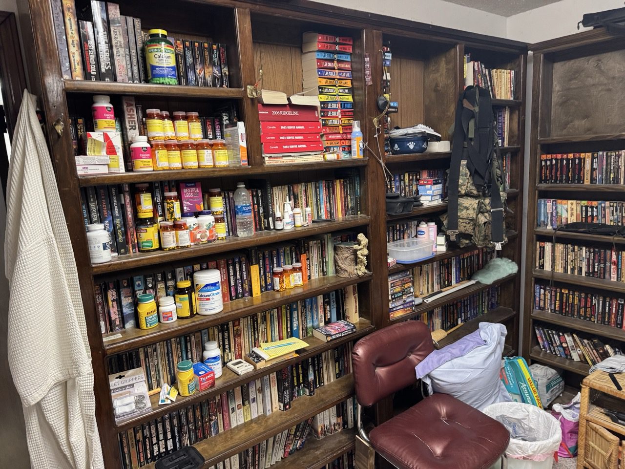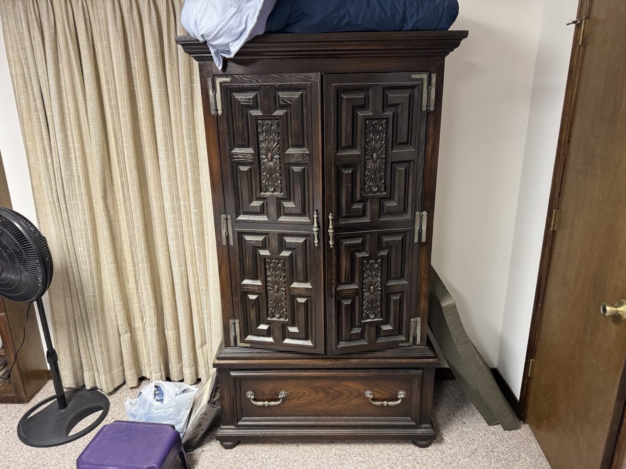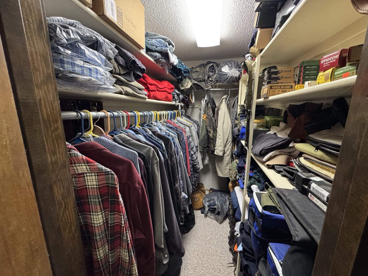 Furniture & Household Items: Bar Stools – Kitchen Table – End Tables – Recliners – Leather Sofa – Lamps – Rugs – Card Tables – Filing Cabinets – Roll Top Desk – Office Chairs – Cedar Trunk – Wooden Gun Cabinet – Stack-On Gun Safe – King Size Sleep Number Mattress