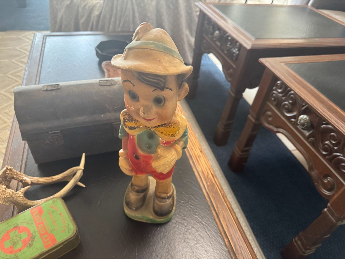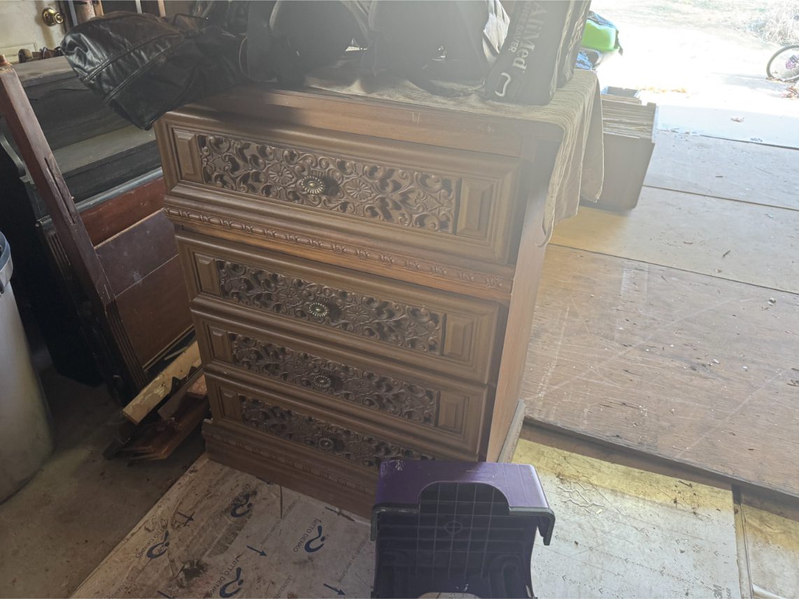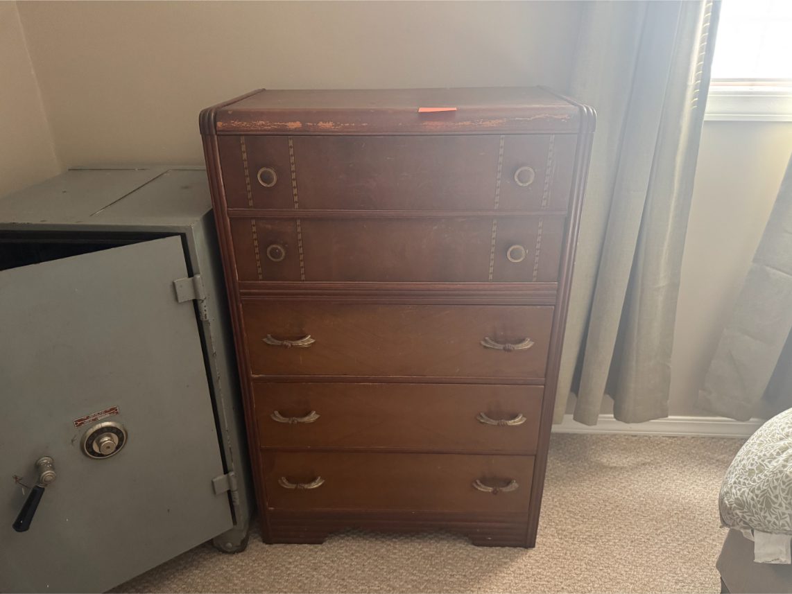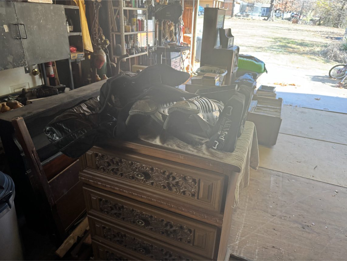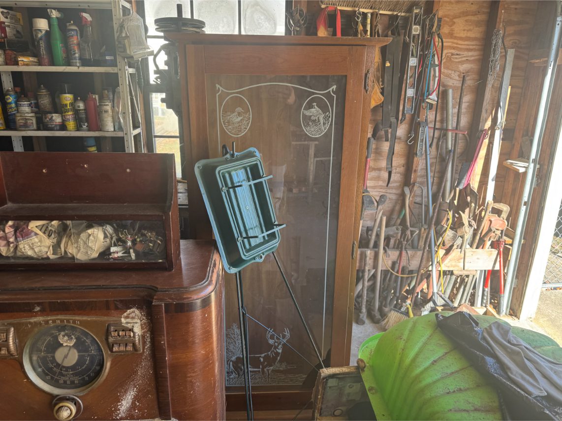 Furniture: Antique Radio – Gun Cabinet – Bed – Chest of Drawers – Coffee Table – Side Tables – Antique Buffet – Grandfather Clock – Office Chair – Dresser – Safe