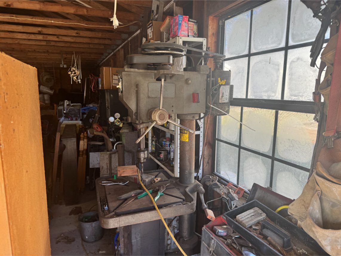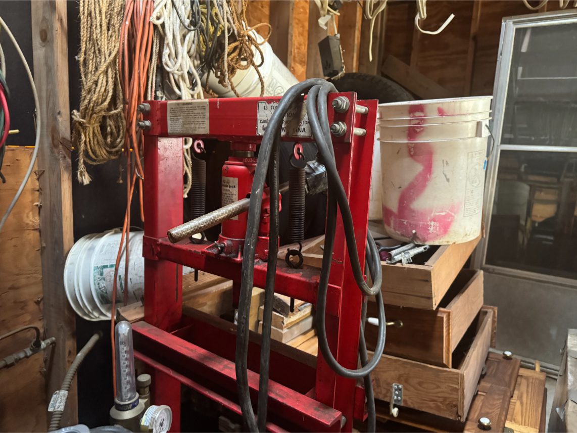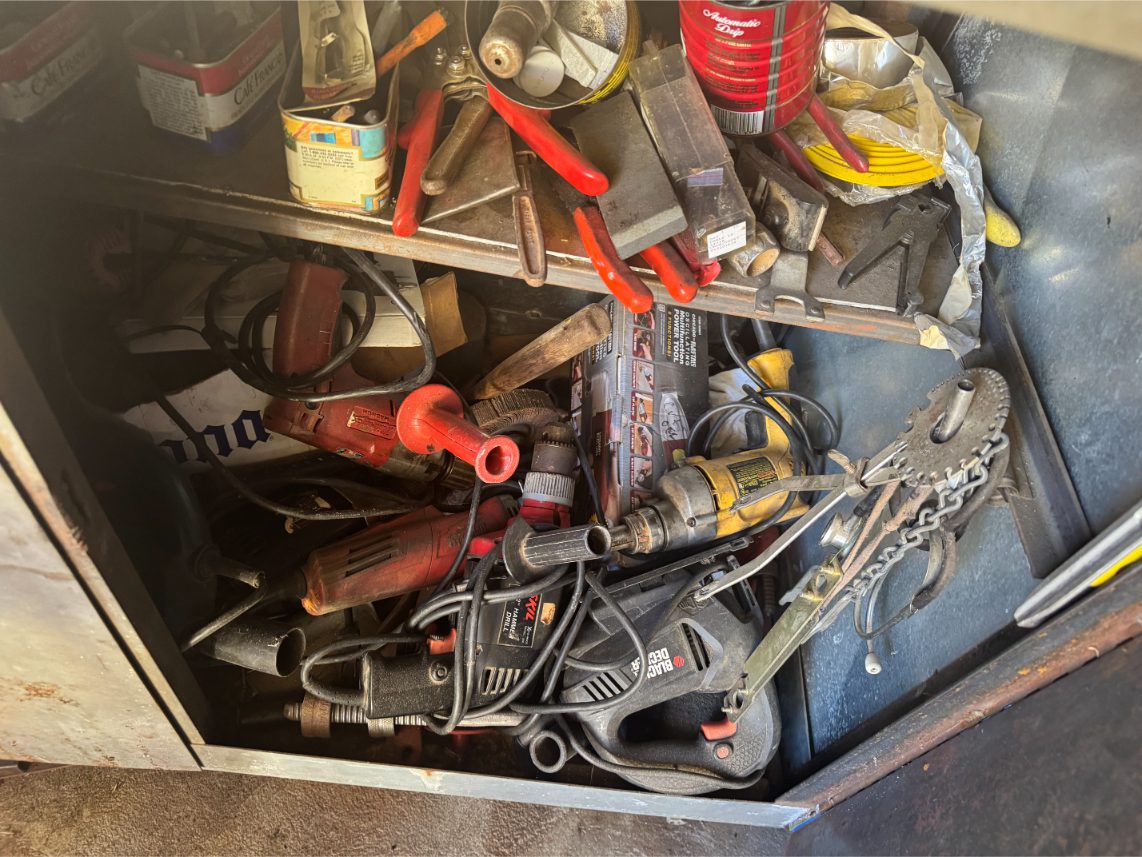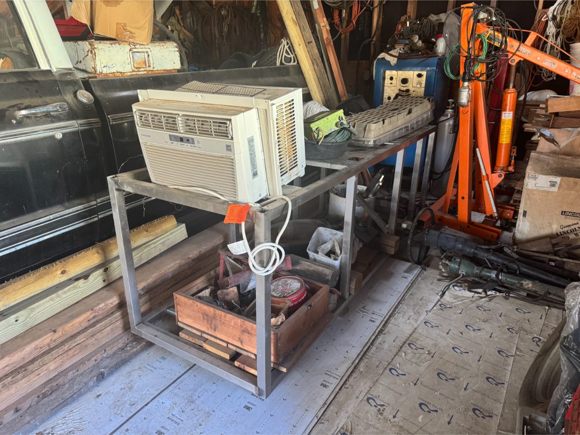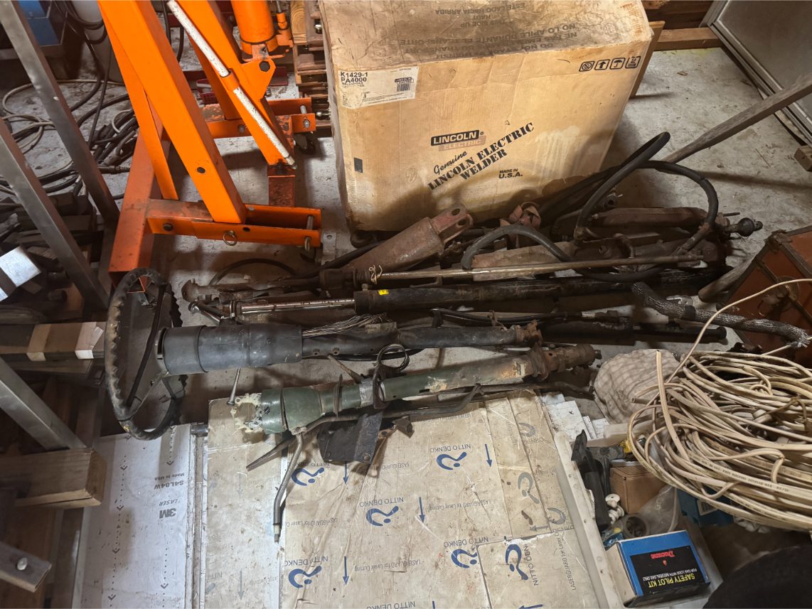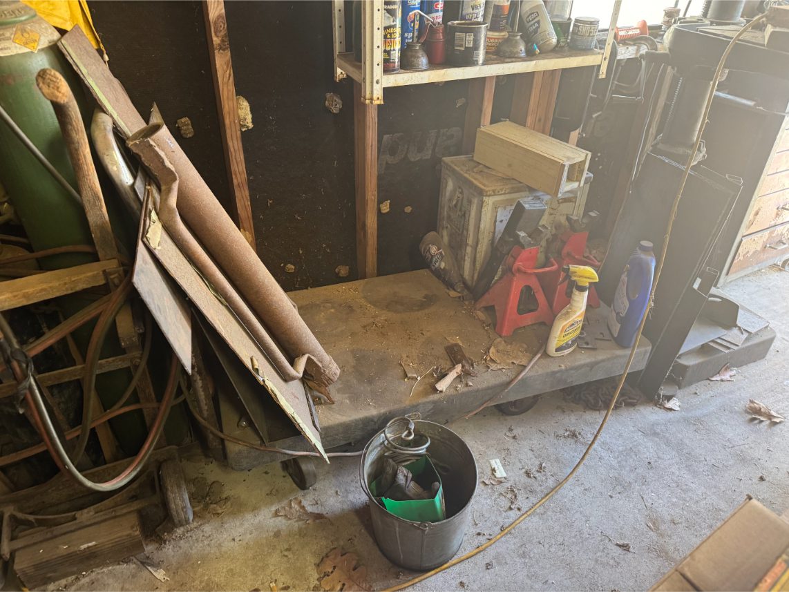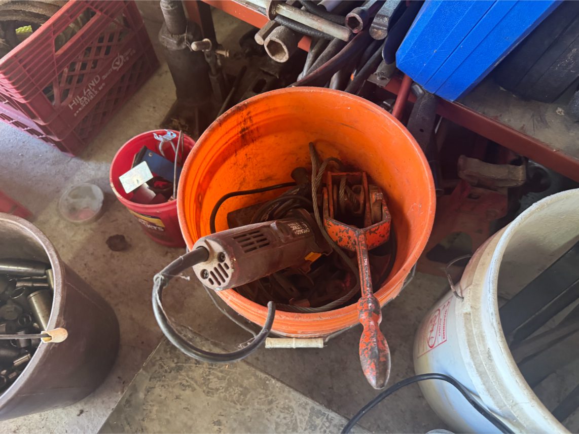 Tools/Shop Items: Miller Welder – Torch Set – 12 Ton Hydraulic Press – Generator – 2 Ton Hydraulic Engine Hoist – Mulchers and Wood Chippers – Plasma Cutter – Tire Machine – Tires – Miscellaneous Car Parts – Wires – Sheet Metal – Cable – Welding Helmet – Sand Blaster – Lincoln Welder/Generator – Electrical Switch Box – Batteries – Craftsman Saw – Drill Press – Refrigerant Gauge – Bracketed Caliper – Squares – Brake Pads – Tool Box – Hand Tools – Upright Air Compressor – Tool Cabinet – Dewalt Power Tools – Pipe Wrenches – Screwdrivers – Wrenches – Sockets – Scan Tool – Sears Bech Vise – Repair Cabinet – Belt Sander – Bench Grinders – Hammers – Chains – Crescent Wrenches – Power Tools – Jupiter Power Inverter – Drill Bits – Bottle Jacks – Tire Irons – Lead Hammers – Miter Saw – Vice Grip – Jerry Can – Crates – Cast Iron Pulley – Chainsaws – Wheel Balancer – Sheet Metal Break – Drywall Lift – Tire Changer – Tool Belts – Roofing Paper – Hydraulic Hose – Fuse Box -Garage Door Opener – Lumber – Wire Cable Reel – Angle Grinder – Husky Air Grinder – Floor Jack – Ratchet Wrenches – Auto Level – Saw Blades – Stihl Concrete Saw – Craftsman Table Saw – Plunge Router – Propane Tank – Metal Detector – Rigid Snakes – Tumbler – Wood Surveyor – Hand Saw – Work Light – Roofing Nails – Nail Gun – Dolly – Shovels – Plumbing PVC – Car Radiator – Ladders – Chicken Wire – Garden Fence – Paint Sprayers – Putty Knife – Blower Fan -Bolt Cutter – Tilt Trailer – Tires – Concrete Mixer – Water Pump – Pressure Tank – Yard Man Riding Lawn Mower – Rain Barrel – PVC Pipes – Wheelbarrow – Battery Charger – Air Compressor – Truck Toolbox – HVAC Units – Pallet Racking – Extension Cords – Tackle Boxes – Bicycle – Metal Barrels