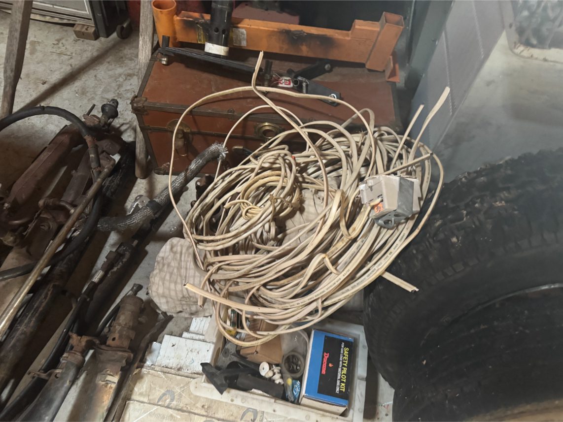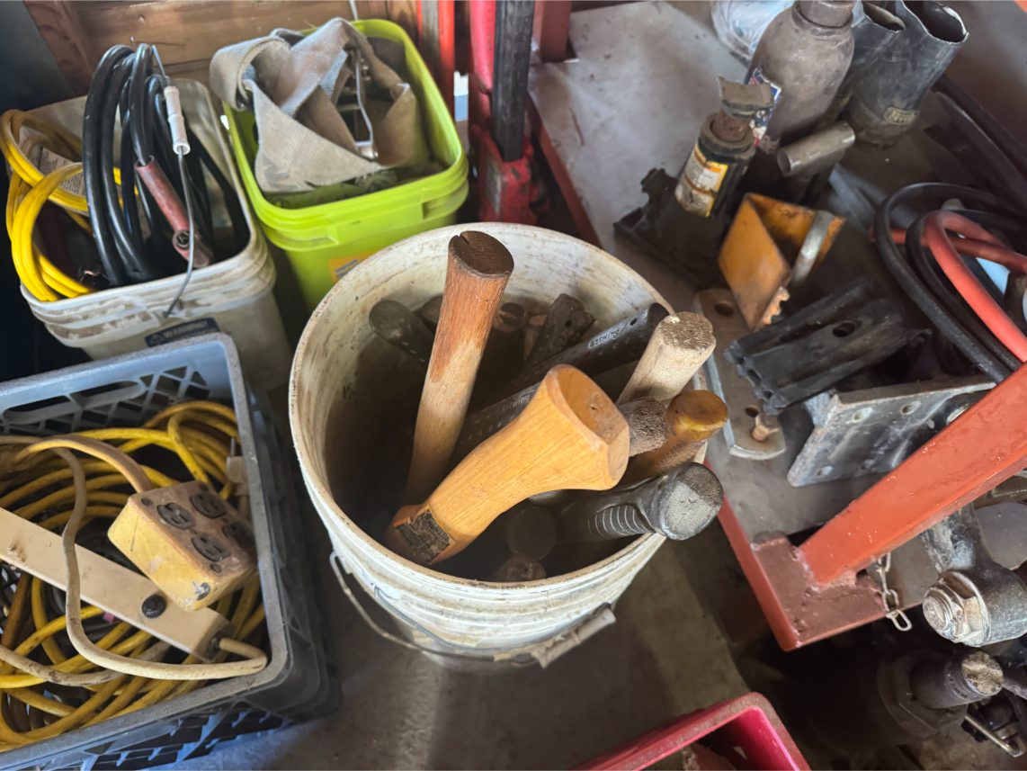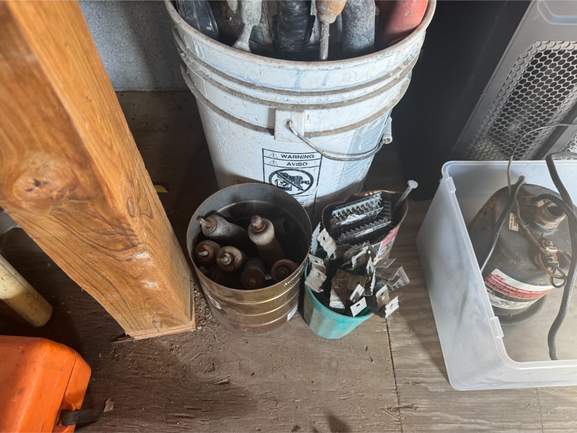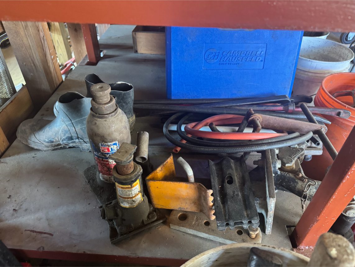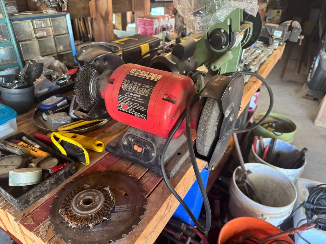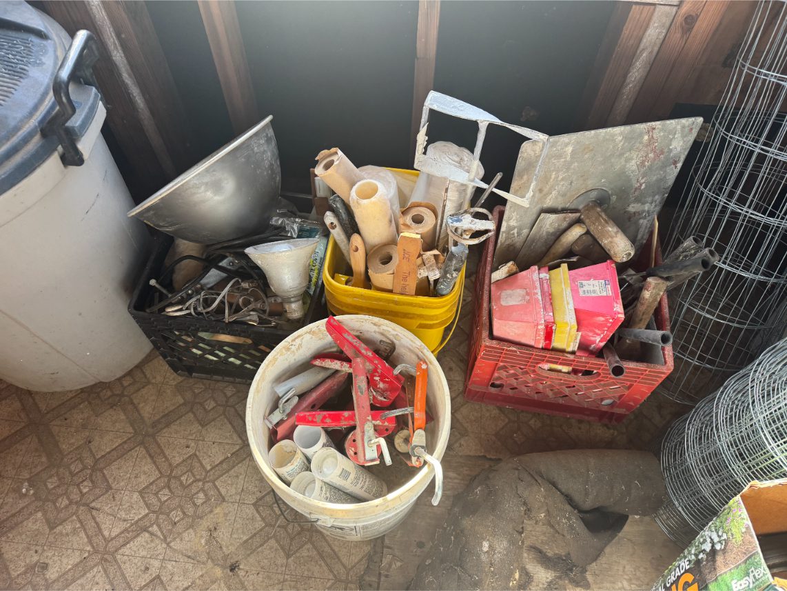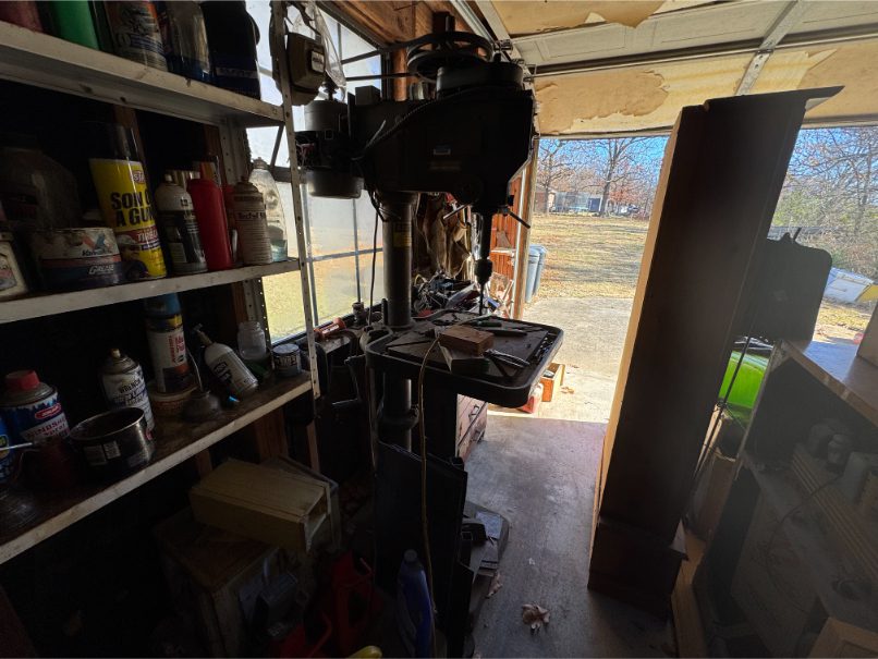 Tools/Shop Items: Miller Welder – Torch Set – 12 Ton Hydraulic Press – Generator – 2 Ton Hydraulic Engine Hoist – Mulchers and Wood Chippers – Plasma Cutter – Tire Machine – Tires – Miscellaneous Car Parts – Wires – Sheet Metal – Cable – Welding Helmet – Sand Blaster – Lincoln Welder/Generator – Electrical Switch Box – Batteries – Craftsman Saw – Drill Press – Refrigerant Gauge – Bracketed Caliper – Squares – Brake Pads – Tool Box – Hand Tools – Upright Air Compressor – Tool Cabinet – Dewalt Power Tools – Pipe Wrenches – Screwdrivers – Wrenches – Sockets – Scan Tool – Sears Bech Vise – Repair Cabinet – Belt Sander – Bench Grinders – Hammers – Chains – Crescent Wrenches – Power Tools – Jupiter Power Inverter – Drill Bits – Bottle Jacks – Tire Irons – Lead Hammers – Miter Saw – Vice Grip – Jerry Can – Crates – Cast Iron Pulley – Chainsaws – Wheel Balancer – Sheet Metal Break – Drywall Lift – Tire Changer – Tool Belts – Roofing Paper – Hydraulic Hose – Fuse Box -Garage Door Opener – Lumber – Wire Cable Reel – Angle Grinder – Husky Air Grinder – Floor Jack – Ratchet Wrenches – Auto Level – Saw Blades – Stihl Concrete Saw – Craftsman Table Saw – Plunge Router – Propane Tank – Metal Detector – Rigid Snakes – Tumbler – Wood Surveyor – Hand Saw – Work Light – Roofing Nails – Nail Gun – Dolly – Shovels – Plumbing PVC – Car Radiator – Ladders – Chicken Wire – Garden Fence – Paint Sprayers – Putty Knife – Blower Fan -Bolt Cutter – Tilt Trailer – Tires – Concrete Mixer – Water Pump – Pressure Tank – Yard Man Riding Lawn Mower – Rain Barrel – PVC Pipes – Wheelbarrow – Battery Charger – Air Compressor – Truck Toolbox – HVAC Units – Pallet Racking – Extension Cords – Tackle Boxes – Bicycle – Metal Barrels