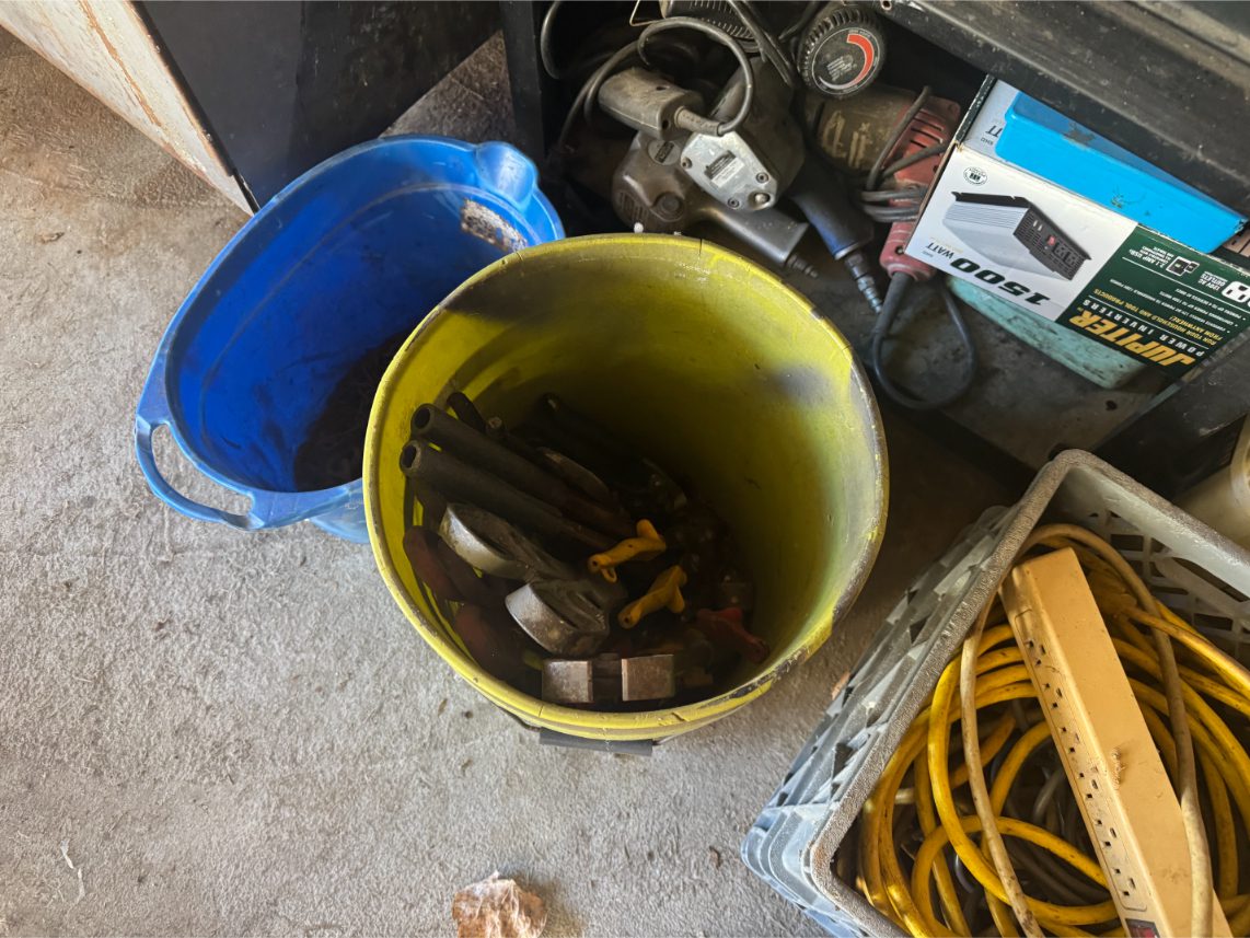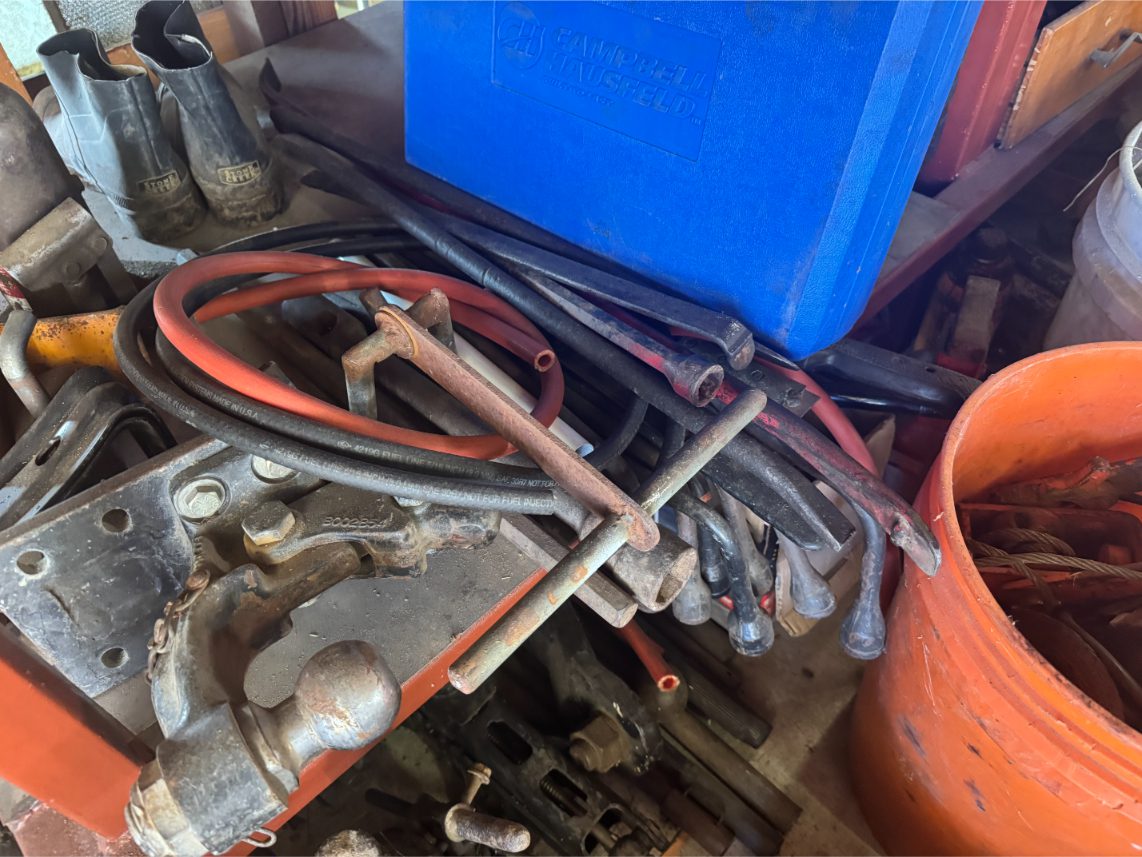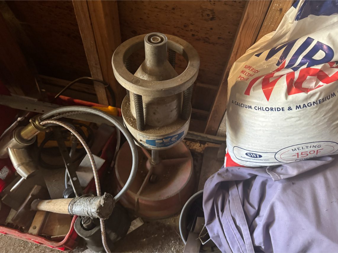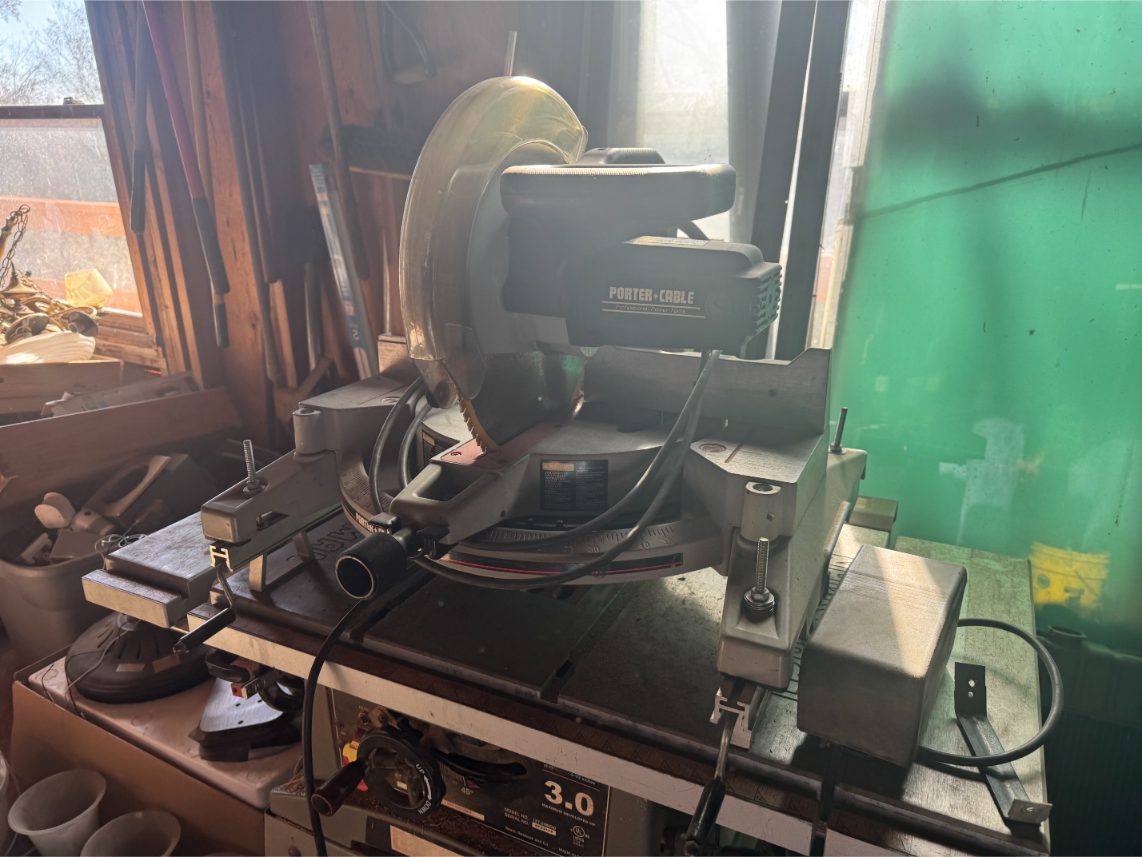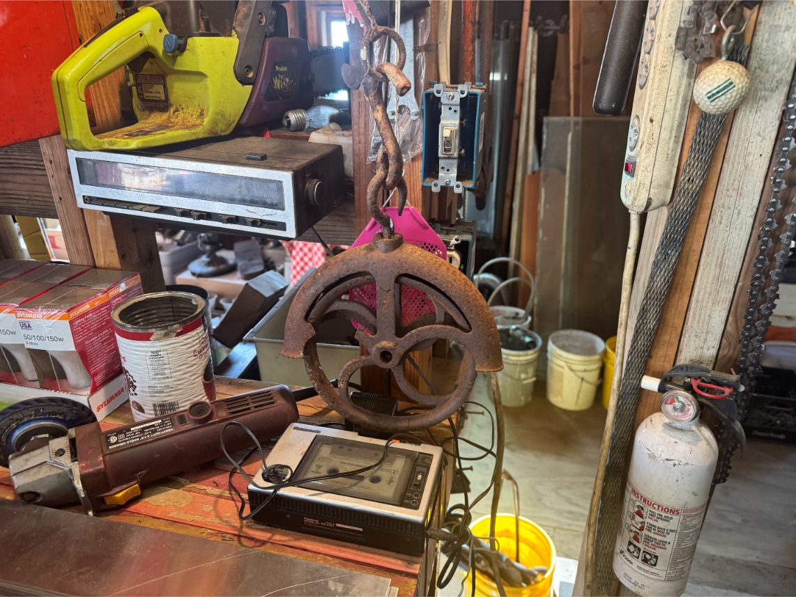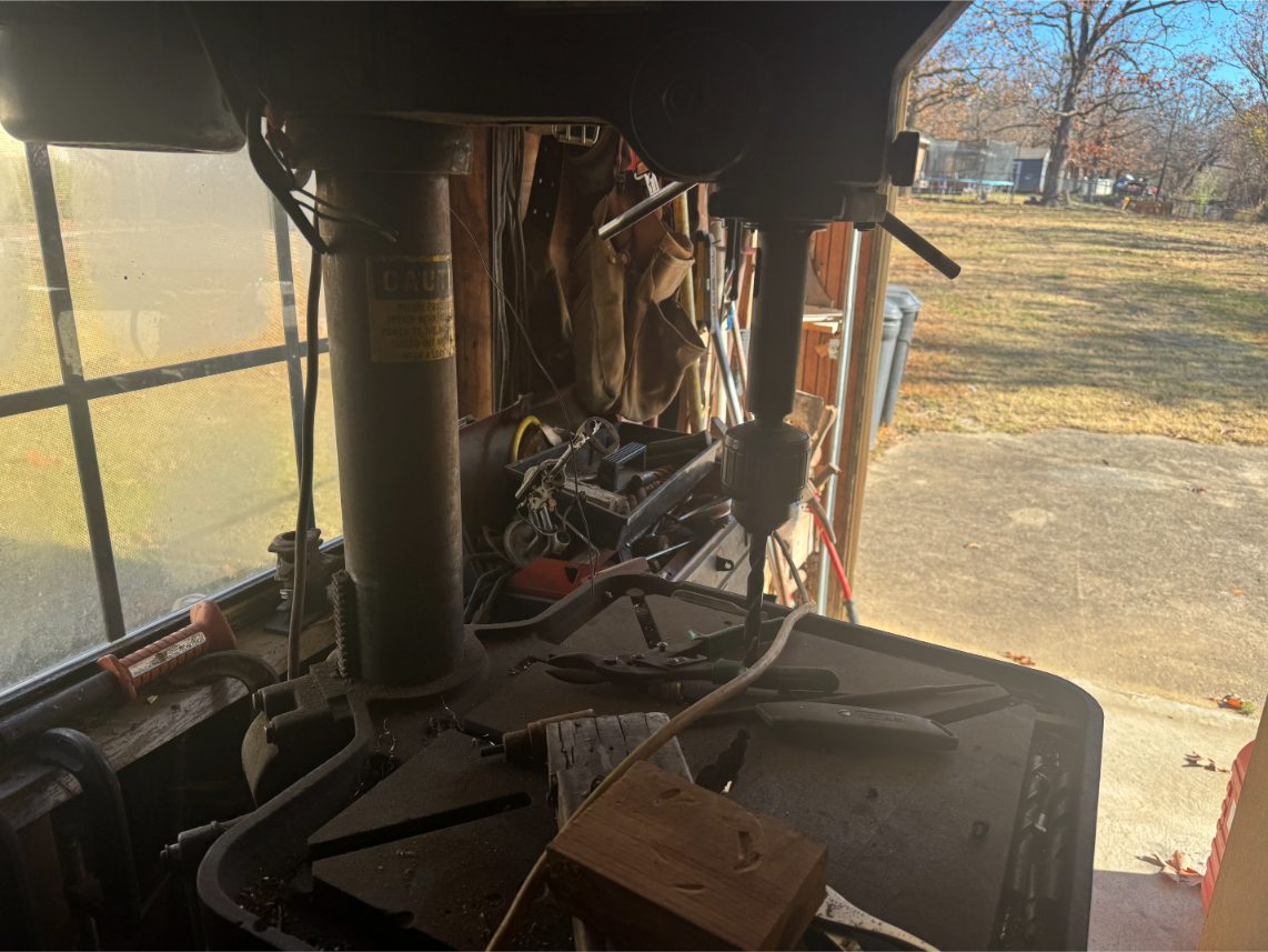 Tools/Shop Items: Miller Welder – Torch Set – 12 Ton Hydraulic Press – Generator – 2 Ton Hydraulic Engine Hoist – Mulchers and Wood Chippers – Plasma Cutter – Tire Machine – Tires – Miscellaneous Car Parts – Wires – Sheet Metal – Cable – Welding Helmet – Sand Blaster – Lincoln Welder/Generator – Electrical Switch Box – Batteries – Craftsman Saw – Drill Press – Refrigerant Gauge – Bracketed Caliper – Squares – Brake Pads – Tool Box – Hand Tools – Upright Air Compressor – Tool Cabinet – Dewalt Power Tools – Pipe Wrenches – Screwdrivers – Wrenches – Sockets – Scan Tool – Sears Bech Vise – Repair Cabinet – Belt Sander – Bench Grinders – Hammers – Chains – Crescent Wrenches – Power Tools – Jupiter Power Inverter – Drill Bits – Bottle Jacks – Tire Irons – Lead Hammers – Miter Saw – Vice Grip – Jerry Can – Crates – Cast Iron Pulley – Chainsaws – Wheel Balancer – Sheet Metal Break – Drywall Lift – Tire Changer – Tool Belts – Roofing Paper – Hydraulic Hose – Fuse Box -Garage Door Opener – Lumber – Wire Cable Reel – Angle Grinder – Husky Air Grinder – Floor Jack – Ratchet Wrenches – Auto Level – Saw Blades – Stihl Concrete Saw – Craftsman Table Saw – Plunge Router – Propane Tank – Metal Detector – Rigid Snakes – Tumbler – Wood Surveyor – Hand Saw – Work Light – Roofing Nails – Nail Gun – Dolly – Shovels – Plumbing PVC – Car Radiator – Ladders – Chicken Wire – Garden Fence – Paint Sprayers – Putty Knife – Blower Fan -Bolt Cutter – Tilt Trailer – Tires – Concrete Mixer – Water Pump – Pressure Tank – Yard Man Riding Lawn Mower – Rain Barrel – PVC Pipes – Wheelbarrow – Battery Charger – Air Compressor – Truck Toolbox – HVAC Units – Pallet Racking – Extension Cords – Tackle Boxes – Bicycle – Metal Barrels