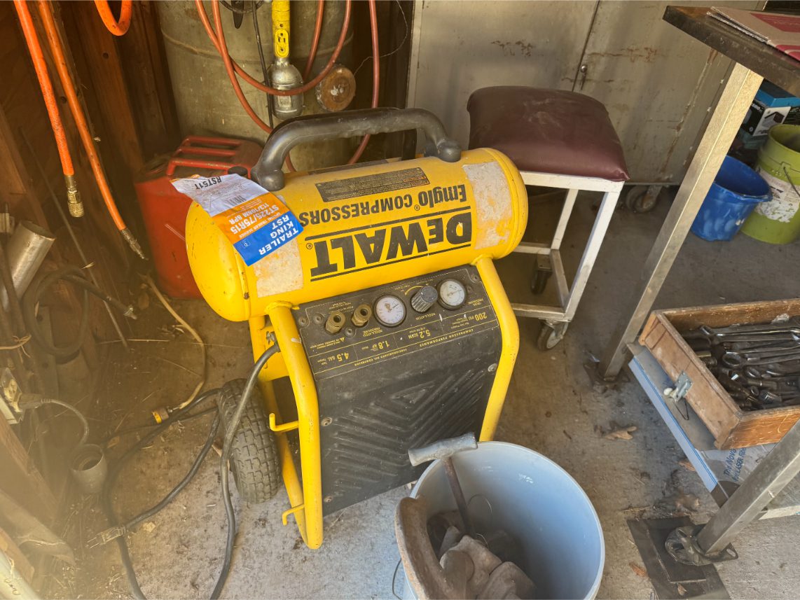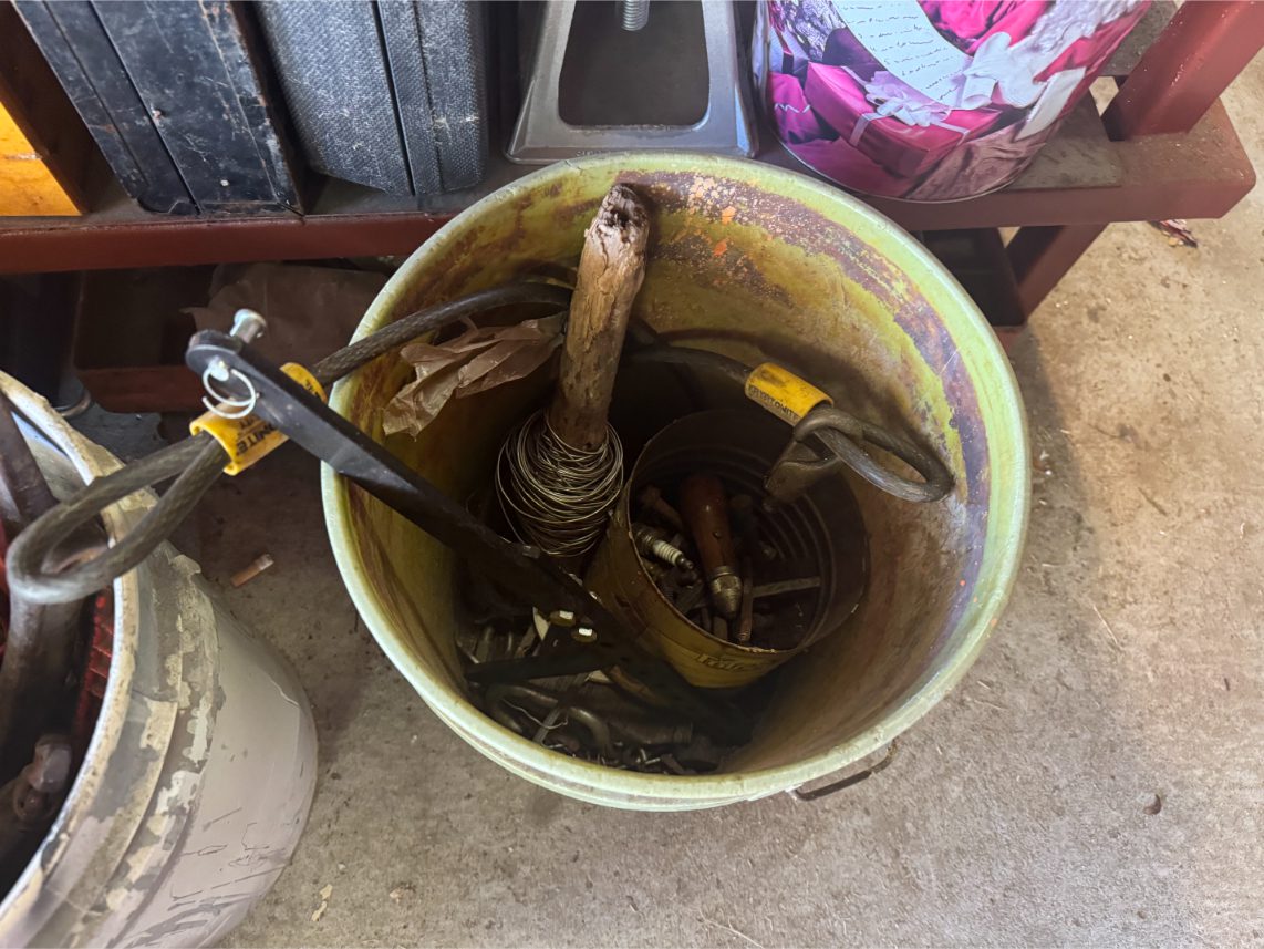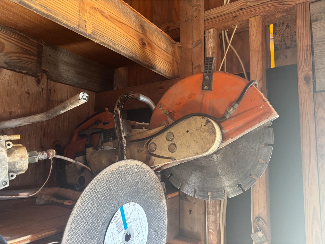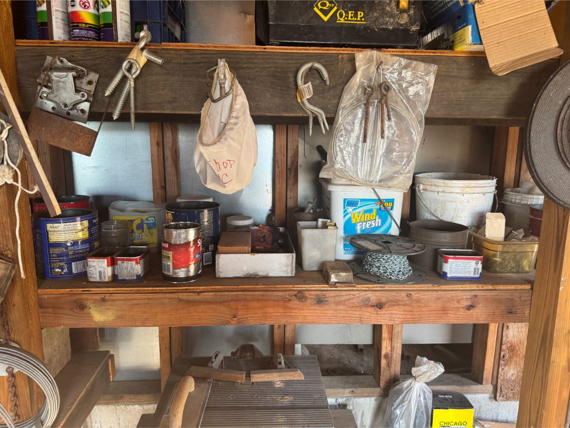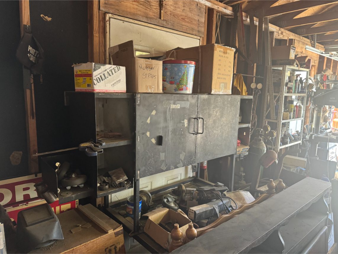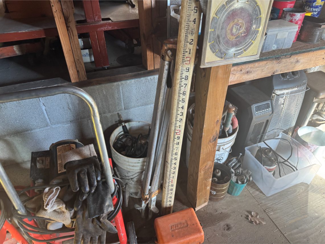 Tools/Shop Items: Miller Welder – Torch Set – 12 Ton Hydraulic Press – Generator – 2 Ton Hydraulic Engine Hoist – Mulchers and Wood Chippers – Plasma Cutter – Tire Machine – Tires – Miscellaneous Car Parts – Wires – Sheet Metal – Cable – Welding Helmet – Sand Blaster – Lincoln Welder/Generator – Electrical Switch Box – Batteries – Craftsman Saw – Drill Press – Refrigerant Gauge – Bracketed Caliper – Squares – Brake Pads – Tool Box – Hand Tools – Upright Air Compressor – Tool Cabinet – Dewalt Power Tools – Pipe Wrenches – Screwdrivers – Wrenches – Sockets – Scan Tool – Sears Bech Vise – Repair Cabinet – Belt Sander – Bench Grinders – Hammers – Chains – Crescent Wrenches – Power Tools – Jupiter Power Inverter – Drill Bits – Bottle Jacks – Tire Irons – Lead Hammers – Miter Saw – Vice Grip – Jerry Can – Crates – Cast Iron Pulley – Chainsaws – Wheel Balancer – Sheet Metal Break – Drywall Lift – Tire Changer – Tool Belts – Roofing Paper – Hydraulic Hose – Fuse Box -Garage Door Opener – Lumber – Wire Cable Reel – Angle Grinder – Husky Air Grinder – Floor Jack – Ratchet Wrenches – Auto Level – Saw Blades – Stihl Concrete Saw – Craftsman Table Saw – Plunge Router – Propane Tank – Metal Detector – Rigid Snakes – Tumbler – Wood Surveyor – Hand Saw – Work Light – Roofing Nails – Nail Gun – Dolly – Shovels – Plumbing PVC – Car Radiator – Ladders – Chicken Wire – Garden Fence – Paint Sprayers – Putty Knife – Blower Fan -Bolt Cutter – Tilt Trailer – Tires – Concrete Mixer – Water Pump – Pressure Tank – Yard Man Riding Lawn Mower – Rain Barrel – PVC Pipes – Wheelbarrow – Battery Charger – Air Compressor – Truck Toolbox – HVAC Units – Pallet Racking – Extension Cords – Tackle Boxes – Bicycle – Metal Barrels