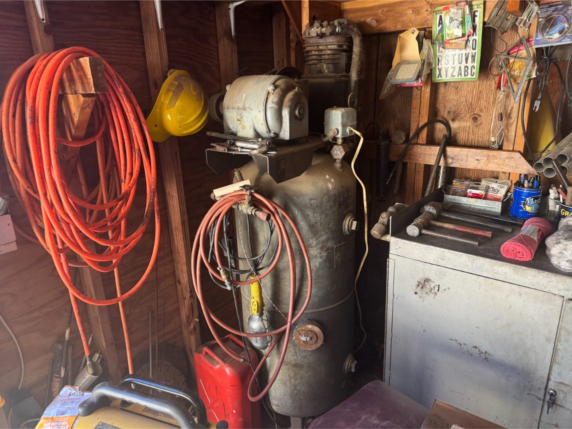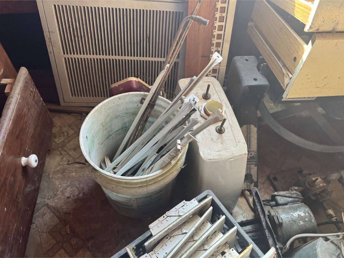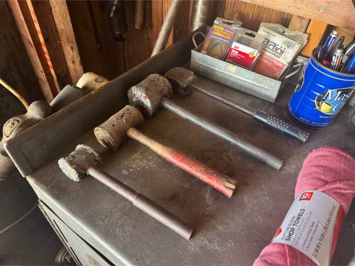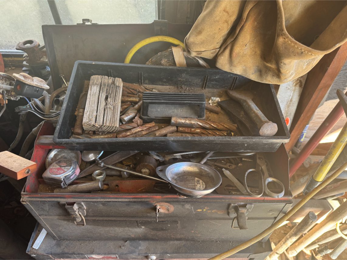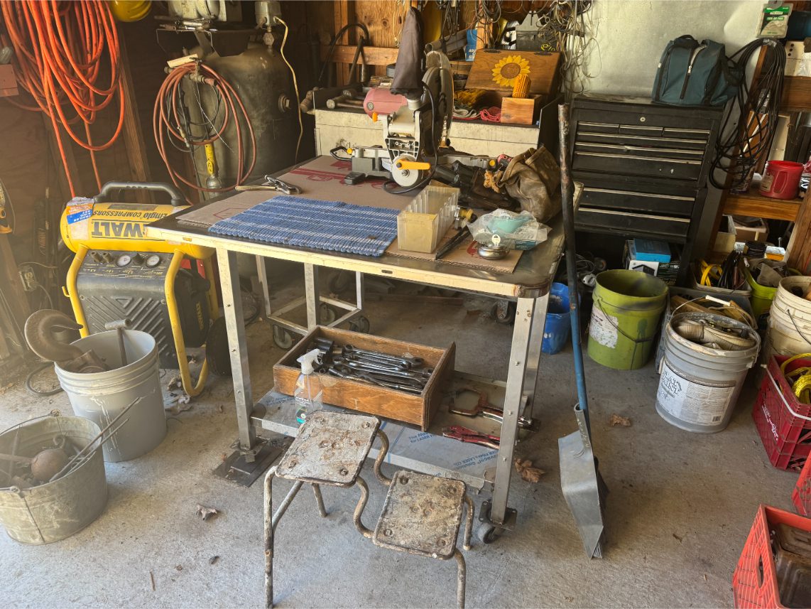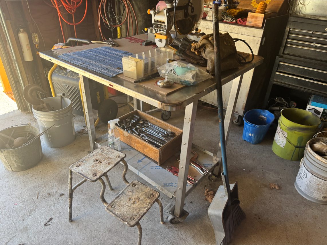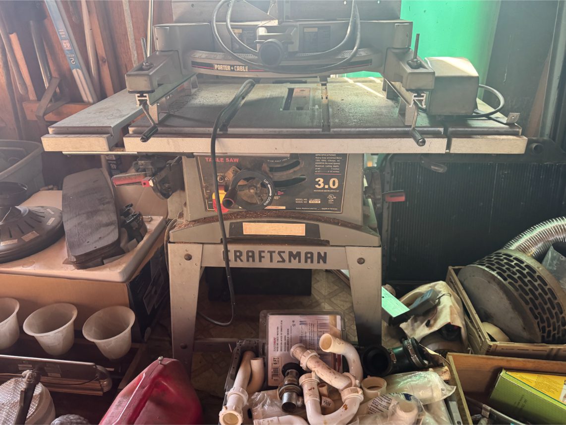 Tools/Shop Items: Miller Welder – Torch Set – 12 Ton Hydraulic Press – Generator – 2 Ton Hydraulic Engine Hoist – Mulchers and Wood Chippers – Plasma Cutter – Tire Machine – Tires – Miscellaneous Car Parts – Wires – Sheet Metal – Cable – Welding Helmet – Sand Blaster – Lincoln Welder/Generator – Electrical Switch Box – Batteries – Craftsman Saw – Drill Press – Refrigerant Gauge – Bracketed Caliper – Squares – Brake Pads – Tool Box – Hand Tools – Upright Air Compressor – Tool Cabinet – Dewalt Power Tools – Pipe Wrenches – Screwdrivers – Wrenches – Sockets – Scan Tool – Sears Bech Vise – Repair Cabinet – Belt Sander – Bench Grinders – Hammers – Chains – Crescent Wrenches – Power Tools – Jupiter Power Inverter – Drill Bits – Bottle Jacks – Tire Irons – Lead Hammers – Miter Saw – Vice Grip – Jerry Can – Crates – Cast Iron Pulley – Chainsaws – Wheel Balancer – Sheet Metal Break – Drywall Lift – Tire Changer – Tool Belts – Roofing Paper – Hydraulic Hose – Fuse Box -Garage Door Opener – Lumber – Wire Cable Reel – Angle Grinder – Husky Air Grinder – Floor Jack – Ratchet Wrenches – Auto Level – Saw Blades – Stihl Concrete Saw – Craftsman Table Saw – Plunge Router – Propane Tank – Metal Detector – Rigid Snakes – Tumbler – Wood Surveyor – Hand Saw – Work Light – Roofing Nails – Nail Gun – Dolly – Shovels – Plumbing PVC – Car Radiator – Ladders – Chicken Wire – Garden Fence – Paint Sprayers – Putty Knife – Blower Fan -Bolt Cutter – Tilt Trailer – Tires – Concrete Mixer – Water Pump – Pressure Tank – Yard Man Riding Lawn Mower – Rain Barrel – PVC Pipes – Wheelbarrow – Battery Charger – Air Compressor – Truck Toolbox – HVAC Units – Pallet Racking – Extension Cords – Tackle Boxes – Bicycle – Metal Barrels