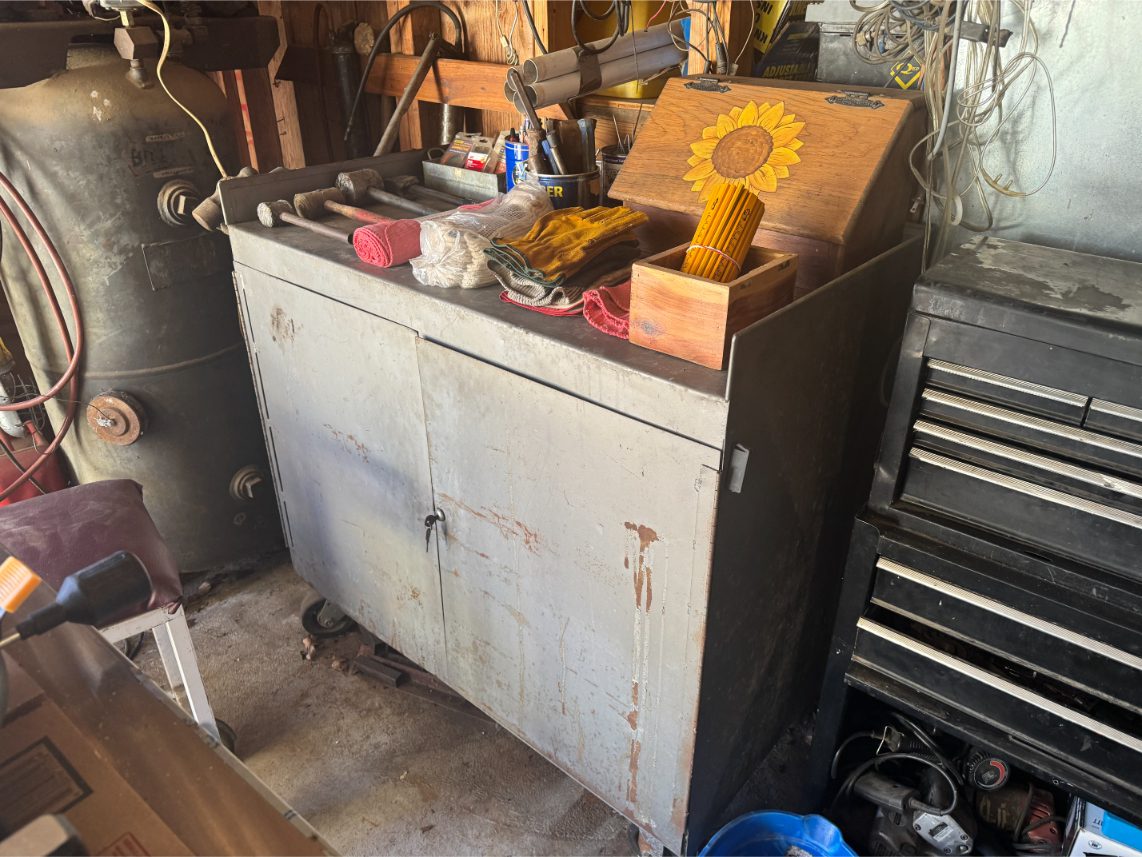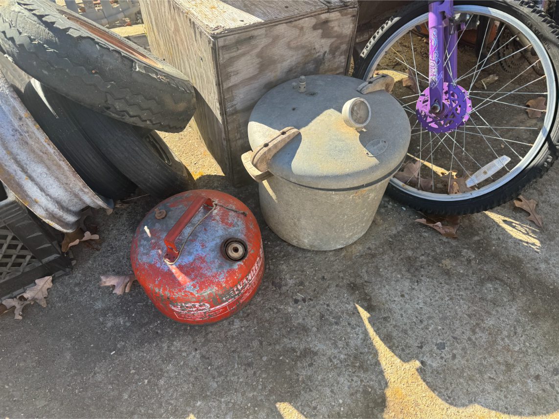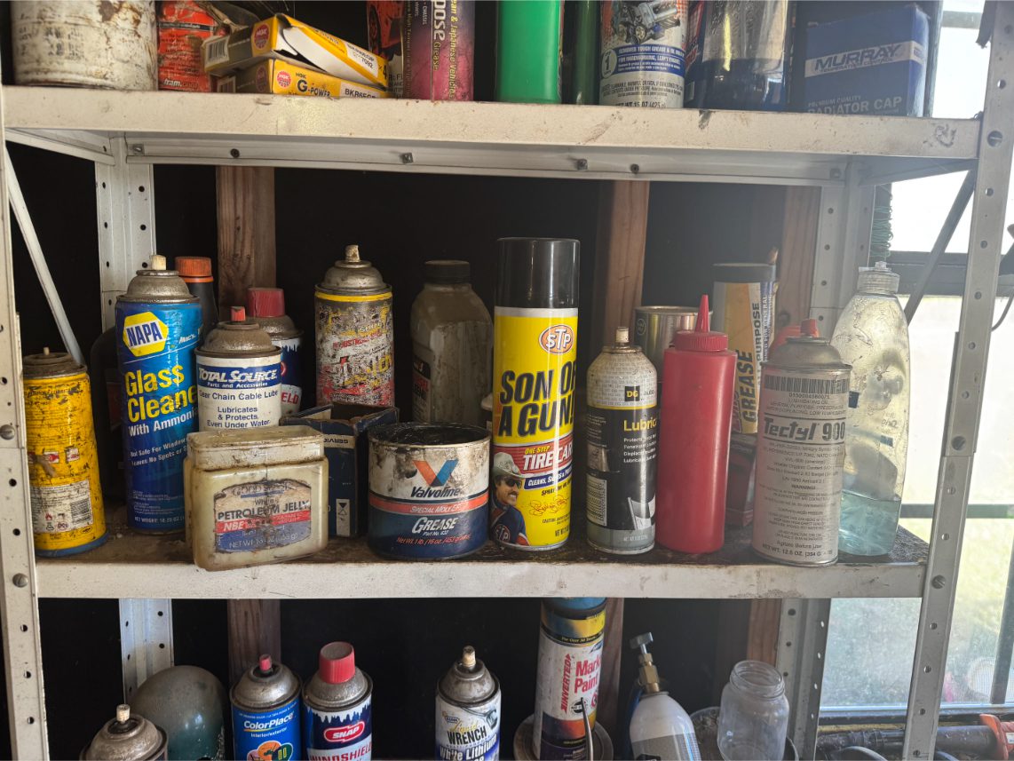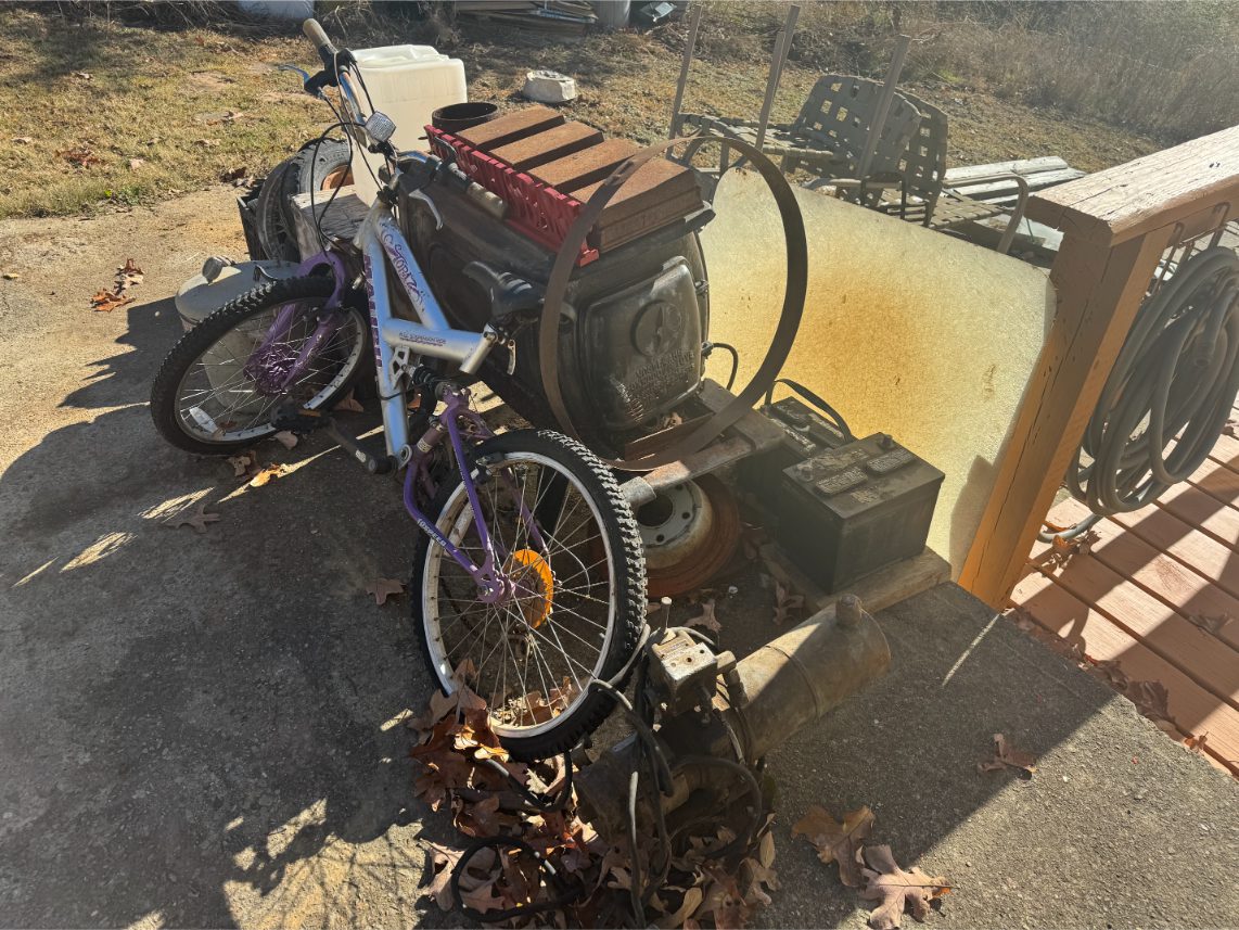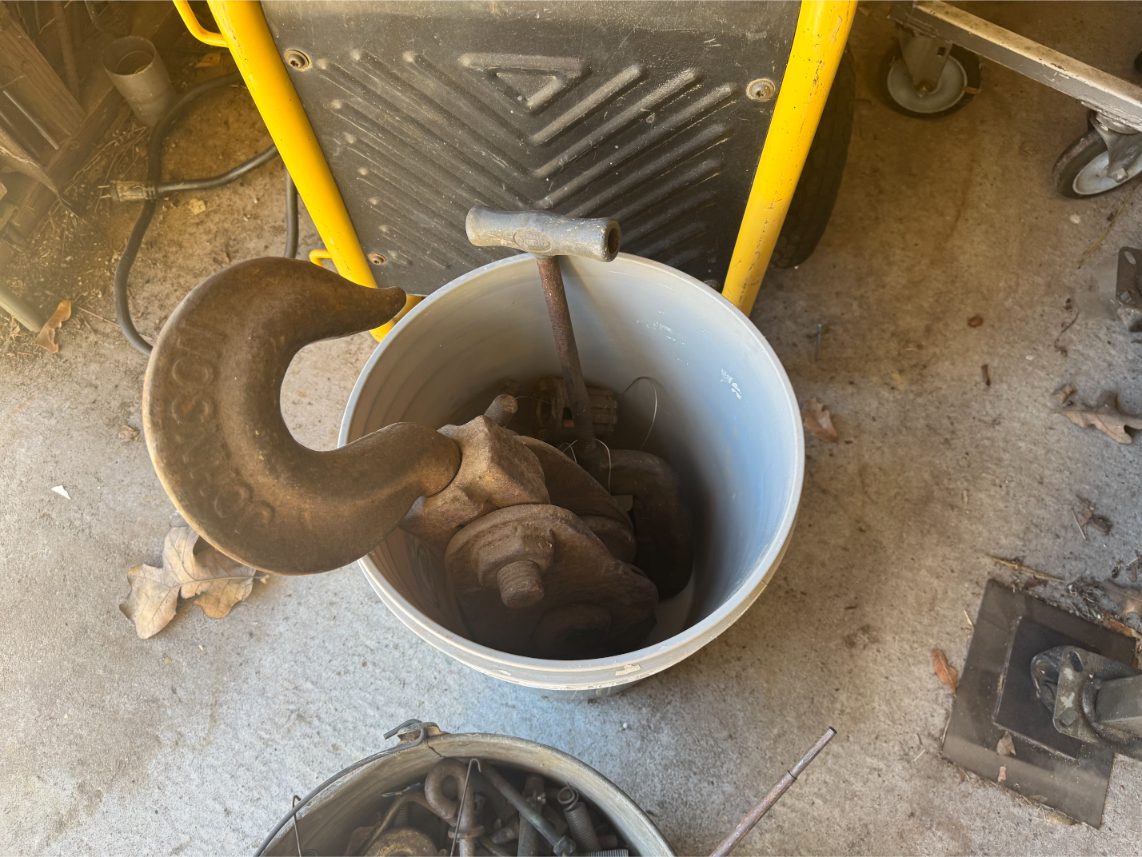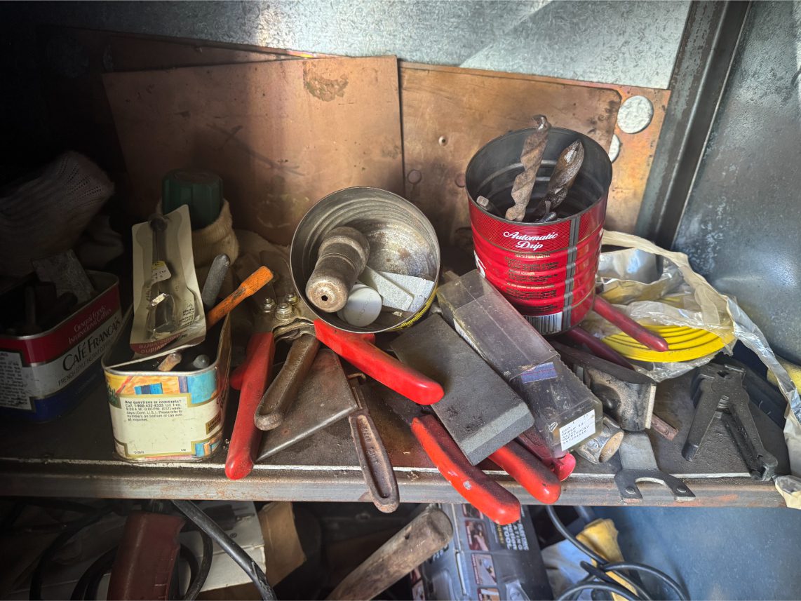 Tools/Shop Items: Miller Welder – Torch Set – 12 Ton Hydraulic Press – Generator – 2 Ton Hydraulic Engine Hoist – Mulchers and Wood Chippers – Plasma Cutter – Tire Machine – Tires – Miscellaneous Car Parts – Wires – Sheet Metal – Cable – Welding Helmet – Sand Blaster – Lincoln Welder/Generator – Electrical Switch Box – Batteries – Craftsman Saw – Drill Press – Refrigerant Gauge – Bracketed Caliper – Squares – Brake Pads – Tool Box – Hand Tools – Upright Air Compressor – Tool Cabinet – Dewalt Power Tools – Pipe Wrenches – Screwdrivers – Wrenches – Sockets – Scan Tool – Sears Bech Vise – Repair Cabinet – Belt Sander – Bench Grinders – Hammers – Chains – Crescent Wrenches – Power Tools – Jupiter Power Inverter – Drill Bits – Bottle Jacks – Tire Irons – Lead Hammers – Miter Saw – Vice Grip – Jerry Can – Crates – Cast Iron Pulley – Chainsaws – Wheel Balancer – Sheet Metal Break – Drywall Lift – Tire Changer – Tool Belts – Roofing Paper – Hydraulic Hose – Fuse Box -Garage Door Opener – Lumber – Wire Cable Reel – Angle Grinder – Husky Air Grinder – Floor Jack – Ratchet Wrenches – Auto Level – Saw Blades – Stihl Concrete Saw – Craftsman Table Saw – Plunge Router – Propane Tank – Metal Detector – Rigid Snakes – Tumbler – Wood Surveyor – Hand Saw – Work Light – Roofing Nails – Nail Gun – Dolly – Shovels – Plumbing PVC – Car Radiator – Ladders – Chicken Wire – Garden Fence – Paint Sprayers – Putty Knife – Blower Fan -Bolt Cutter – Tilt Trailer – Tires – Concrete Mixer – Water Pump – Pressure Tank – Yard Man Riding Lawn Mower – Rain Barrel – PVC Pipes – Wheelbarrow – Battery Charger – Air Compressor – Truck Toolbox – HVAC Units – Pallet Racking – Extension Cords – Tackle Boxes – Bicycle – Metal Barrels