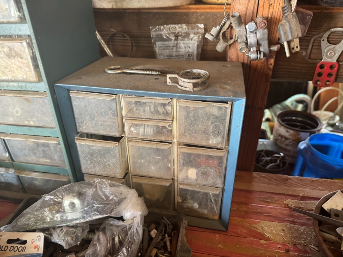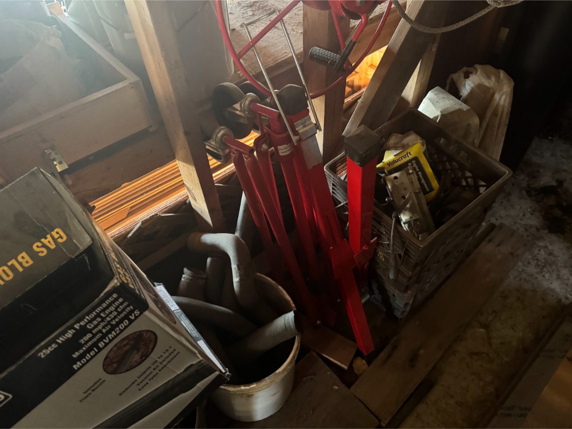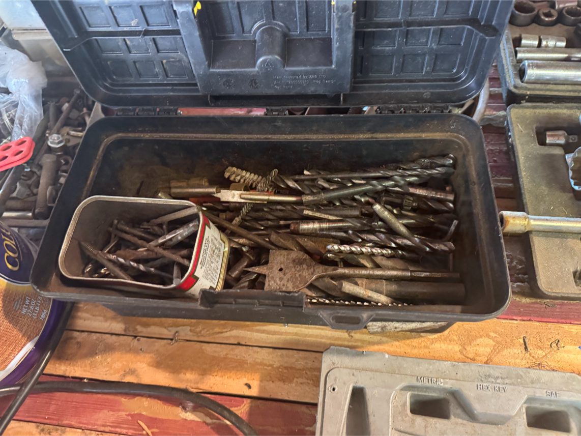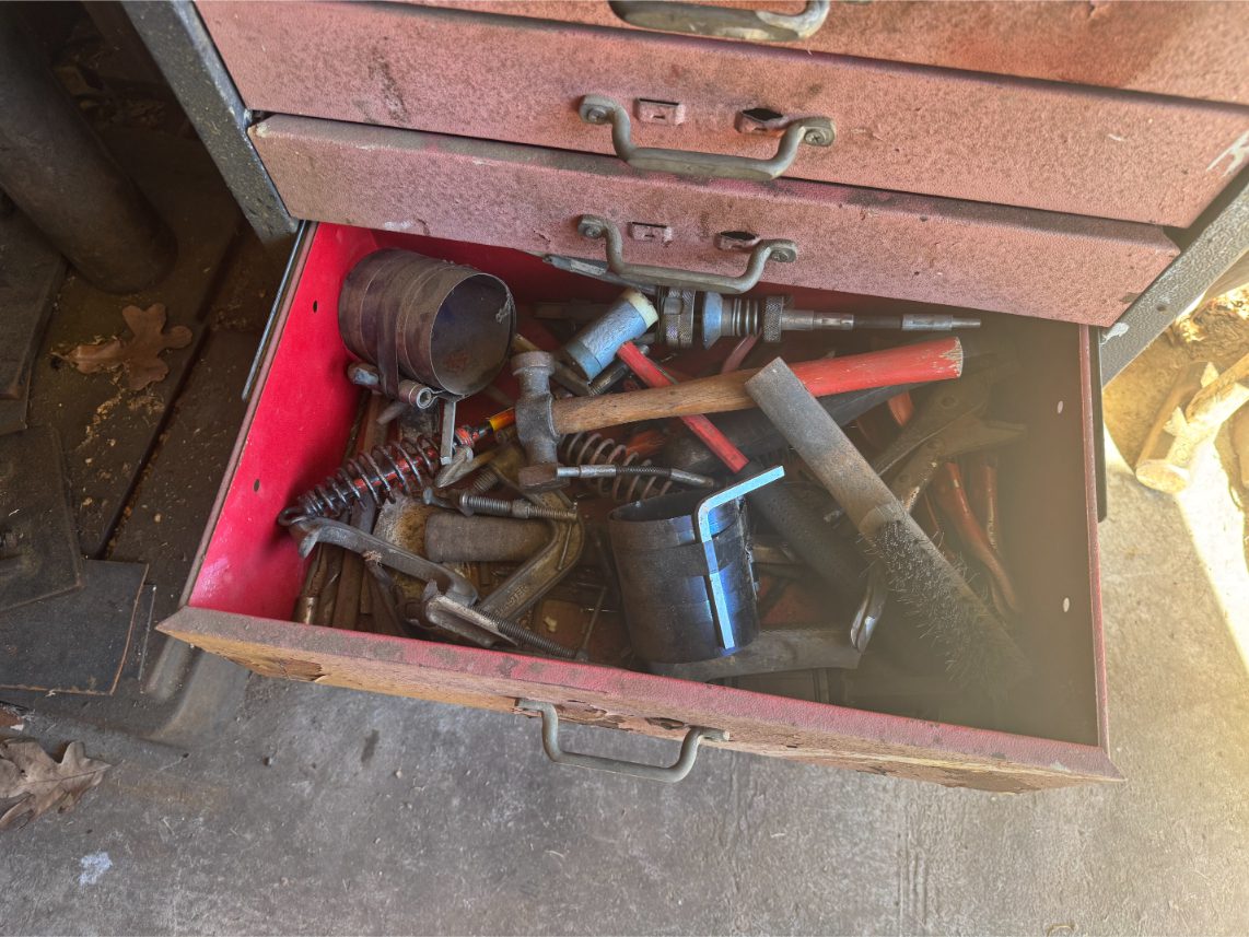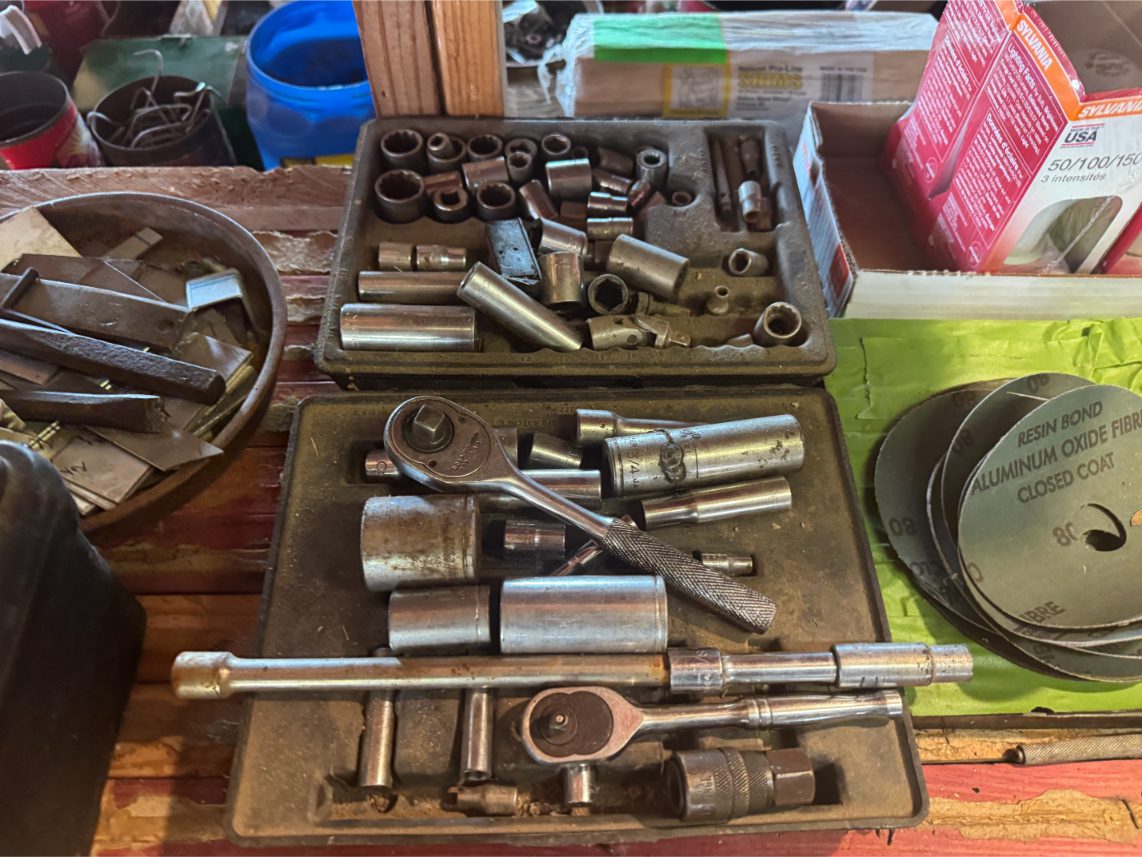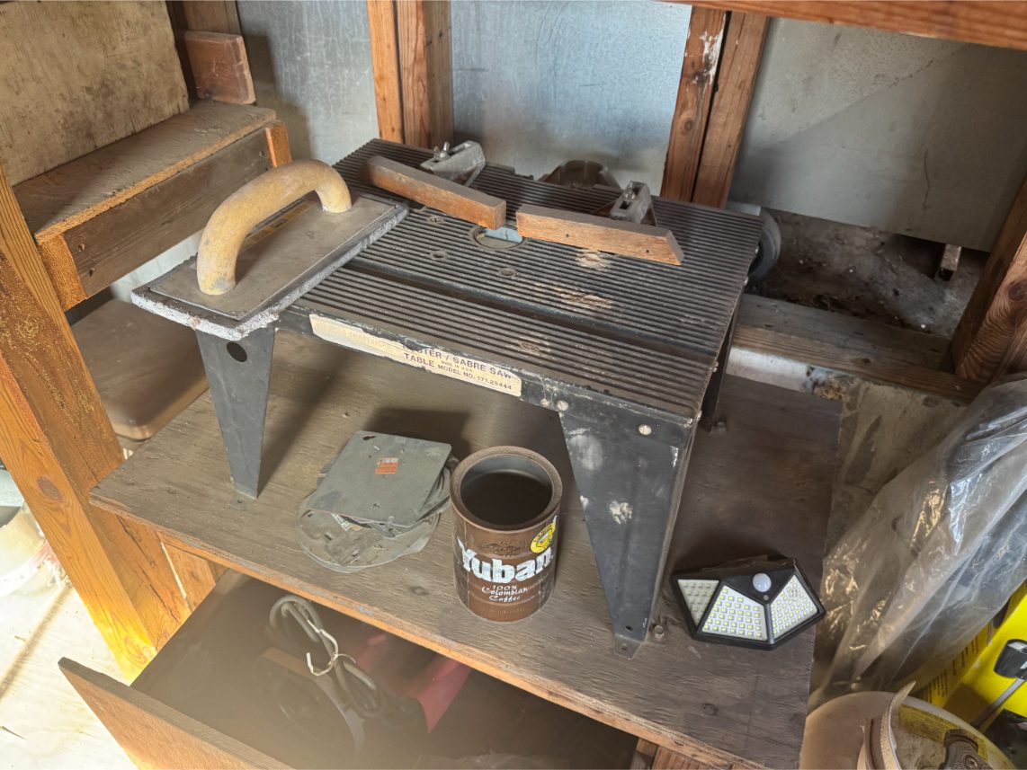 Tools/Shop Items: Miller Welder – Torch Set – 12 Ton Hydraulic Press – Generator – 2 Ton Hydraulic Engine Hoist – Mulchers and Wood Chippers – Plasma Cutter – Tire Machine – Tires – Miscellaneous Car Parts – Wires – Sheet Metal – Cable – Welding Helmet – Sand Blaster – Lincoln Welder/Generator – Electrical Switch Box – Batteries – Craftsman Saw – Drill Press – Refrigerant Gauge – Bracketed Caliper – Squares – Brake Pads – Tool Box – Hand Tools – Upright Air Compressor – Tool Cabinet – Dewalt Power Tools – Pipe Wrenches – Screwdrivers – Wrenches – Sockets – Scan Tool – Sears Bech Vise – Repair Cabinet – Belt Sander – Bench Grinders – Hammers – Chains – Crescent Wrenches – Power Tools – Jupiter Power Inverter – Drill Bits – Bottle Jacks – Tire Irons – Lead Hammers – Miter Saw – Vice Grip – Jerry Can – Crates – Cast Iron Pulley – Chainsaws – Wheel Balancer – Sheet Metal Break – Drywall Lift – Tire Changer – Tool Belts – Roofing Paper – Hydraulic Hose – Fuse Box -Garage Door Opener – Lumber – Wire Cable Reel – Angle Grinder – Husky Air Grinder – Floor Jack – Ratchet Wrenches – Auto Level – Saw Blades – Stihl Concrete Saw – Craftsman Table Saw – Plunge Router – Propane Tank – Metal Detector – Rigid Snakes – Tumbler – Wood Surveyor – Hand Saw – Work Light – Roofing Nails – Nail Gun – Dolly – Shovels – Plumbing PVC – Car Radiator – Ladders – Chicken Wire – Garden Fence – Paint Sprayers – Putty Knife – Blower Fan -Bolt Cutter – Tilt Trailer – Tires – Concrete Mixer – Water Pump – Pressure Tank – Yard Man Riding Lawn Mower – Rain Barrel – PVC Pipes – Wheelbarrow – Battery Charger – Air Compressor – Truck Toolbox – HVAC Units – Pallet Racking – Extension Cords – Tackle Boxes – Bicycle – Metal Barrels