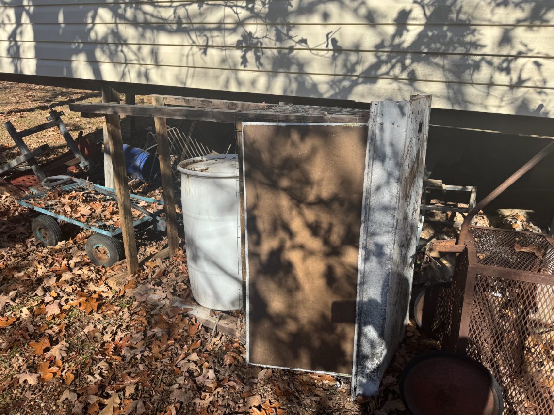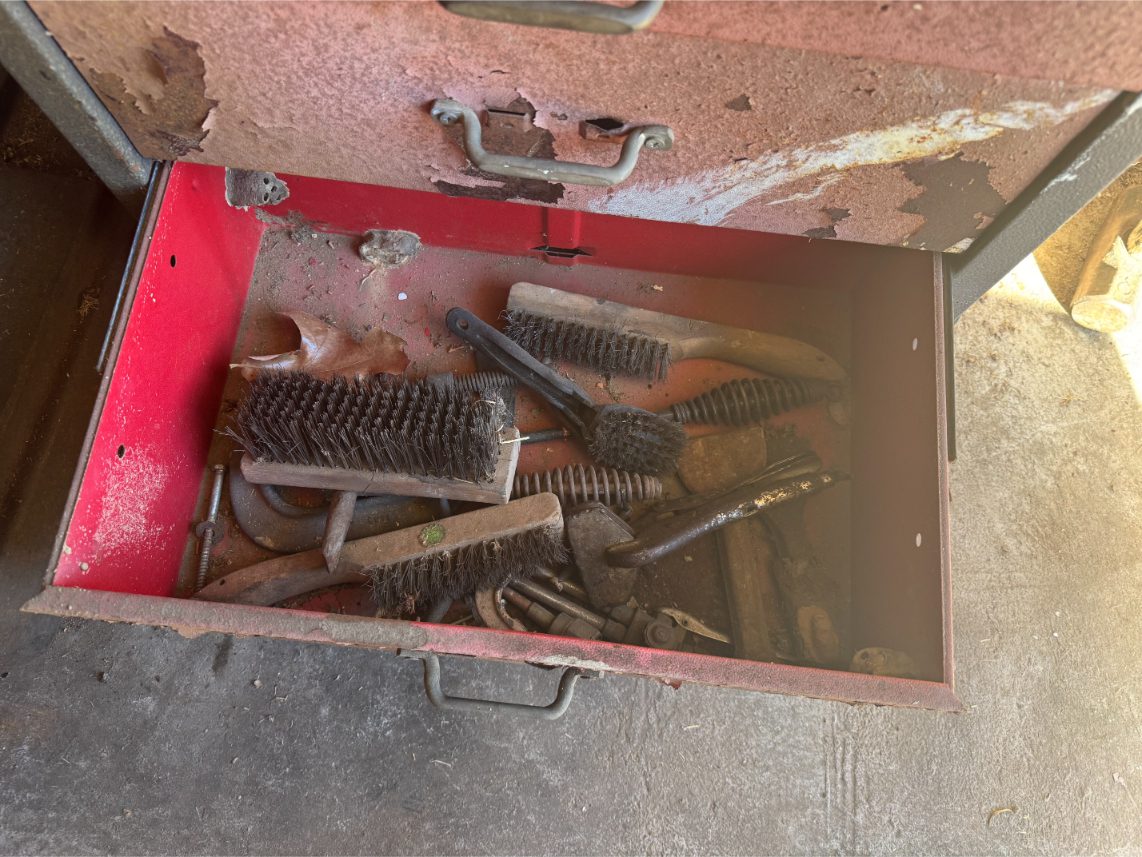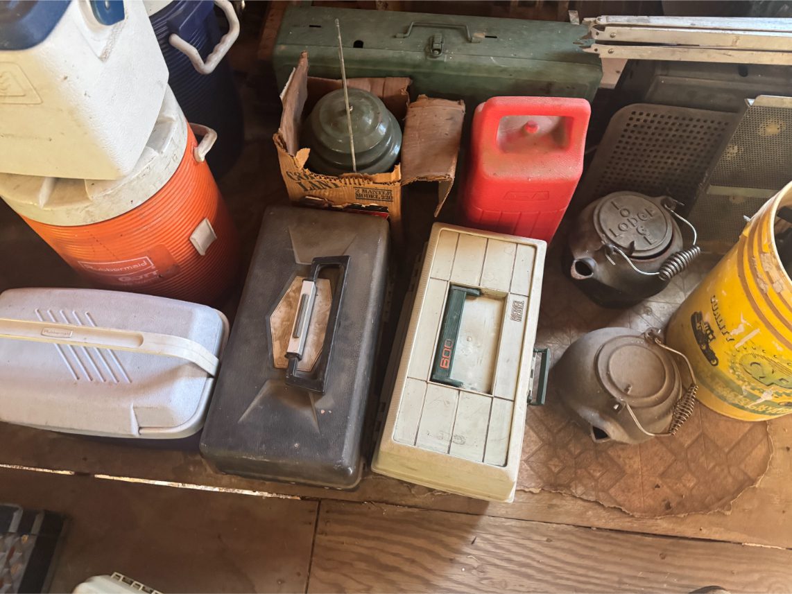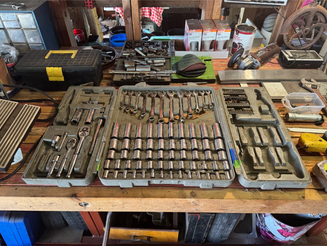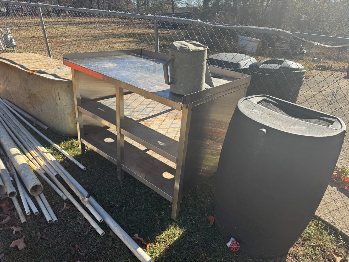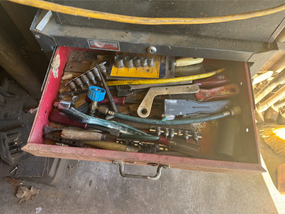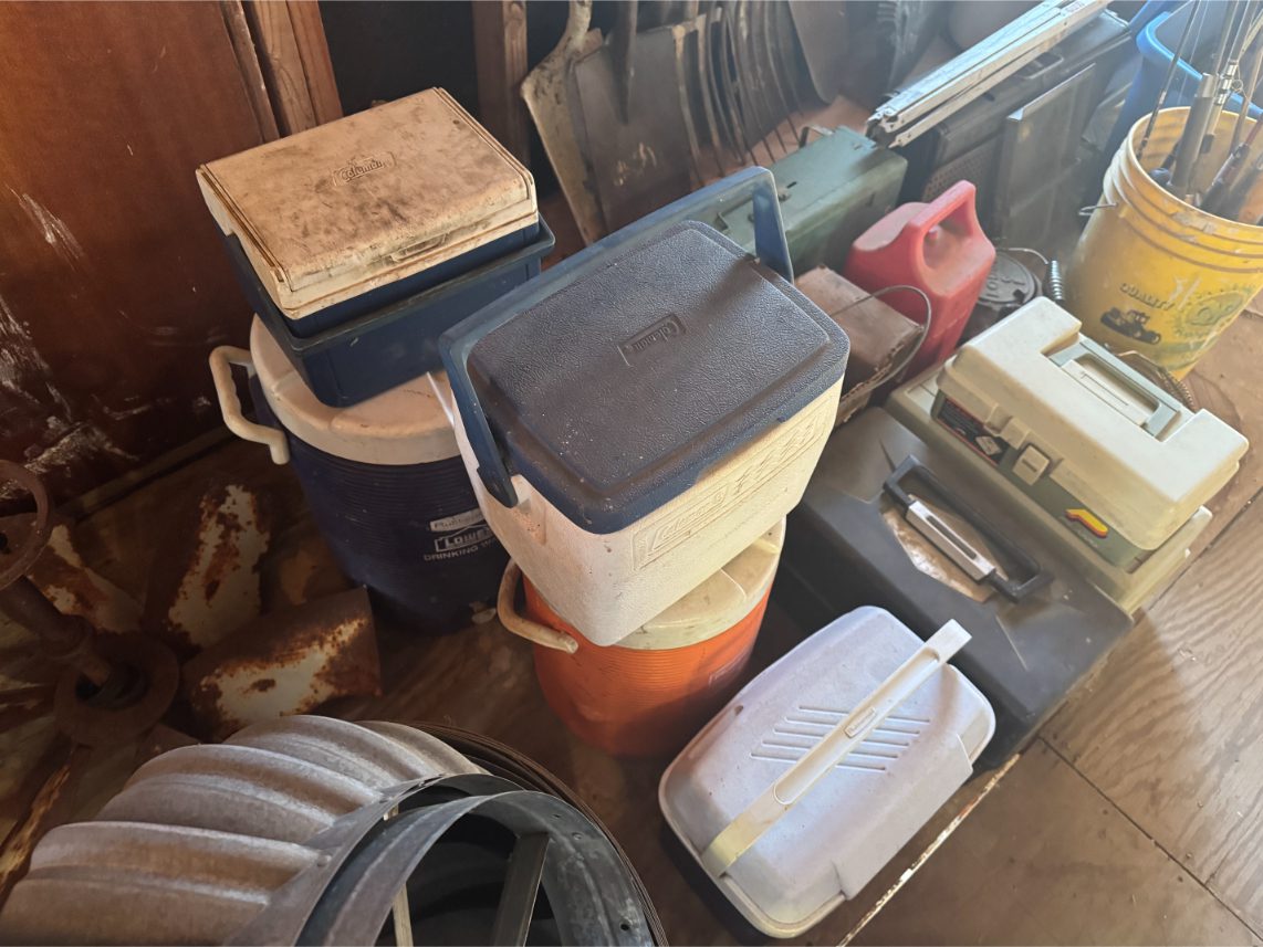 Tools/Shop Items: Miller Welder – Torch Set – 12 Ton Hydraulic Press – Generator – 2 Ton Hydraulic Engine Hoist – Mulchers and Wood Chippers – Plasma Cutter – Tire Machine – Tires – Miscellaneous Car Parts – Wires – Sheet Metal – Cable – Welding Helmet – Sand Blaster – Lincoln Welder/Generator – Electrical Switch Box – Batteries – Craftsman Saw – Drill Press – Refrigerant Gauge – Bracketed Caliper – Squares – Brake Pads – Tool Box – Hand Tools – Upright Air Compressor – Tool Cabinet – Dewalt Power Tools – Pipe Wrenches – Screwdrivers – Wrenches – Sockets – Scan Tool – Sears Bech Vise – Repair Cabinet – Belt Sander – Bench Grinders – Hammers – Chains – Crescent Wrenches – Power Tools – Jupiter Power Inverter – Drill Bits – Bottle Jacks – Tire Irons – Lead Hammers – Miter Saw – Vice Grip – Jerry Can – Crates – Cast Iron Pulley – Chainsaws – Wheel Balancer – Sheet Metal Break – Drywall Lift – Tire Changer – Tool Belts – Roofing Paper – Hydraulic Hose – Fuse Box -Garage Door Opener – Lumber – Wire Cable Reel – Angle Grinder – Husky Air Grinder – Floor Jack – Ratchet Wrenches – Auto Level – Saw Blades – Stihl Concrete Saw – Craftsman Table Saw – Plunge Router – Propane Tank – Metal Detector – Rigid Snakes – Tumbler – Wood Surveyor – Hand Saw – Work Light – Roofing Nails – Nail Gun – Dolly – Shovels – Plumbing PVC – Car Radiator – Ladders – Chicken Wire – Garden Fence – Paint Sprayers – Putty Knife – Blower Fan -Bolt Cutter – Tilt Trailer – Tires – Concrete Mixer – Water Pump – Pressure Tank – Yard Man Riding Lawn Mower – Rain Barrel – PVC Pipes – Wheelbarrow – Battery Charger – Air Compressor – Truck Toolbox – HVAC Units – Pallet Racking – Extension Cords – Tackle Boxes – Bicycle – Metal Barrels