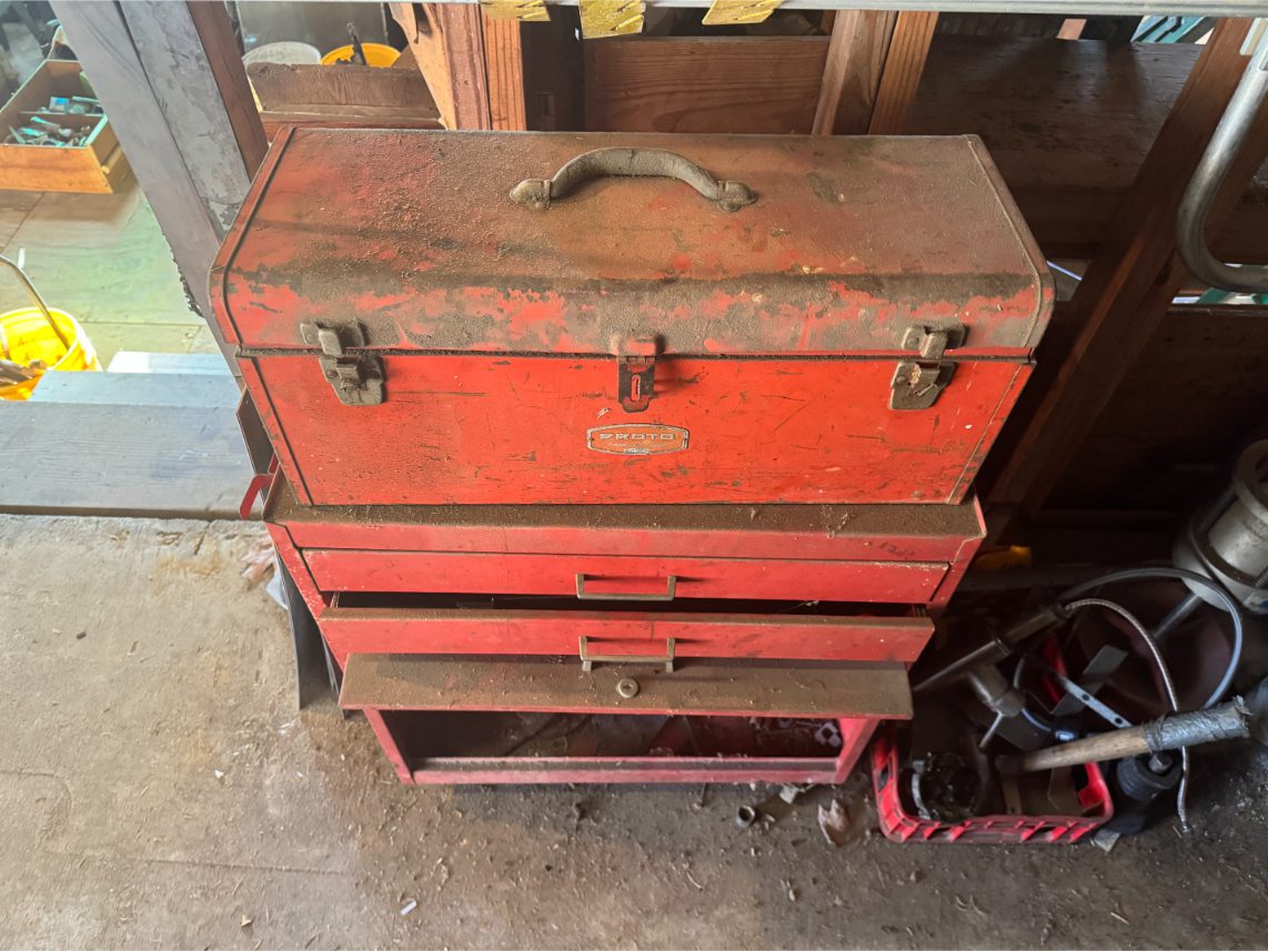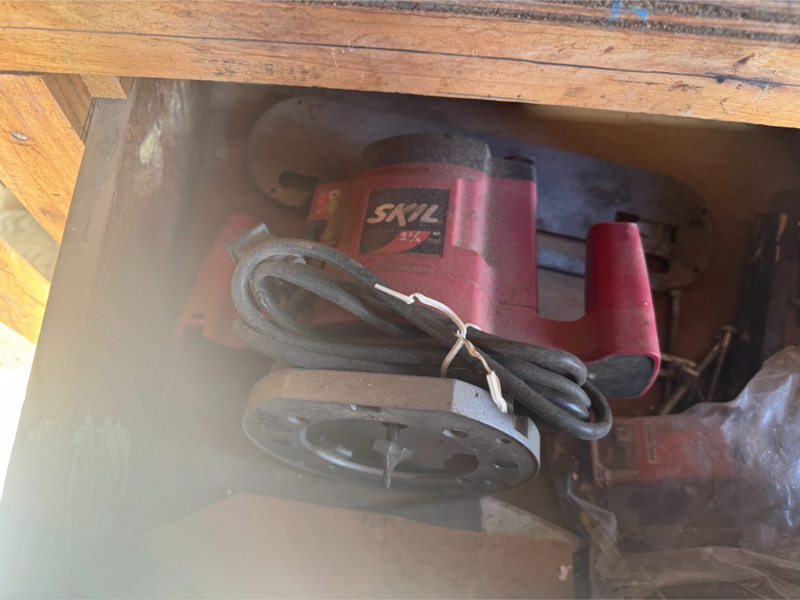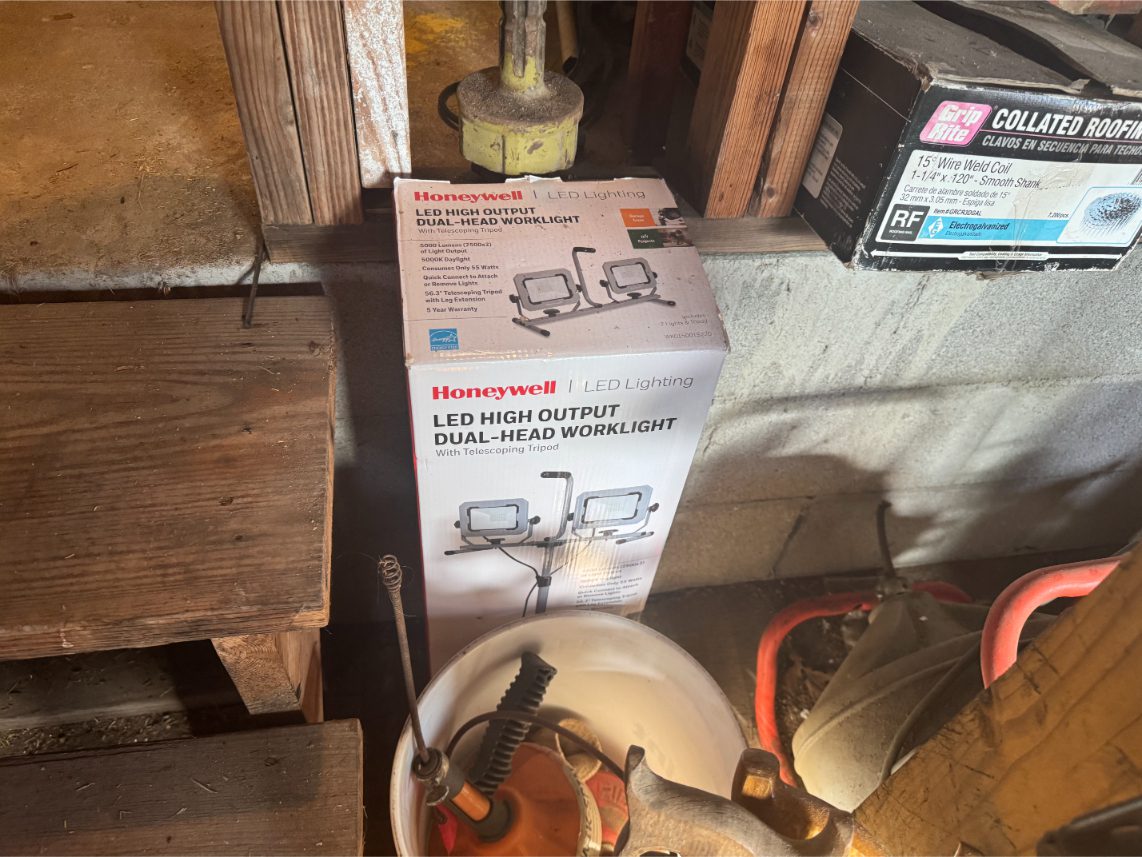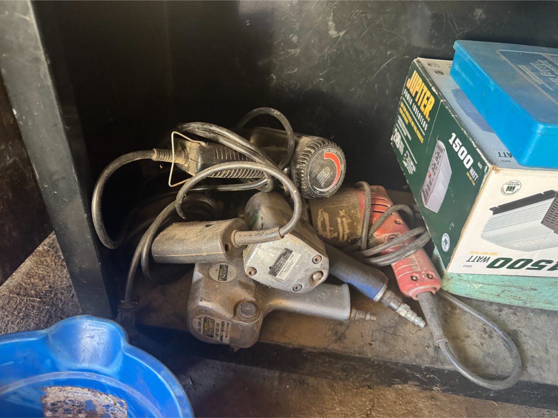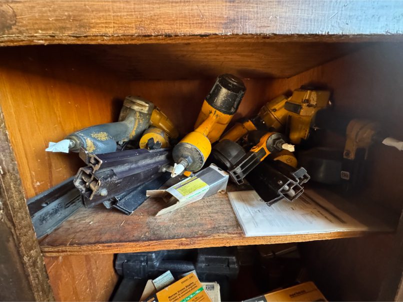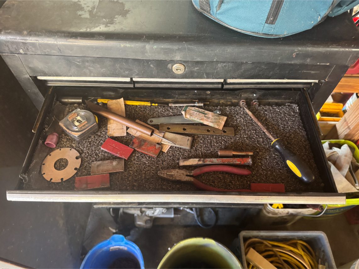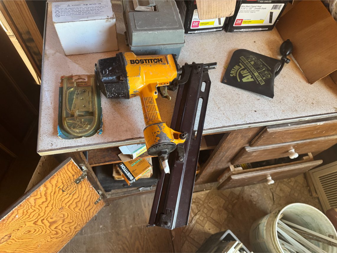Tools/Shop Items: Miller Welder – Torch Set – 12 Ton Hydraulic Press – Generator – 2 Ton Hydraulic Engine Hoist – Mulchers and Wood Chippers – Plasma Cutter – Tire Machine – Tires – Miscellaneous Car Parts – Wires – Sheet Metal – Cable – Welding Helmet – Sand Blaster – Lincoln Welder/Generator – Electrical Switch Box – Batteries – Craftsman Saw – Drill Press – Refrigerant Gauge – Bracketed Caliper – Squares – Brake Pads – Tool Box – Hand Tools – Upright Air Compressor – Tool Cabinet – Dewalt Power Tools – Pipe Wrenches – Screwdrivers – Wrenches – Sockets – Scan Tool – Sears Bech Vise – Repair Cabinet – Belt Sander – Bench Grinders – Hammers – Chains – Crescent Wrenches – Power Tools – Jupiter Power Inverter – Drill Bits – Bottle Jacks – Tire Irons – Lead Hammers – Miter Saw – Vice Grip – Jerry Can – Crates – Cast Iron Pulley – Chainsaws – Wheel Balancer – Sheet Metal Break – Drywall Lift – Tire Changer – Tool Belts – Roofing Paper – Hydraulic Hose – Fuse Box -Garage Door Opener – Lumber – Wire Cable Reel – Angle Grinder – Husky Air Grinder – Floor Jack – Ratchet Wrenches – Auto Level – Saw Blades – Stihl Concrete Saw – Craftsman Table Saw – Plunge Router – Propane Tank – Metal Detector – Rigid Snakes – Tumbler – Wood Surveyor – Hand Saw – Work Light – Roofing Nails – Nail Gun – Dolly – Shovels – Plumbing PVC – Car Radiator – Ladders – Chicken Wire – Garden Fence – Paint Sprayers – Putty Knife – Blower Fan -Bolt Cutter – Tilt Trailer – Tires – Concrete Mixer – Water Pump – Pressure Tank – Yard Man Riding Lawn Mower – Rain Barrel – PVC Pipes – Wheelbarrow – Battery Charger – Air Compressor – Truck Toolbox – HVAC Units – Pallet Racking – Extension Cords – Tackle Boxes – Bicycle – Metal Barrels