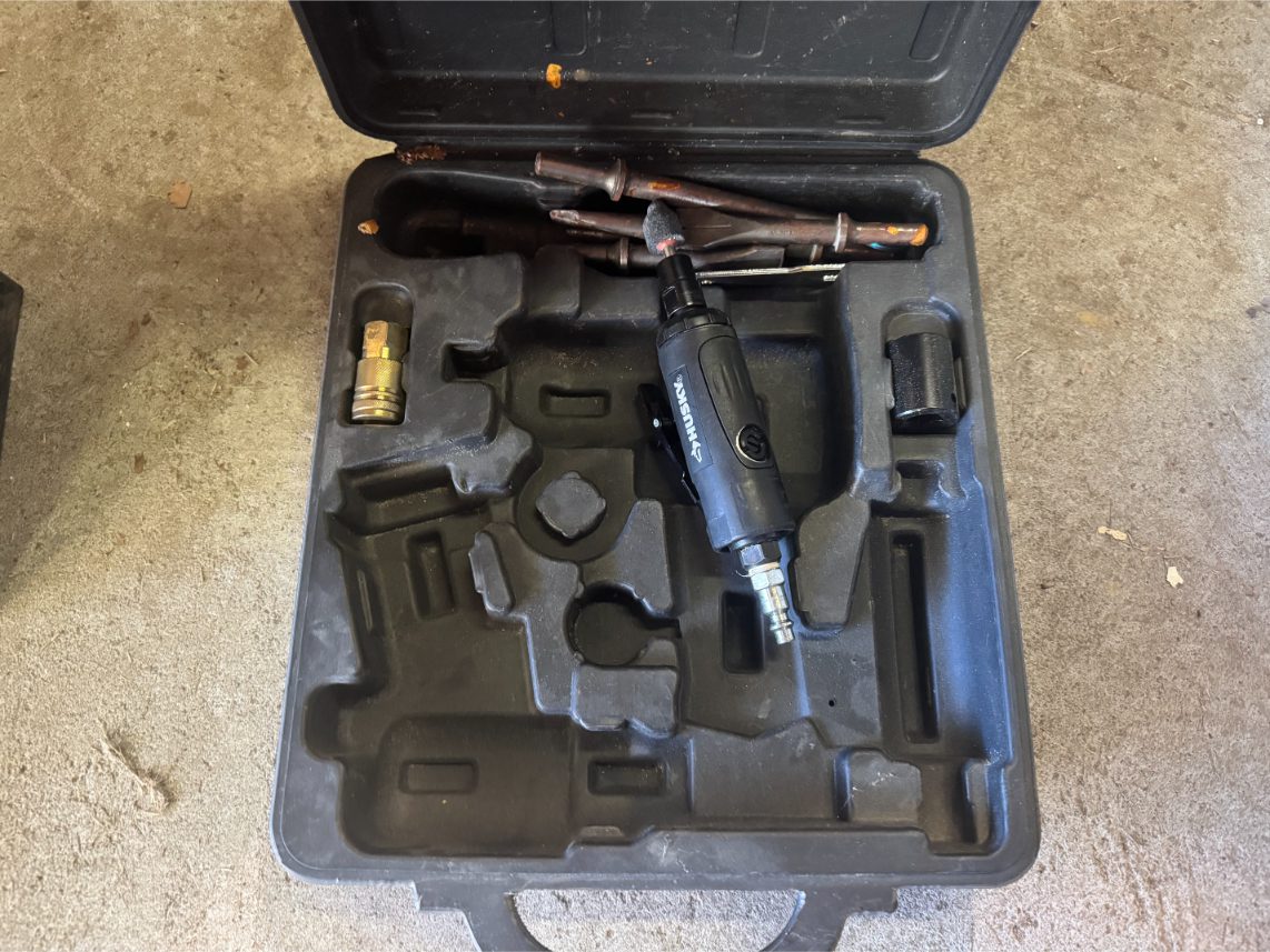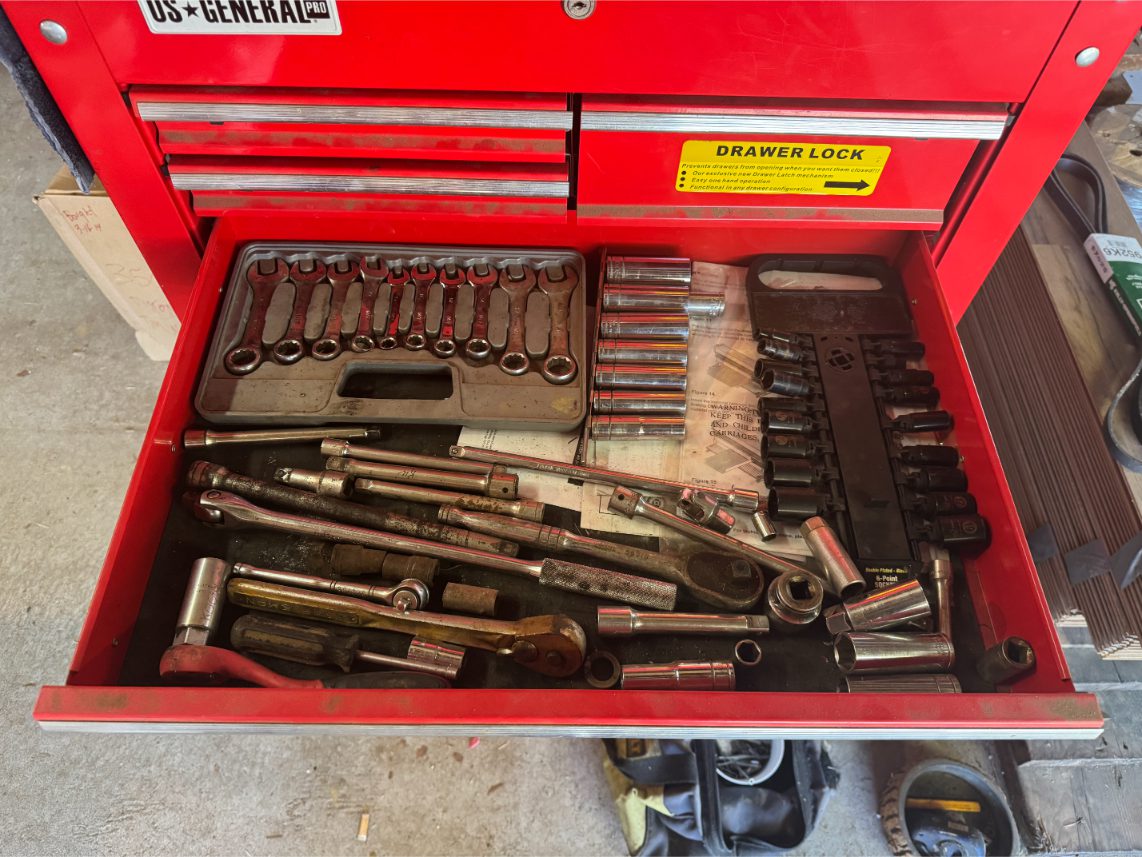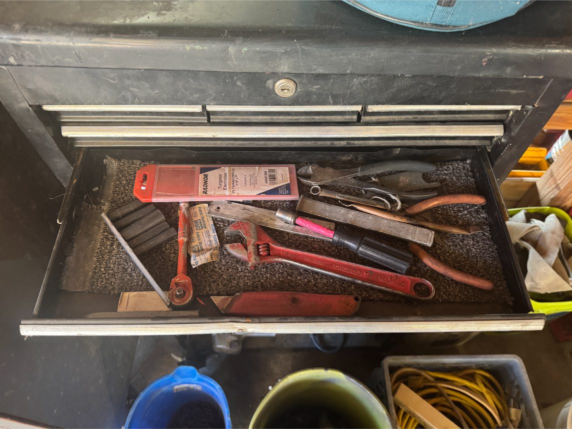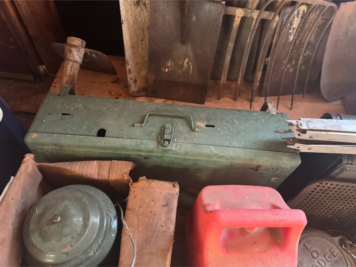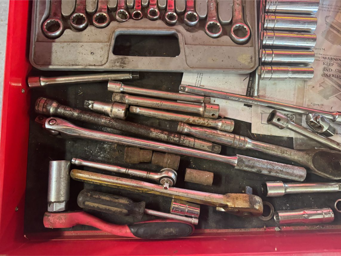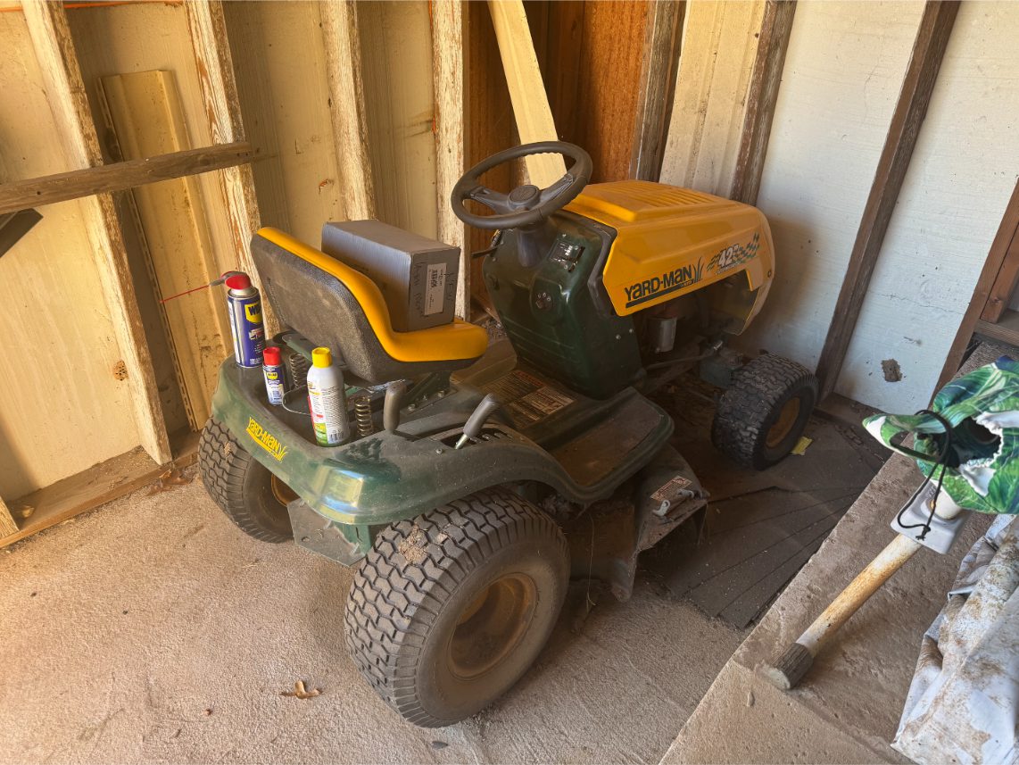 Tools/Shop Items: Miller Welder – Torch Set – 12 Ton Hydraulic Press – Generator – 2 Ton Hydraulic Engine Hoist – Mulchers and Wood Chippers – Plasma Cutter – Tire Machine – Tires – Miscellaneous Car Parts – Wires – Sheet Metal – Cable – Welding Helmet – Sand Blaster – Lincoln Welder/Generator – Electrical Switch Box – Batteries – Craftsman Saw – Drill Press – Refrigerant Gauge – Bracketed Caliper – Squares – Brake Pads – Tool Box – Hand Tools – Upright Air Compressor – Tool Cabinet – Dewalt Power Tools – Pipe Wrenches – Screwdrivers – Wrenches – Sockets – Scan Tool – Sears Bech Vise – Repair Cabinet – Belt Sander – Bench Grinders – Hammers – Chains – Crescent Wrenches – Power Tools – Jupiter Power Inverter – Drill Bits – Bottle Jacks – Tire Irons – Lead Hammers – Miter Saw – Vice Grip – Jerry Can – Crates – Cast Iron Pulley – Chainsaws – Wheel Balancer – Sheet Metal Break – Drywall Lift – Tire Changer – Tool Belts – Roofing Paper – Hydraulic Hose – Fuse Box -Garage Door Opener – Lumber – Wire Cable Reel – Angle Grinder – Husky Air Grinder – Floor Jack – Ratchet Wrenches – Auto Level – Saw Blades – Stihl Concrete Saw – Craftsman Table Saw – Plunge Router – Propane Tank – Metal Detector – Rigid Snakes – Tumbler – Wood Surveyor – Hand Saw – Work Light – Roofing Nails – Nail Gun – Dolly – Shovels – Plumbing PVC – Car Radiator – Ladders – Chicken Wire – Garden Fence – Paint Sprayers – Putty Knife – Blower Fan -Bolt Cutter – Tilt Trailer – Tires – Concrete Mixer – Water Pump – Pressure Tank – Yard Man Riding Lawn Mower – Rain Barrel – PVC Pipes – Wheelbarrow – Battery Charger – Air Compressor – Truck Toolbox – HVAC Units – Pallet Racking – Extension Cords – Tackle Boxes – Bicycle – Metal Barrels