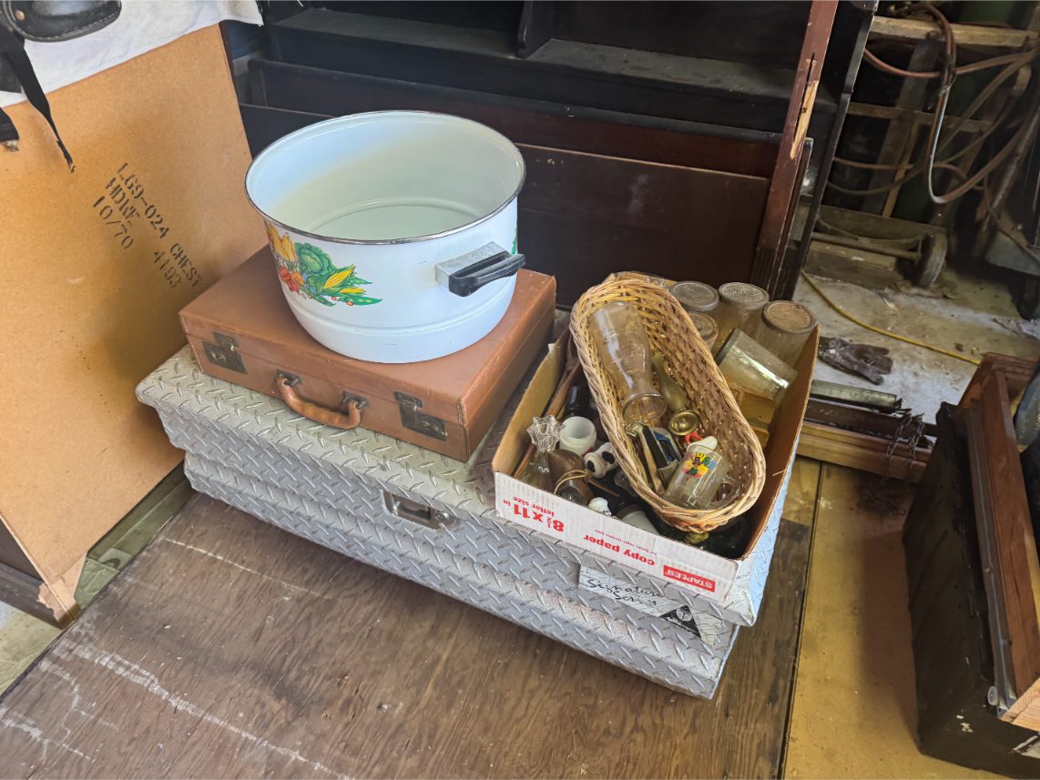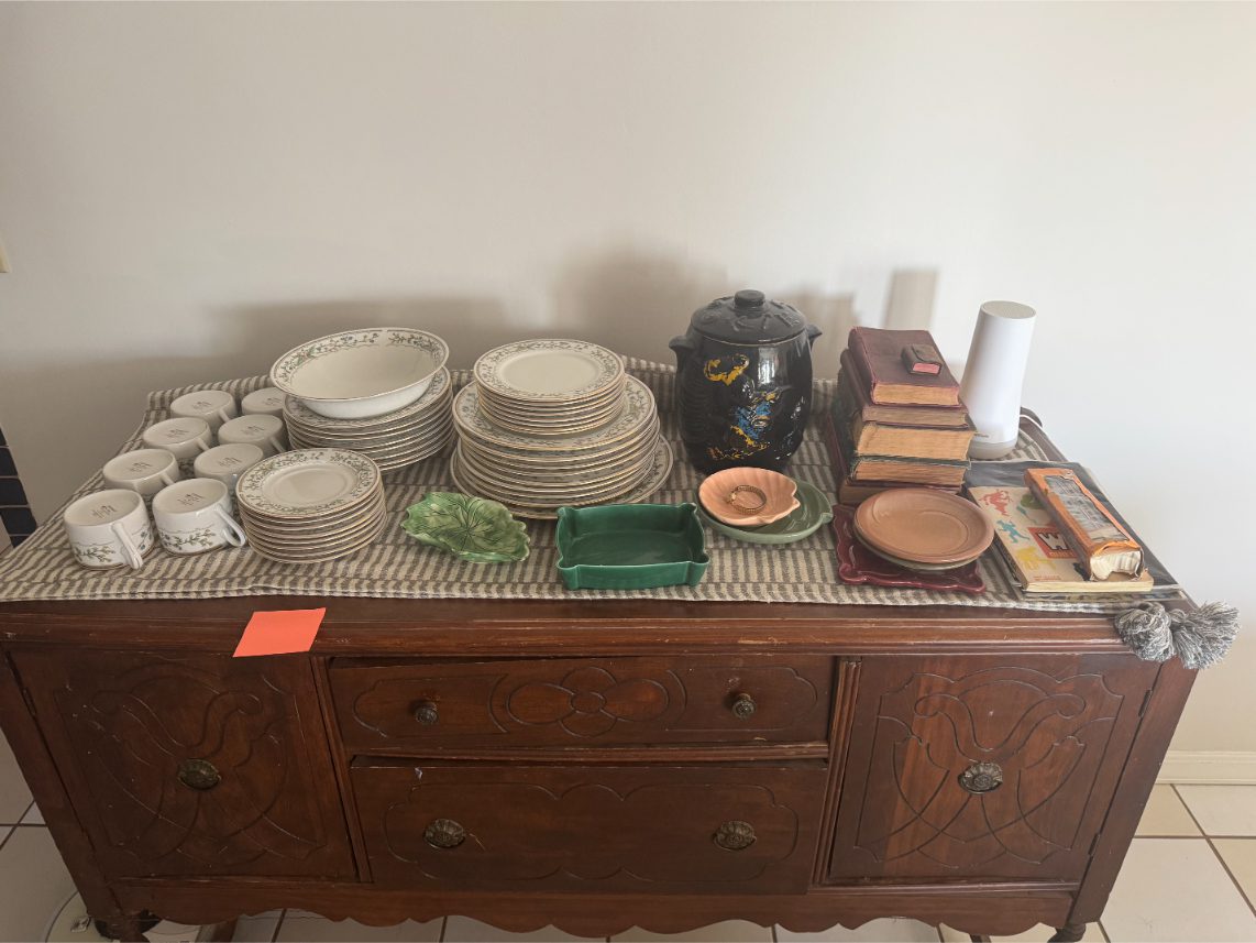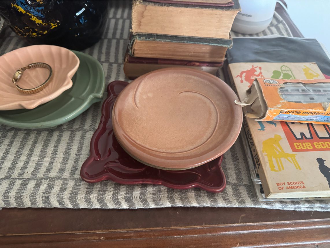 Household Items/Collectibles: Frankoma – Native American Pottery – China – Vintage Books – Hot Wheels – Records – Lunch Pail – Ice Picks – Dryer – Books – Exercise Bike