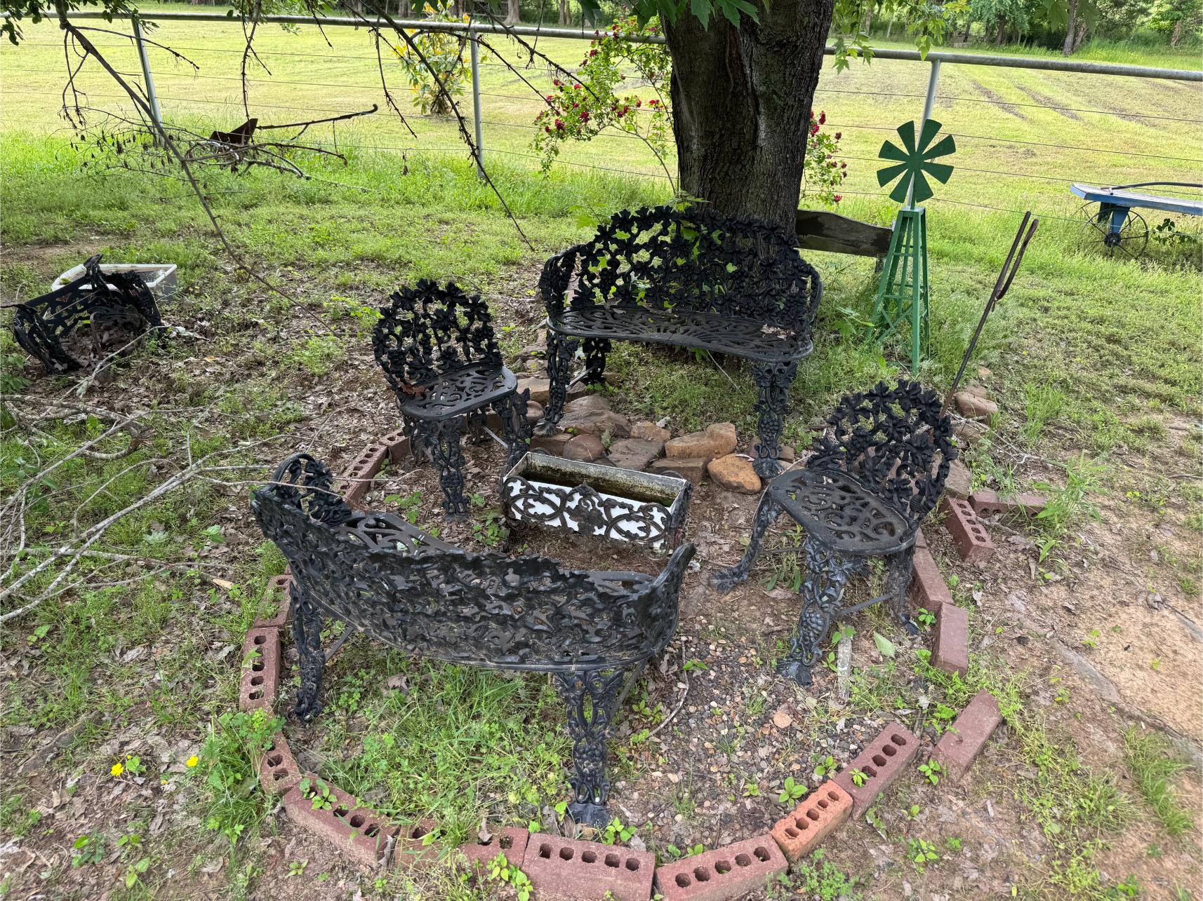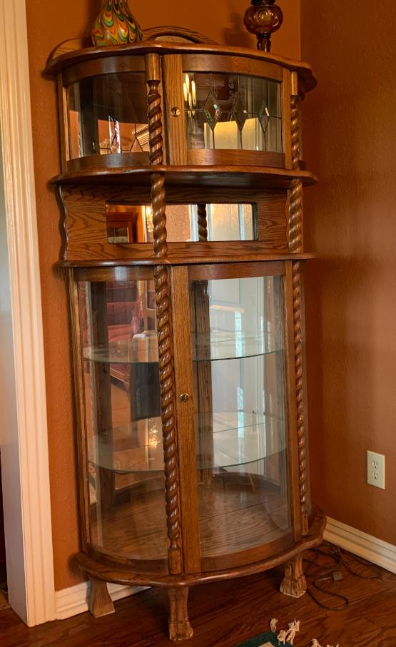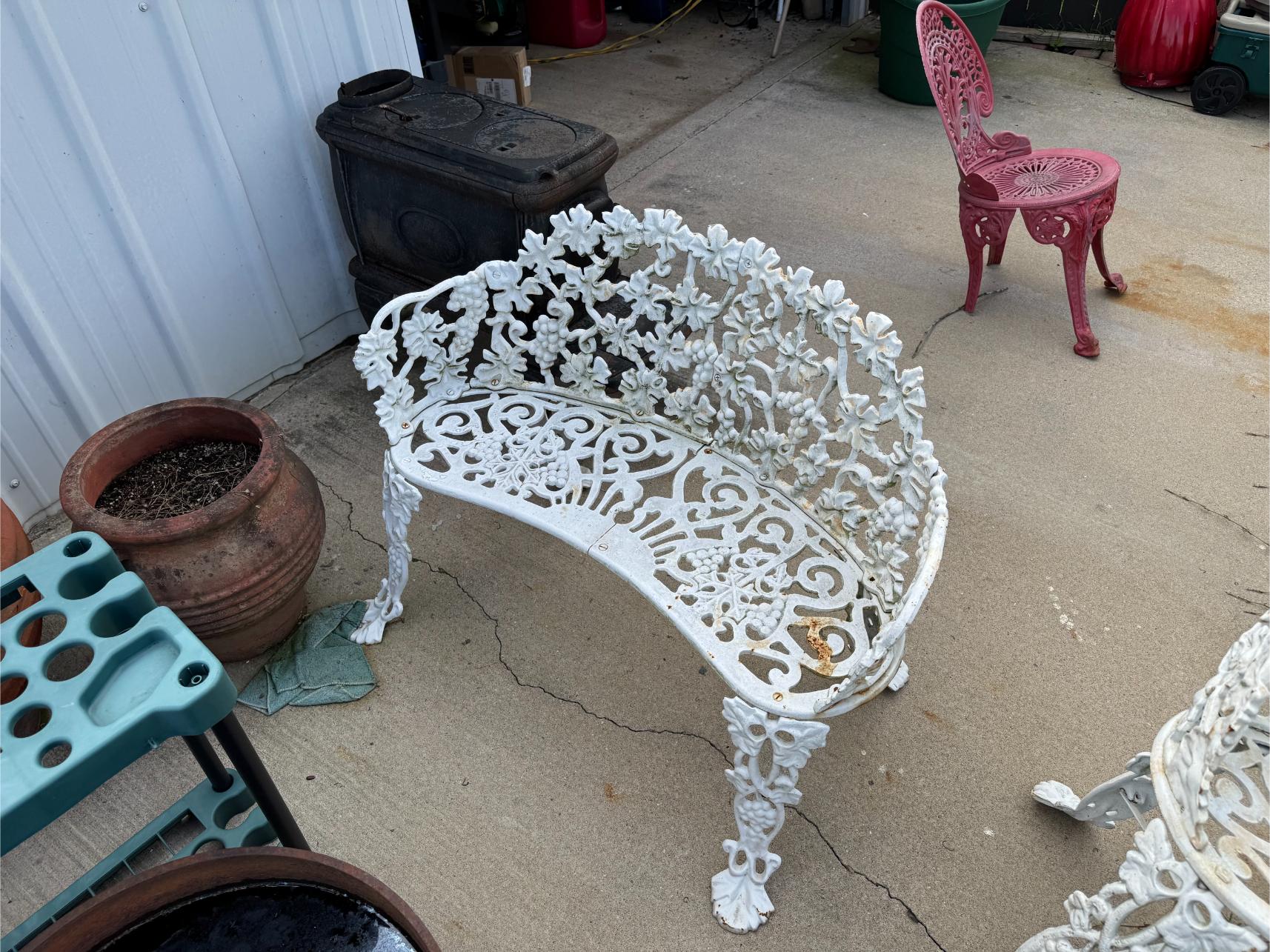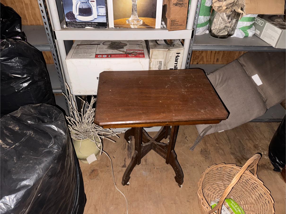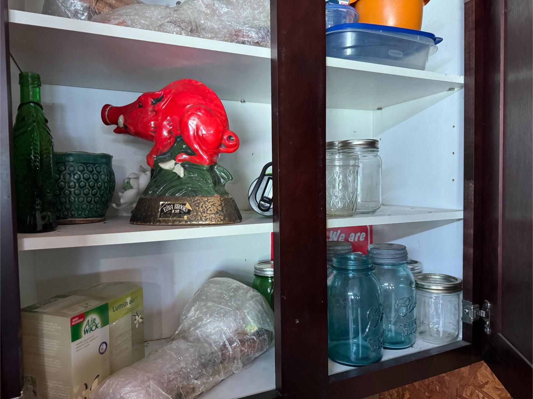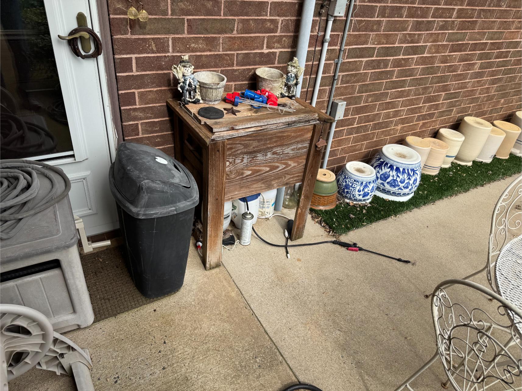 Household:Â Leather Sofa – (2) La-Z-Boy Leather Recliners – Leather Chair & Ottoman – Sofa – Coffee & End Tables – Sofa Table – Pine Dining Table & Chairs & China Cabinet – Iron Base w/Glass Top Dining Table & Chairs – Several Oak & Glass Curio Cabinets – Lawyer’s Bookcase – Desk – Occasional Tables & Chairs – Roll Around Kitchen Island – Baker’s Rack – Cherry King Size Bed, (2) Chests & (2) Nightstands – Lingerie Chest – Jewelry Armoire – Trunk – Elec Fireplace – Whirlpool Refrigerator – Speed Queen Washer – Whirlpool Cabrio Dryer – Small Appliances – Pots & Pans – Corningware – Misc Dishes & Kitchen Items – TV’s (Vizio) – Clocks – Yard Ornaments – Flower Pots – Concrete Razorback Bench – Patio Furniture – Fire Pit – Seasonal Decorations – Home Decor – Area Rugs – Books – Linens – Roomba Vac