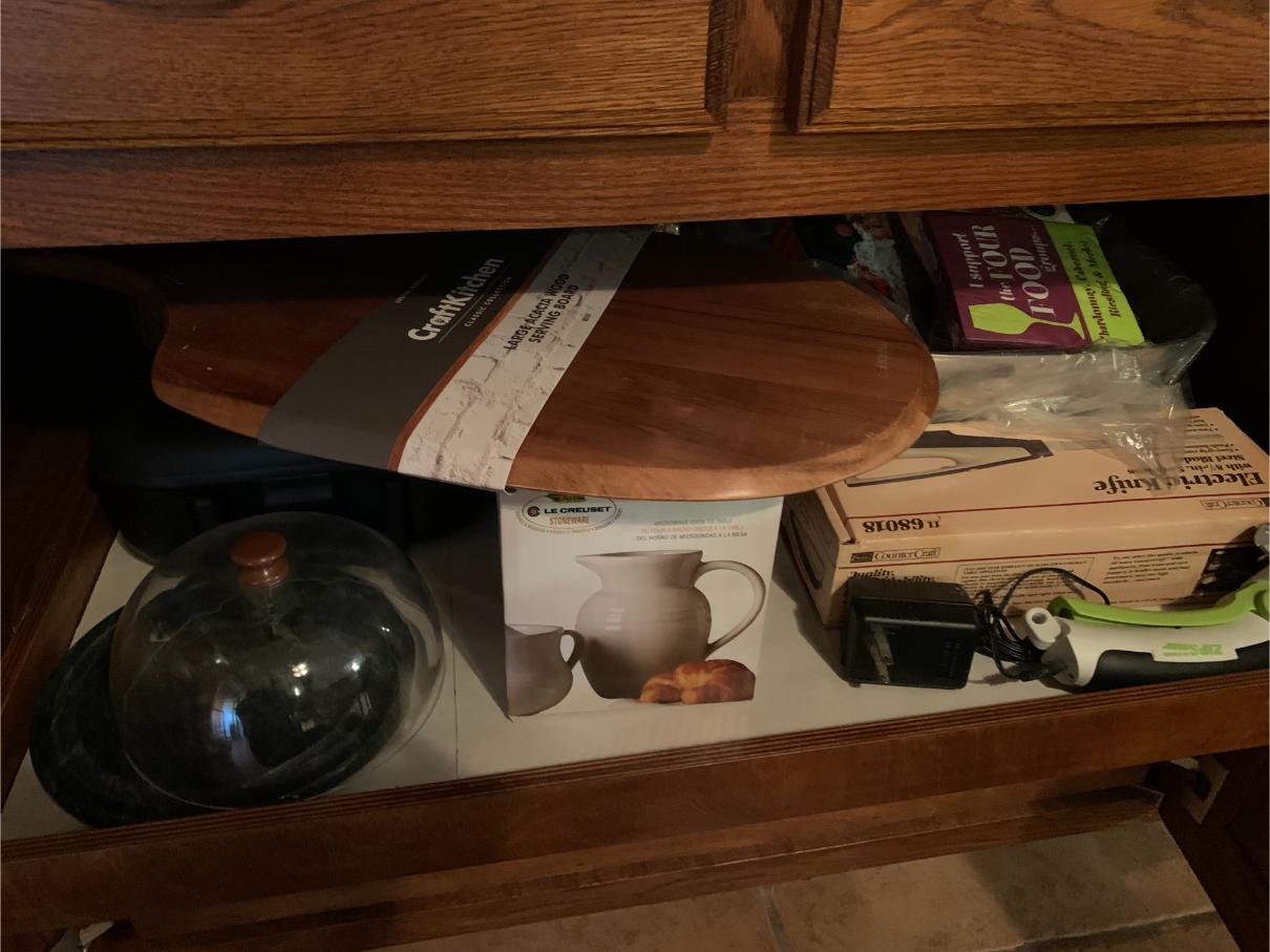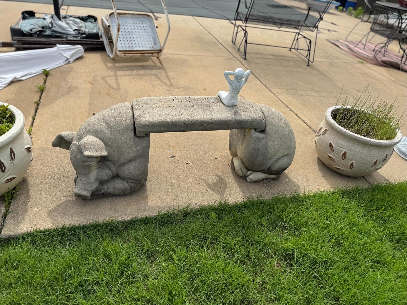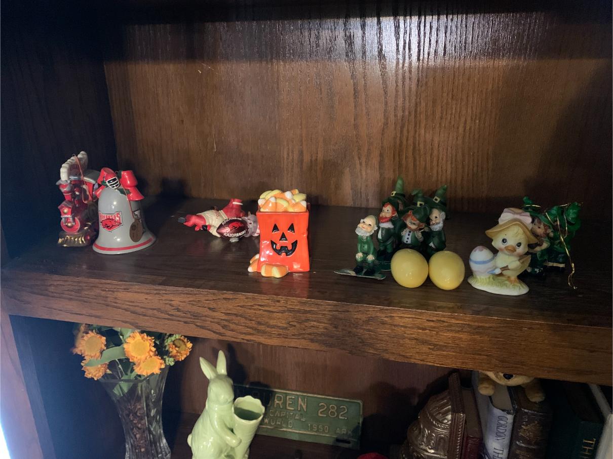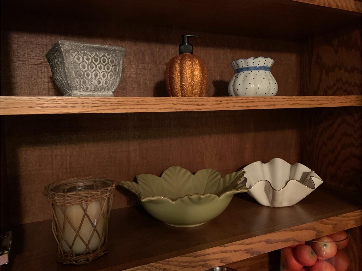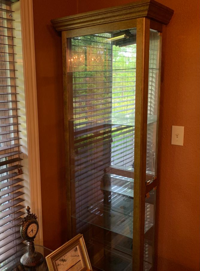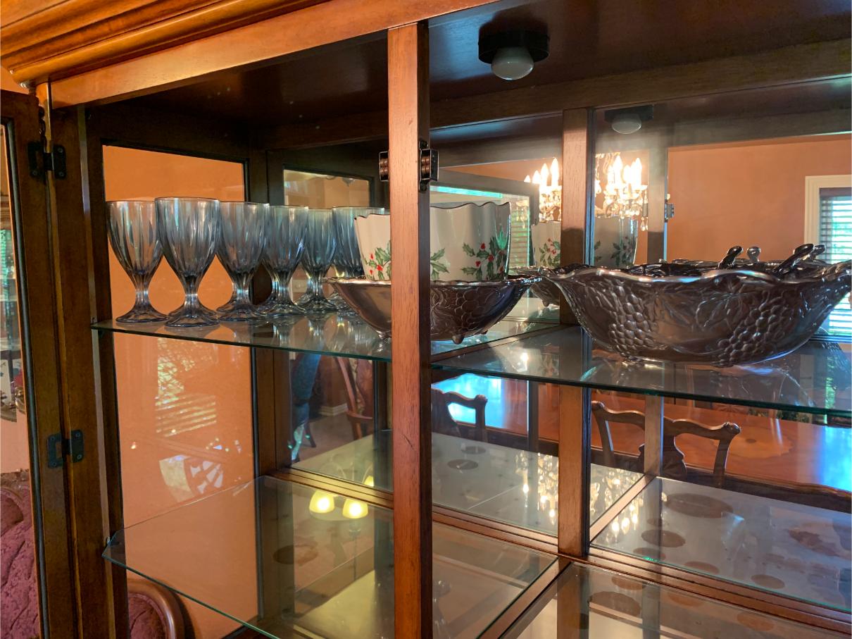 Household:Â Leather Sofa – (2) La-Z-Boy Leather Recliners – Leather Chair & Ottoman – Sofa – Coffee & End Tables – Sofa Table – Pine Dining Table & Chairs & China Cabinet – Iron Base w/Glass Top Dining Table & Chairs – Several Oak & Glass Curio Cabinets – Lawyer’s Bookcase – Desk – Occasional Tables & Chairs – Roll Around Kitchen Island – Baker’s Rack – Cherry King Size Bed, (2) Chests & (2) Nightstands – Lingerie Chest – Jewelry Armoire – Trunk – Elec Fireplace – Whirlpool Refrigerator – Speed Queen Washer – Whirlpool Cabrio Dryer – Small Appliances – Pots & Pans – Corningware – Misc Dishes & Kitchen Items – TV’s (Vizio) – Clocks – Yard Ornaments – Flower Pots – Concrete Razorback Bench – Patio Furniture – Fire Pit – Seasonal Decorations – Home Decor – Area Rugs – Books – Linens – Roomba Vac