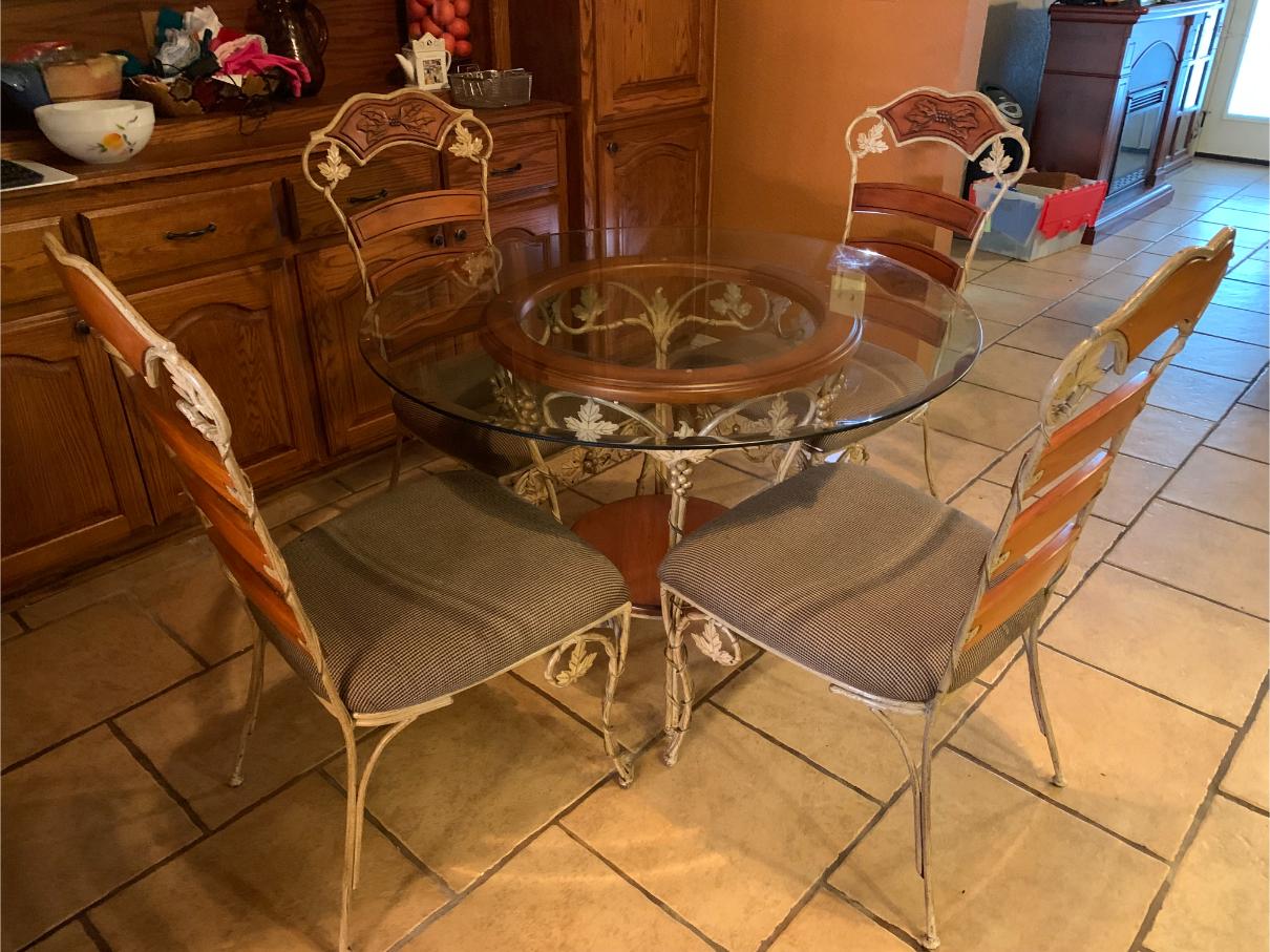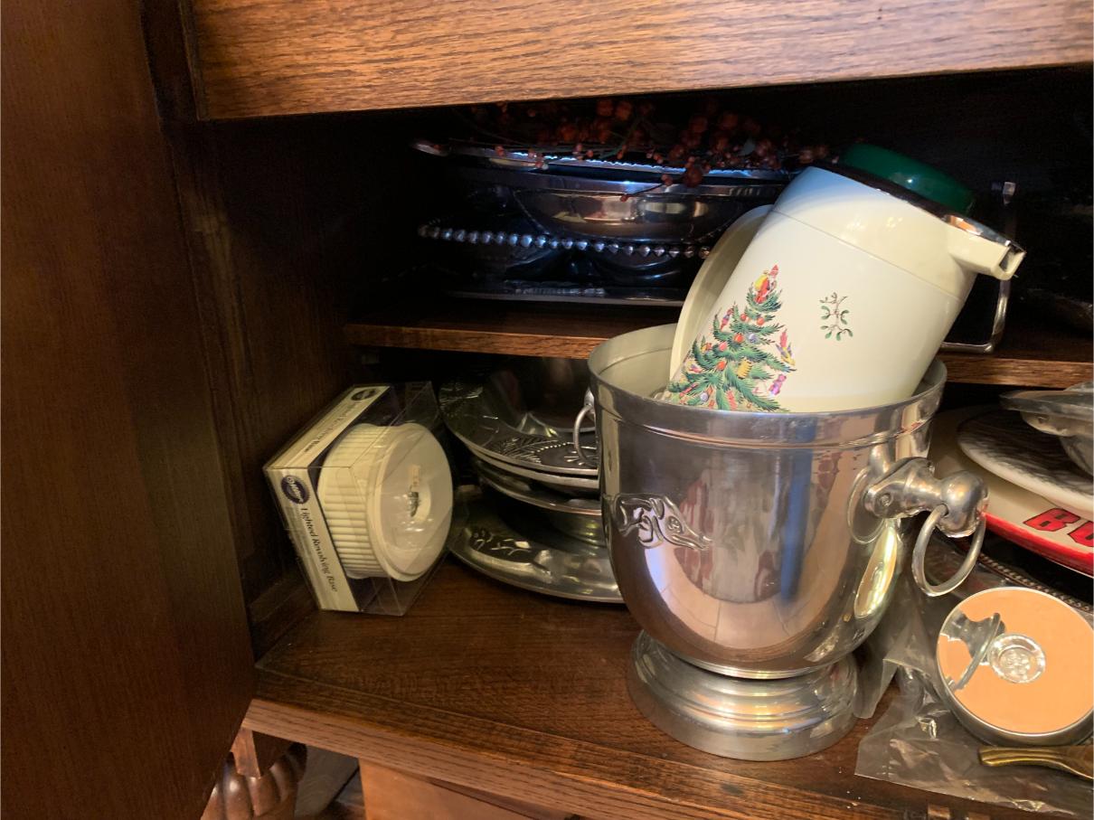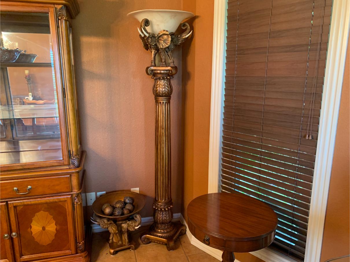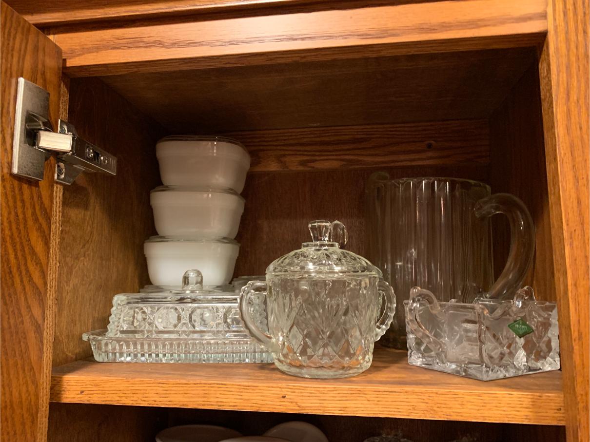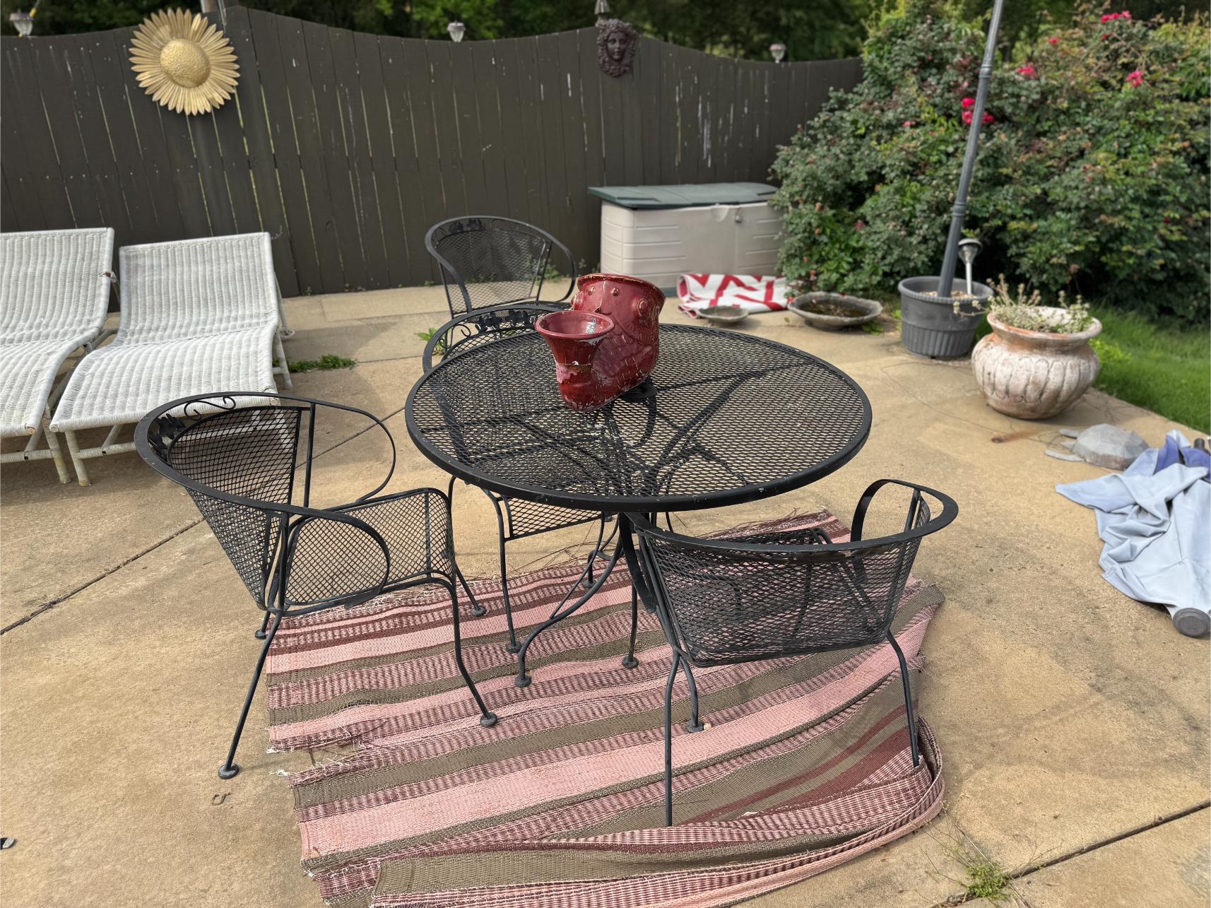 Household:Â Leather Sofa – (2) La-Z-Boy Leather Recliners – Leather Chair & Ottoman – Sofa – Coffee & End Tables – Sofa Table – Pine Dining Table & Chairs & China Cabinet – Iron Base w/Glass Top Dining Table & Chairs – Several Oak & Glass Curio Cabinets – Lawyer’s Bookcase – Desk – Occasional Tables & Chairs – Roll Around Kitchen Island – Baker’s Rack – Cherry King Size Bed, (2) Chests & (2) Nightstands – Lingerie Chest – Jewelry Armoire – Trunk – Elec Fireplace – Whirlpool Refrigerator – Speed Queen Washer – Whirlpool Cabrio Dryer – Small Appliances – Pots & Pans – Corningware – Misc Dishes & Kitchen Items – TV’s (Vizio) – Clocks – Yard Ornaments – Flower Pots – Concrete Razorback Bench – Patio Furniture – Fire Pit – Seasonal Decorations – Home Decor – Area Rugs – Books – Linens – Roomba Vac
