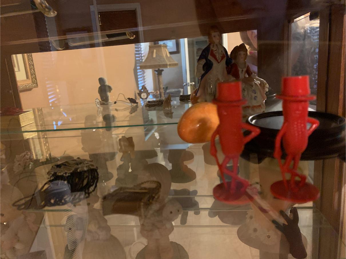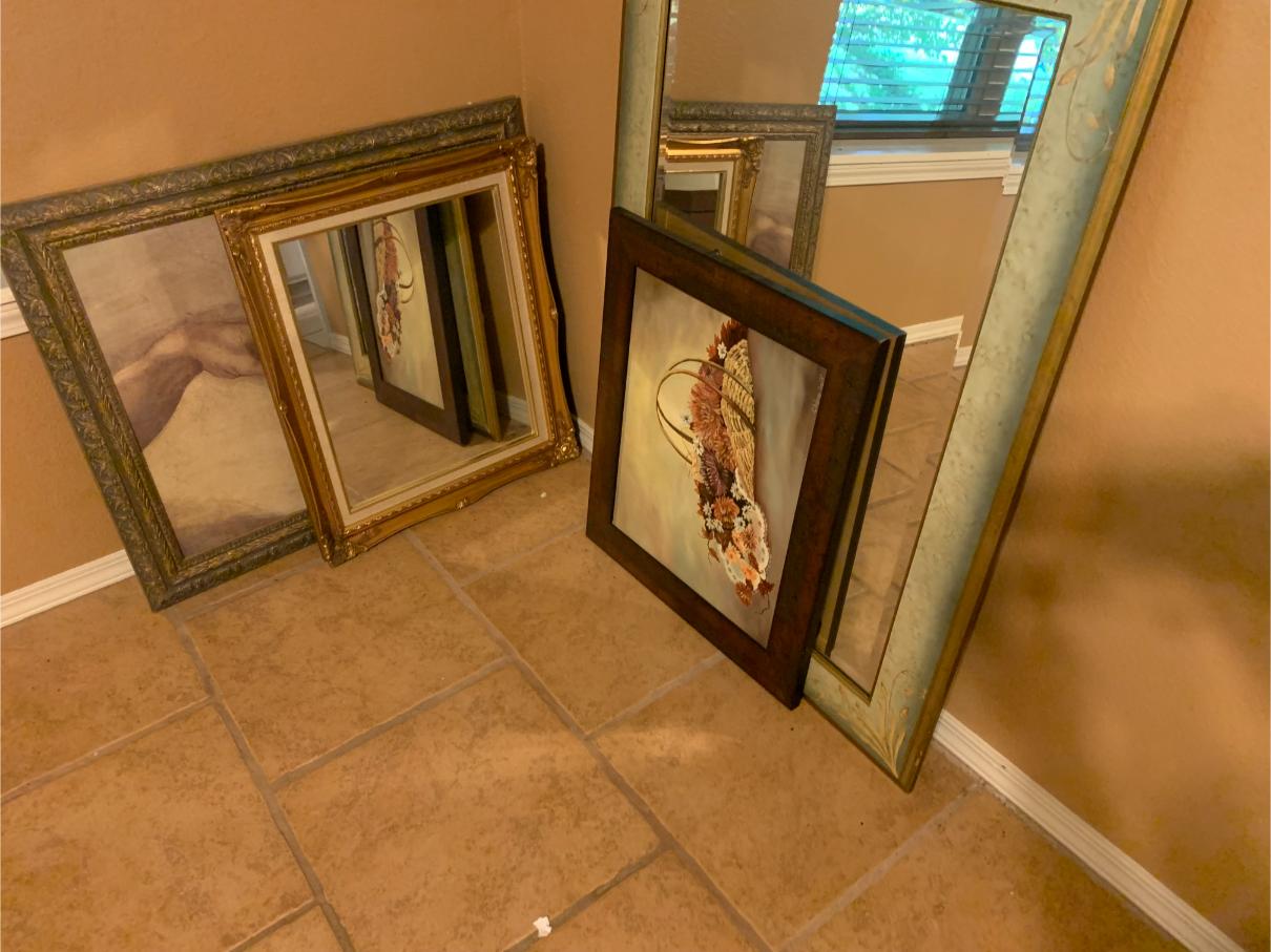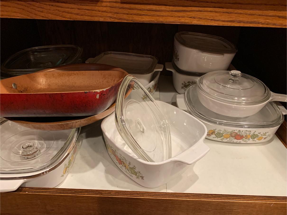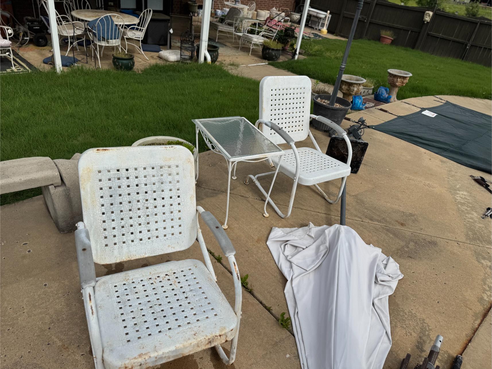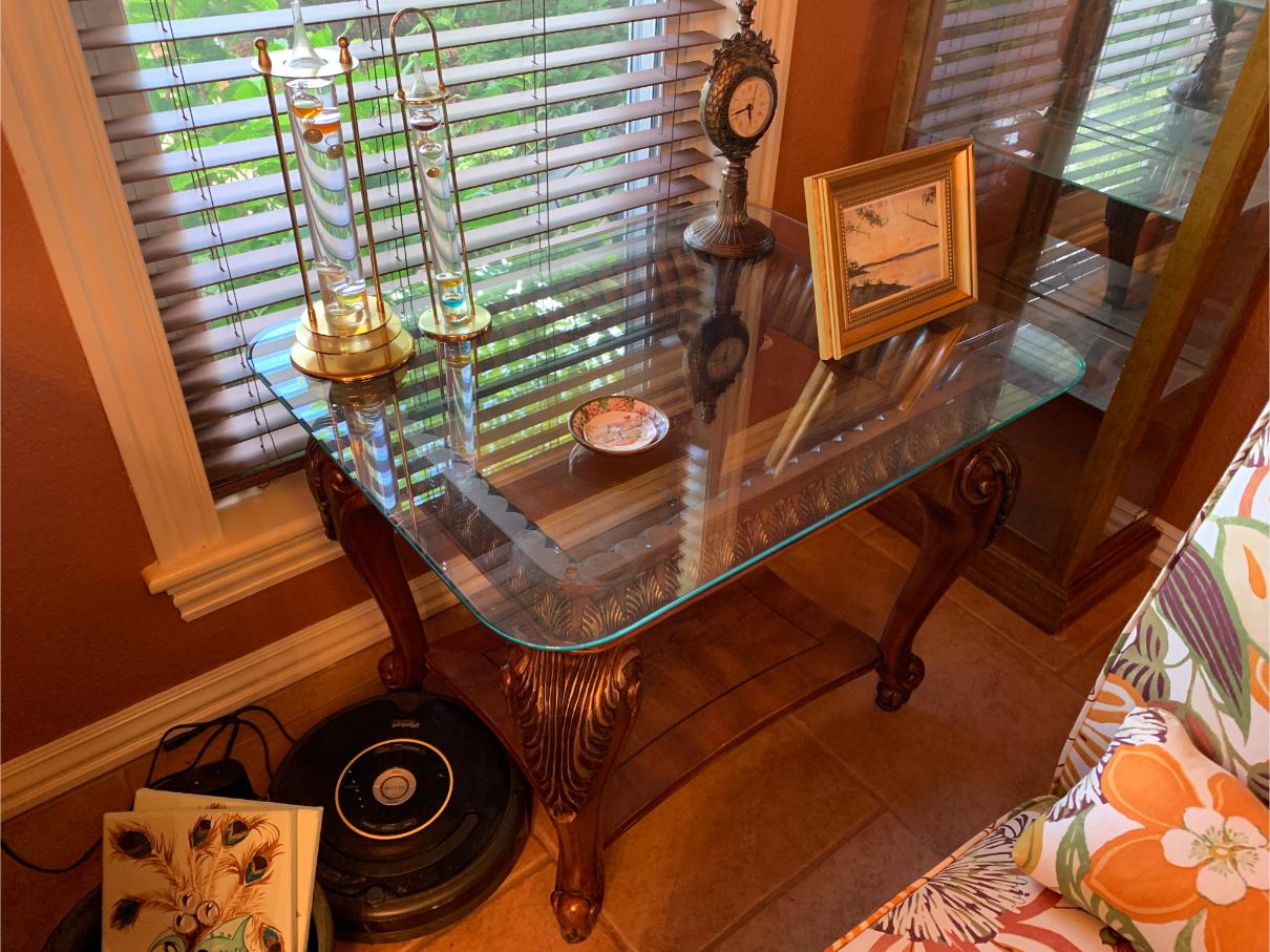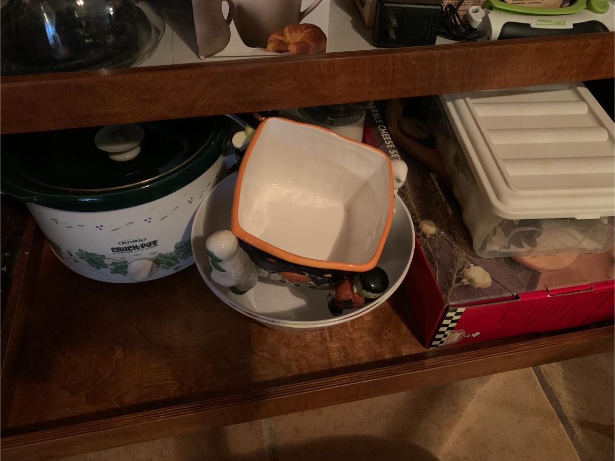 Household:Â Leather Sofa – (2) La-Z-Boy Leather Recliners – Leather Chair & Ottoman – Sofa – Coffee & End Tables – Sofa Table – Pine Dining Table & Chairs & China Cabinet – Iron Base w/Glass Top Dining Table & Chairs – Several Oak & Glass Curio Cabinets – Lawyer’s Bookcase – Desk – Occasional Tables & Chairs – Roll Around Kitchen Island – Baker’s Rack – Cherry King Size Bed, (2) Chests & (2) Nightstands – Lingerie Chest – Jewelry Armoire – Trunk – Elec Fireplace – Whirlpool Refrigerator – Speed Queen Washer – Whirlpool Cabrio Dryer – Small Appliances – Pots & Pans – Corningware – Misc Dishes & Kitchen Items – TV’s (Vizio) – Clocks – Yard Ornaments – Flower Pots – Concrete Razorback Bench – Patio Furniture – Fire Pit – Seasonal Decorations – Home Decor – Area Rugs – Books – Linens – Roomba Vac