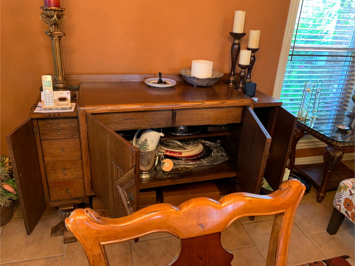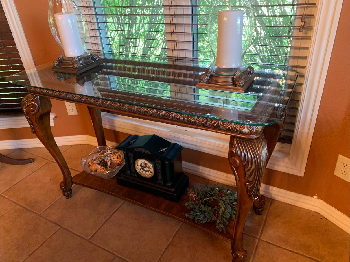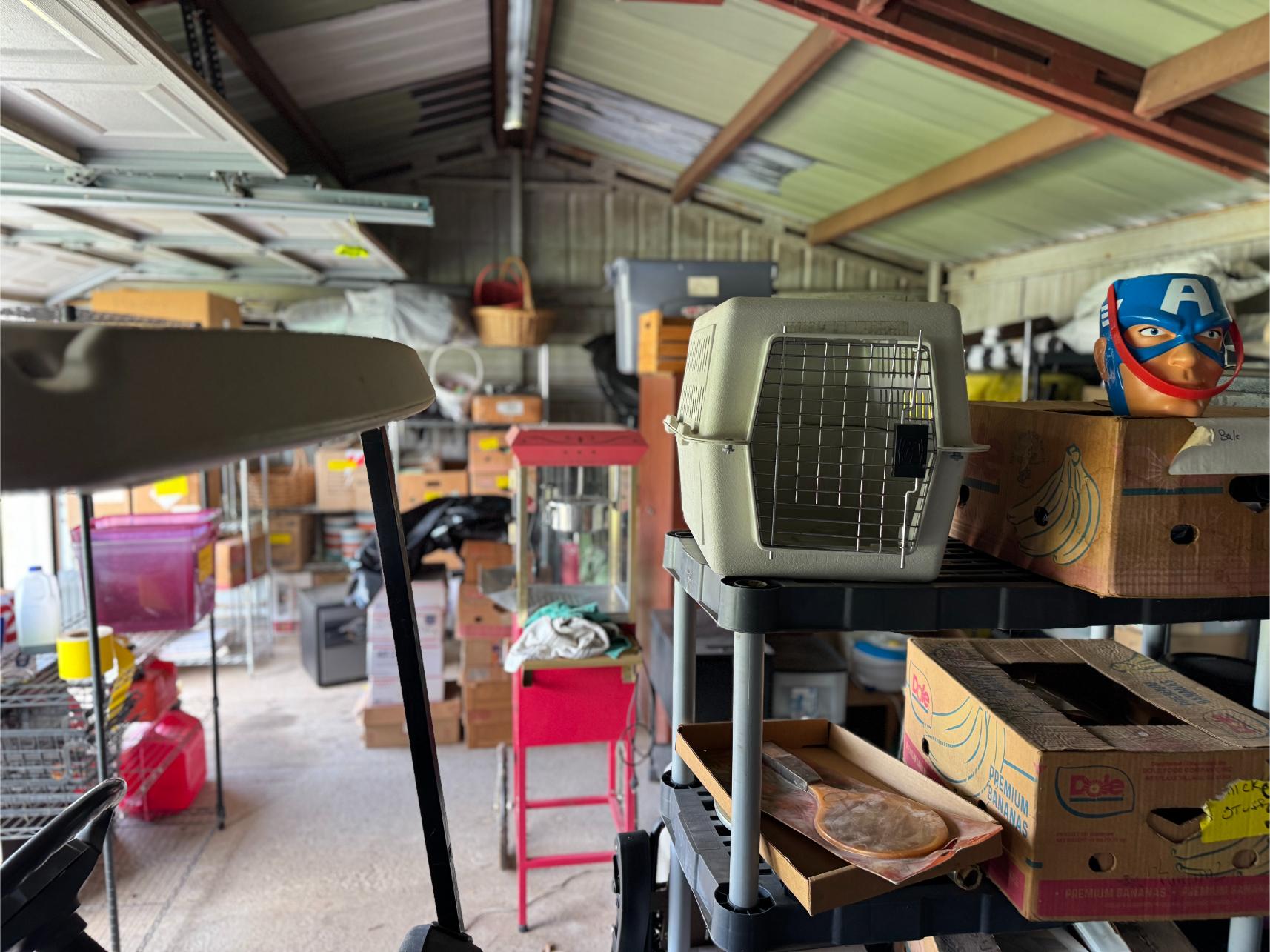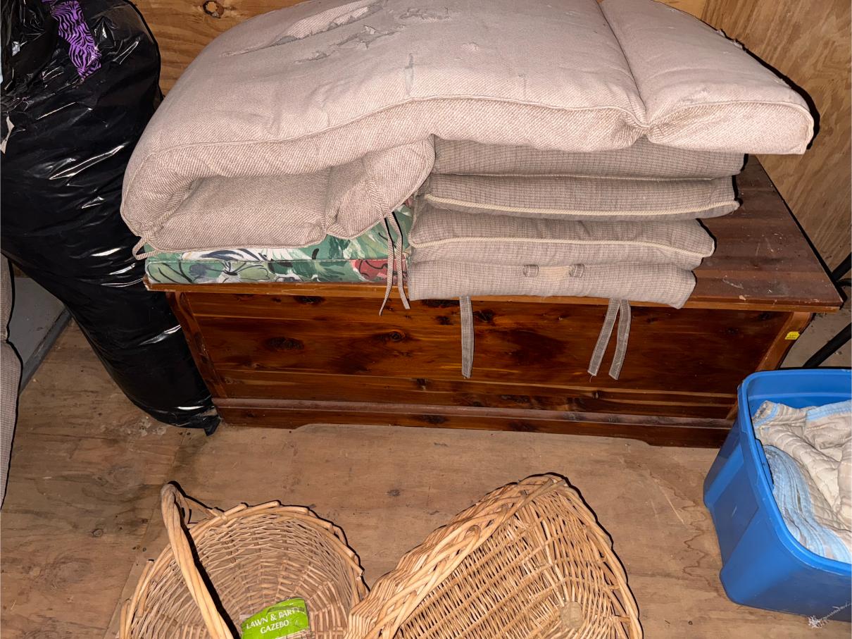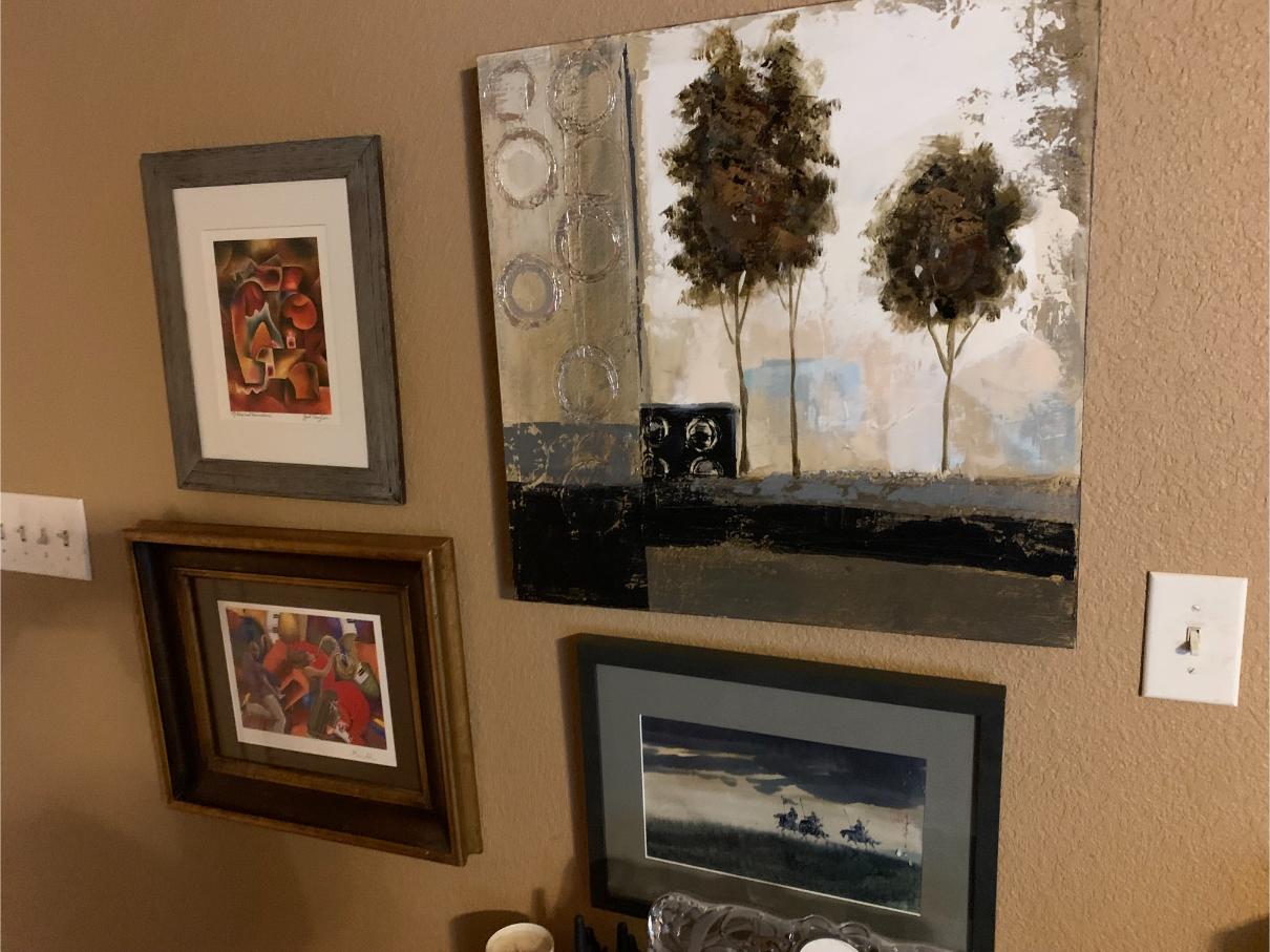 Household:Â Leather Sofa – (2) La-Z-Boy Leather Recliners – Leather Chair & Ottoman – Sofa – Coffee & End Tables – Sofa Table – Pine Dining Table & Chairs & China Cabinet – Iron Base w/Glass Top Dining Table & Chairs – Several Oak & Glass Curio Cabinets – Lawyer’s Bookcase – Desk – Occasional Tables & Chairs – Roll Around Kitchen Island – Baker’s Rack – Cherry King Size Bed, (2) Chests & (2) Nightstands – Lingerie Chest – Jewelry Armoire – Trunk – Elec Fireplace – Whirlpool Refrigerator – Speed Queen Washer – Whirlpool Cabrio Dryer – Small Appliances – Pots & Pans – Corningware – Misc Dishes & Kitchen Items – TV’s (Vizio) – Clocks – Yard Ornaments – Flower Pots – Concrete Razorback Bench – Patio Furniture – Fire Pit – Seasonal Decorations – Home Decor – Area Rugs – Books – Linens – Roomba Vac