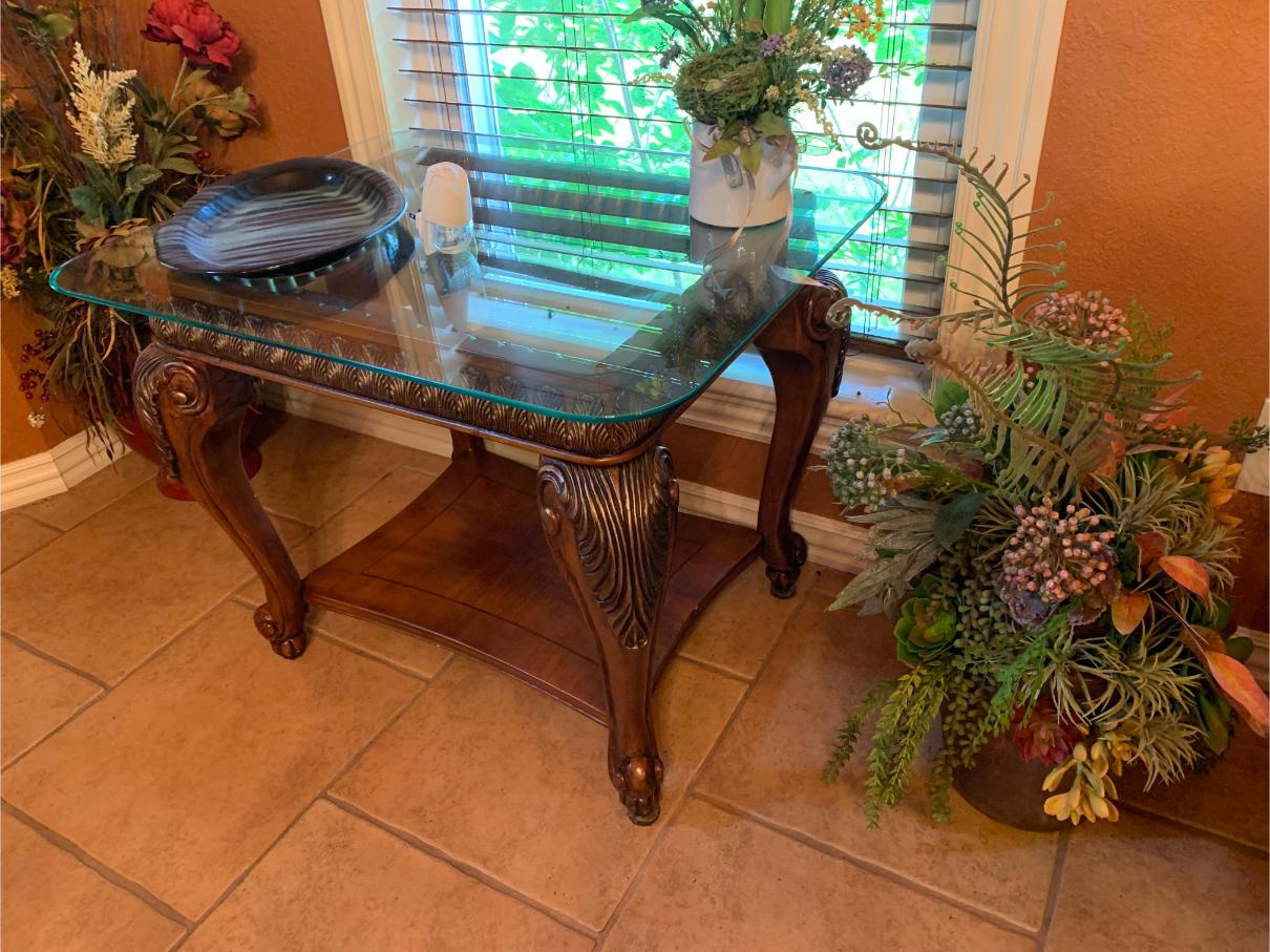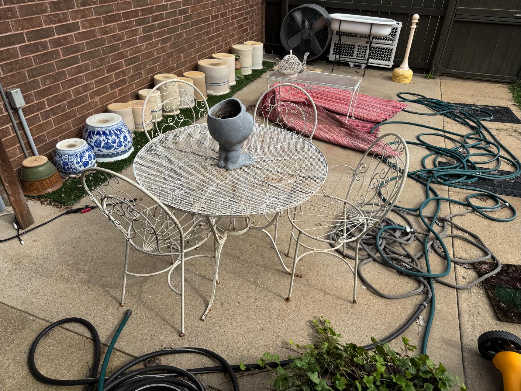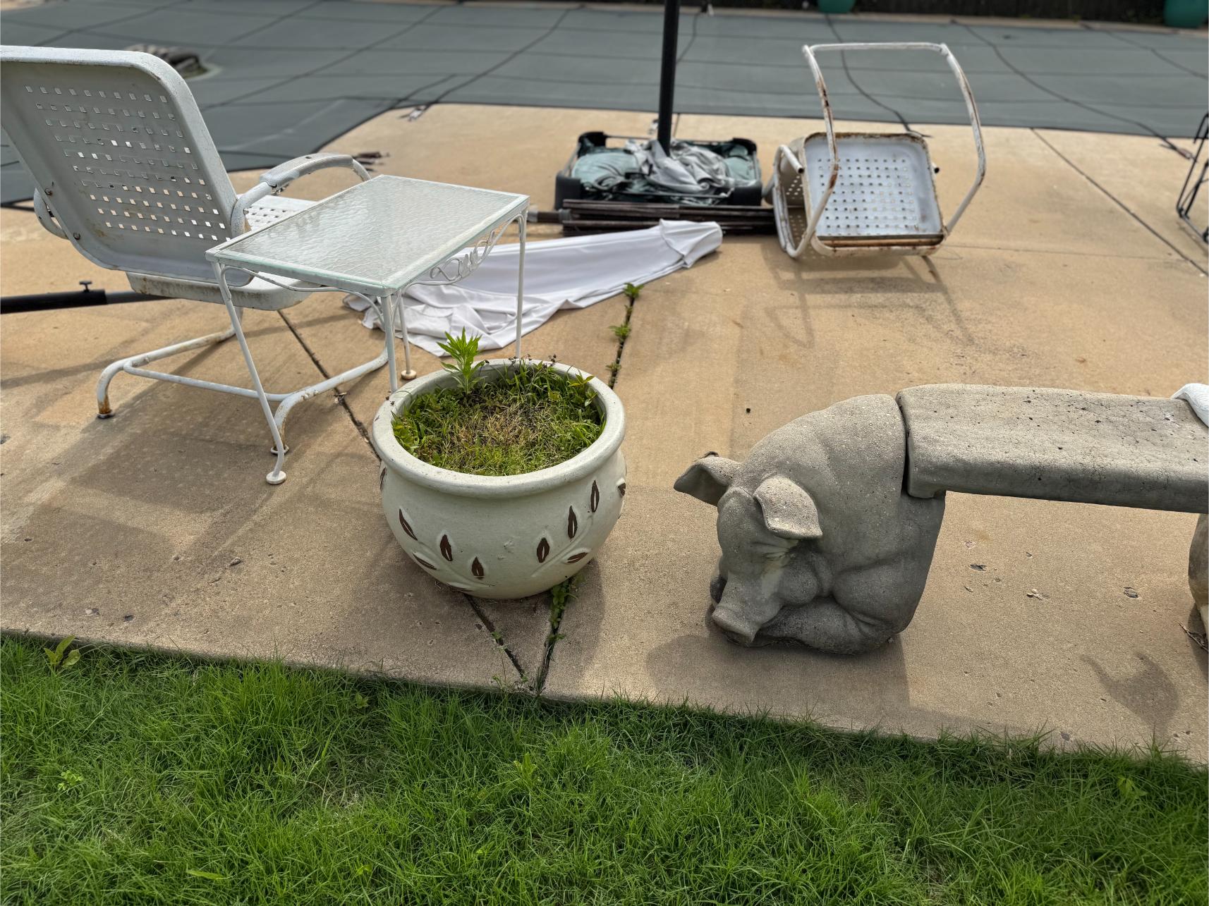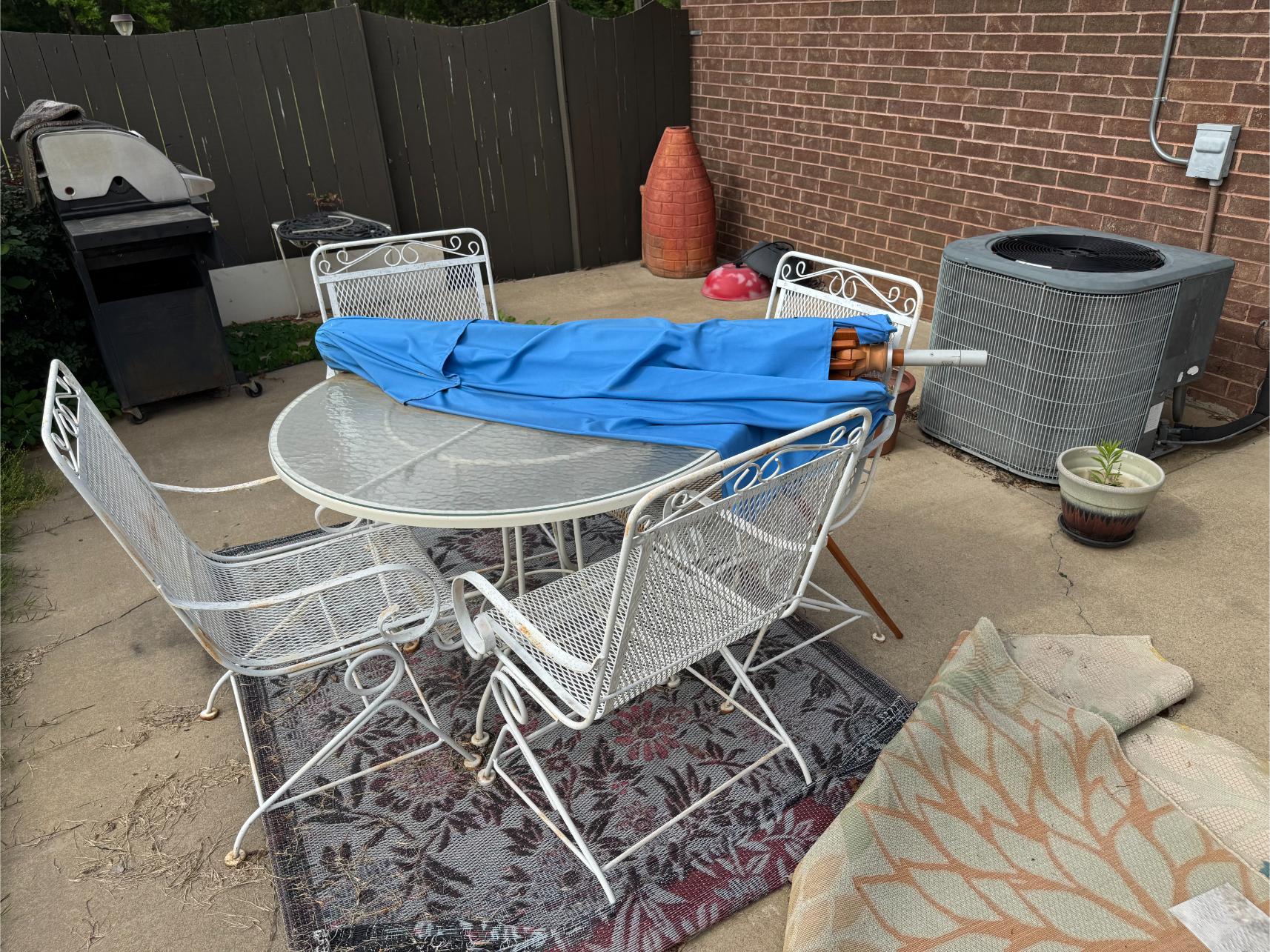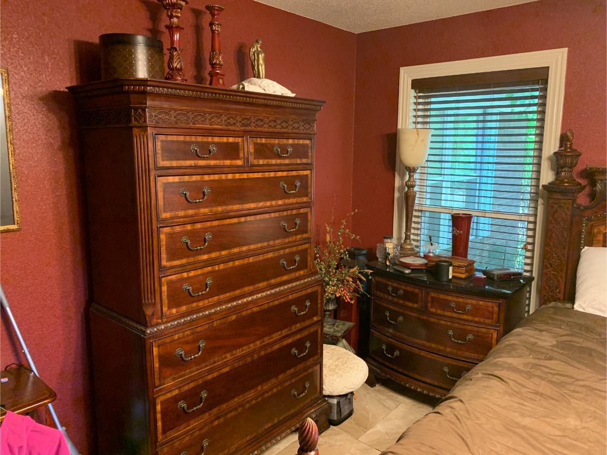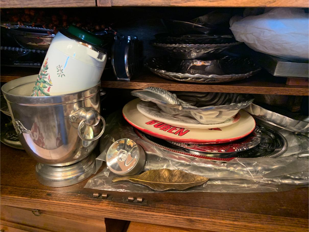 Household:Â Leather Sofa – (2) La-Z-Boy Leather Recliners – Leather Chair & Ottoman – Sofa – Coffee & End Tables – Sofa Table – Pine Dining Table & Chairs & China Cabinet – Iron Base w/Glass Top Dining Table & Chairs – Several Oak & Glass Curio Cabinets – Lawyer’s Bookcase – Desk – Occasional Tables & Chairs – Roll Around Kitchen Island – Baker’s Rack – Cherry King Size Bed, (2) Chests & (2) Nightstands – Lingerie Chest – Jewelry Armoire – Trunk – Elec Fireplace – Whirlpool Refrigerator – Speed Queen Washer – Whirlpool Cabrio Dryer – Small Appliances – Pots & Pans – Corningware – Misc Dishes & Kitchen Items – TV’s (Vizio) – Clocks – Yard Ornaments – Flower Pots – Concrete Razorback Bench – Patio Furniture – Fire Pit – Seasonal Decorations – Home Decor – Area Rugs – Books – Linens – Roomba Vac
