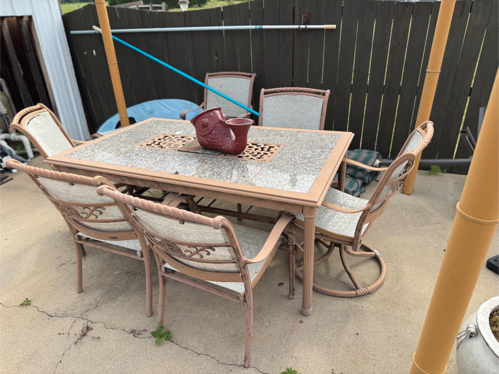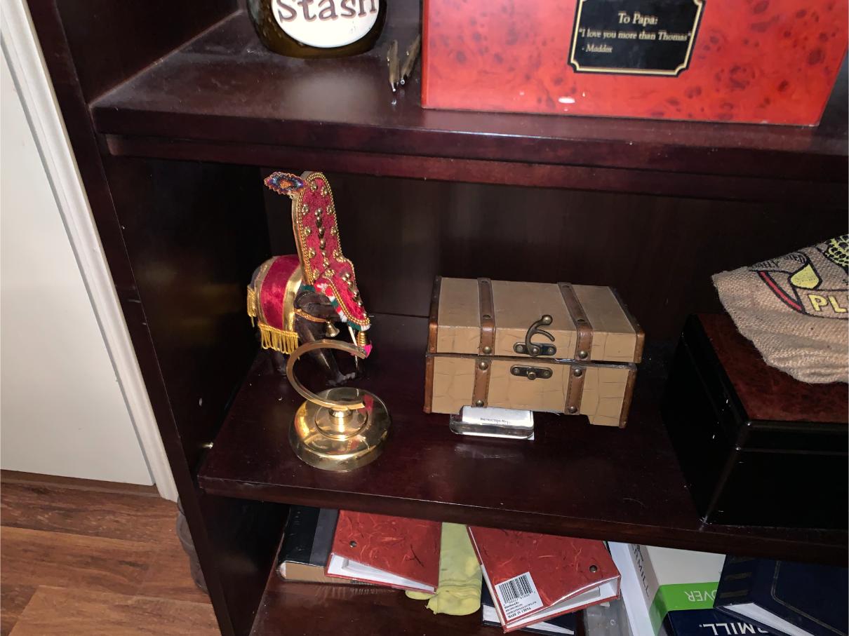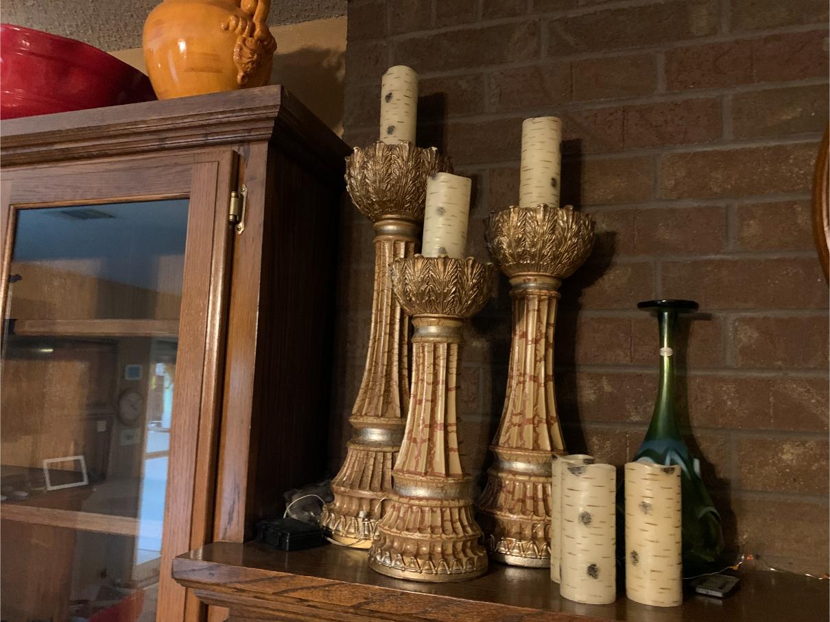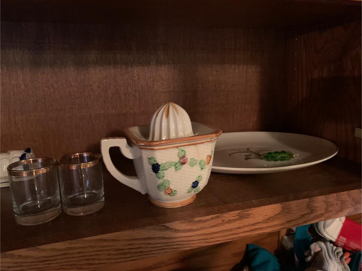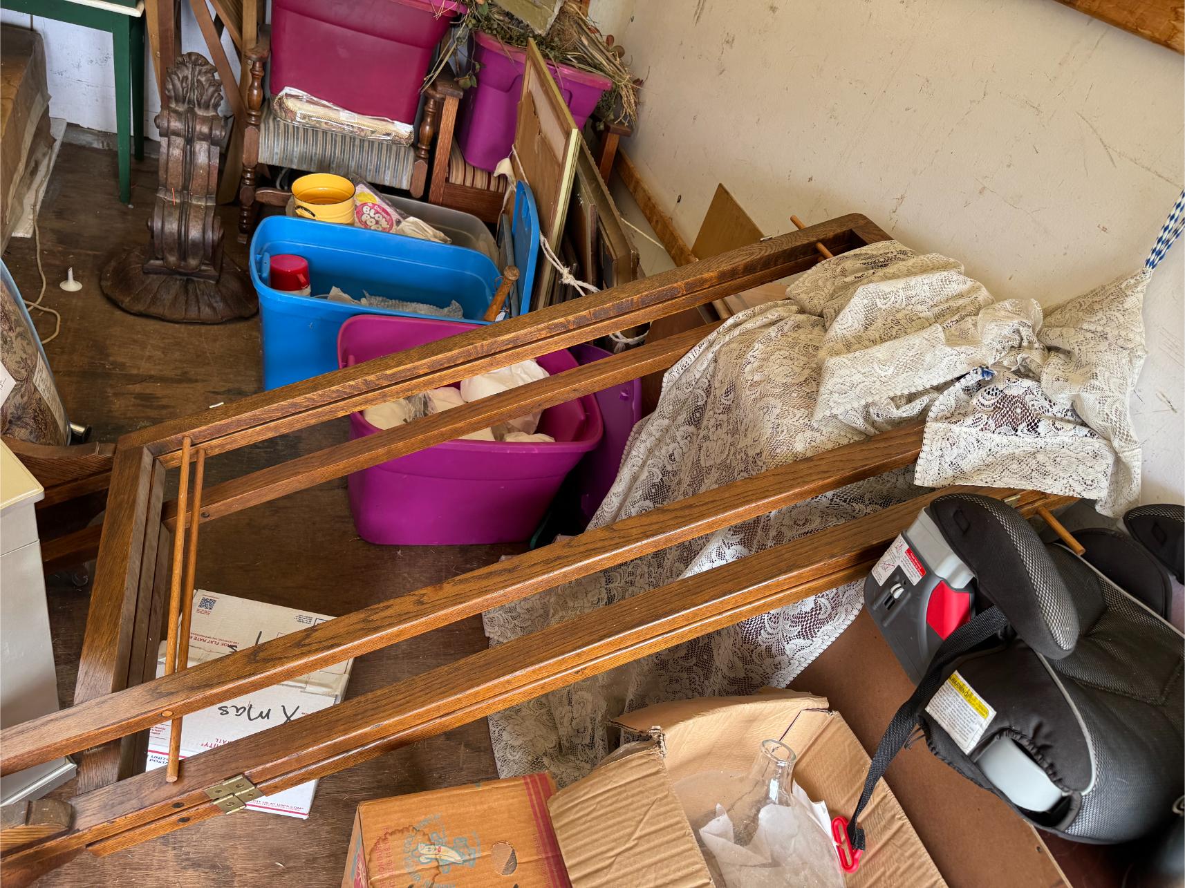 Household:Â Leather Sofa – (2) La-Z-Boy Leather Recliners – Leather Chair & Ottoman – Sofa – Coffee & End Tables – Sofa Table – Pine Dining Table & Chairs & China Cabinet – Iron Base w/Glass Top Dining Table & Chairs – Several Oak & Glass Curio Cabinets – Lawyer’s Bookcase – Desk – Occasional Tables & Chairs – Roll Around Kitchen Island – Baker’s Rack – Cherry King Size Bed, (2) Chests & (2) Nightstands – Lingerie Chest – Jewelry Armoire – Trunk – Elec Fireplace – Whirlpool Refrigerator – Speed Queen Washer – Whirlpool Cabrio Dryer – Small Appliances – Pots & Pans – Corningware – Misc Dishes & Kitchen Items – TV’s (Vizio) – Clocks – Yard Ornaments – Flower Pots – Concrete Razorback Bench – Patio Furniture – Fire Pit – Seasonal Decorations – Home Decor – Area Rugs – Books – Linens – Roomba Vac