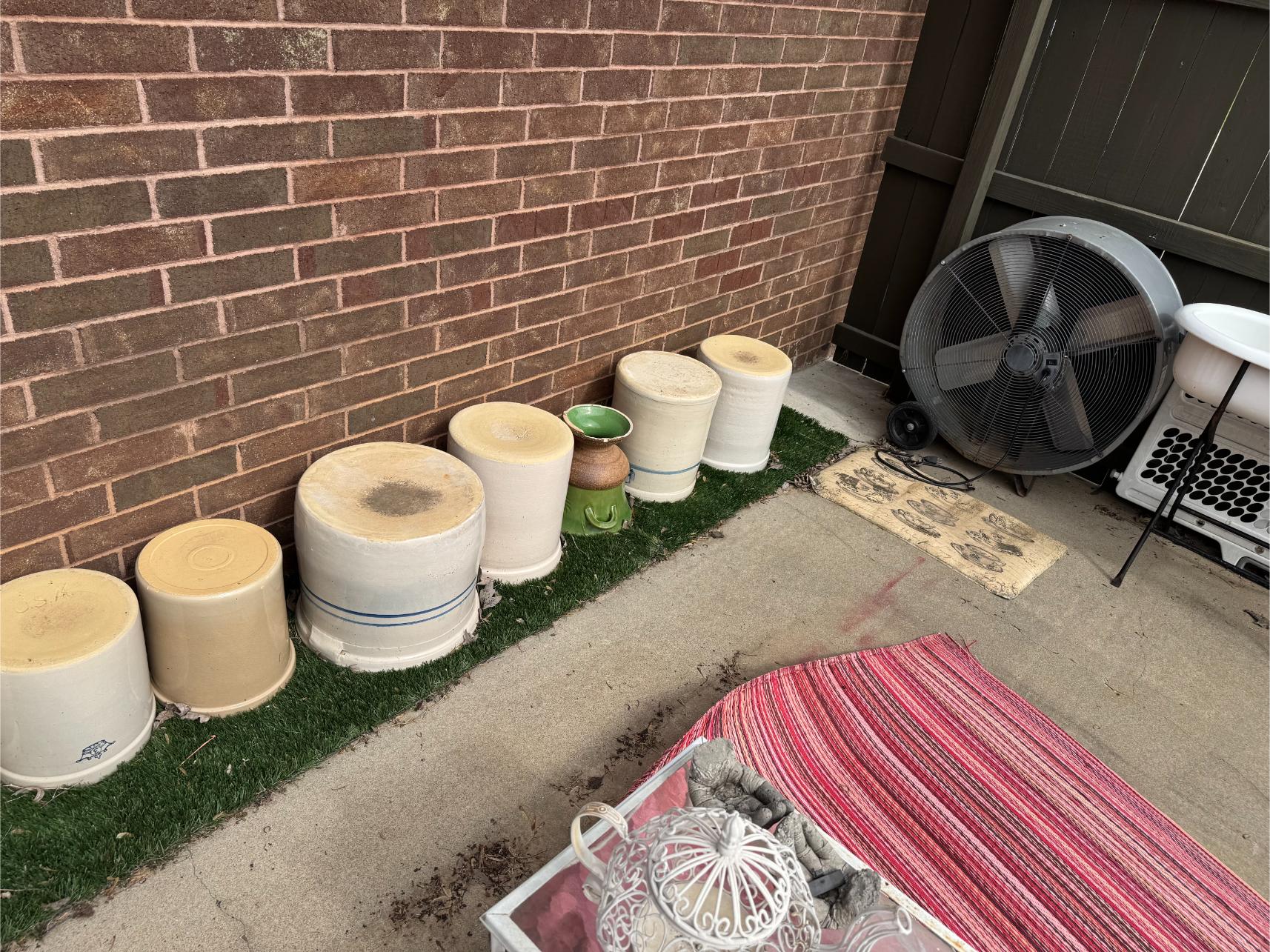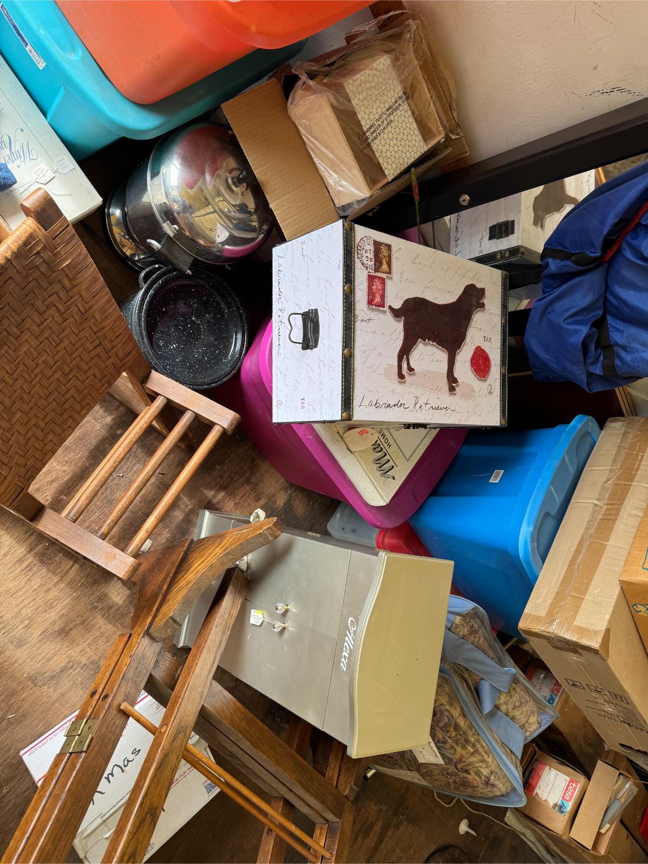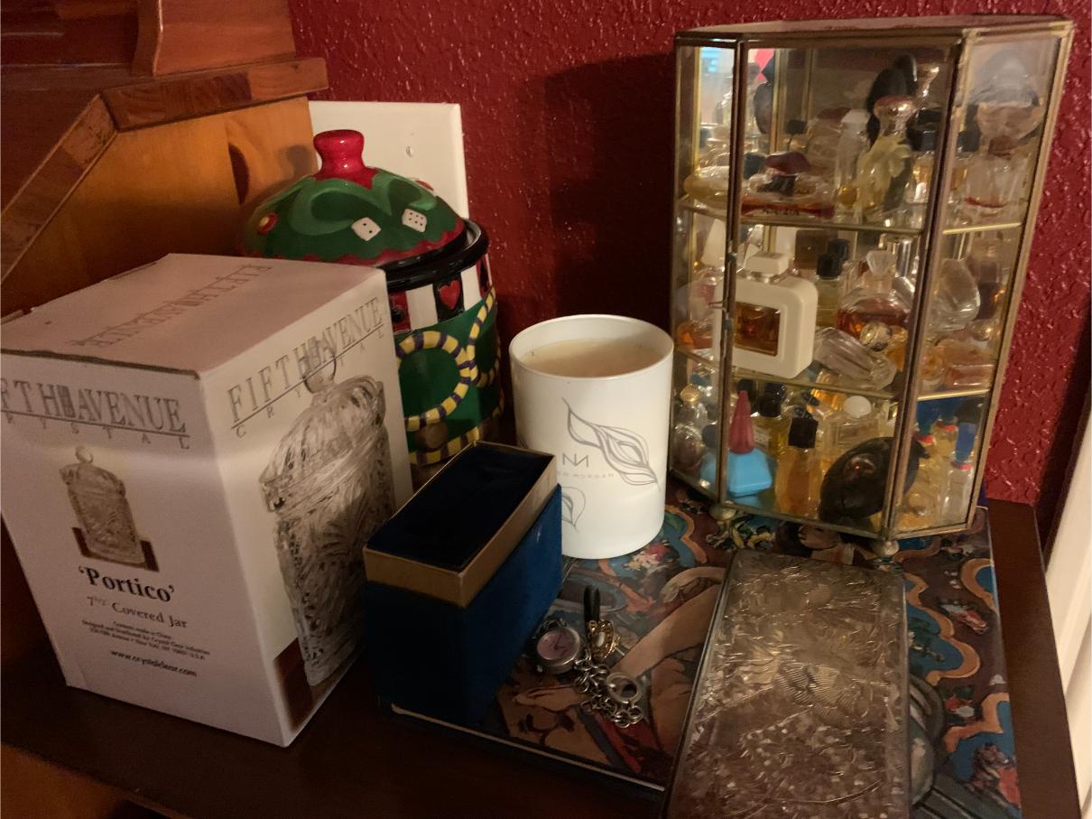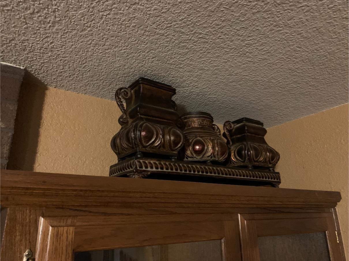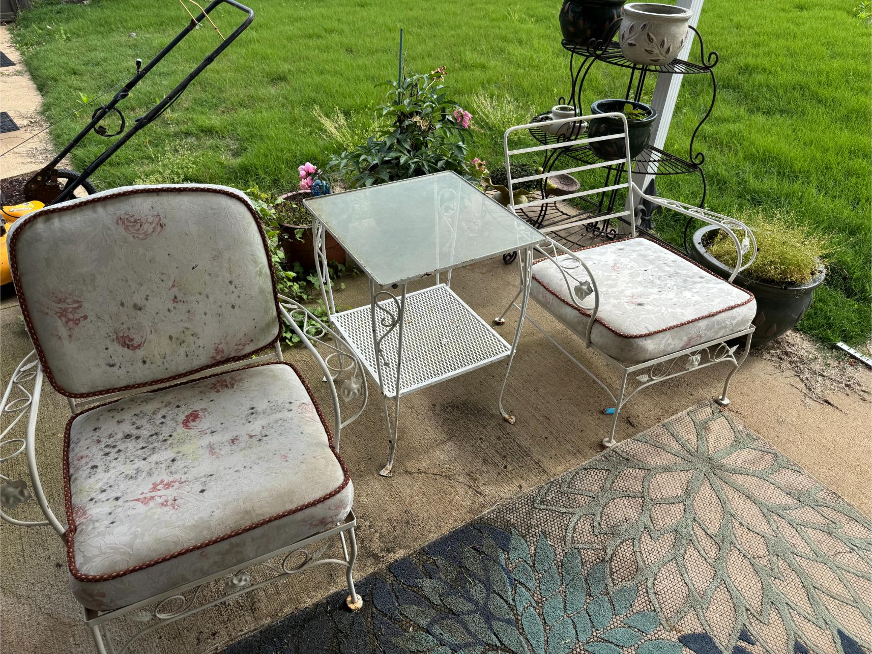Household:Â Leather Sofa – (2) La-Z-Boy Leather Recliners – Leather Chair & Ottoman – Sofa – Coffee & End Tables – Sofa Table – Pine Dining Table & Chairs & China Cabinet – Iron Base w/Glass Top Dining Table & Chairs – Several Oak & Glass Curio Cabinets – Lawyer’s Bookcase – Desk – Occasional Tables & Chairs – Roll Around Kitchen Island – Baker’s Rack – Cherry King Size Bed, (2) Chests & (2) Nightstands – Lingerie Chest – Jewelry Armoire – Trunk – Elec Fireplace – Whirlpool Refrigerator – Speed Queen Washer – Whirlpool Cabrio Dryer – Small Appliances – Pots & Pans – Corningware – Misc Dishes & Kitchen Items – TV’s (Vizio) – Clocks – Yard Ornaments – Flower Pots – Concrete Razorback Bench – Patio Furniture – Fire Pit – Seasonal Decorations – Home Decor – Area Rugs – Books – Linens – Roomba Vac