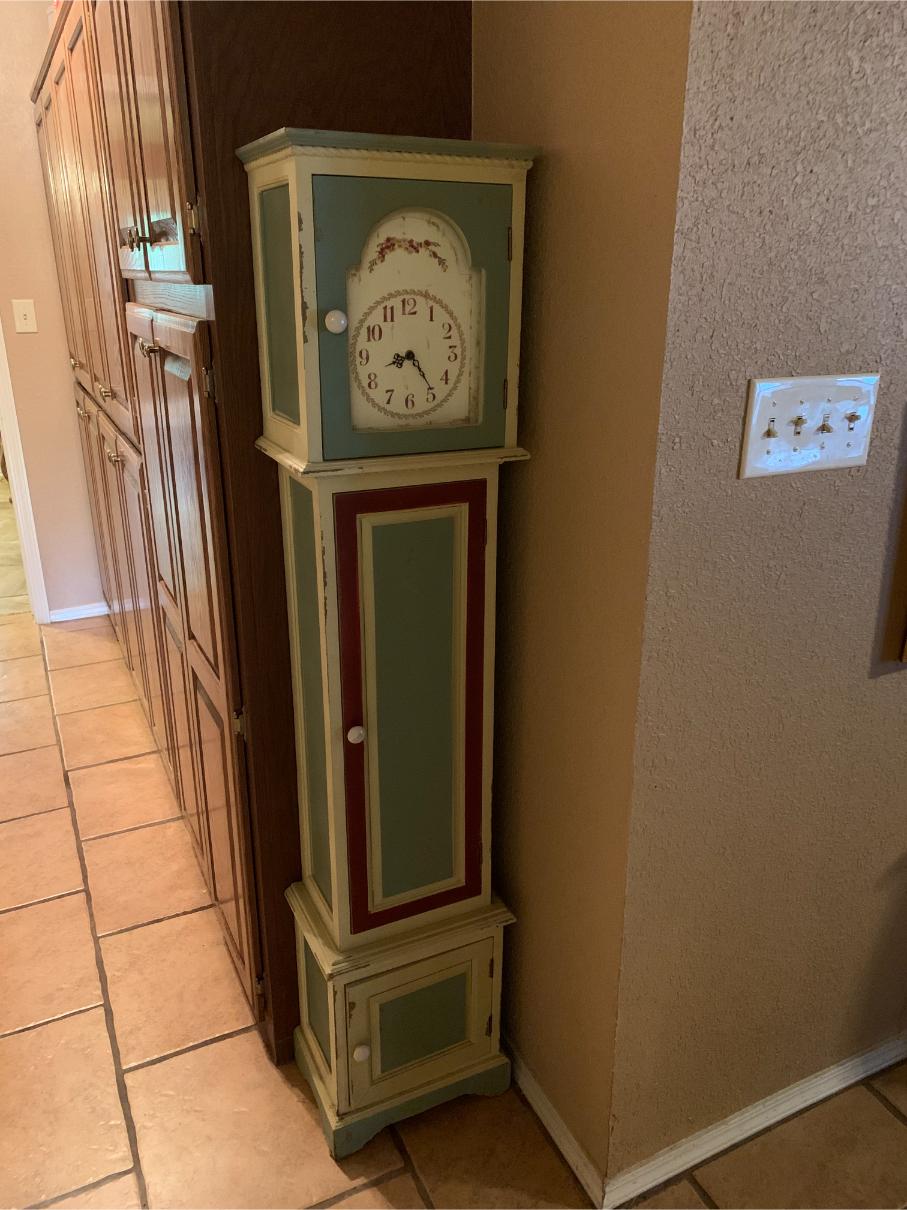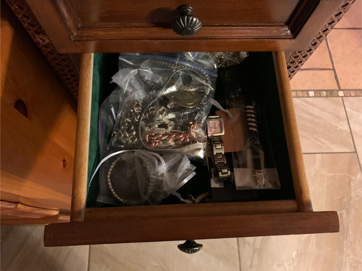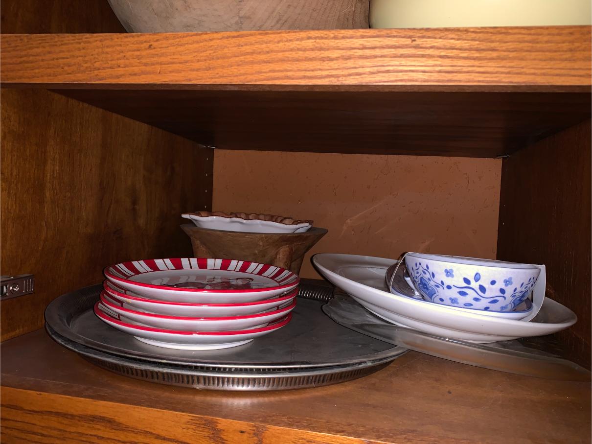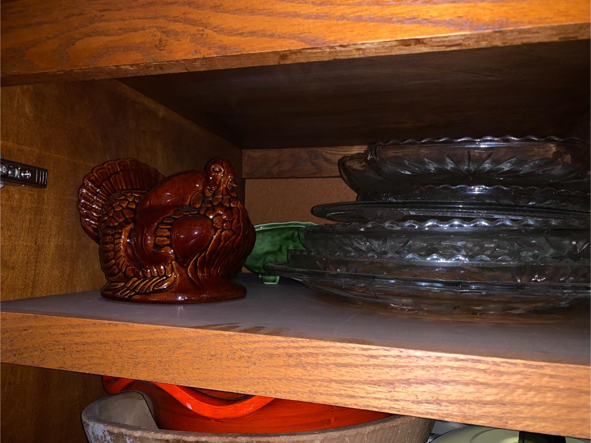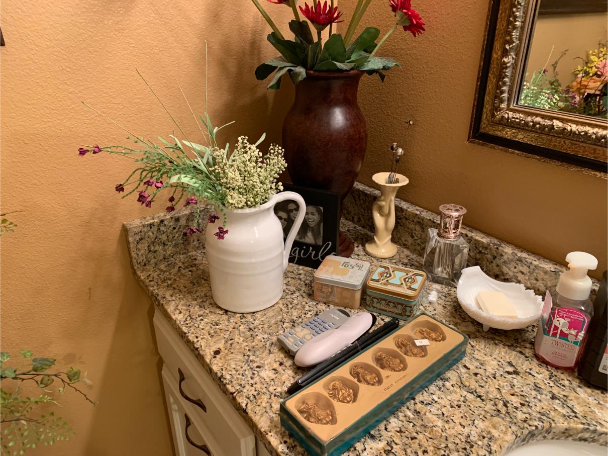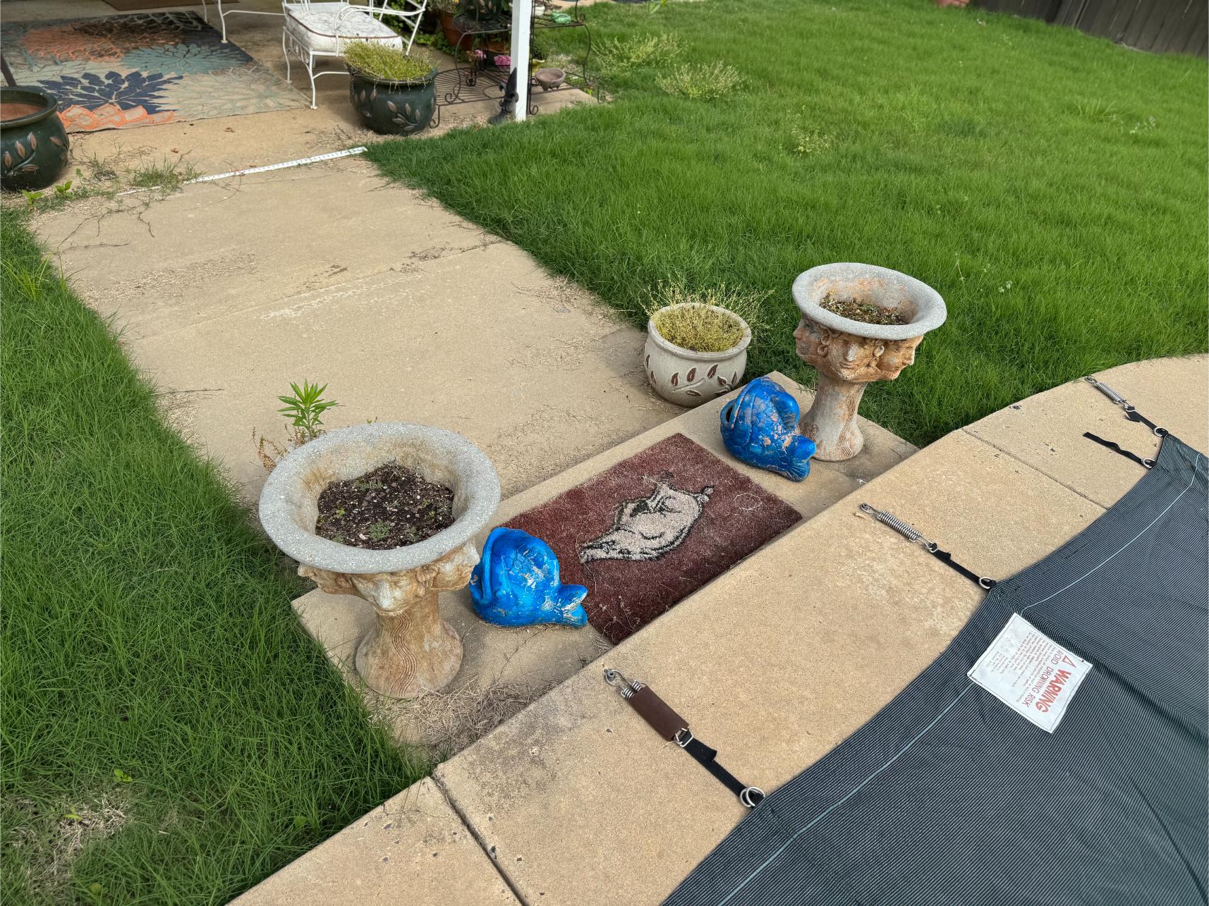 Household:Â Leather Sofa – (2) La-Z-Boy Leather Recliners – Leather Chair & Ottoman – Sofa – Coffee & End Tables – Sofa Table – Pine Dining Table & Chairs & China Cabinet – Iron Base w/Glass Top Dining Table & Chairs – Several Oak & Glass Curio Cabinets – Lawyer’s Bookcase – Desk – Occasional Tables & Chairs – Roll Around Kitchen Island – Baker’s Rack – Cherry King Size Bed, (2) Chests & (2) Nightstands – Lingerie Chest – Jewelry Armoire – Trunk – Elec Fireplace – Whirlpool Refrigerator – Speed Queen Washer – Whirlpool Cabrio Dryer – Small Appliances – Pots & Pans – Corningware – Misc Dishes & Kitchen Items – TV’s (Vizio) – Clocks – Yard Ornaments – Flower Pots – Concrete Razorback Bench – Patio Furniture – Fire Pit – Seasonal Decorations – Home Decor – Area Rugs – Books – Linens – Roomba Vac