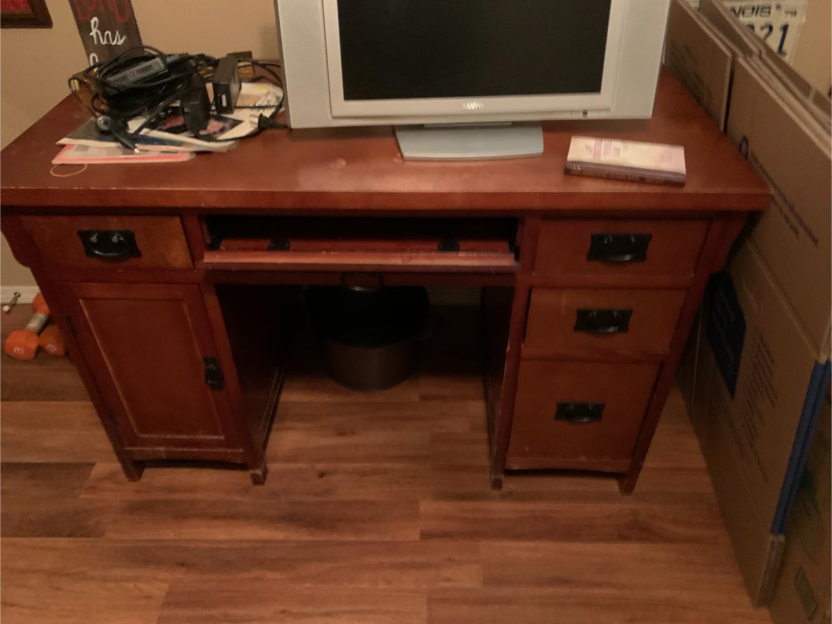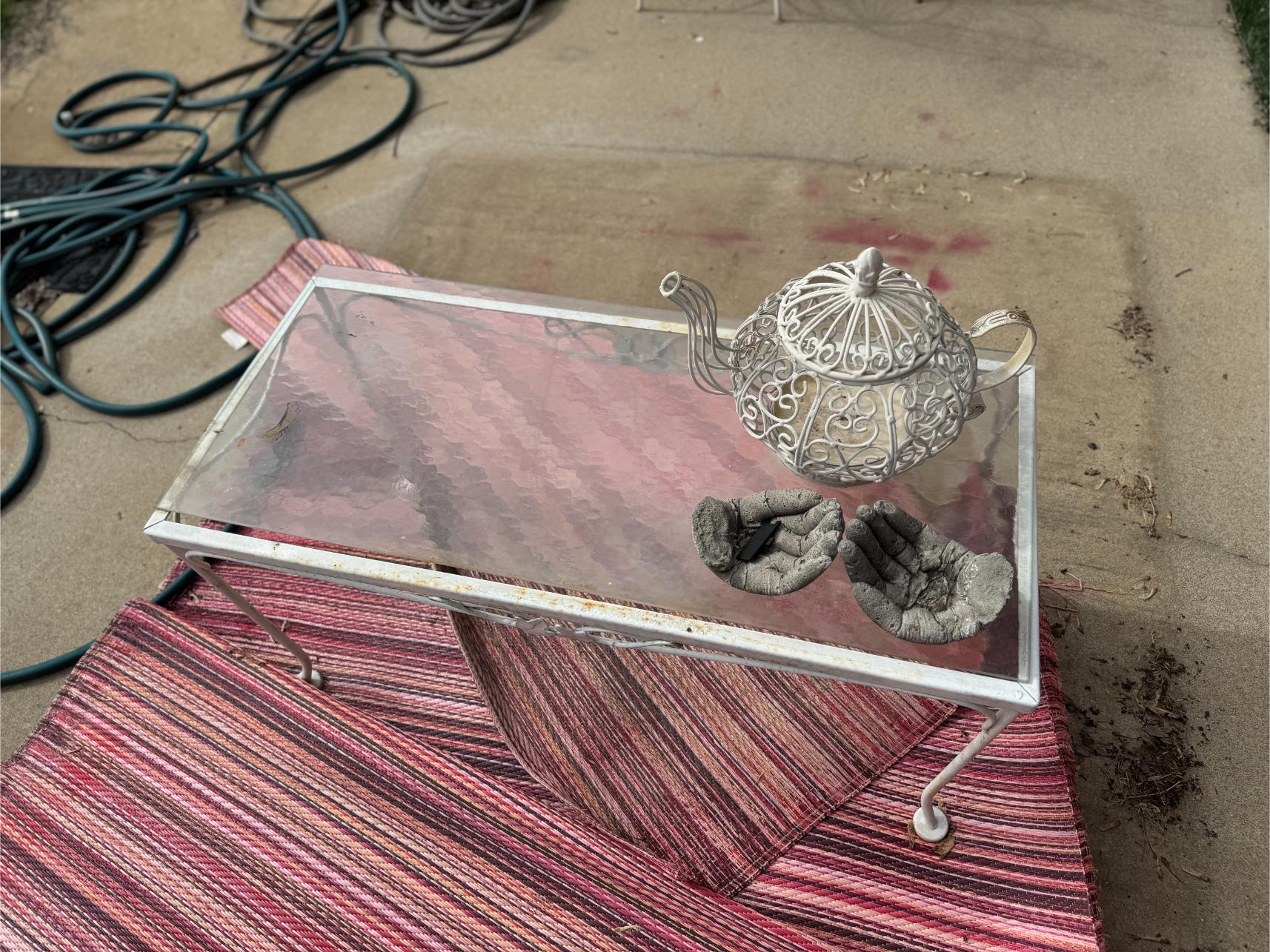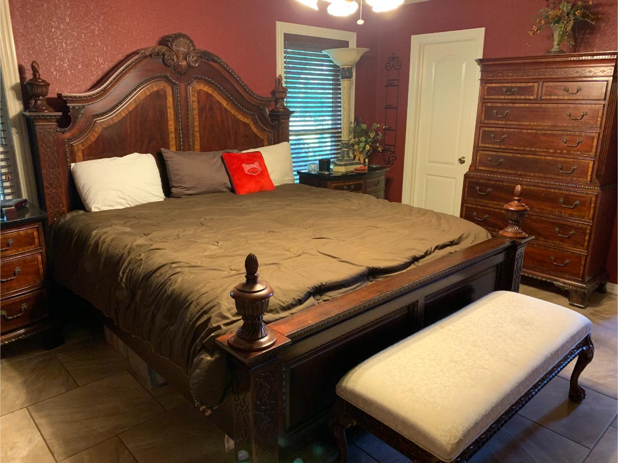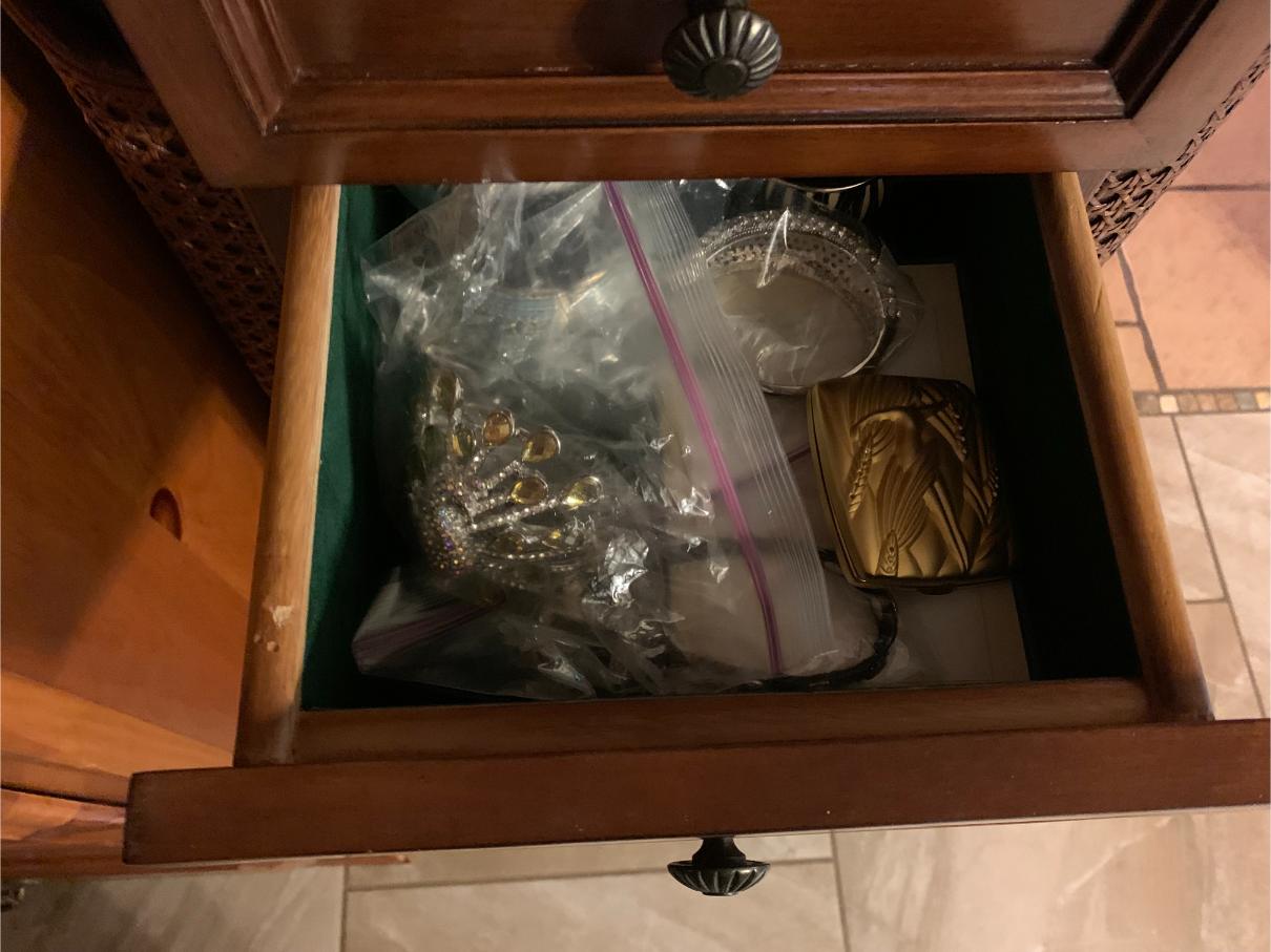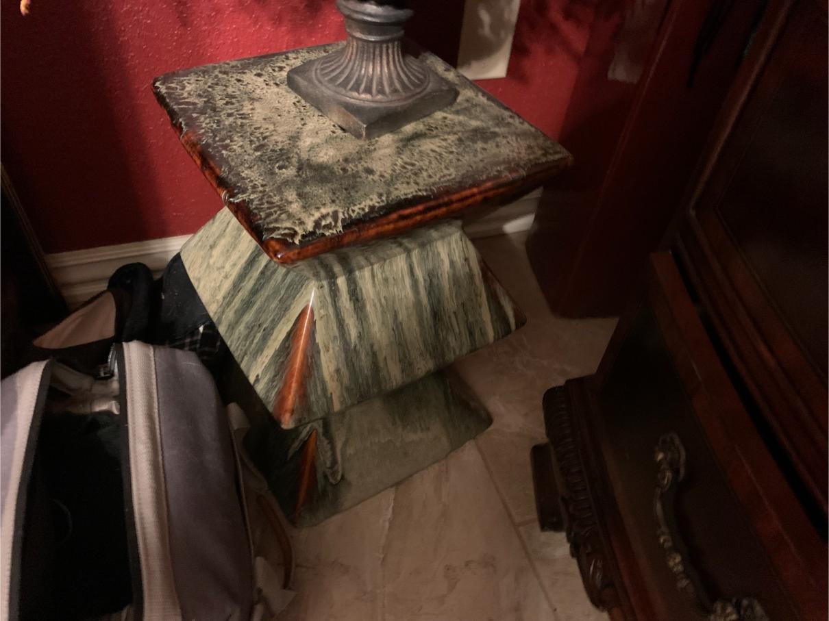 Household:Â Leather Sofa – (2) La-Z-Boy Leather Recliners – Leather Chair & Ottoman – Sofa – Coffee & End Tables – Sofa Table – Pine Dining Table & Chairs & China Cabinet – Iron Base w/Glass Top Dining Table & Chairs – Several Oak & Glass Curio Cabinets – Lawyer’s Bookcase – Desk – Occasional Tables & Chairs – Roll Around Kitchen Island – Baker’s Rack – Cherry King Size Bed, (2) Chests & (2) Nightstands – Lingerie Chest – Jewelry Armoire – Trunk – Elec Fireplace – Whirlpool Refrigerator – Speed Queen Washer – Whirlpool Cabrio Dryer – Small Appliances – Pots & Pans – Corningware – Misc Dishes & Kitchen Items – TV’s (Vizio) – Clocks – Yard Ornaments – Flower Pots – Concrete Razorback Bench – Patio Furniture – Fire Pit – Seasonal Decorations – Home Decor – Area Rugs – Books – Linens – Roomba Vac