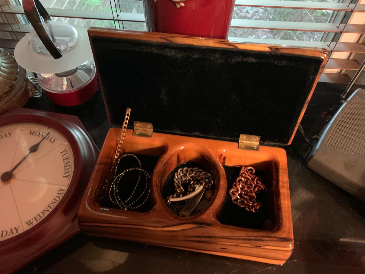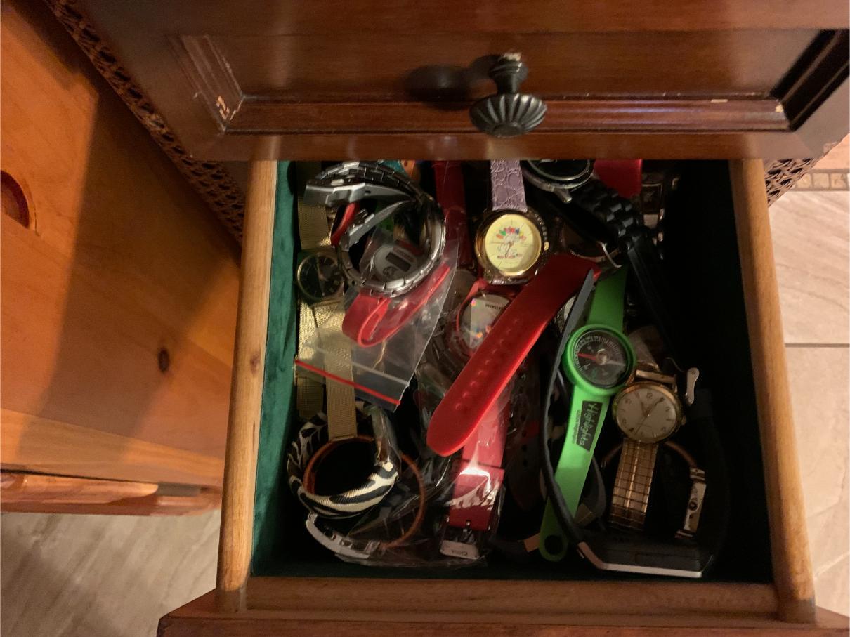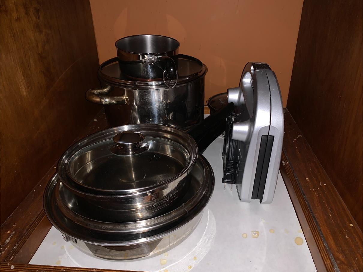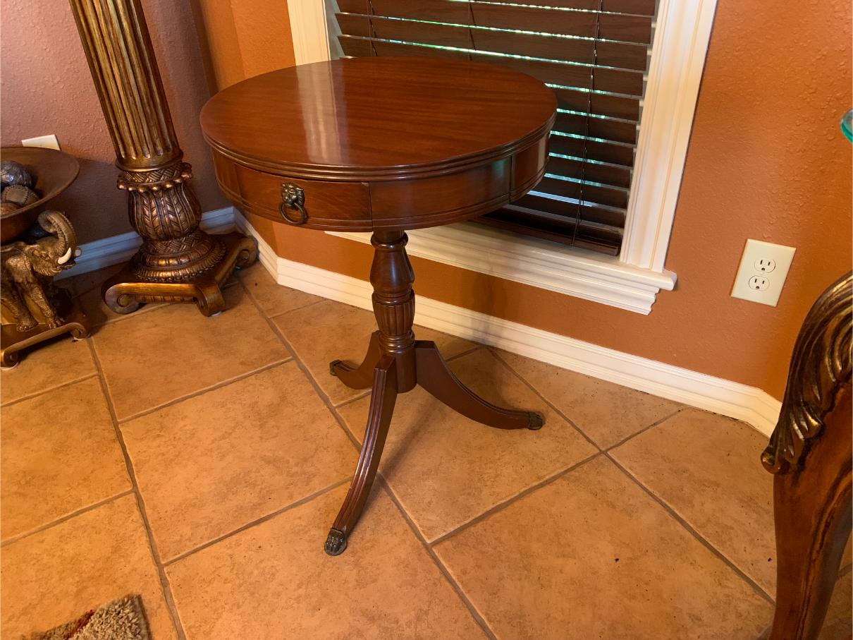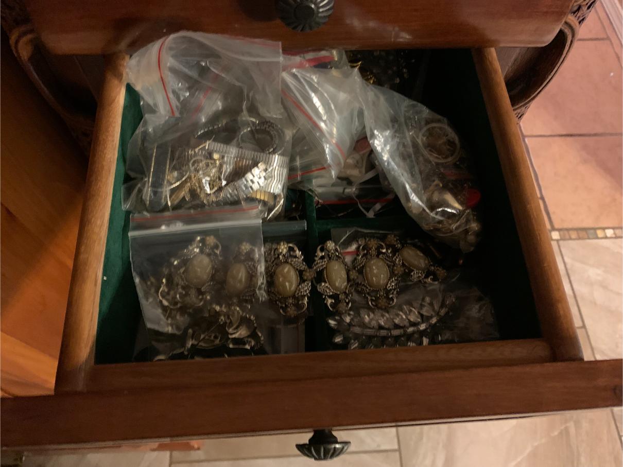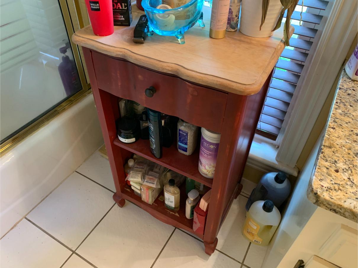 Household:Â Leather Sofa – (2) La-Z-Boy Leather Recliners – Leather Chair & Ottoman – Sofa – Coffee & End Tables – Sofa Table – Pine Dining Table & Chairs & China Cabinet – Iron Base w/Glass Top Dining Table & Chairs – Several Oak & Glass Curio Cabinets – Lawyer’s Bookcase – Desk – Occasional Tables & Chairs – Roll Around Kitchen Island – Baker’s Rack – Cherry King Size Bed, (2) Chests & (2) Nightstands – Lingerie Chest – Jewelry Armoire – Trunk – Elec Fireplace – Whirlpool Refrigerator – Speed Queen Washer – Whirlpool Cabrio Dryer – Small Appliances – Pots & Pans – Corningware – Misc Dishes & Kitchen Items – TV’s (Vizio) – Clocks – Yard Ornaments – Flower Pots – Concrete Razorback Bench – Patio Furniture – Fire Pit – Seasonal Decorations – Home Decor – Area Rugs – Books – Linens – Roomba Vac