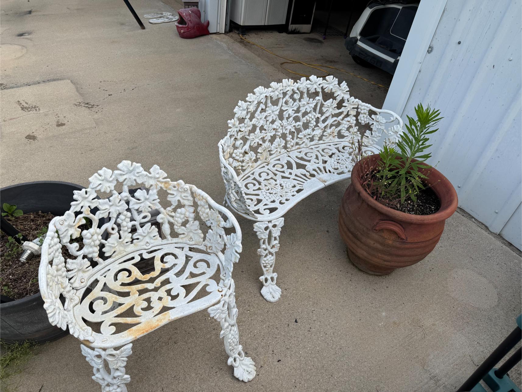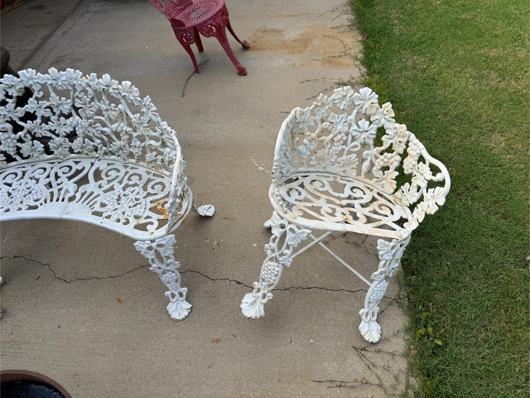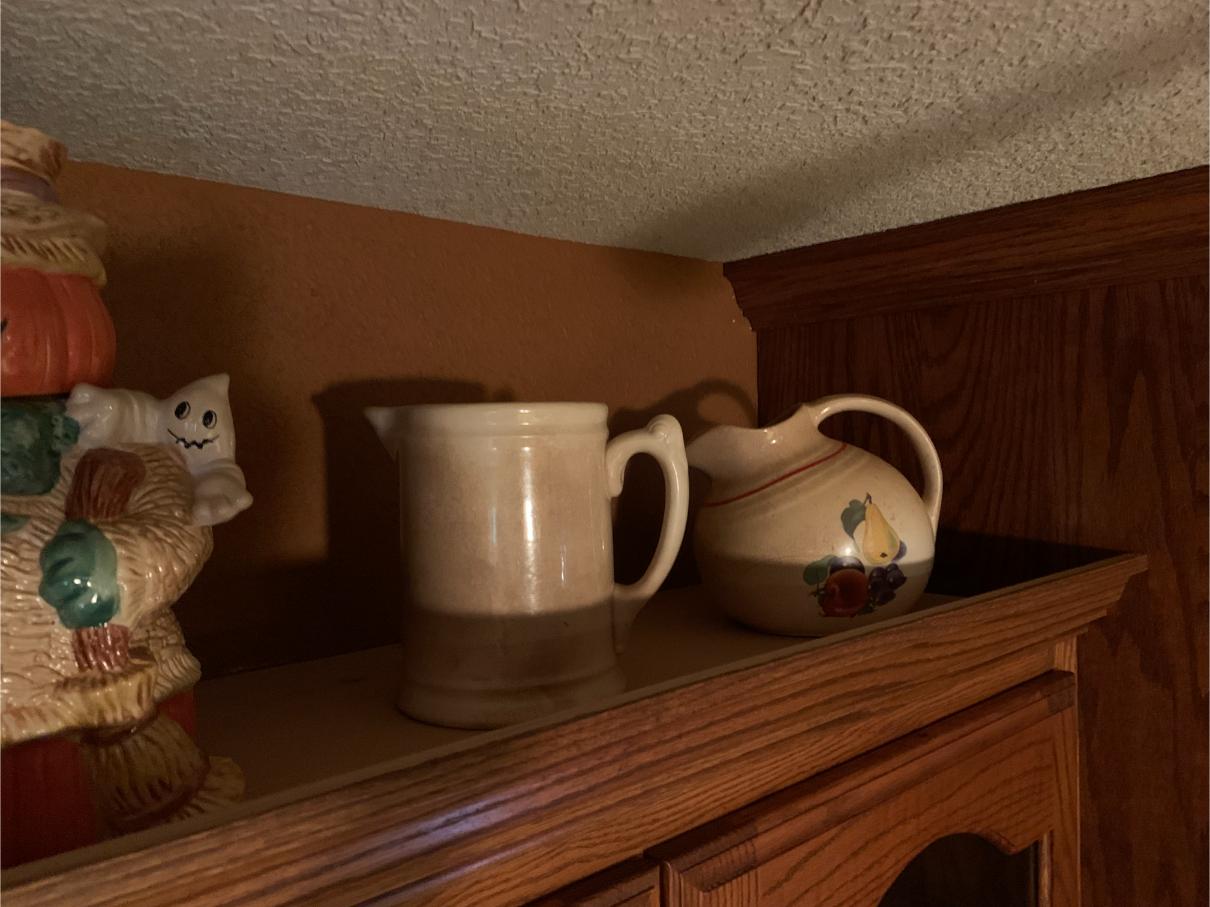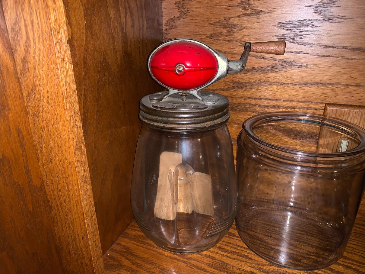 Antiques & Collectibles:Â (2) Oak Bow Front China Hutches – Oak Buffet – (2) Victorian Sofa & (2) Chairs – (2) Duncan Phyfe Round End Tables – Center Table – Oak Rockers – Eastlake Chairs – Mirrors, Pictures, Paintings – Stained Glass – Lamps, Floor Lamps – Kerosene Lamp – Mantle Clocks – Dazey Glass Churn – Pyrex Mixing Bowls – Cookie Jars – Planters Peanut Collectibles – Copper Bucket – Collector Plates – Misc Glassware – Iron Skillets – Wood Bowls – Crocks – Silver Plated Items – Rub Board – Galv Tubs – Tubs on Stands – Sleds – Planters – Well Pulley – Iron Tub Feet – Iron Wash Pot – Cast Iron Stove – Wrought Iron Furniture – Jewelry – Masonic Pins – Gold Plated Flatware in Case – Thailand 1966 Utensil Set in Case – Model Airplanes – Pitcher Pump – Push Plows
